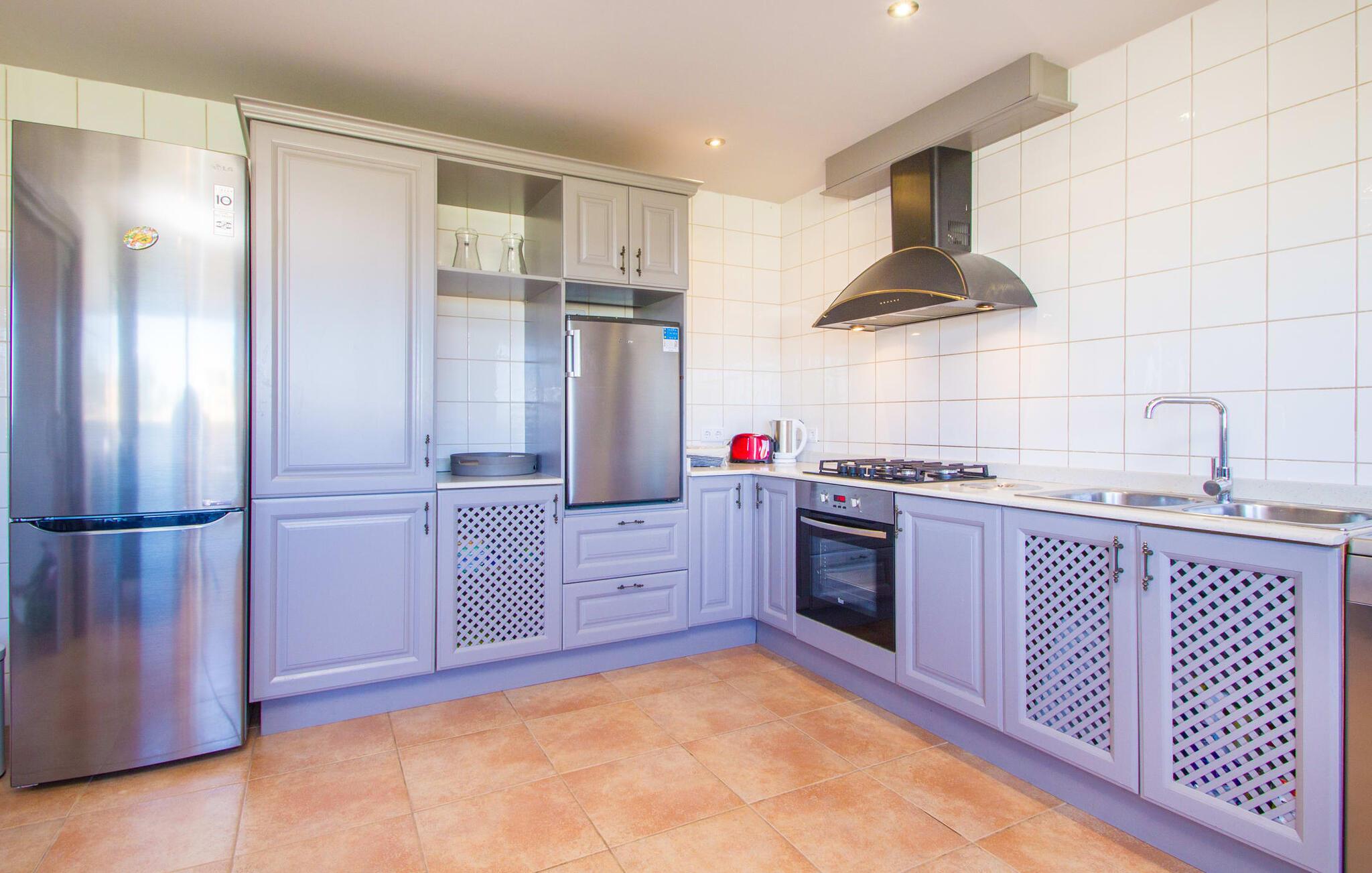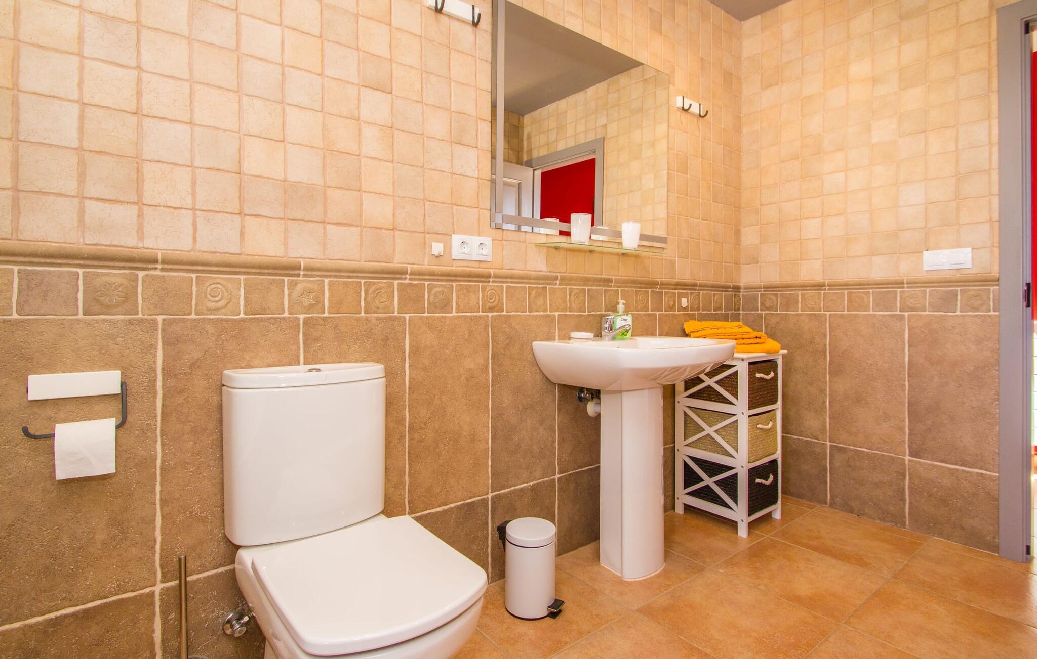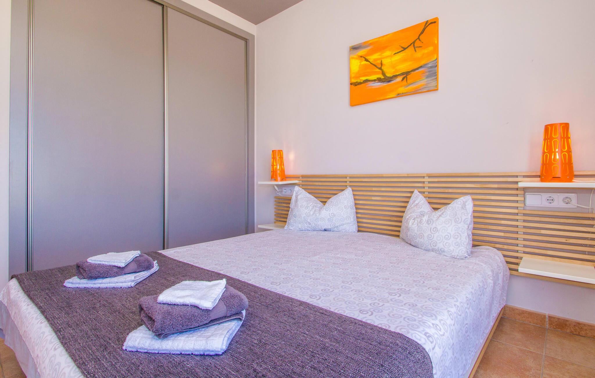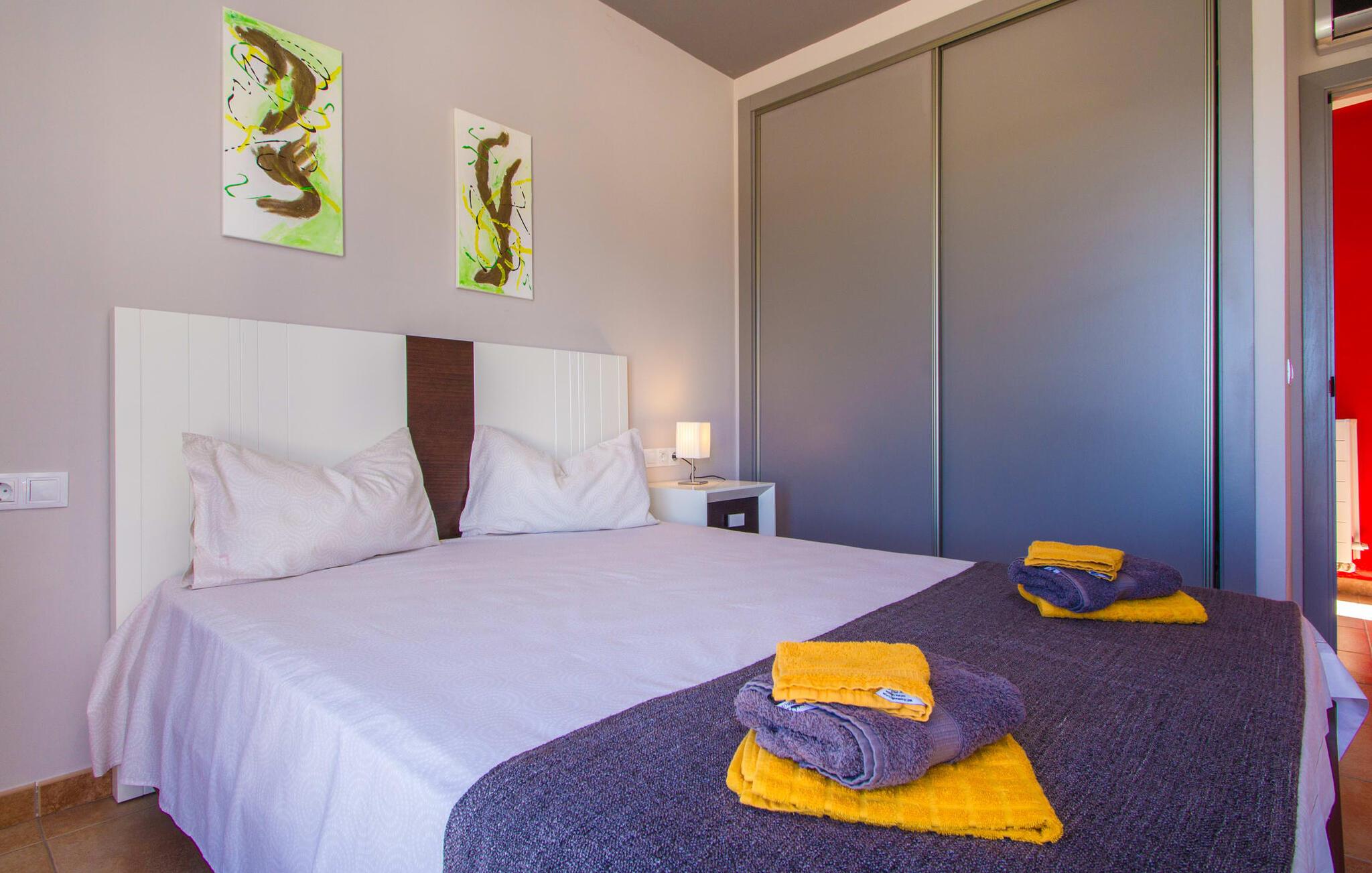 Denne en-etagers L-formede villa med integreret poolterrasse tiltrækker øjeblikkelig entusiasme og er kærligt kendt som "Can Cariño". Og der er faktisk meget at forelske sig i ved første blik, når I kører op ad den lange indkørsel. Den rummelige, velholdte og alligevel næsten naturlige ejendom giver jer mulighed for at nyde udsigten og lade tankerne vandre i det fjerne. Ikke kun picnicområdet med grill, men også en luftig Bali seng er gemt i den fortryllende have; På varme sommernætter vil en gæst med pude og tæppe under armen formentlig vandre ind i udendørs soveværelset om morgenen og hoppe i poolen i stedet for bruseren. Talrige komfortable liggestole, maritime polyrattan lounge sofaer og et stort bord gør opholdet i solen eller skyggen meget behageligt, så alle kan finde deres yndlingssted - deres lugarfavorit. Og hvis I har lyst til en strandstol, er der også en af dem. Som en ny besøgende i huset meget passende skrev i gæstebogen: "Mange kan indrette et hus, men kun få formår at skabe et hjem." I finder også kærlige detaljer i interiøret, som er endnu mere fremhævet af det moderne indretningsstil. Hvad med det knaldrøde æblebord i stue og spisestue eller fjernsynet, der har væggen for sig selv og tiltrækker alles opmærksomhed som et stort biograflærred? Og passer den blå Loriot-sofa ikke virkelig til det enorme, moderne køkken? Hvad synes I om den elegante løsning med en dobbeltdør med udsigt, der adskiller spisepladsen og brændeovnen og samtidig bevare en luftig forbindelse? Vaskemaskine og tørretumbler er også anbragt separat her. Passer de små sengelamper ikke perfekt til massivtræssengene i et elegant design? Alle fire soveværelser i næsten samme størrelse - hvoraf det ene har eget badeværelse og walk-in closet - har aircondition og åbner direkte ud til terrassen. En ting er dog sikkert: alle vil skændes om at prøve et bestemt brusebad... Små ture fra landskabet til byen og længere ture til eller over havet eller ud i naturen kan nemt klares fra "Can Cariño": I middelalderen I den lille by Campos kan I slappe af i timevis med espresso og mandelkage og der er selvfølgelig også nogle gode restauranter. En varm drik med sin egen mallorcanske historie kan findes i den historiske Café Colón i Llucmajor. Vandrere og cyklister vil opdage deres paradis med vilde vandløb og orkideer i naturparken Mondragó, mens svømmere kan prøve nogle af de smukkeste strande - fra Es Trenc (kaldet "Caribbean of Mallorca") til Cala Pí til den børnevenlige Platja de sa Rápita. Steder i syd som Santanyí, Ses Salines og Colònia de Sant Jordi byder på sol og salt, tapas og vin, bådture (f.eks. til gedeøen Cabrera) og vandrestier langs kysten med et fyrtårn - der er meget mere. "Cariños" at opdage landligt, roligt beliggende mellem enge og marker og alligevel kun 10 minutter i bil fra charmerende Campos og dets butikker og restauranter ligger "Can Cariño": en klart struktureret villa med frit udsyn til det grønne og en hælder mod! Bauhaus-stilen Den let tilgængelige Ma-19 garanterer frihed på den ene side, den fører forbi Llucmajor og El Arenal til Palma, på den anden side til Santanyí og nær Mondragó-naturreservatet, strande med caribisk flair som Es Trenc, Platja de. sa Rápita og Es Carbó (inden for en radius af ca. 15 km) lover afslappende dage ved havet, bådture og vandsport.