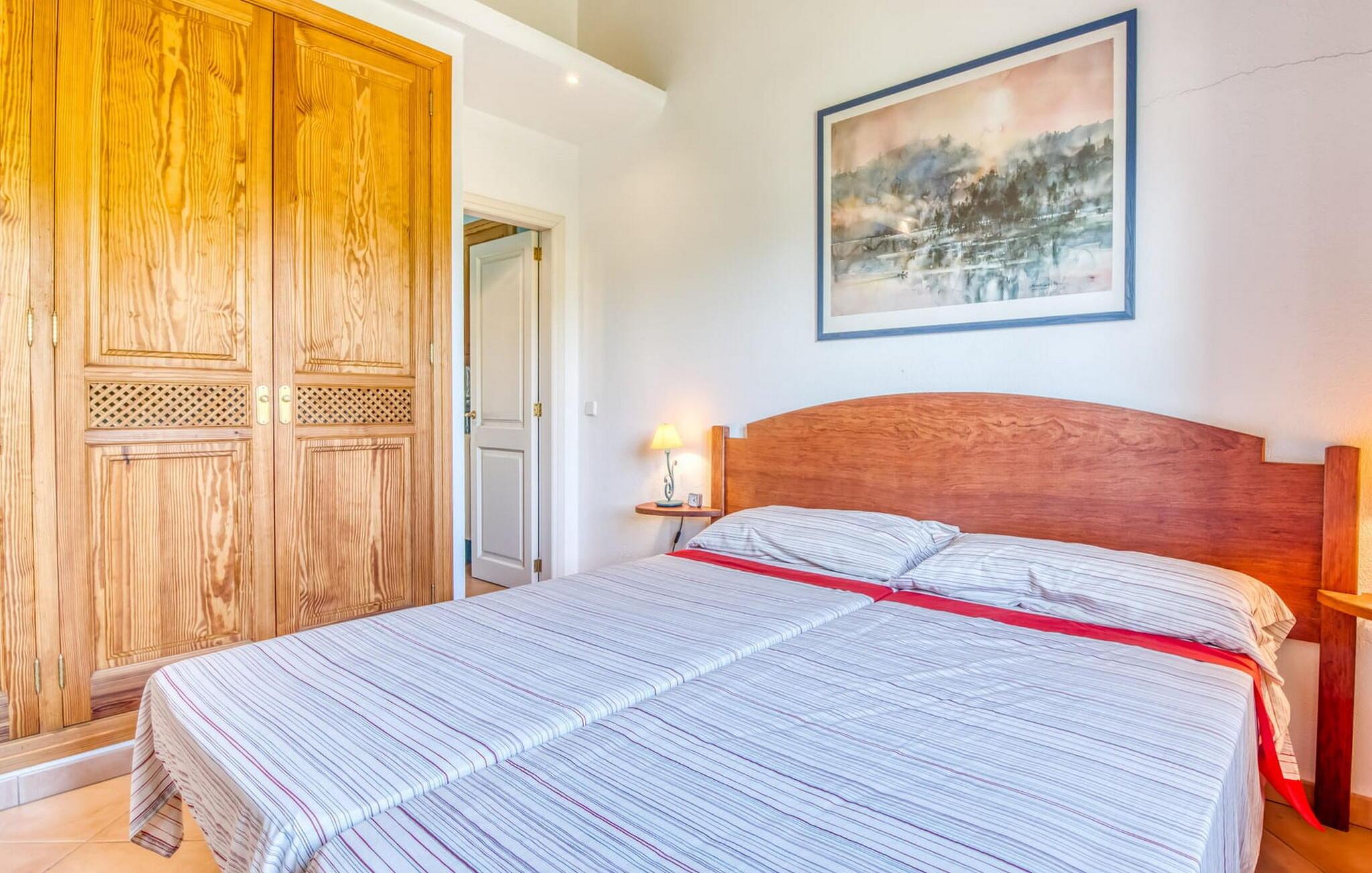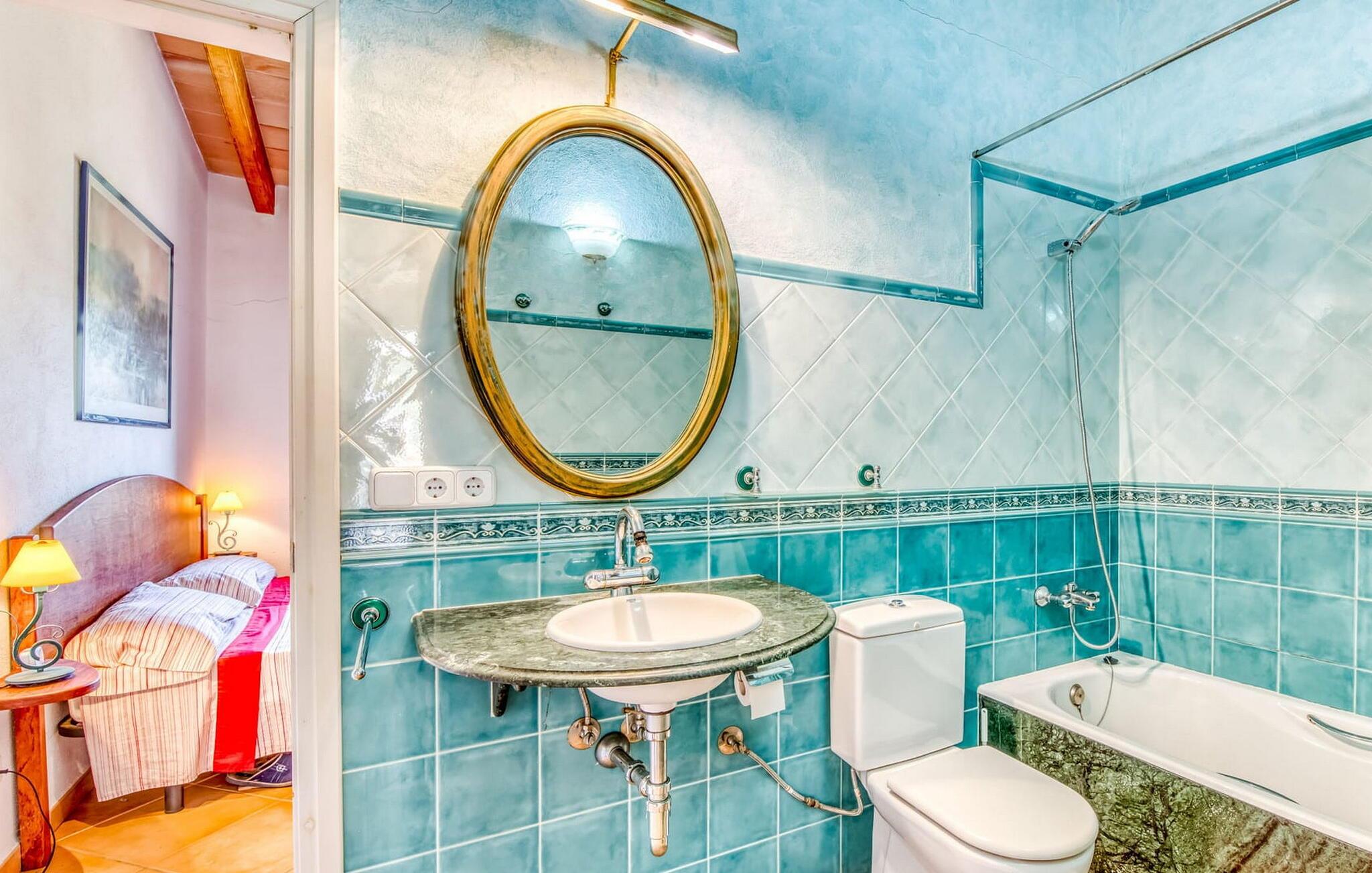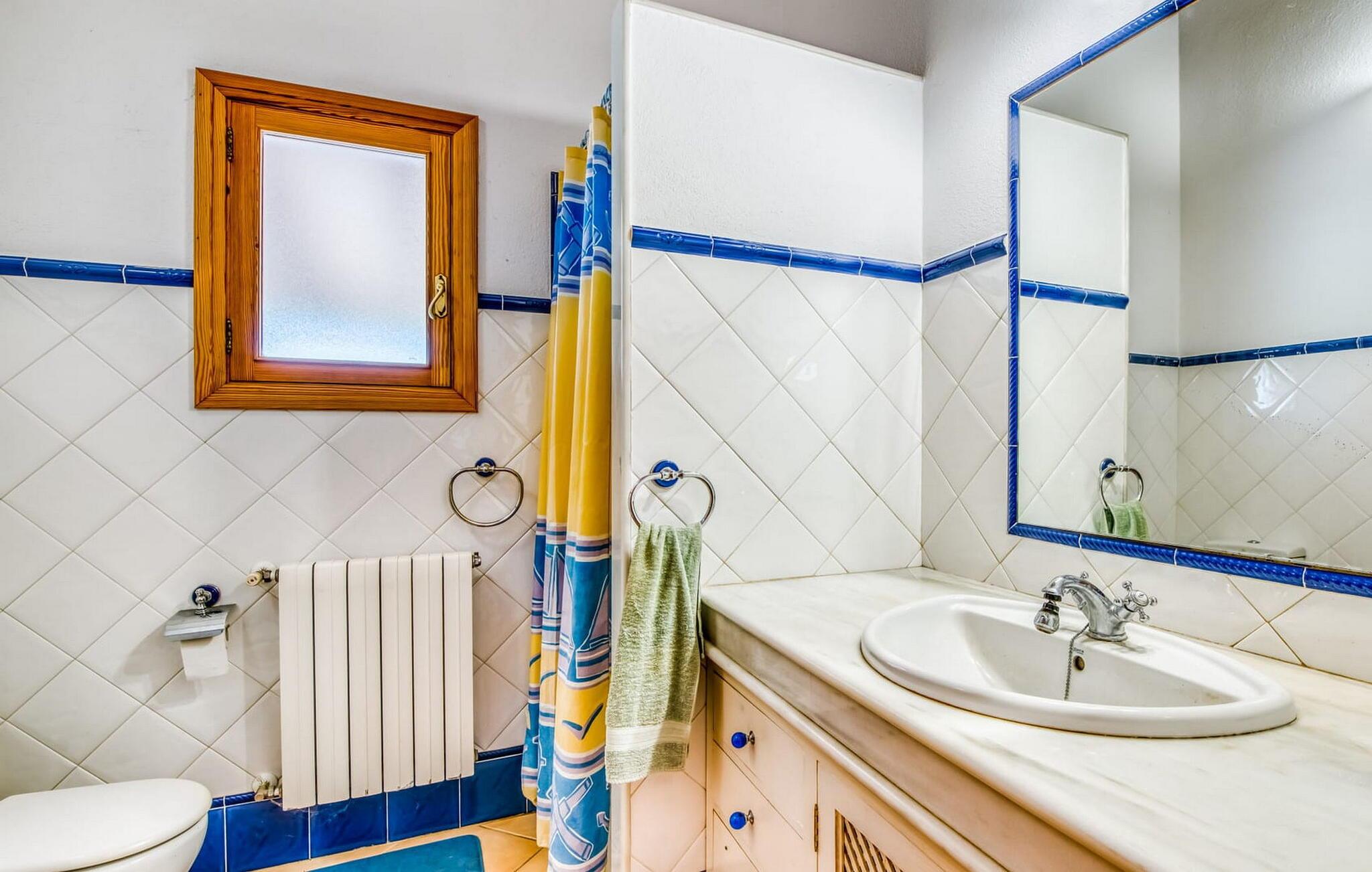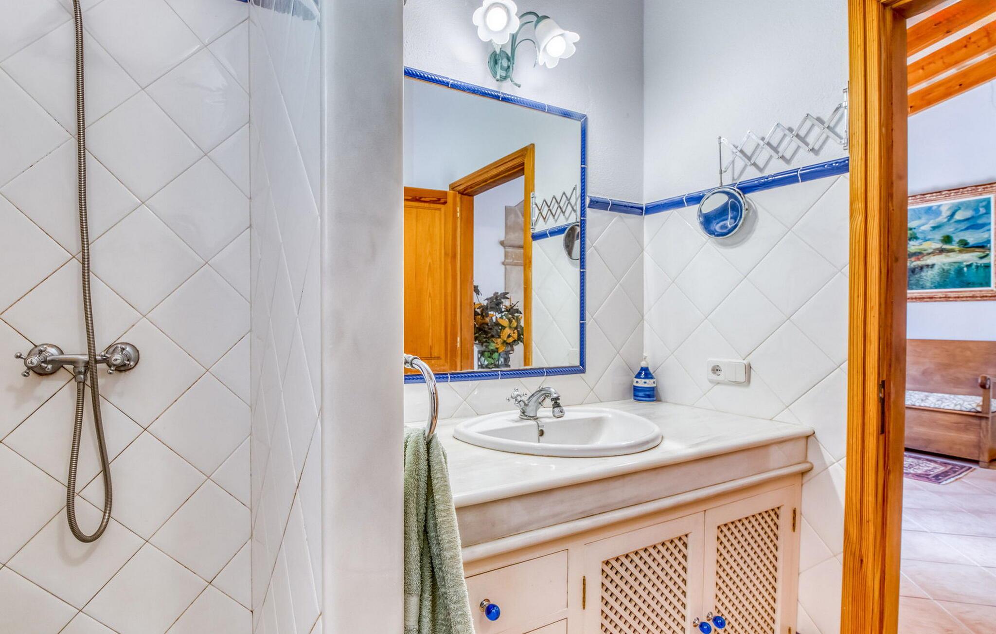 Denne bondegård i det smukke østlige Mallorca er et helt igennem idyllisk sted. Det er et ideelt hjem for alle, der elsker privatliv og nærhed til naturen og ønsker at være væk fra stress og jag på ferien. Et rustikt, delvist naturligt miljø skaber den atmosfære, hvor det er nemt at ankomme og slappe af. Åbne og overdækkede terrasseområder inviterer til at blive hængende. Afhængig af solens position kan jeres yndlingssteder ændre sig i løbet af dagen, og om aftenen inviterer grillen til at nyde en solid grill og en stemningsfuld afslutning. Den charmerende indretning af dette feriehus på Mallorca kan beskrives som værdigt og ret klassisk. Alle boligarealer er i ét plan og tilbyder fire feriegæster et rummeligt midlertidigt hjem. Den åbne stue-spisestue med integreret, fuldt udstyret køkken rummer forskellige behov og aktiviteter på samme tid og skaber en dejlig fællesskabsfølelse. På kølige aftener kan I sidde komfortabelt i sofa-lænestolsområdet foran pejsen eller se en god film i fjernsynet. Indendørs måltider kan også fejres sammen i det åbne rum - afstanden til køkkenet, hvorfra der er praktisk udgang til det fri, er behageligt kort. To hyggelige soveværelser med et badeværelse imellem skaber vidunderlige oaser af fred. Endnu et badeværelse fuldender boligkomforten i dette bondehus, som kan opvarmes til en behagelig temperatur året rundt. Bondegården "Can Carrio s'Estepar" er omgivet af bølgende bakker og ligger mindre end 3 km fra centrum af Son Serveras. I kan gøre jeres daglige indkøb i landsbyen og købe frisk mad på markedet om fredagen. På cirka 10 minutter i bil er I ved Costa del Pins, hvor I enten kan tilbringe en skøn dag ved havet eller spille golf. Den maleriske by Artà ligger 7,6 km derfra, hvor I kan slentre gennem smukke gader og få en bid mad på indbydende caféer og restauranter.