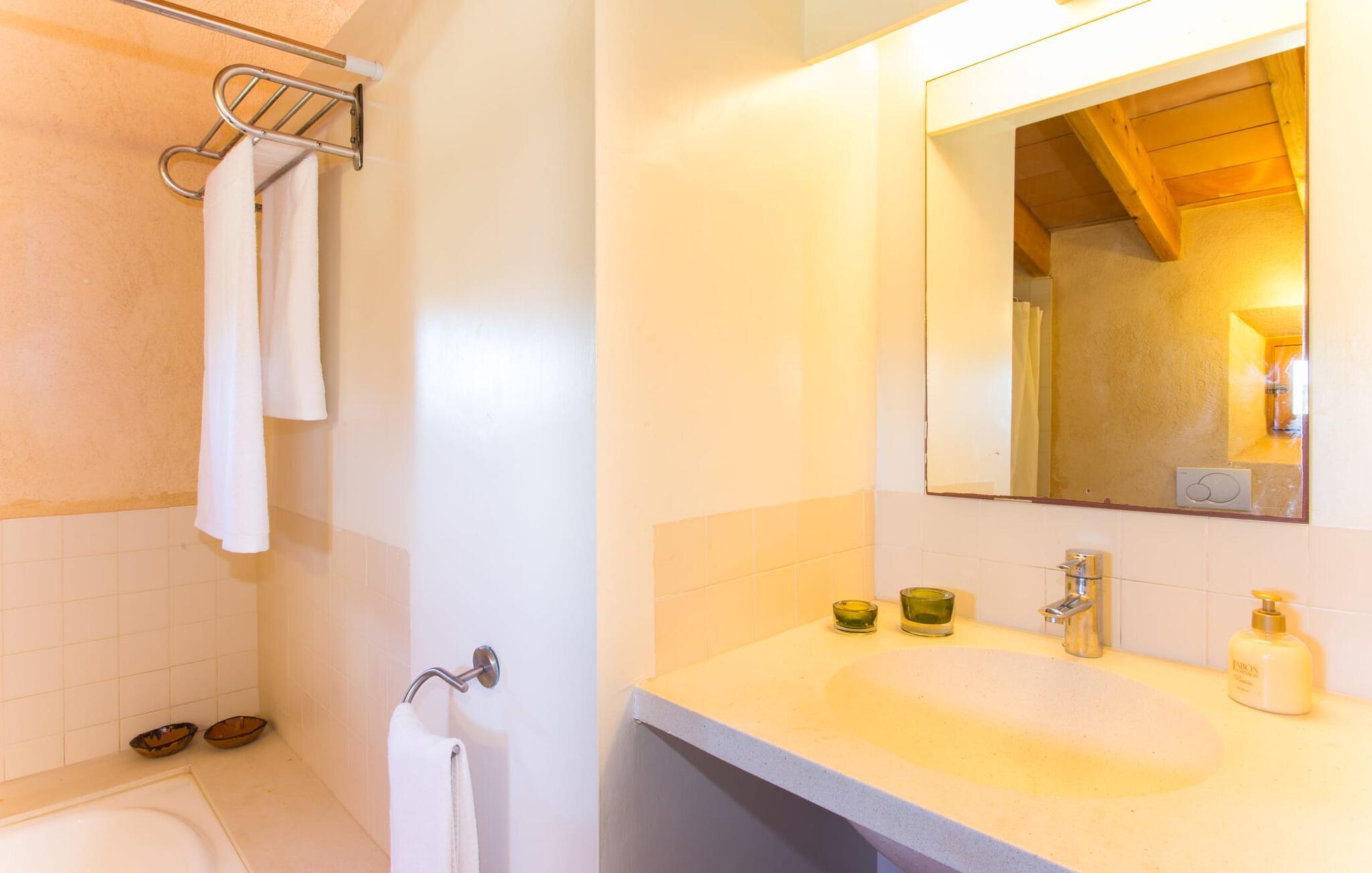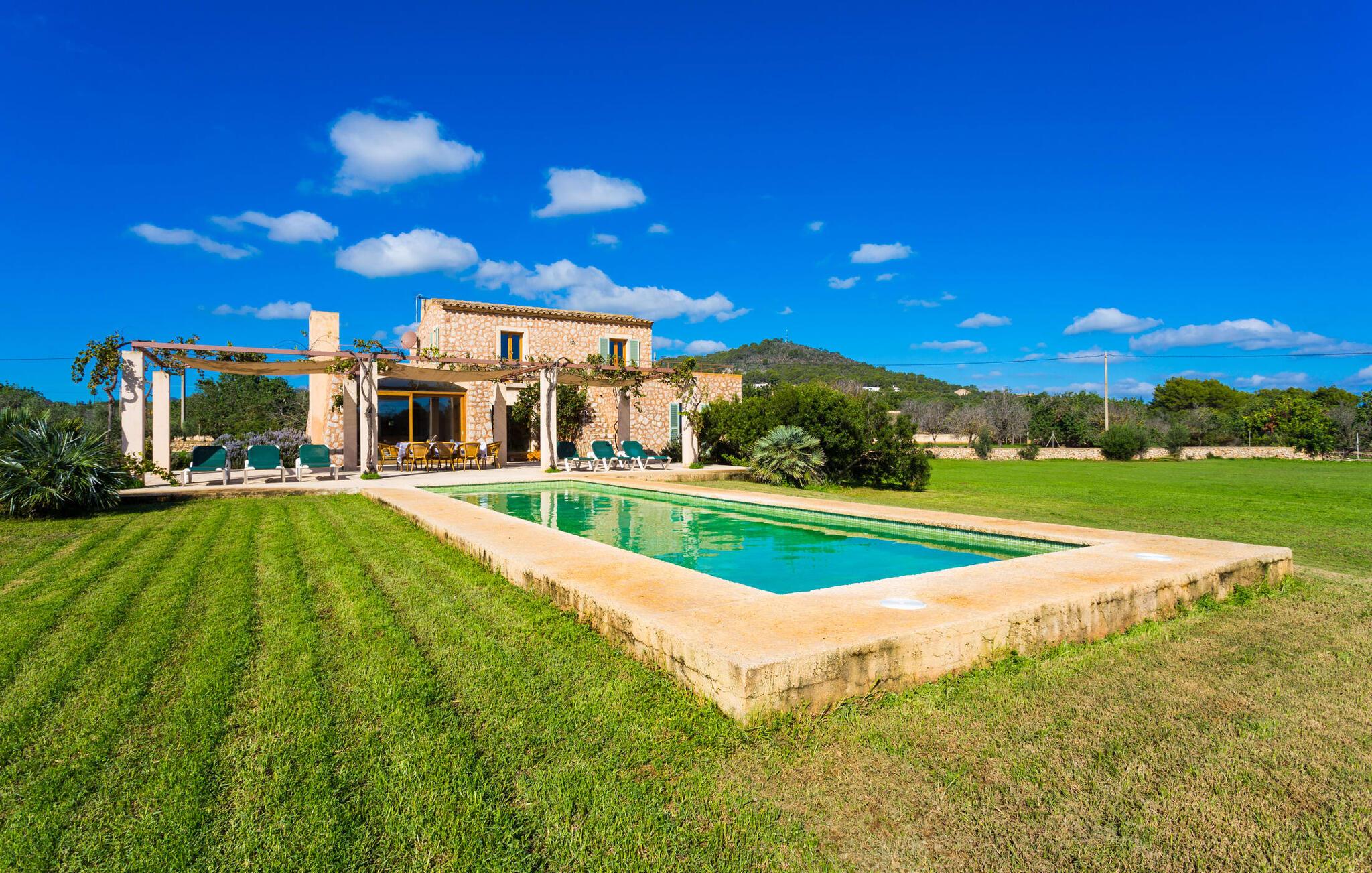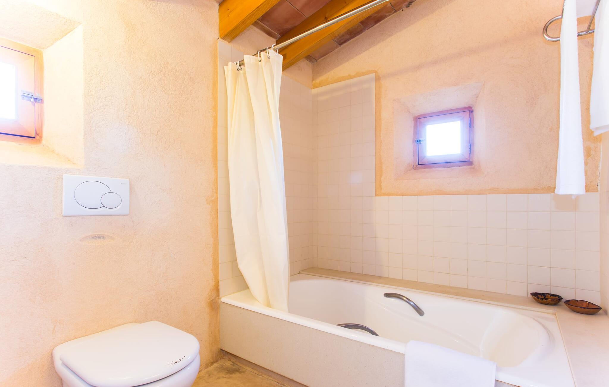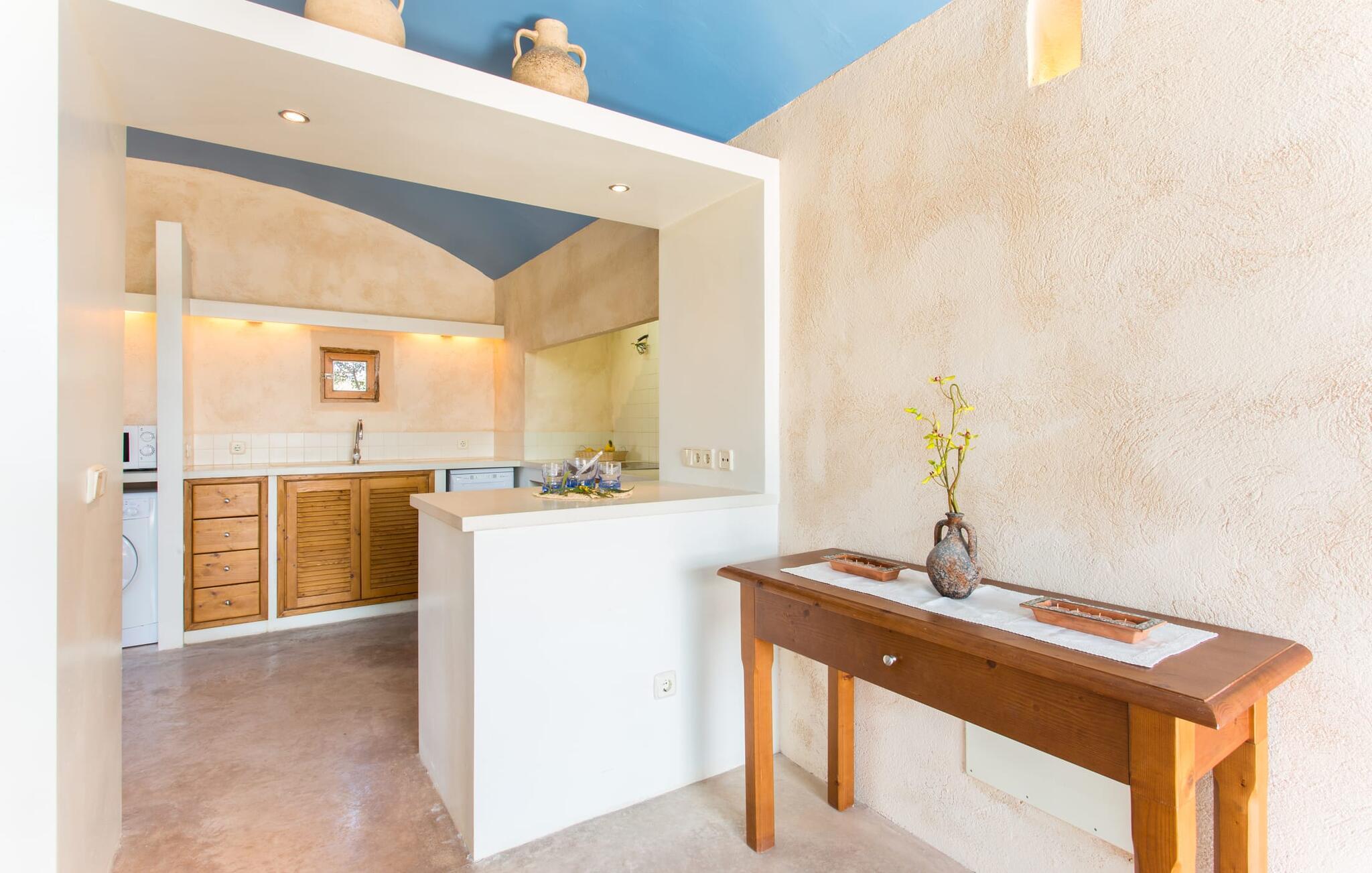 Fordyb jer i harmonien i det fri. De tilsyneladende uendelige udsigter er typiske for villaen - bølgende bakker smagt af en østlig salt brise fra det nærliggende hav. Brug et øjeblik på virkelig at værdsætte charmen ved denne fremragende beliggende villa, før I begiver jer ud for at nyde mangfoldigheden i en af strandbyerne. Dette er det “rigtige Mallorca”, som bliver mere og mere værdifuldt i takt med at drømmeøen også udvikles andre steder. Og mens I nyder disse udsigter, vil I blive forkælet med valg, om I vil slappe af i jeres egen private pool, se lækker fisk på grillen eller nyde en kold spansk øl på terrassen. Terrassen er en juvel i kronen på ejendommen. Planter, der klatrer op på forteltet, giver skygge. Tagterrasser er ideelle til at chatte i det fri og er tilgængelige fra stueetagen. Den rustikke atmosfære i villaen er forfriskende. Det let hvælvede loft i stuen minder om en charmerende vinkælder – men der fryser I bestemt ikke! En central pejs i rummet vil varme jer op på ingen tid. Dette samler jord (bakkerne), luft (himlen), vand (havet) og ild - de fire elementer, der findes så mange steder på øen. Fra opholdsområdet med sofa, rockers og lænestole kan I se en film, eller takket være moderne satellitteknologi kan I også se fladskærms-tv. Eller bare læn jer tilbage og lad fantasien få frit løb uden at skulle forlade den hyggelige pejs. Den kombinerede stue og spisestue med sit store bord fører direkte ind i køkkenområdet, hvor I finder alle bekvemmeligheder i en moderne husholdning, herunder en vaskemaskine. Fra køkkenet er der adgang til et af soveværelserne via en gang: Det ene badeværelse er direkte tilgængeligt via gangen og det andet støder op til det andet soveværelse på dette niveau. Når de dekorerede, stolede ejerne på klare, ligefremme konturer uden dekorative genstande. Det tredje soveværelse kan nås via trappen, som derefter fører til en alkove med en anden sofa. På den modsatte side af det resulterende atrium kan I få adgang til tagterrassen. Der er også et badeværelse på denne etage direkte ved siden af soveværelset, så alle jeres medrejsende kan nyde deres privatliv uden besværet med at stå i kø til badeværelset om morgenen. I kan endelig give frie tøjler til jeres følelse af eventyr fra det øjeblik, I vågner. Vores villa "Ca'n Carrió" scorer med sin landlige beliggenhed, og alligevel kan I være på kysten på ingen tid. Cala Bona-stranden ligger kun 1500 m væk og kan nås til fods. Med sin lavvandede indsejling i havet er denne kyststrækning særdeles velegnet til familier. Der er også en lille sportshavn, en promenade med mange butikker – og lækre lækkerier. I kan tage på skønne vandreture langs kysten – eller turde hoppe i vandet Cala Millor, Cala Ratjada og Portocristo, længere mod syd, er også en omvej værd. Inde i landet giver Son Servera og middelalderbyen Artà et glimt af, hvordan livet plejede at være på øen. Om aftenen kan I komme i kontakt med de originale mallorcanere på "Ca'n Carrió" og fortælle jeres egne historier foran pejsen. Enhver, der værdsætter klare linjer, vil føle sig hjemme i villaen "Ca'n Carrió": Beliggende i landlige omgivelser, er det omgivet af talrige palmer og middelhavstræer. Her er stille, men kun 5 minutter væk kan I fuldt ud nyde strandlivet i Cala Bona og Cala Millor. En palmeomkranset boulevard, udvalgte restauranter og mange interessante butikker kæmper om jeres opmærksomhed. En anden stor egenskab ved den attraktive østkyst er den fremragende vandkvalitet.
