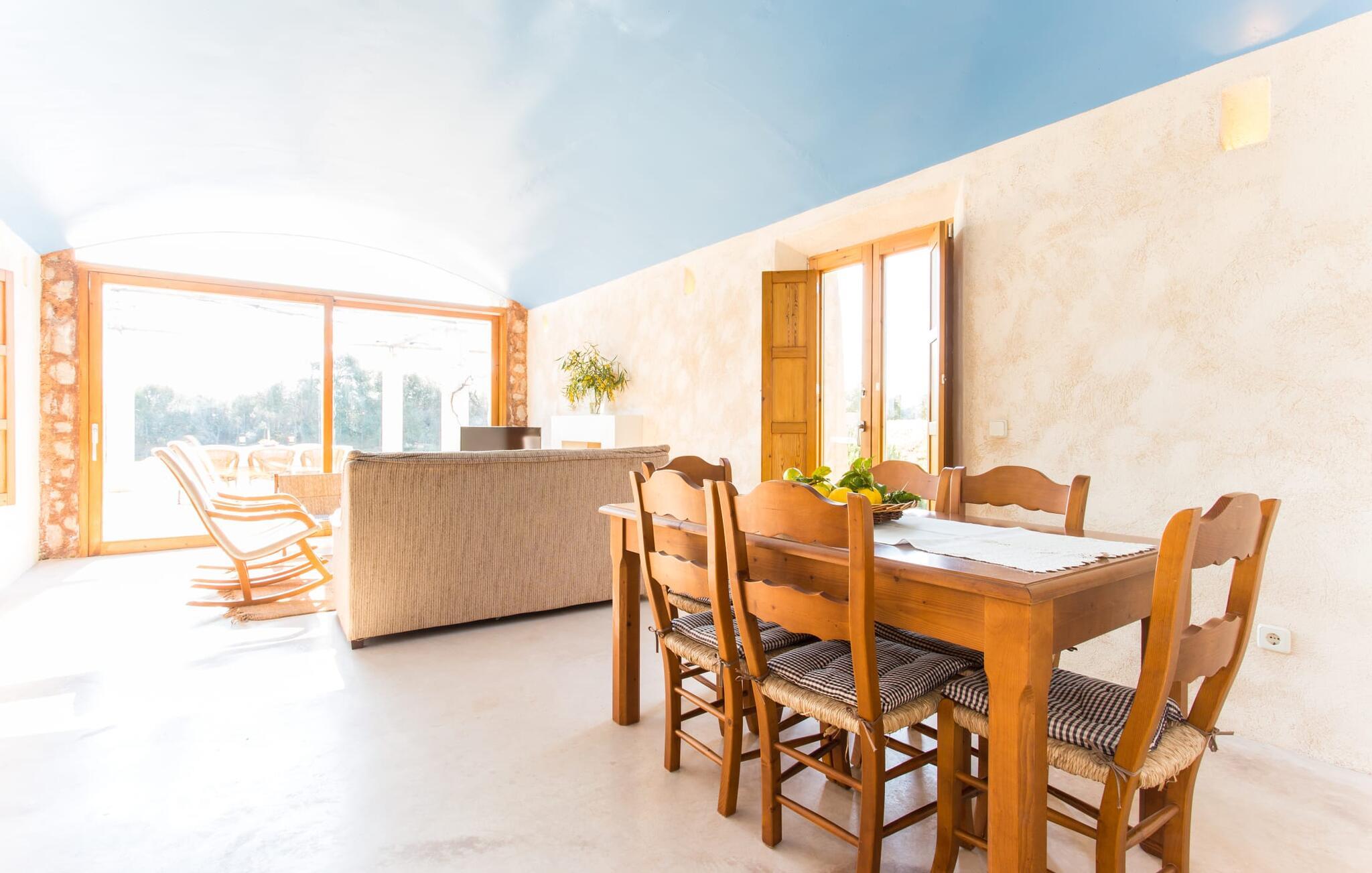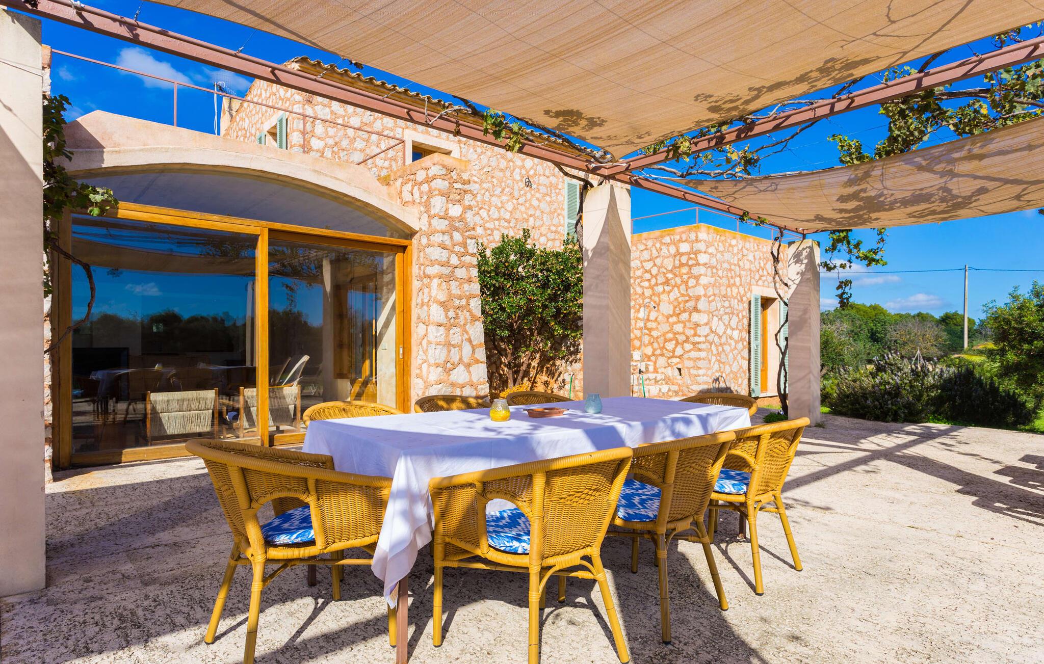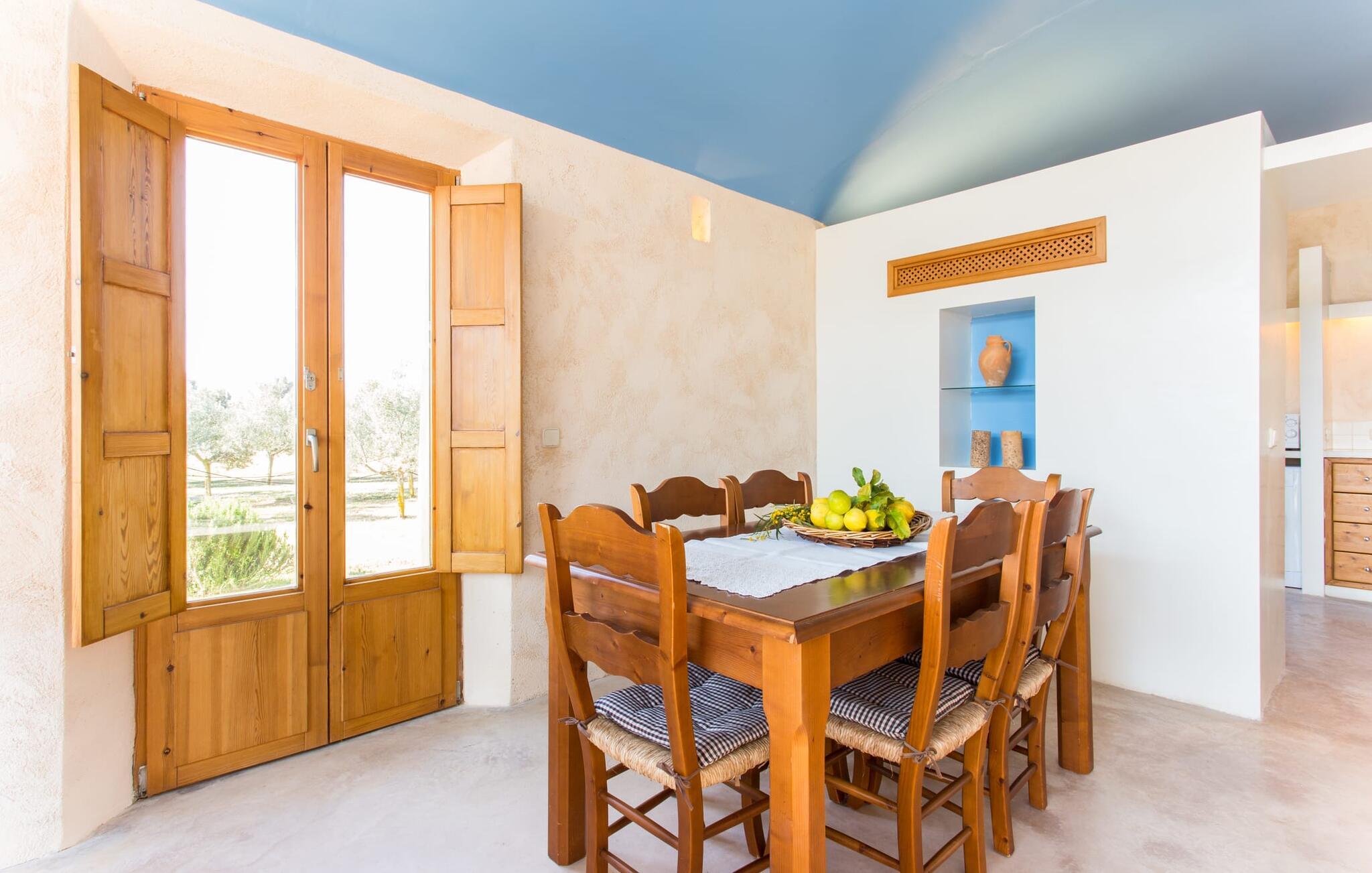 Fordyb jer i harmonien i det fri. De tilsyneladende uendelige udsigter er typiske for villaen - bølgende bakker smagt af en østlig salt brise fra det nærliggende hav. Brug et øjeblik på virkelig at værdsætte charmen ved denne fremragende beliggende villa, før I begiver jer ud for at nyde mangfoldigheden i en af strandbyerne. Dette er det “rigtige Mallorca”, som bliver mere og mere værdifuldt i takt med at drømmeøen også udvikles andre steder. Og mens I nyder disse udsigter, vil I blive forkælet med valg, om I vil slappe af i jeres egen private pool, se lækker fisk på grillen eller nyde en kold spansk øl på terrassen. Terrassen er en juvel i kronen på ejendommen. Planter, der klatrer op på forteltet, giver skygge. Tagterrasser er ideelle til at chatte i det fri og er tilgængelige fra stueetagen. Den rustikke atmosfære i villaen er forfriskende. Det let hvælvede loft i stuen minder om en charmerende vinkælder – men der fryser I bestemt ikke! En central pejs i rummet vil varme jer op på ingen tid. Dette samler jord (bakkerne), luft (himlen), vand (havet) og ild - de fire elementer, der findes så mange steder på øen. Fra opholdsområdet med sofa, rockers og lænestole kan I se en film, eller takket være moderne satellitteknologi kan I også se fladskærms-tv. Eller bare læn jer tilbage og lad fantasien få frit løb uden at skulle forlade den hyggelige pejs. Den kombinerede stue og spisestue med sit store bord fører direkte ind i køkkenområdet, hvor I finder alle bekvemmeligheder i en moderne husholdning, herunder en vaskemaskine. Fra køkkenet er der adgang til et af soveværelserne via en gang: Det ene badeværelse er direkte tilgængeligt via gangen og det andet støder op til det andet soveværelse på dette niveau. Når de dekorerede, stolede ejerne på klare, ligefremme konturer uden dekorative genstande. Det tredje soveværelse kan nås via trappen, som derefter fører til en alkove med en anden sofa. På den modsatte side af det resulterende atrium kan I få adgang til tagterrassen. Der er også et badeværelse på denne etage direkte ved siden af soveværelset, så alle jeres medrejsende kan nyde deres privatliv uden besværet med at stå i kø til badeværelset om morgenen. I kan endelig give frie tøjler til jeres følelse af eventyr fra det øjeblik, I vågner. Vores villa "Ca'n Carrió" scorer med sin landlige beliggenhed, og alligevel kan I være på kysten på ingen tid. Cala Bona-stranden ligger kun 1500 m væk og kan nås til fods. Med sin lavvandede indsejling i havet er denne kyststrækning særdeles velegnet til familier. Der er også en lille sportshavn, en promenade med mange butikker – og lækre lækkerier. I kan tage på skønne vandreture langs kysten – eller turde hoppe i vandet Cala Millor, Cala Ratjada og Portocristo, længere mod syd, er også en omvej værd. Inde i landet giver Son Servera og middelalderbyen Artà et glimt af, hvordan livet plejede at være på øen. Om aftenen kan I komme i kontakt med de originale mallorcanere på "Ca'n Carrió" og fortælle jeres egne historier foran pejsen. Enhver, der værdsætter klare linjer, vil føle sig hjemme i villaen "Ca'n Carrió": Beliggende i landlige omgivelser, er det omgivet af talrige palmer og middelhavstræer. Her er stille, men kun 5 minutter væk kan I fuldt ud nyde strandlivet i Cala Bona og Cala Millor. En palmeomkranset boulevard, udvalgte restauranter og mange interessante butikker kæmper om jeres opmærksomhed. En anden stor egenskab ved den attraktive østkyst er den fremragende vandkvalitet.