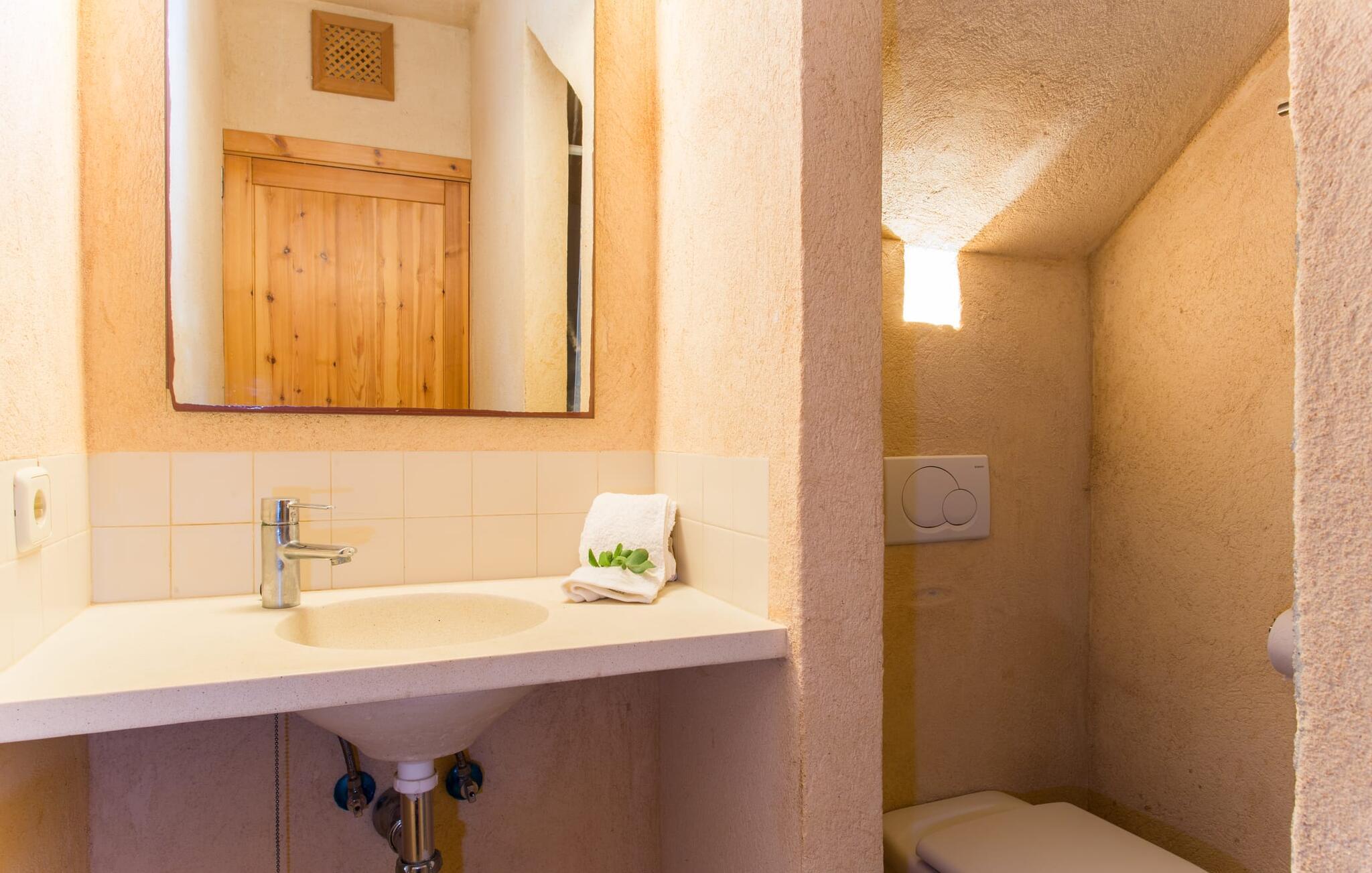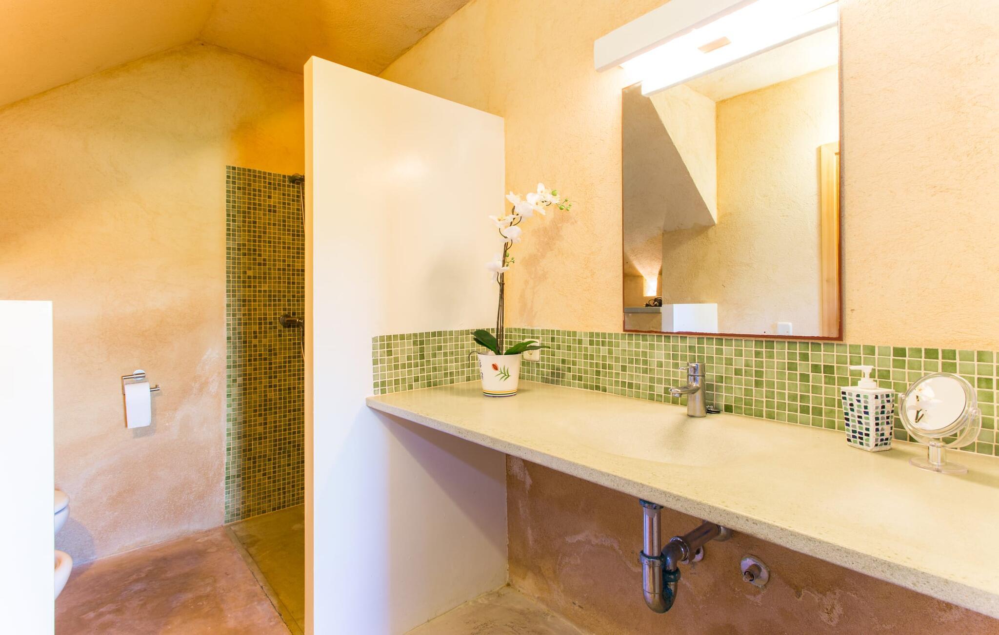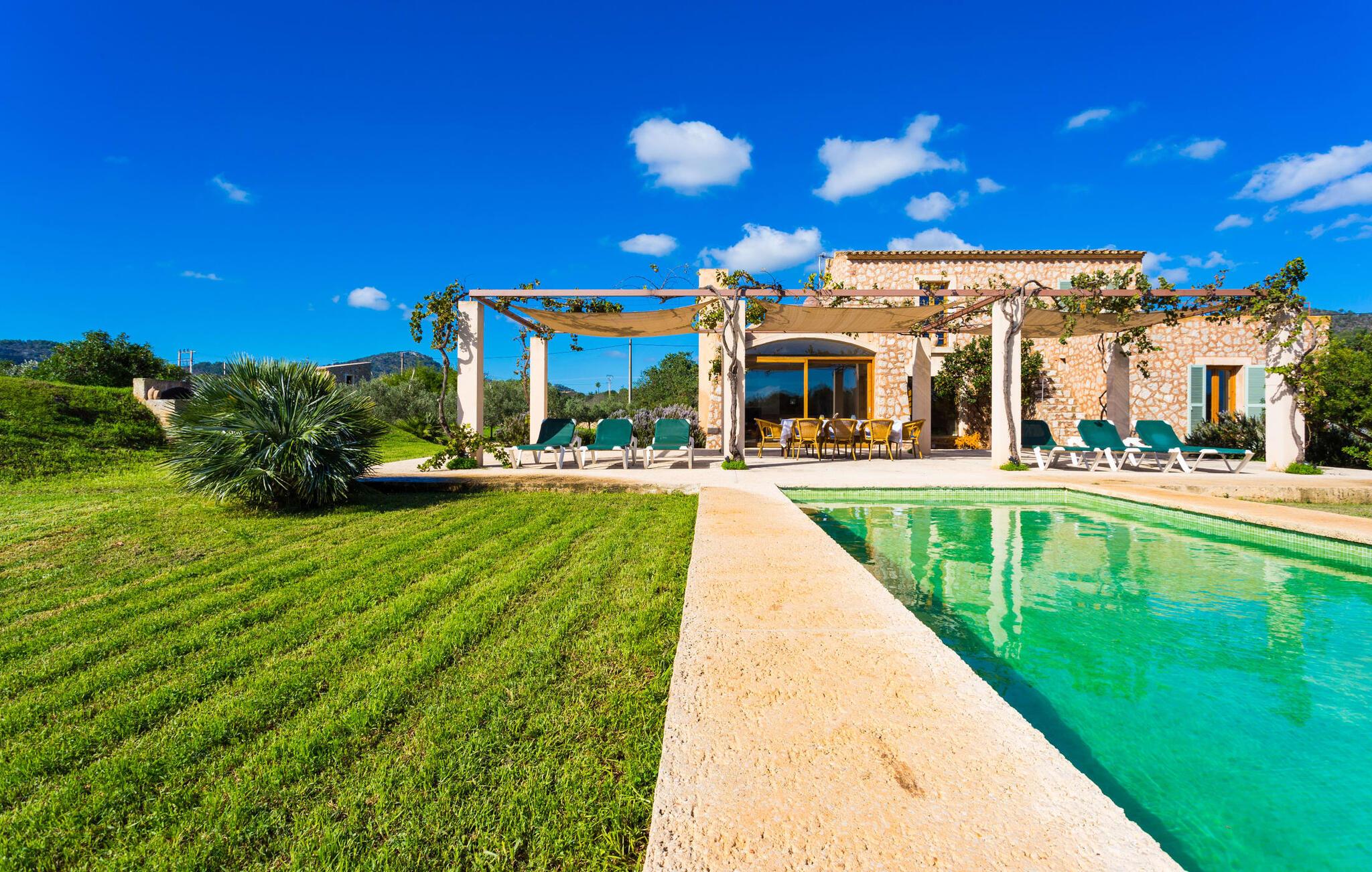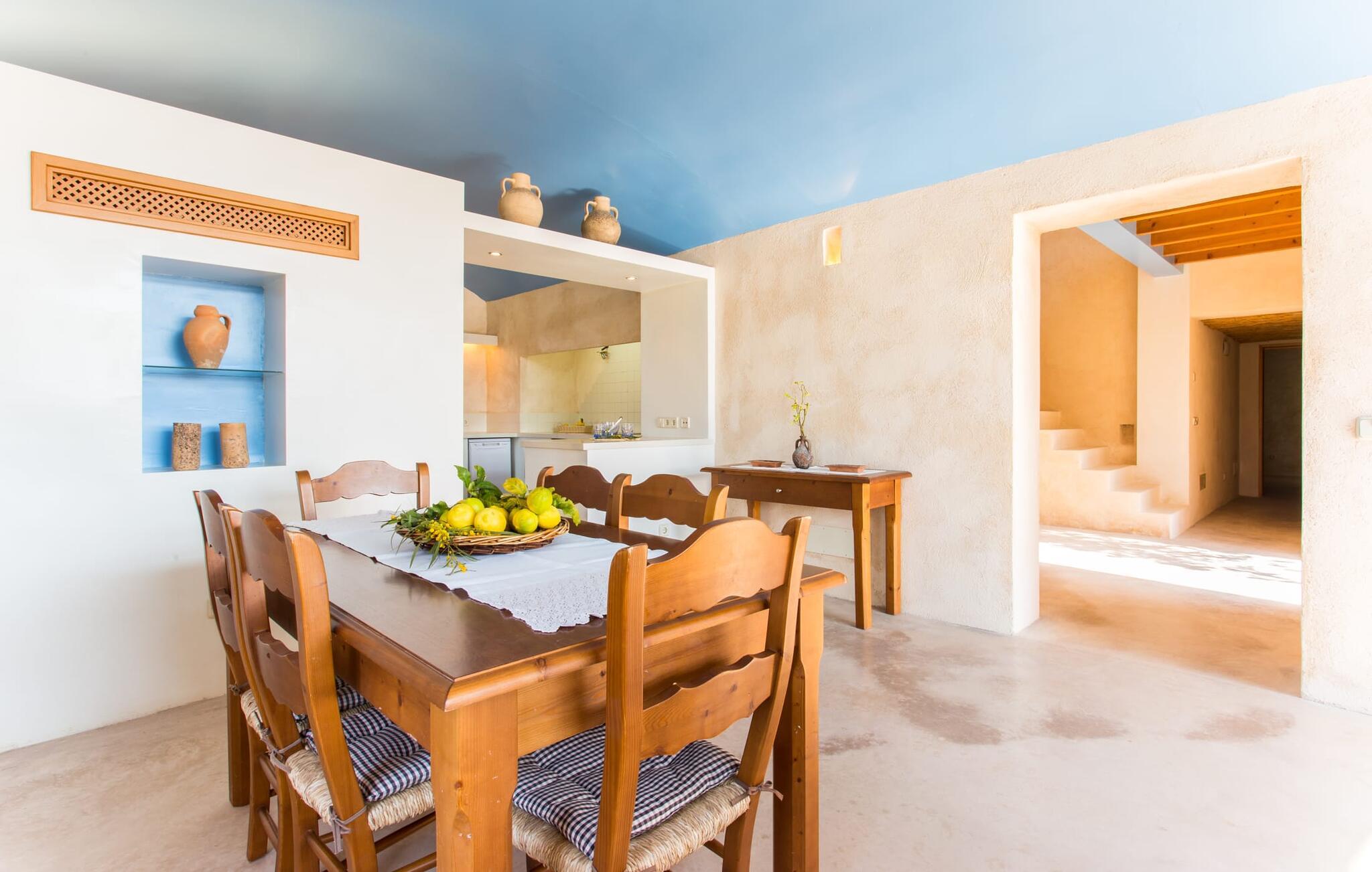 Fordyb jer i harmonien i det fri. De tilsyneladende uendelige udsigter er typiske for villaen - bølgende bakker smagt af en østlig salt brise fra det nærliggende hav. Brug et øjeblik på virkelig at værdsætte charmen ved denne fremragende beliggende villa, før I begiver jer ud for at nyde mangfoldigheden i en af strandbyerne. Dette er det “rigtige Mallorca”, som bliver mere og mere værdifuldt i takt med at drømmeøen også udvikles andre steder. Og mens I nyder disse udsigter, vil I blive forkælet med valg, om I vil slappe af i jeres egen private pool, se lækker fisk på grillen eller nyde en kold spansk øl på terrassen. Terrassen er en juvel i kronen på ejendommen. Planter, der klatrer op på forteltet, giver skygge. Tagterrasser er ideelle til at chatte i det fri og er tilgængelige fra stueetagen. Den rustikke atmosfære i villaen er forfriskende. Det let hvælvede loft i stuen minder om en charmerende vinkælder – men der fryser I bestemt ikke! En central pejs i rummet vil varme jer op på ingen tid. Dette samler jord (bakkerne), luft (himlen), vand (havet) og ild - de fire elementer, der findes så mange steder på øen. Fra opholdsområdet med sofa, rockers og lænestole kan I se en film, eller takket være moderne satellitteknologi kan I også se fladskærms-tv. Eller bare læn jer tilbage og lad fantasien få frit løb uden at skulle forlade den hyggelige pejs. Den kombinerede stue og spisestue med sit store bord fører direkte ind i køkkenområdet, hvor I finder alle bekvemmeligheder i en moderne husholdning, herunder en vaskemaskine. Fra køkkenet er der adgang til et af soveværelserne via en gang: Det ene badeværelse er direkte tilgængeligt via gangen og det andet støder op til det andet soveværelse på dette niveau. Når de dekorerede, stolede ejerne på klare, ligefremme konturer uden dekorative genstande. Det tredje soveværelse kan nås via trappen, som derefter fører til en alkove med en anden sofa. På den modsatte side af det resulterende atrium kan I få adgang til tagterrassen. Der er også et badeværelse på denne etage direkte ved siden af soveværelset, så alle jeres medrejsende kan nyde deres privatliv uden besværet med at stå i kø til badeværelset om morgenen. I kan endelig give frie tøjler til jeres følelse af eventyr fra det øjeblik, I vågner. Vores villa "Ca'n Carrió" scorer med sin landlige beliggenhed, og alligevel kan I være på kysten på ingen tid. Cala Bona-stranden ligger kun 1500 m væk og kan nås til fods. Med sin lavvandede indsejling i havet er denne kyststrækning særdeles velegnet til familier. Der er også en lille sportshavn, en promenade med mange butikker – og lækre lækkerier. I kan tage på skønne vandreture langs kysten – eller turde hoppe i vandet Cala Millor, Cala Ratjada og Portocristo, længere mod syd, er også en omvej værd. Inde i landet giver Son Servera og middelalderbyen Artà et glimt af, hvordan livet plejede at være på øen. Om aftenen kan I komme i kontakt med de originale mallorcanere på "Ca'n Carrió" og fortælle jeres egne historier foran pejsen. Enhver, der værdsætter klare linjer, vil føle sig hjemme i villaen "Ca'n Carrió": Beliggende i landlige omgivelser, er det omgivet af talrige palmer og middelhavstræer. Her er stille, men kun 5 minutter væk kan I fuldt ud nyde strandlivet i Cala Bona og Cala Millor. En palmeomkranset boulevard, udvalgte restauranter og mange interessante butikker kæmper om jeres opmærksomhed. En anden stor egenskab ved den attraktive østkyst er den fremragende vandkvalitet.