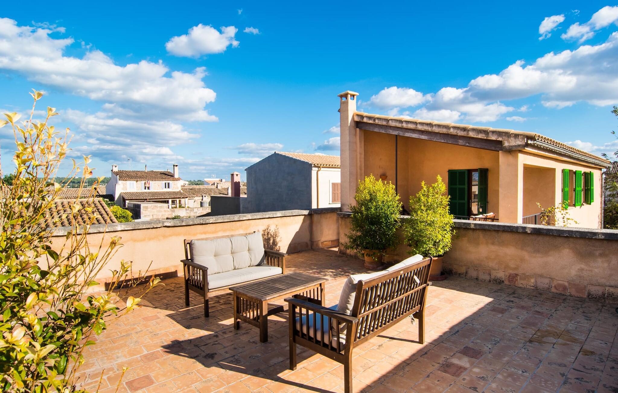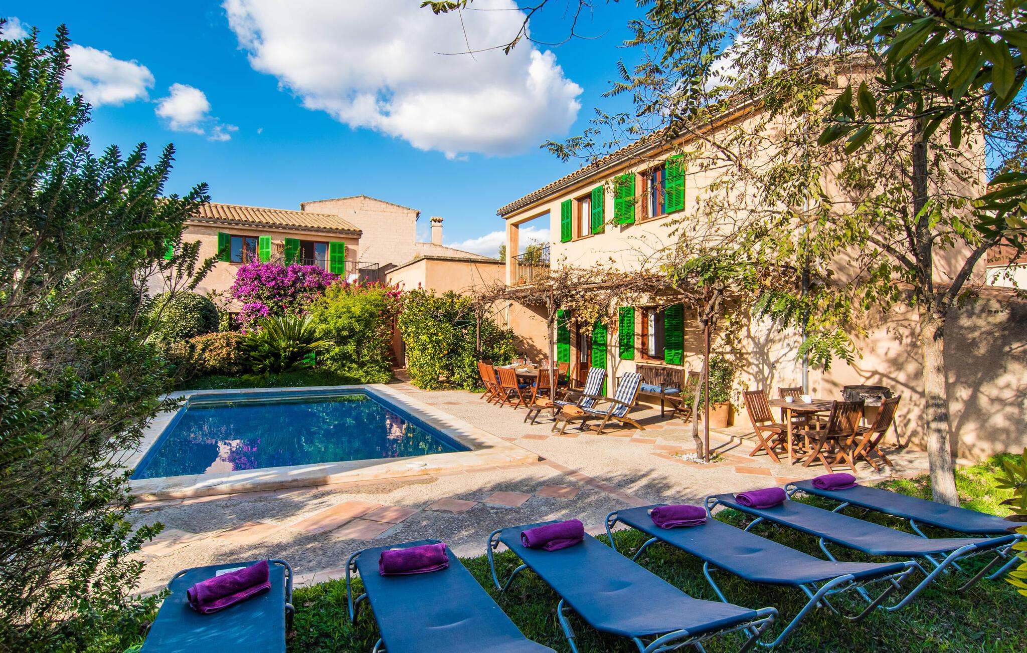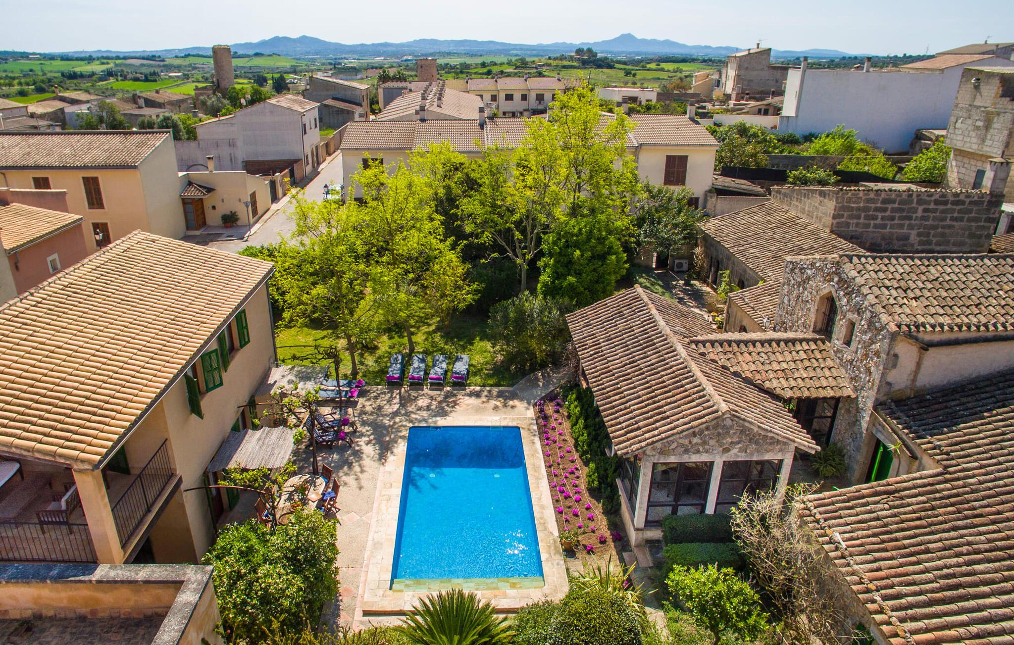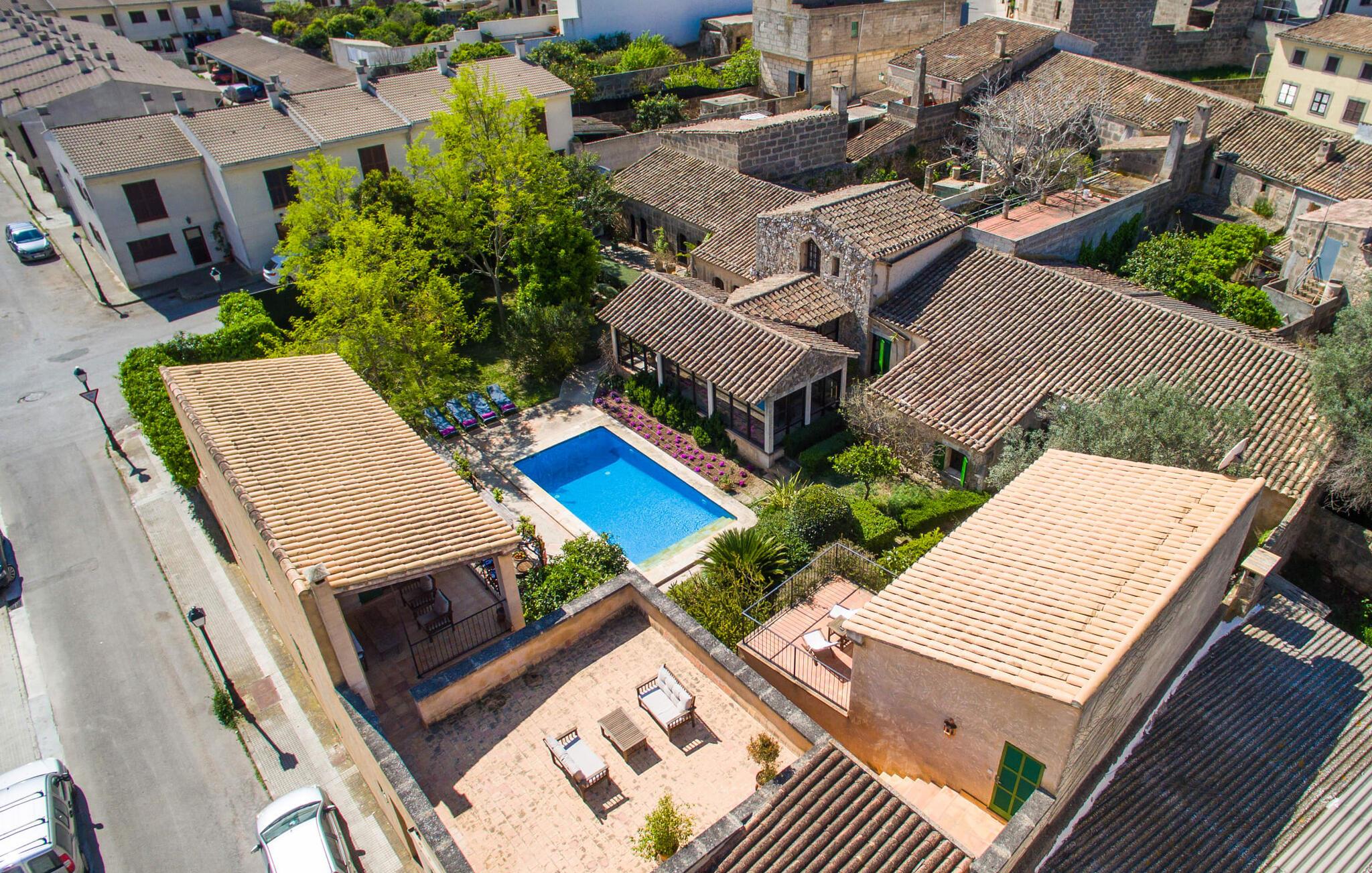 Et kig på specifikationerne i vores korte ejendomsbeskrivelse vil give jer et indtryk af eksklusiviteten ved den betagende byvilla "Can Casta" med sine æblegrønne persienner, beliggende i centrum af en typisk mallorcansk by med middelalderlig karakter. Alene den U-formede planløsning af de tre bygninger afspejler deres rummelighed og følelse af privatliv. En storslået have, fyldt med frodig, blomstrende vegetation, små palmer, træer og et levende citrontræ, samt græsplæner og terrasser, omgiver de forskellige boligenheder og gør denne grønne oase til noget særligt. Den forfriskende pool ligger midt i gårdhaven. Liggestolene er ideelt placeret på den skyggefulde græsplæne, I kan også nyde solen på en af ??de mange liggestole på de brolagte rekreative områder. Der er også mange andre siddepladser på ejendommen og i bygningerne: Smukke (tag)terrasser, solrige altaner, loggiaer og drømmende alkover med borde og bænke tilbyder masser af plads til at slappe af. Uanset om I leder efter et roligt sted at slappe af i det smukke landskab eller en central beliggenhed i hjertet af en smuk lille by med alle faciliteter kun en kort gåtur væk, har dette sted det hele: et vidunderligt kompromis mellem en landlig ferie og alle fordelene ved en by. I og jeres medrejsende vil helt sikkert finde et yndlingssted at nyde freden og roen, inden I samles om aftenen for at hygge jer i et af de mange loungeområder indenfor eller udenfor ejendommen.