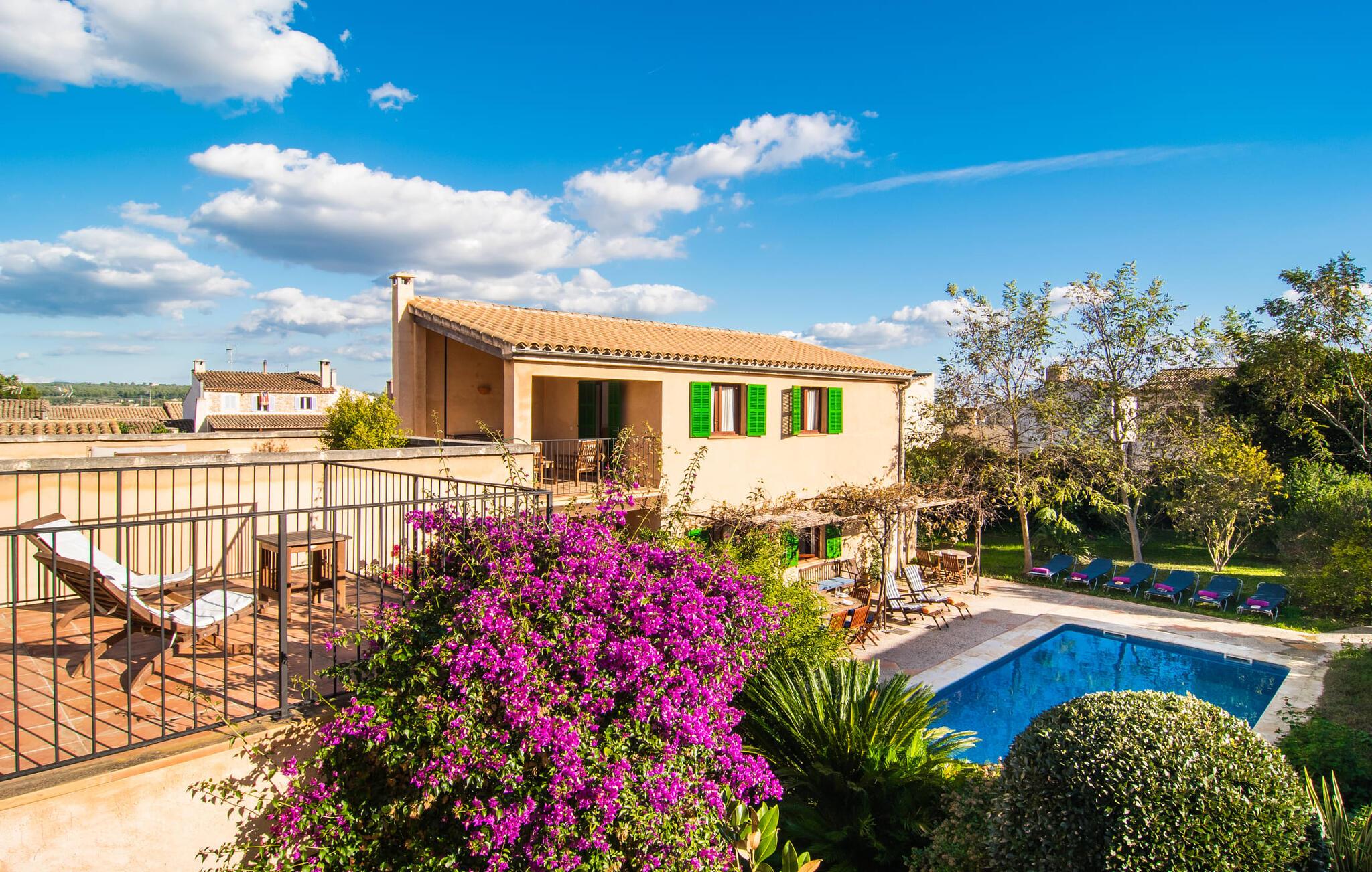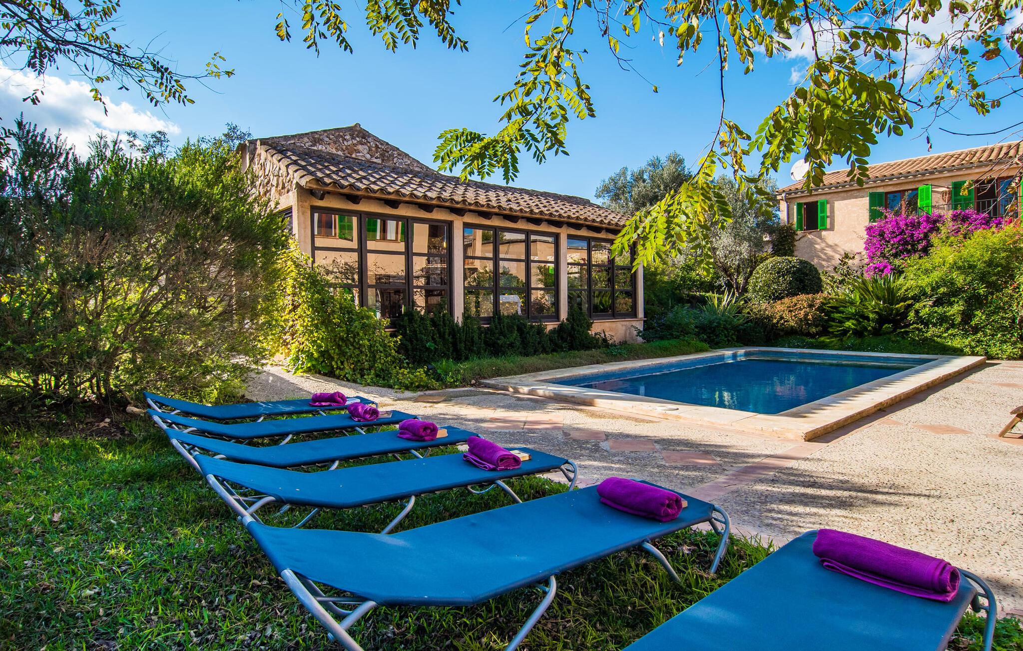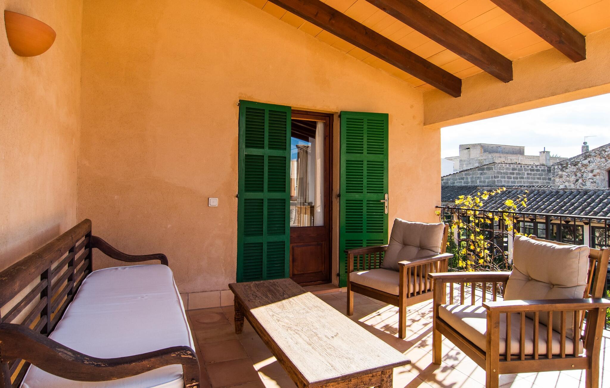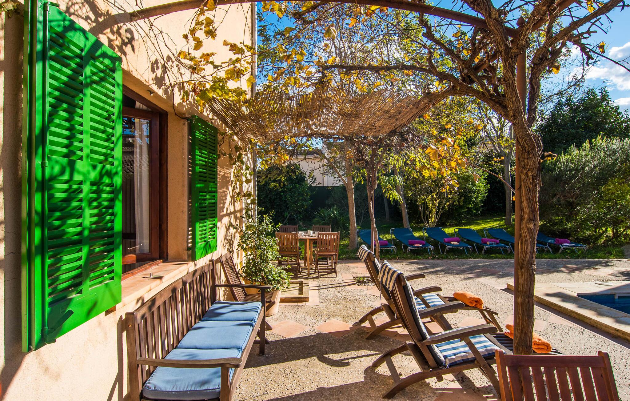 Et kig på specifikationerne i vores korte ejendomsbeskrivelse vil give jer et indtryk af eksklusiviteten ved den betagende byvilla "Can Casta" med sine æblegrønne persienner, beliggende i centrum af en typisk mallorcansk by med middelalderlig karakter. Alene den U-formede planløsning af de tre bygninger afspejler deres rummelighed og følelse af privatliv. En storslået have, fyldt med frodig, blomstrende vegetation, små palmer, træer og et levende citrontræ, samt græsplæner og terrasser, omgiver de forskellige boligenheder og gør denne grønne oase til noget særligt. Den forfriskende pool ligger midt i gårdhaven. Liggestolene er ideelt placeret på den skyggefulde græsplæne, I kan også nyde solen på en af ??de mange liggestole på de brolagte rekreative områder. Der er også mange andre siddepladser på ejendommen og i bygningerne: Smukke (tag)terrasser, solrige altaner, loggiaer og drømmende alkover med borde og bænke tilbyder masser af plads til at slappe af. Uanset om I leder efter et roligt sted at slappe af i det smukke landskab eller en central beliggenhed i hjertet af en smuk lille by med alle faciliteter kun en kort gåtur væk, har dette sted det hele: et vidunderligt kompromis mellem en landlig ferie og alle fordelene ved en by. I og jeres medrejsende vil helt sikkert finde et yndlingssted at nyde freden og roen, inden I samles om aftenen for at hygge jer i et af de mange loungeområder indenfor eller udenfor ejendommen.