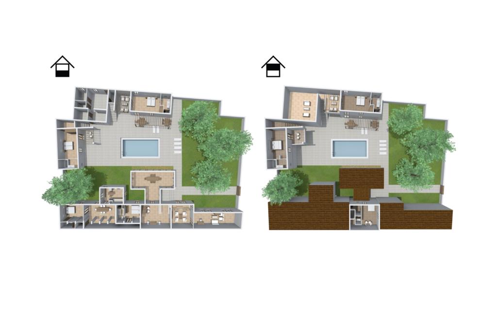 700 m² er ikke kun en imponerende størrelse, det lover også et meget omhyggeligt designet interiør med stor sans for detaljer og kun materialer af højeste kvalitet. Hver enhed har to meget rummelige soveværelser på forskellige niveauer med trendy badeværelser i smuk natursten. Alle seks opholdsområder har adgang til enten en af ??terrasserne eller en solrig balkon – det er svært at forestille sig noget smukkere. Eller kunne det? For fællesområderne i hovedhuset er simpelthen fænomenale. Hvid stil møder hyttecharme – denne vidunderlige blanding skaber en stil, der passer perfekt til et klassisk mallorcansk landsted, yderst komfortabelt, men smagfuldt designet, og eksemplificerer eksklusivitet med lækre kvalitetsløsninger. Udover stuen og to spisestuer har hovedbygningen også en udestue, der tilbyder en storslået udsigt over haven og poolområdet. Store vinduer oversvømmer de delvist synlige stenvægge med behageligt lys. Værelset på første sal i hovedhuset, med et separat gæstetoilet, tilbyder plads til en afslappende yogasession, som selvfølgelig også kan finde sted udenfor i haven. Dette sted giver jer tid: tid til sociale sammenkomster i behagelige omgivelser, tid til jer selv og tid til at slappe af. Bare tag en dyb indånding og nyd jeres tid væk – jeres daglige rutine er helt op til jer.