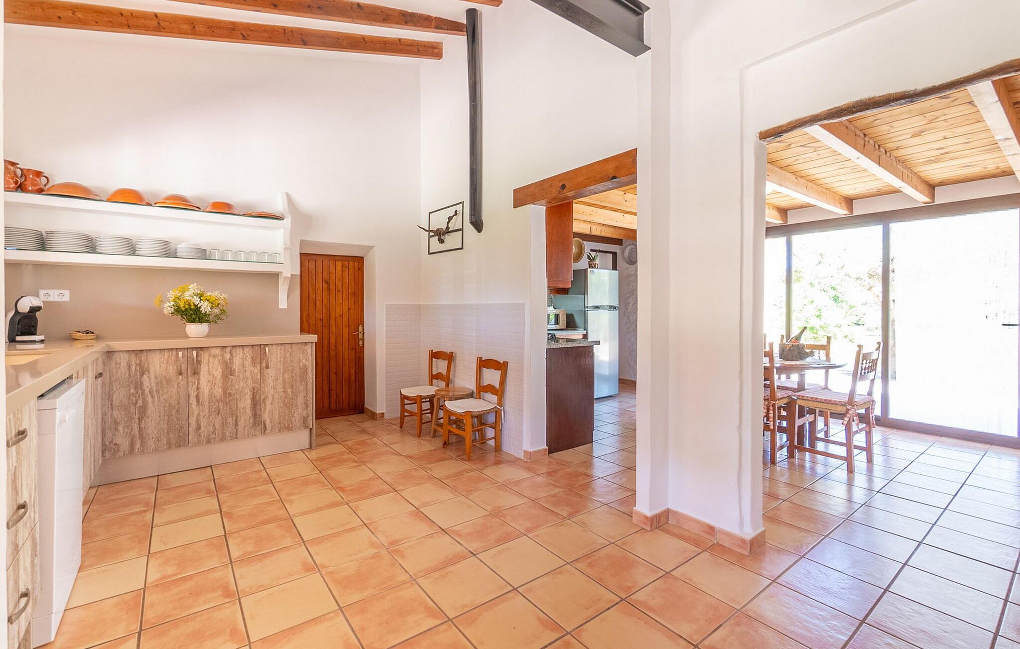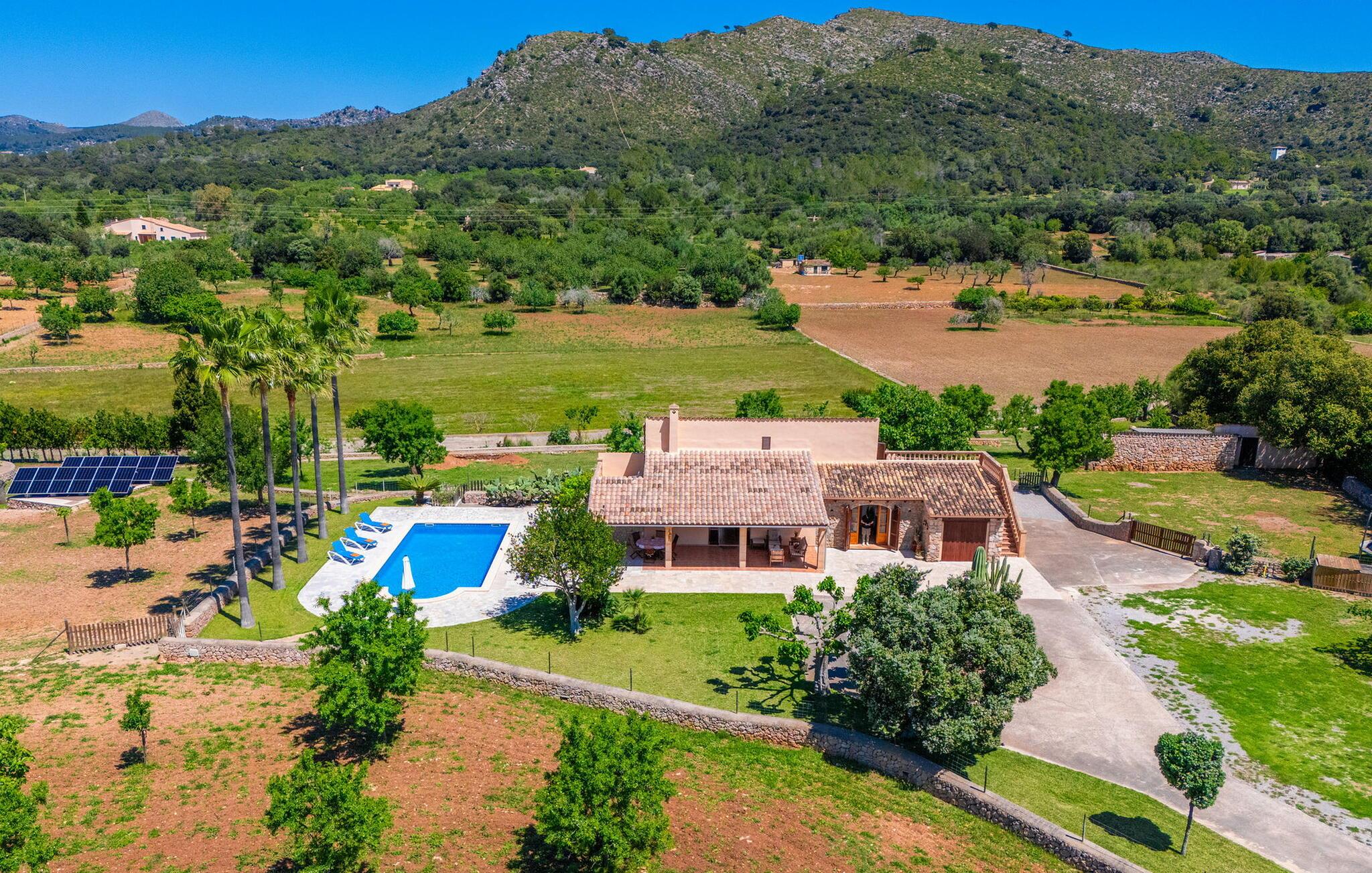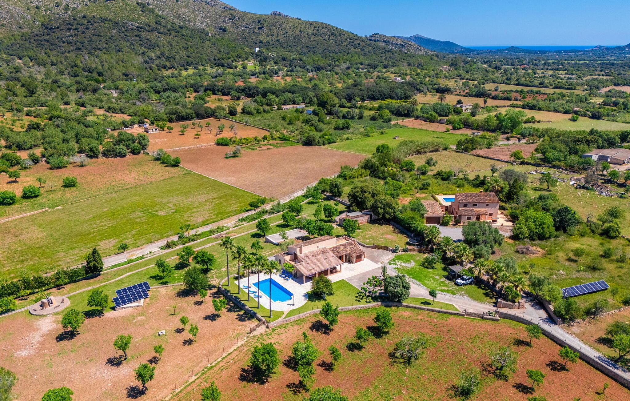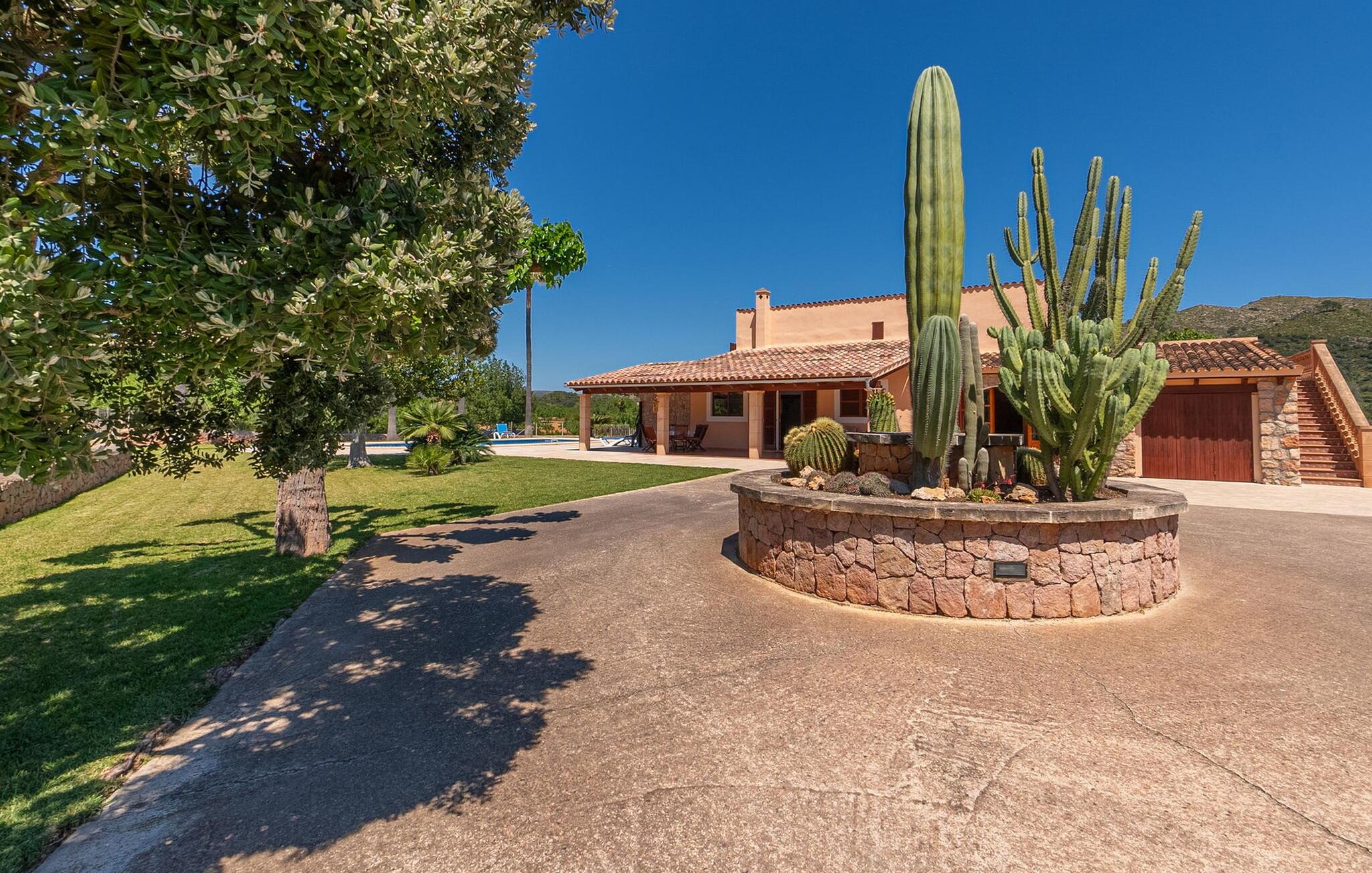 Den charmerende villa "Can Cremat" er et smukt ombygget gammelt bondehus, der problemfrit kombinerer moderne komfort med sin autentiske karakter. Beliggende i en lukket have prydet med modne træer, citrontræer og lyse blomstrende planter, tilbyder villaen et roligt tilflugtssted. Den store græsplæne byder på masser af skygge at slappe af i, mens forskellige siddeområder inviterer jer til at slappe af med en bog. Udendørsområdet har en indbygget grill, perfekt til aftensammenkomster under romantisk havebelysning, suppleret med en fantastisk udsigt over bakken. Den imponerende pool, med sit unikke bugtende design, er omgivet af en terrasse udstyret med kvalitets liggestole og parasoller, ideel til at solbade eller nyde den blide brise. Indvendigt byder villaen på en rummelig foyer, der fører til et fuldt udstyret køkken, to spisepladser og en lys stue med et hyggeligt tv-område. Gangen fører til et soveværelse med dobbeltseng og et stort badeværelse, der bekvemt åbner ud til terrassen ved poolen. Ovenpå har yderligere to soveværelser med dobbeltsenge (et med to enkeltsenge) hver adgang til private tagterrasser, hvilket sikrer privatlivets fred for alle gæster og gør dette til det perfekte familieferiested. Fincaen "Can Cremat" er beliggende nær stranden og ikke langt fra middelalderlandsbyen Artà, i en rolig og landlig beliggenhed, der byder på en sensationel udsigt fra de bakkede omgivelser til kystbyen Capdepera. Nedenfor Capdepera ligger havnebyen Cala Ratjada med sin smukke strandpromenade og byder på adskillige indkøbsmuligheder. De smukke sandstrande, herunder flere spektakulære naturstrande, er let tilgængelige med lejebil.