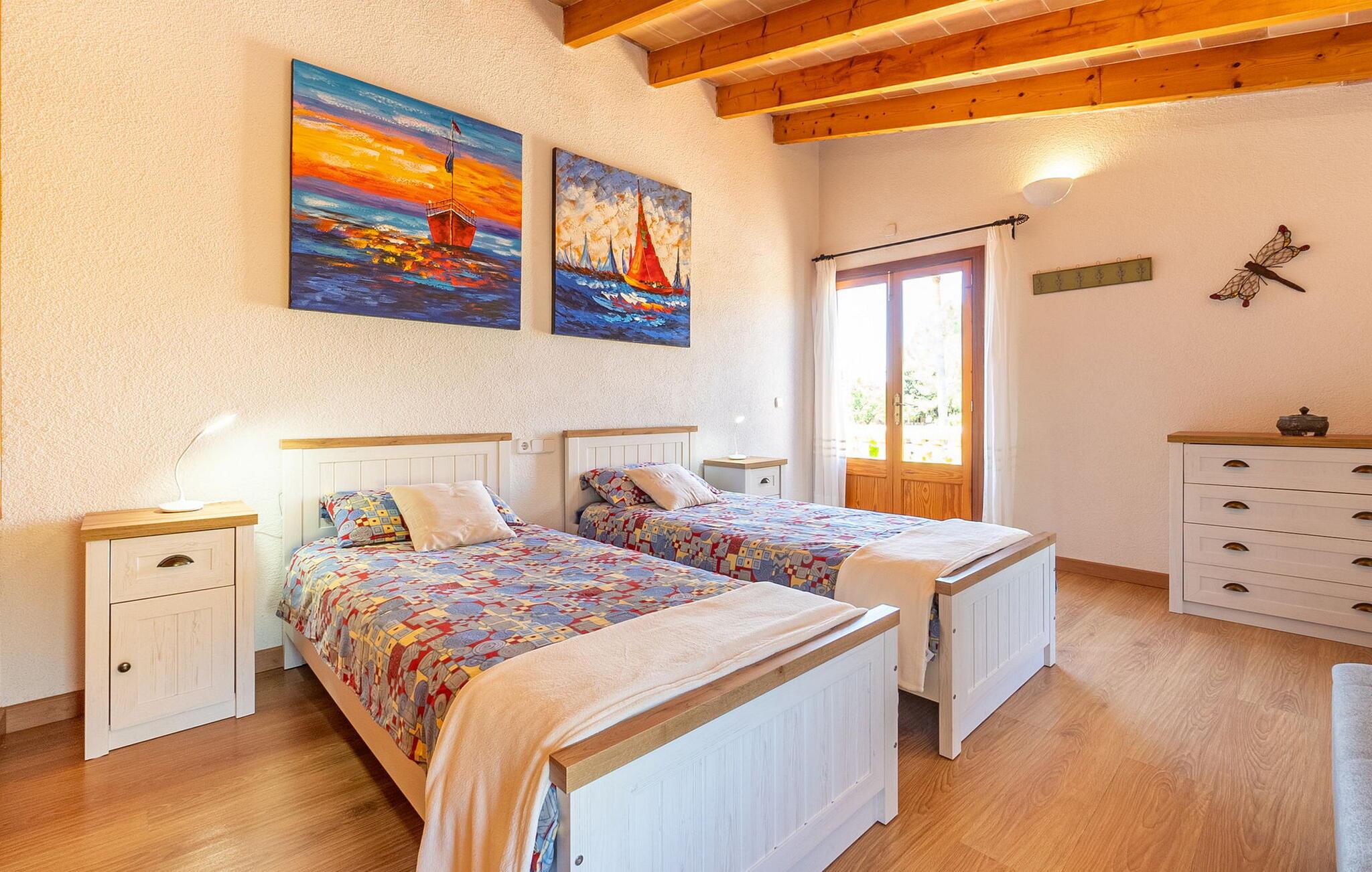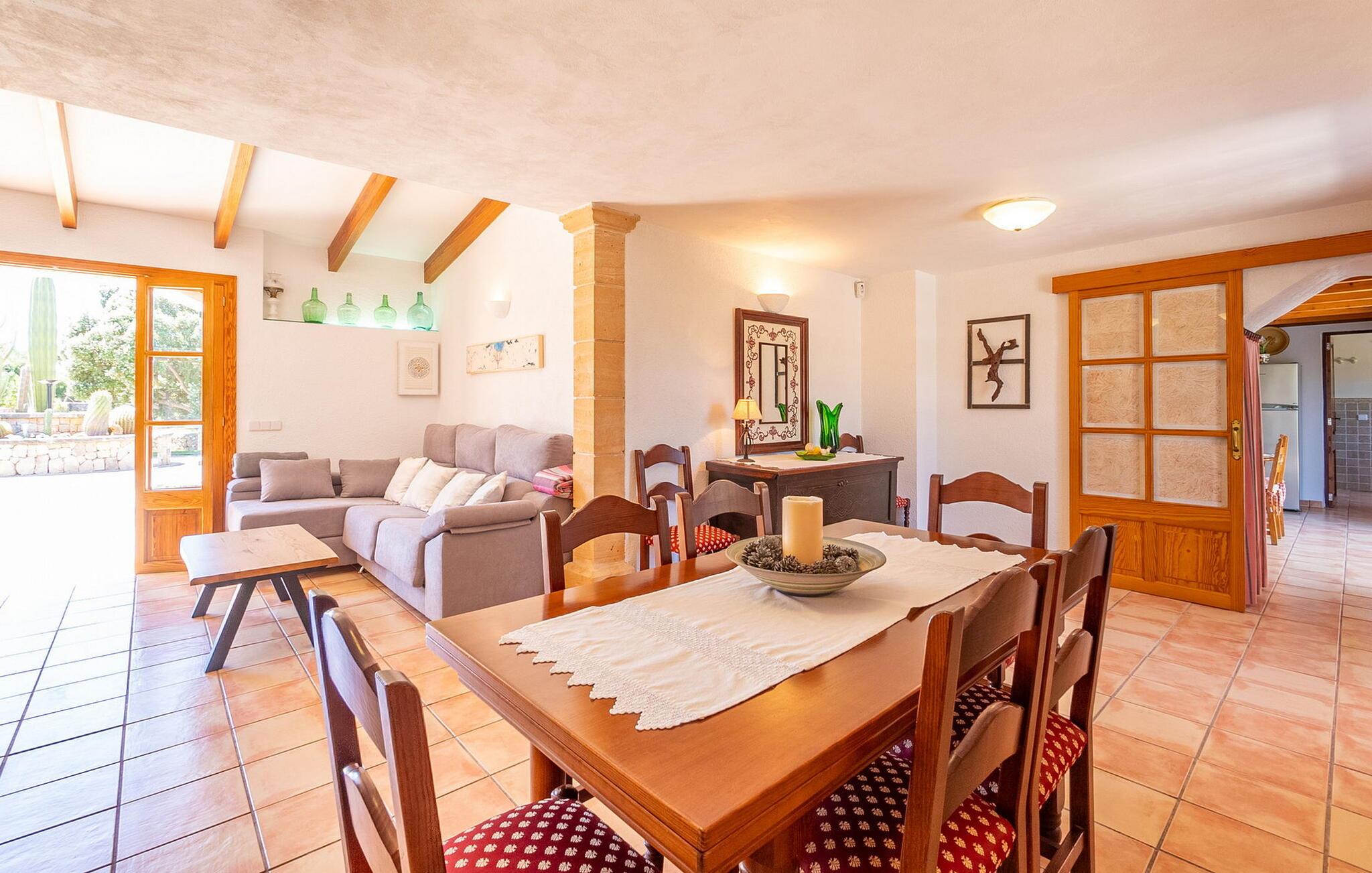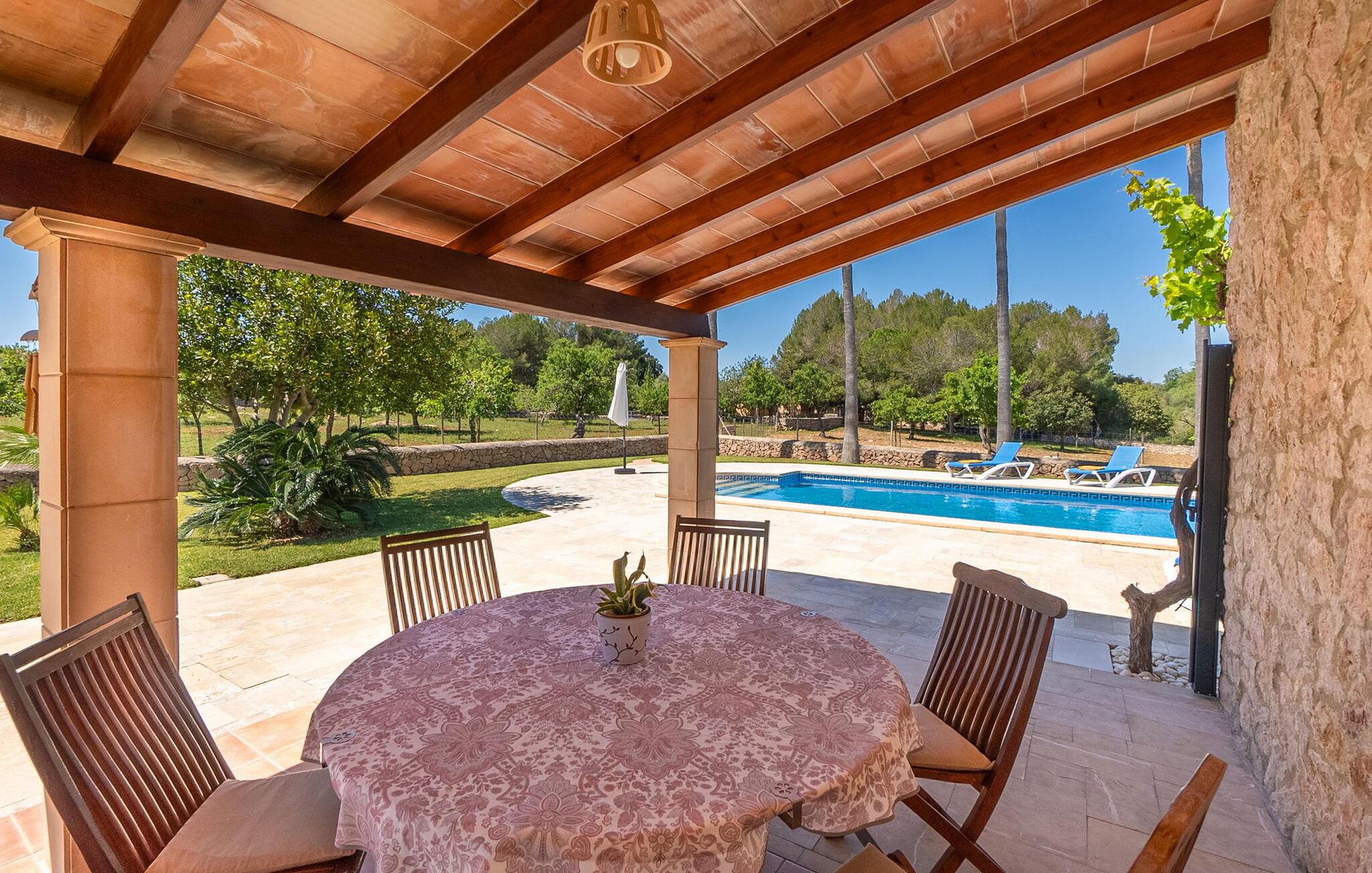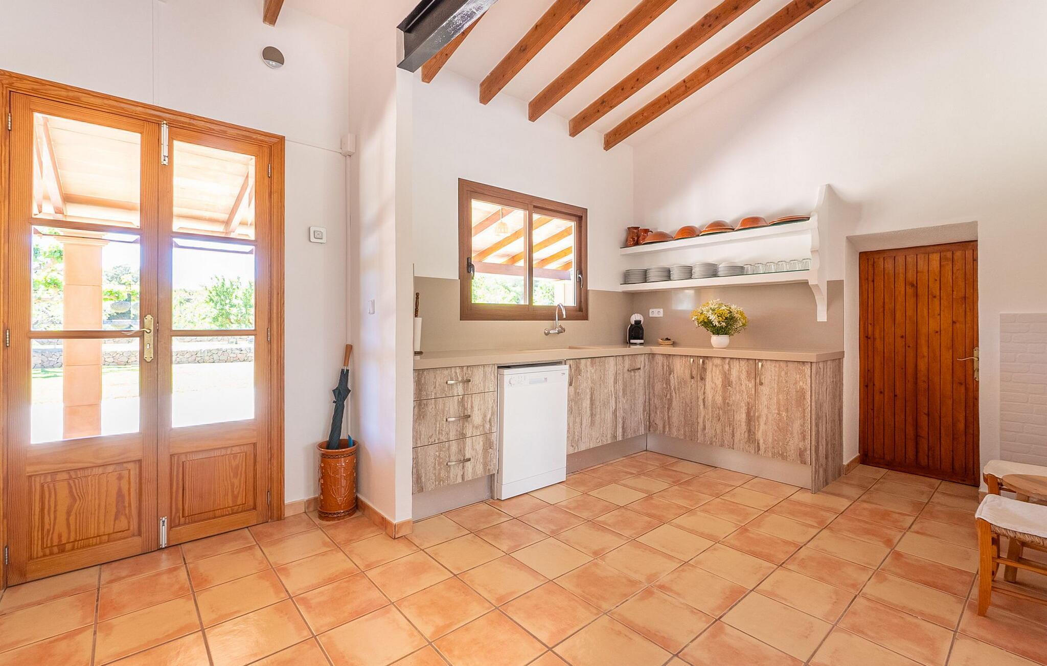 Den charmerende villa "Can Cremat" er et smukt ombygget gammelt bondehus, der problemfrit kombinerer moderne komfort med sin autentiske karakter. Beliggende i en lukket have prydet med modne træer, citrontræer og lyse blomstrende planter, tilbyder villaen et roligt tilflugtssted. Den store græsplæne byder på masser af skygge at slappe af i, mens forskellige siddeområder inviterer jer til at slappe af med en bog. Udendørsområdet har en indbygget grill, perfekt til aftensammenkomster under romantisk havebelysning, suppleret med en fantastisk udsigt over bakken. Den imponerende pool, med sit unikke bugtende design, er omgivet af en terrasse udstyret med kvalitets liggestole og parasoller, ideel til at solbade eller nyde den blide brise. Indvendigt byder villaen på en rummelig foyer, der fører til et fuldt udstyret køkken, to spisepladser og en lys stue med et hyggeligt tv-område. Gangen fører til et soveværelse med dobbeltseng og et stort badeværelse, der bekvemt åbner ud til terrassen ved poolen. Ovenpå har yderligere to soveværelser med dobbeltsenge (et med to enkeltsenge) hver adgang til private tagterrasser, hvilket sikrer privatlivets fred for alle gæster og gør dette til det perfekte familieferiested. Fincaen "Can Cremat" er beliggende nær stranden og ikke langt fra middelalderlandsbyen Artà, i en rolig og landlig beliggenhed, der byder på en sensationel udsigt fra de bakkede omgivelser til kystbyen Capdepera. Nedenfor Capdepera ligger havnebyen Cala Ratjada med sin smukke strandpromenade og byder på adskillige indkøbsmuligheder. De smukke sandstrande, herunder flere spektakulære naturstrande, er let tilgængelige med lejebil.