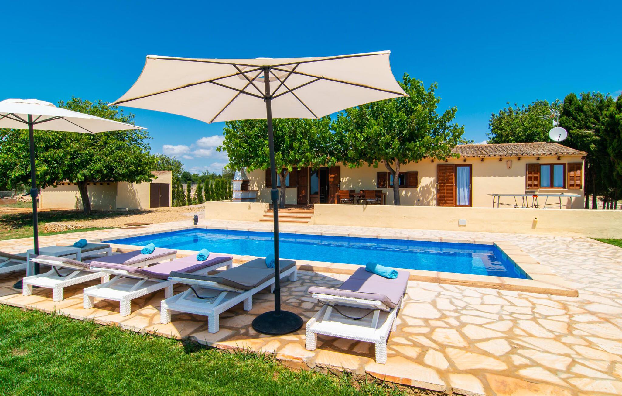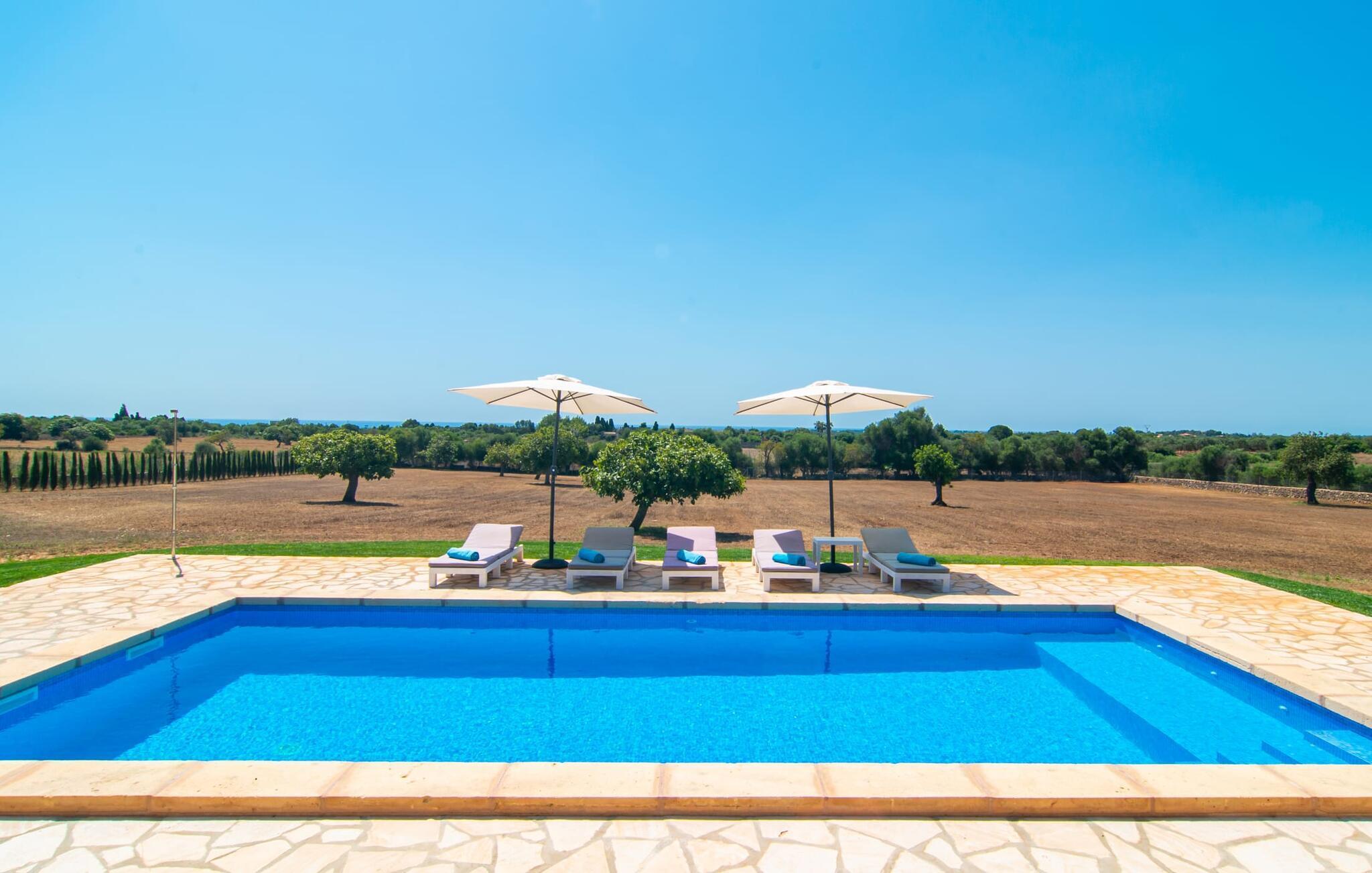 Et smukt, muntert, gult hus for op til fem personer på en grund på over 14.000 m² midt i den smukke natur på den østlige del af øen: dette er villaen "Can Crespinetlo Nou". Da der næsten ikke er nogen naboer her, kan du nyde panoramaudsigten over det omkringliggende landskab i fuldstændig fred og ro. Det dybblå middelhav skinner i det fjerne, men du behøver ikke at hoppe ind i bilen for at køle dig ned i vandet: lige ved siden af huset er der en let skrånende pool med udendørs bruser, hvor du enten kan svømme længder eller bare slappe af på en lilo - mest med en masse sol takket være den sydvendte beliggenhed. Hele det rummelige terrasseområde nyder også godt af masser af sol. Poolen tiltrækker med komfortable liggestole og et par skyggefulde parasoller og ved huset kan du sætte dig ned for at spise ved siden af to smukt integrerede træer, grillen venter allerede på dig. Hvis du foretrækker noget mere aktivt, kan du slippe dampen med et spil bordtennis. Dette er et Fincallorca feriehus. Interiøret i "Can Crespinetlo Nou" er behageligt og behageligt reserveret. Hvide vægge og brune trædetaljer som vinduesrammer, loftsbjælker og møbler supplerer hinanden perfekt; Overdreven dekoration blev bevidst undgået. Alle værelser kan findes komfortabelt på ét niveau. Det åbne køkken af høj kvalitet med smukke fliser fører til spisepladsen med et stort bord og tilhørende stole. Efter dit måltid kan du sidde i en af de komfortable sofaer lige ved siden af spisebordet og nyde knitren fra den brændende pejs eller en spændende aften med fjernsyn med et glas vin. Er du træt, kan du trække dig tilbage til et af de fire soveværelser, hvoraf to er dobbeltværelser og et enkeltværelse. To moderne badeværelser med brusere fra gulv til loft, hvoraf det ene har eget bad, fuldender boligkomforten. Hvis du sætter pris på smukke landskaber og nyder at tilbringe tid i naturen, så har du fundet det perfekte feriehus: du kan tage en skøn tur rundt i villaen eller tage på cykelture. Og bedst af alt: shopping og alle bekvemmeligheder i en by kan findes mindre end 5 km væk. Efter en kort køretur i en lejebil langs vejen, som kan høres afhængigt af vindretningen, når du den smukke lille havneby Porto Cristo. Der er ingen spor af masseturisme: traditionelle stenhuse og imponerende hvide villaer præger stedet. Middelaldercentret tiltrækker med romantiske, smalle gader og mange historiske bygninger. På den største shoppinggade Passeig de la Sirena finder du hyggelige butikker, gode restauranter og indbydende caféer. Du kan også bruge en dag på Porto Cristo-stranden, som byder på en velholdt strand med lavvandet indsejling i vandet og en livlig strandpromenade, ideel for familier med børn og også meget populær blandt lokalbefolkningen. Et smukt hus på en kæmpe grund, vendt mod syd, med pool og solterrasse lige foran døren og havet så tæt på, at man endda kan se det fra terrassen: en-etagers villaen "Can Crespinetlo Nou" er omgivet af natur, men alligevel kun 4,4 km fra Porto Cristo på den østlige del af Mallorca. Den lille, men ekstraordinære bystrand ligger kun 4,7 km væk med lejebil. Vi anser denne bolig for tilgængelig for vores gæster med nedsat mobilitet, men vi opfordrer alle gæster til at overveje boligens egnethed baseret på deres egne krav.