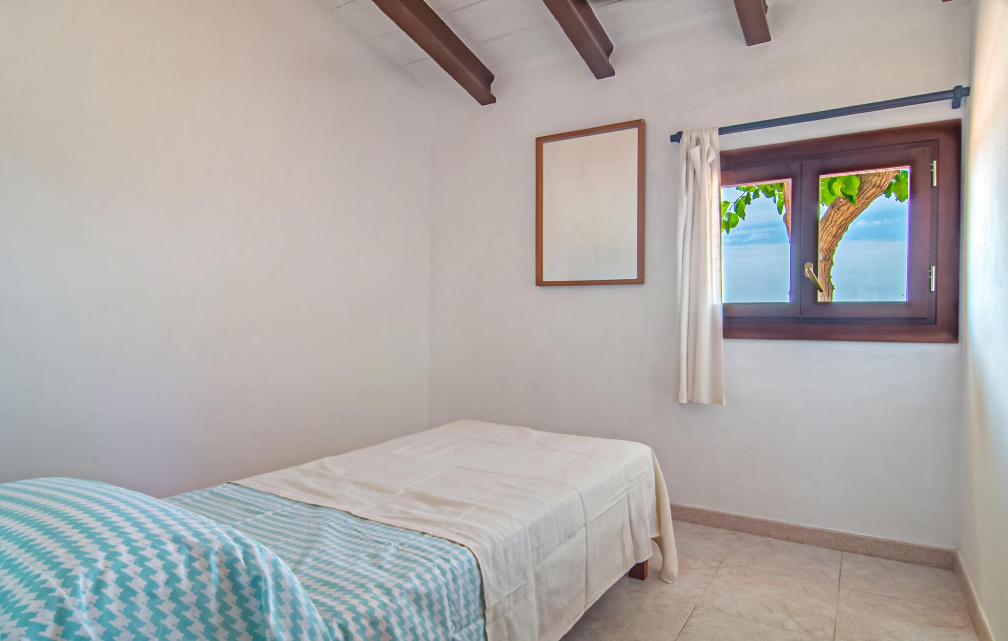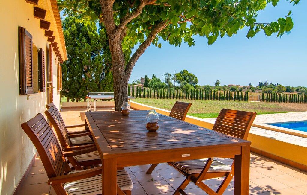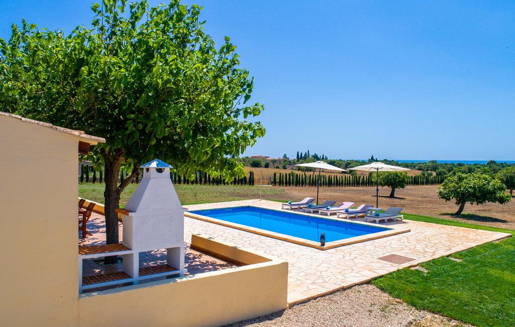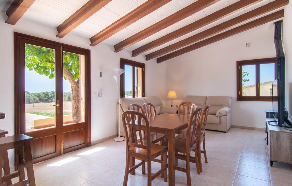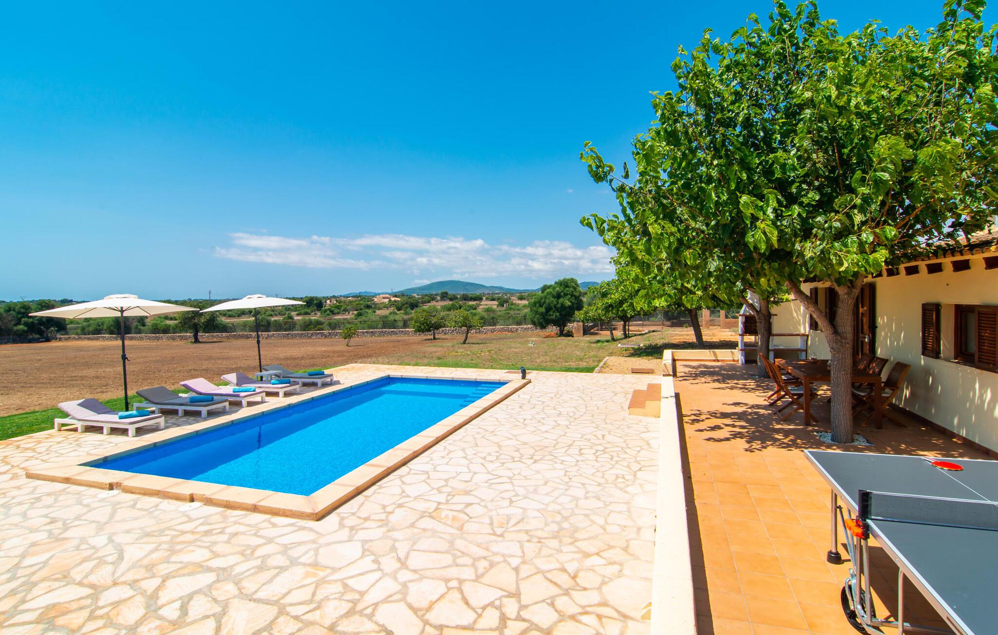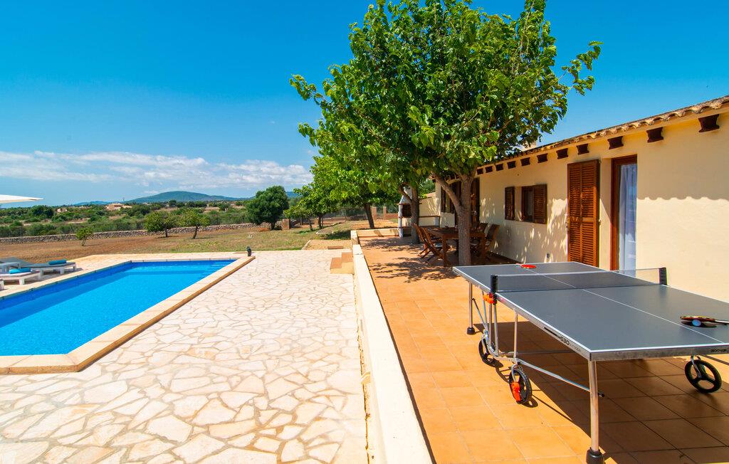 Et smukt, muntert, gult hus for op til fem personer på en grund på over 14.000 m² midt i den smukke natur på den østlige del af øen: dette er villaen "Can Crespinetlo Nou". Da der næsten ikke er nogen naboer her, kan I nyde panoramaudsigten over det omkringliggende landskab i fuldstændig fred og ro. Det dybblå middelhav skinner i det fjerne, men I behøver ikke at hoppe ind i bilen for at køle jer ned i vandet: lige ved siden af huset er der en let skrånende pool med udendørs bruser, hvor I enten kan svømme længder eller bare slappe af på en lilo - mest med en masse sol takket være den sydvendte beliggenhed. Hele det rummelige terrasseområde nyder også godt af masser af sol. Poolen tiltrækker med komfortable liggestole og et par skyggefulde parasoller og ved huset kan I sætte jer ned for at spise ved siden af to smukt integrerede træer, grillen venter allerede på jer. Hvis I foretrækker noget mere aktivt, kan I slippe dampen med et spil bordtennis. Interiøret i "Can Crespinetlo Nou" er behageligt og behageligt reserveret. Hvide vægge og brune trædetaljer som vinduesrammer, loftsbjælker og møbler supplerer hinanden perfekt; Overdreven dekoration blev bevidst undgået. Alle værelser kan findes komfortabelt på ét niveau. Det åbne køkken af høj kvalitet med smukke fliser fører til spisepladsen med et stort bord og tilhørende stole. Efter jeres måltid kan I sidde i en af de komfortable sofaer lige ved siden af spisebordet og nyde knitren fra den brændende pejs eller en spændende aften med fjernsyn med et glas vin. Er I træt, kan I trække jer tilbage til et af de fire soveværelser, hvoraf to er dobbeltværelser og et enkeltværelse. To moderne badeværelser med brusere fra gulv til loft, hvoraf det ene har eget bad, fuldender boligkomforten. Hvis I sætter pris på smukke landskaber og nyder at tilbringe tid i naturen, så har I fundet det perfekte feriehus: I kan tage en skøn tur rundt i villaen eller tage på cykelture. Og bedst af alt: shopping og alle bekvemmeligheder i en by kan findes mindre end 5 km væk. Efter en kort køretur i en lejebil langs vejen, som kan høres afhængigt af vindretningen, når I den smukke lille havneby Porto Cristo. Der er ingen spor af masseturisme: traditionelle stenhuse og imponerende hvide villaer præger stedet. Middelaldercentret tiltrækker med romantiske, smalle gader og mange historiske bygninger. På den største shoppinggade Passeig de la Sirena finder I hyggelige butikker, gode restauranter og indbydende caféer. I kan også bruge en dag på Porto Cristo-stranden, som byder på en velholdt strand med lavvandet indsejling i vandet og en livlig strandpromenade, ideel for familier med børn og også meget populær blandt lokalbefolkningen. Et smukt hus på en kæmpe grund, vendt mod syd, med pool og solterrasse lige foran døren og havet så tæt på, at man endda kan se det fra terrassen: en-etagers villaen "Can Crespinetlo Nou" er omgivet af natur, men alligevel kun 4,4 km fra Porto Cristo på den østlige del af Mallorca. Den lille, men ekstraordinære bystrand ligger kun 4,7 km væk med lejebil. Vi anser denne bolig for tilgængelig for vores gæster med nedsat mobilitet, men vi opfordrer alle gæster til at overveje boligens egnethed baseret på deres egne krav.