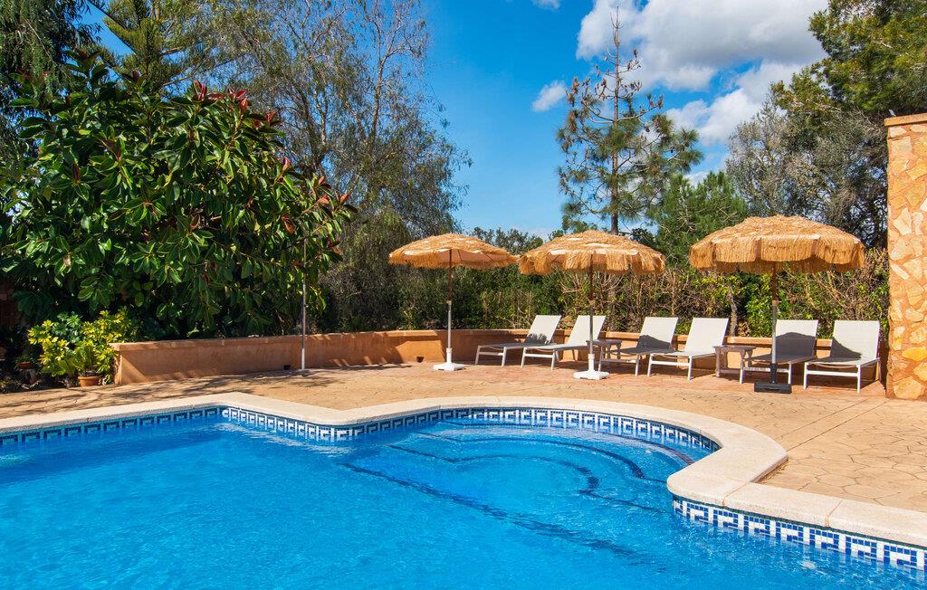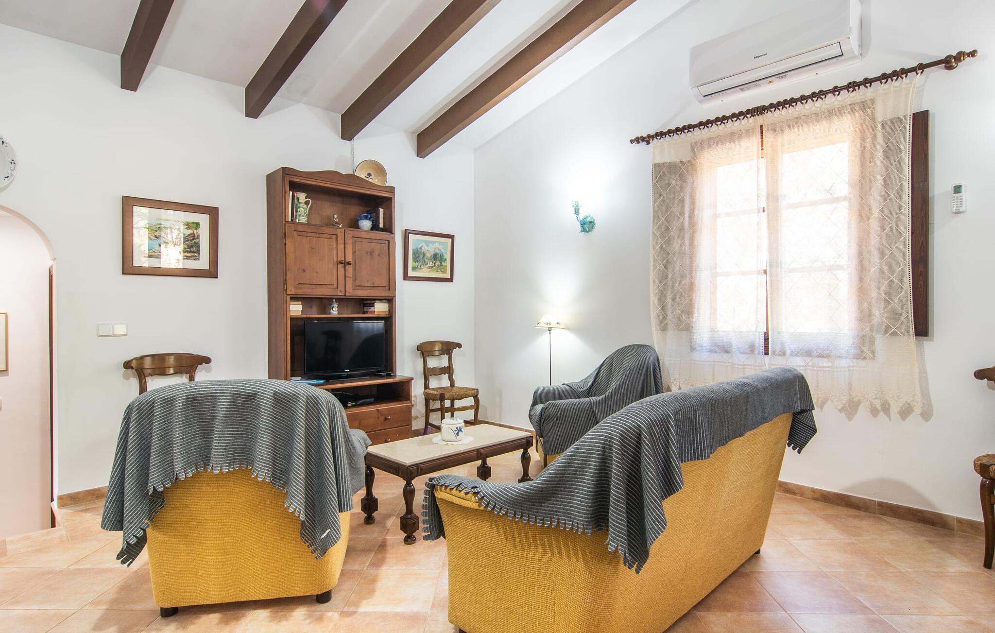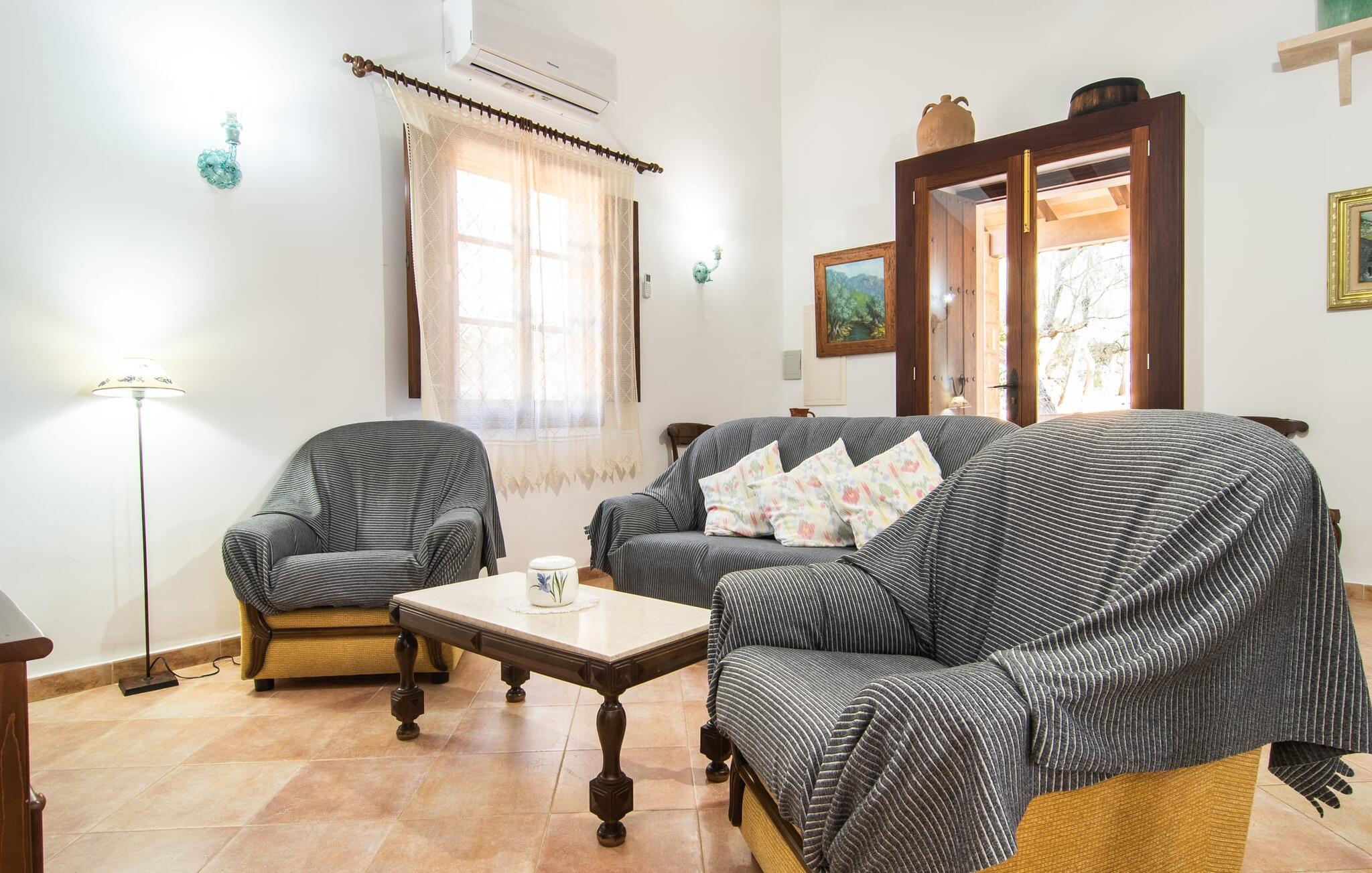 Denne fortryllende Mallorca finca tilbyder en unik og fantastisk privat beliggenhed, ideel til at slappe af og nyde. En overdækket terrasse ved siden af huset fungerer som hyggelig spiseplads med grill. Fincaen har naturskønne stier, der fører til et poolområde, der sikrer fuldstændig privatliv omgivet af grønne områder. Den 10 meter lange pool suppleres af en solterrasse med komfortable liggestole og parasoller og en udendørs bruser. Indenfor har fincaen en hyggelig, åben opholds- og spisestue med sofahjørne, spisebord, tv og pejs, ideel til socialt samvær. Køkkenet ligger tæt på og er fuldt udstyret til selvforplejning. Indkvarteringen omfatter tre komfortable soveværelser med dobbeltsenge og to badeværelser - det ene med bruser og det andet med badekar. Derudover er fincaen udstyret med et varmt-koldt klimaanlæg, der sikrer optimale temperaturer året rundt. Den familievenlige finca "Can Crestall" ligger i den smukke sydlige del af Mallorca på en rummelig grund. Flere strande i den sydlige del af øen kan nås hurtigt og nemt herfra. I kan gøre jeres daglige indkøb i de nærliggende supermarkeder i Campos. El, aircondition og varme er inkluderet i lejeprisen, hvis forbruget er rimeligt. I det sjældne tilfælde, at dette beløb overskrides, vil I blive bedt om at indbetale penge på enheden.