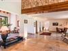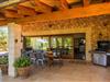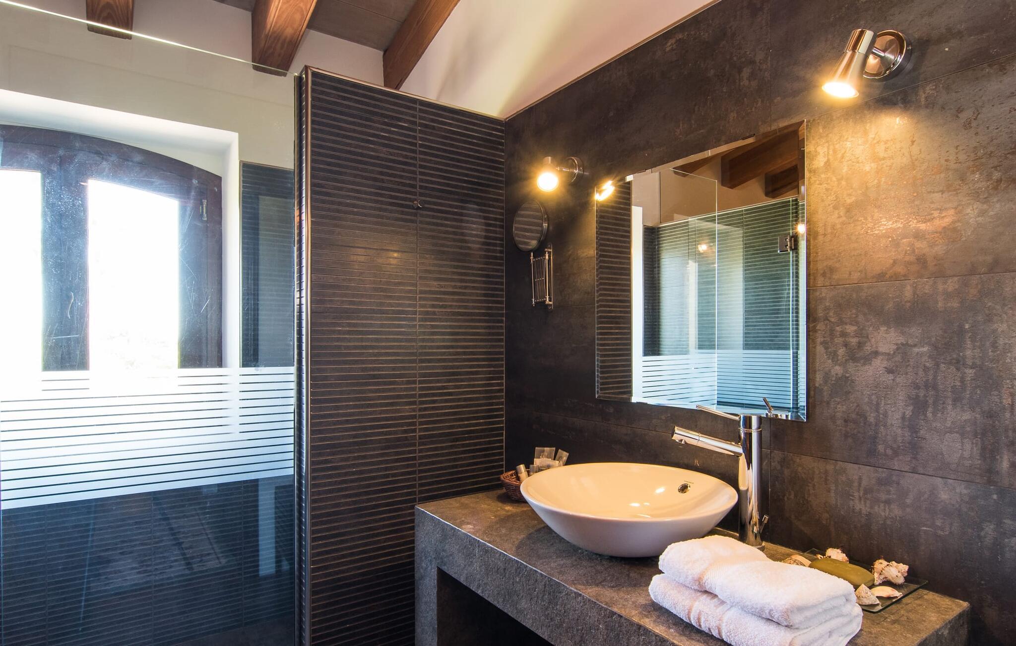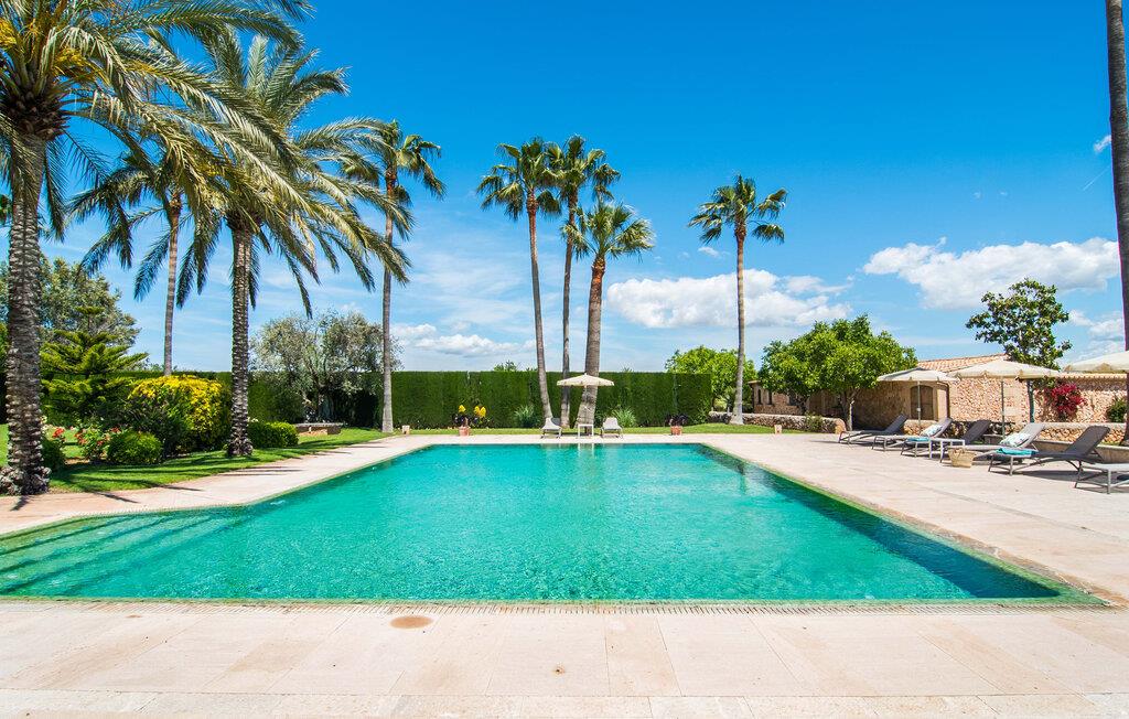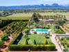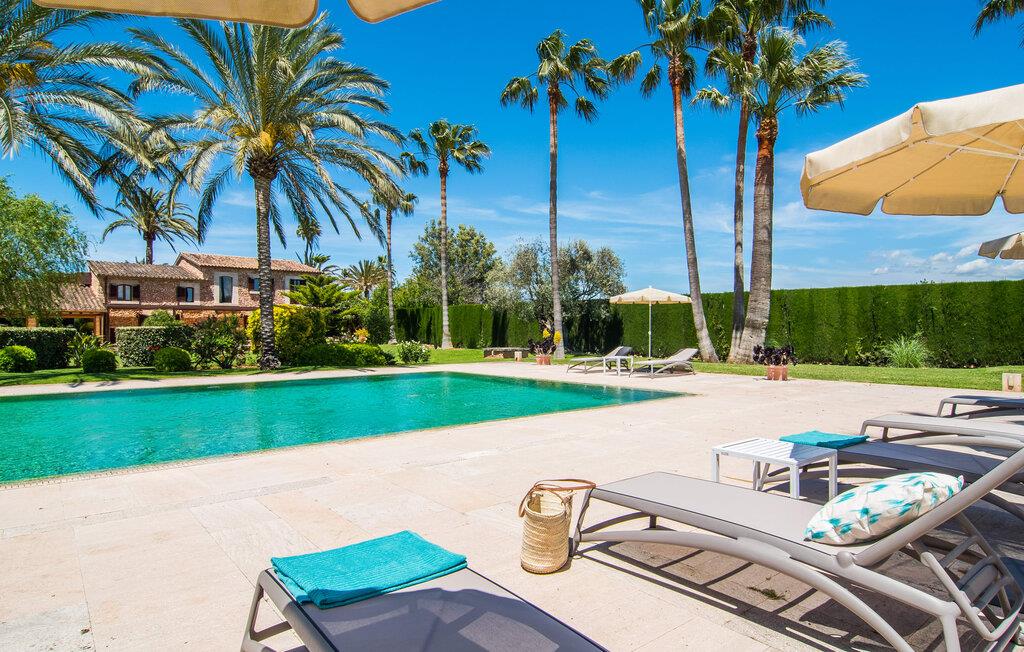 Lad ikke navnet narre jer, denne slående villa lover alt andet end hårde tider. Hvilken udsigt, hvilken ejendom, hvilken pool! Den rummelige og komfortable "Can Duro" består alle prøver med glans: fra nem adgang til Sierra de Tramuntana til det private "hav" med solterrasse til picnic- og legepladsområder på den palmedækkede, 3.000 m² store ejendom. Utallige muligheder er åbne for jer - solbad eller søg skygge på terrasserne, i haven og ved poolen; Nyd mallorcanske delikatesser og vin ved langbordet til langt ud på natten. Lyt til musik uden at bekymre jer om at forstyrre naboerne; Tag en kort tur til Binissalem eller Sencelles og nyd en espresso på pladsen eller genopfyld jeres forsyninger i en af ??bodegaerne. Og da en rejsegruppe på ti-tolv personer åbenbart ikke vil være under fødderne på hinanden 24 timer i døgnet, byder huset på mere end nok plads til, at alle kan gå deres egen vej... Kunne I tænke jer et kig indenfor? Vores videotur viser jer præcis, hvilke faciliteter og ekstraudstyr "Can Duro" har at tilbyde. Ved udformningen af ??villaen blev der lagt stor vægt på design, komfort og rummelighed. Glas, træ og natursten kombinerer traditionelle rustikke elementer med mere dekorative elementer. Aflange vinduesfronter slipper masser af lys ind og bringer havens grønne omgivelser ind i huset. Det åbne design gør det sociale samvær lettere her skabes en luftig fællesskabsfølelse gennem indgangspartiet, en stor stue med sofaer og et tv/pejsehjørne, det højteknologiske køkken og to spisepladser. Det gør det nemmere for både mindre og større grupper at mødes. Vaskemaskine og tørretumbler er anbragt separat. Fire komfortabelt indrettede soveværelser - hvoraf det ene er i stueetagen - har mini-suite karakter: XL dobbeltsenge (1,80 eller 2 m brede), moderne en-suite badeværelser og walk-in closet sikrer maksimal komfort. Der er også et fælles badeværelse i stueetagen og et udendørs badeværelse nær poolen. En glastilbygning giver plads til, at to sammenhængende rum kan fungere som familierum for tre eller fire "fitness-kaniner". I kan vælge en privatskærm, og bag trappen giver glasskydedøren jer det personlige rum og privatliv, I ønsker. Følger I MA-13-??på tværs af øen, passerer I Palma og efter cirka 25 km når I uundgåeligt den vinrige region Mallorca. Åbne marker, vinmarker, olivenlunde og mandeltræer præger landskabet og Tramuntana-bjergenes tårn i nærheden. I Binissalem kan I stadig besøge de gamle vinkældre: Hereus de Ribas, det lille samfund Consell, er hjemsted for en af ??de mest traditionelle vingårde på Mallorca. Brug tid på en af ??Llosetas stille gadecaféer og lad jer friste af det ekstremt populære ugentlige marked i Santa Maria del Camí. Når det kommer til madoplevelser, så forkæl jer selv med ture til topbedømte restauranter som Santi Taura eller Es Rústic, og den rustikke stemning er stadig tydelig på den legendariske Es Verger. Hvis I vil udforske hovedstaden og dens strande, men også kan lide at vandre eller cykle gennem naturen, så er "Can Duro" lige noget for jer. Ruinerne af det antikke Castell i Alaró, 825 meter højt, og helligdommen Lluc er to af de mest populære lokale destinationer for vandrere. Midt i vinregionen og i en absolut afsondret beliggenhed strækker denne flagskibsvilla til 12 personer sig over 30.000 m² - kun 30 km fra Palma og 4 km fra Binissalem. Tramuntana-vandrere, cyklister og vinelskere vil føle sig hjemme i "Can Duro". I den omkringliggende landsby er I godt forsynet med alt hvad I behøver, og shoppingbyen Inca kan også nås i bil på kun omkring 10 minutter. For en dag ved havet anbefaler vi strandene i hovedstaden og strandene i Badia d'Alcúdia.