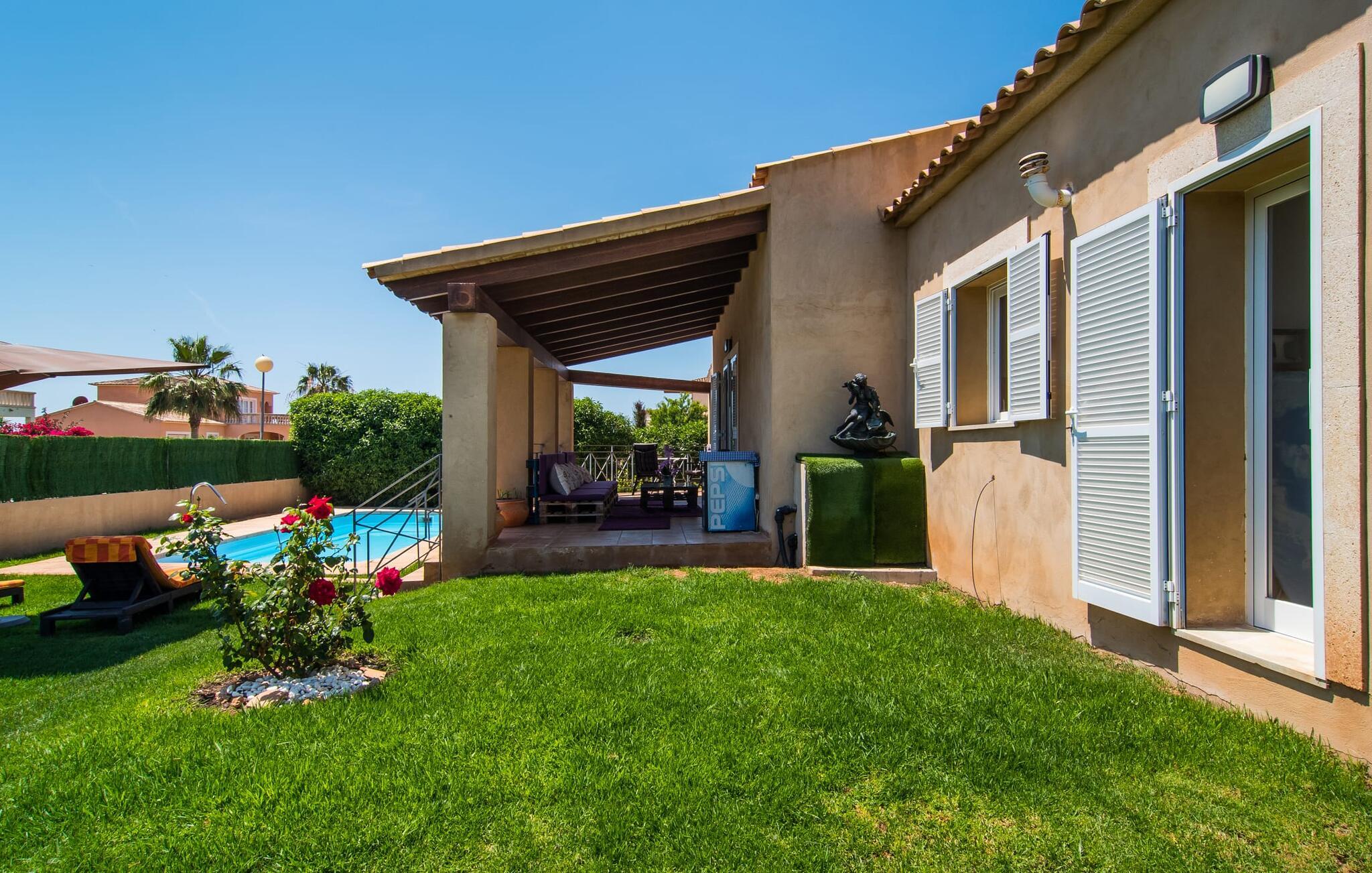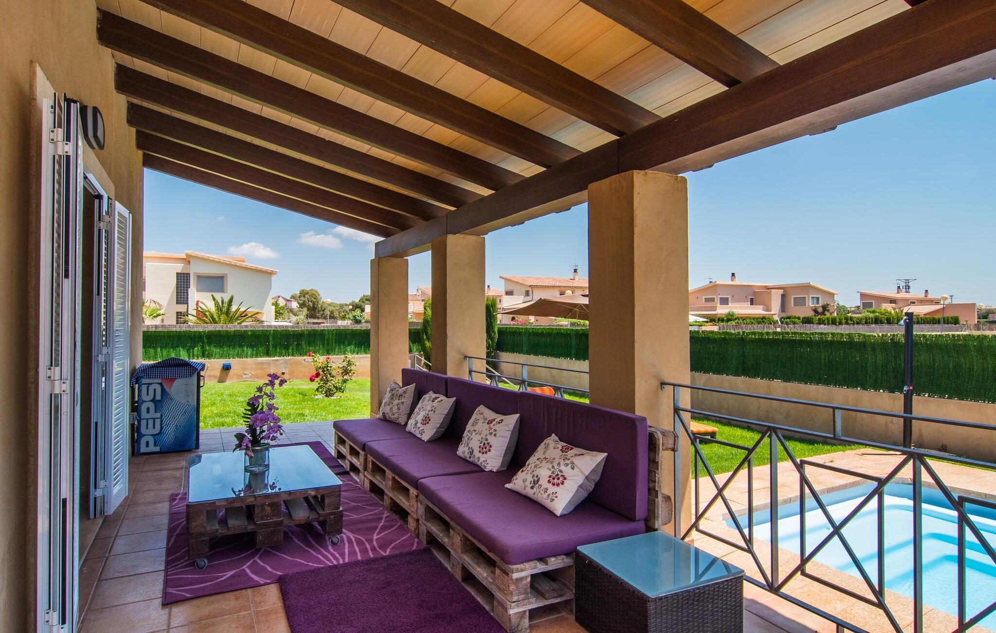 Dit smukke feriehus ligger væk fra Sa Ràpitas stress og jag. Parker jeres bil komfortabelt foran huset; Der er plads til fire biler i alt. Lige bag jeres en-etagers bolig ligger poolen (blidt skrånende mod den dybe ende), som adskiller to meget velholdte græsplæner fra den overdækkede terrasse. Omkring poolen og i skyggen af terrassens tag kan I slappe af på jeres liggestol med en god bog og solhat og nyde en rigtig feriefølelse. På den rummelige veranda, som går rundt om husets to sider, finder I udendørs sofaer til afslapning. Et rustikt spisebord med bænke indbyder til en hyggelig morgenmad eller en lækker grillaften. Med basketballkurven og to fodboldmål kan haven hurtigt forvandles til en legeplads for børnene. Varme, jordnære, naturlige farver byder jer velkommen indenfor i villaen "Can Elektra". Hallen er dekoreret med en typisk middelhavsterracottavase og en skænk i asiatisk stil. Bløde pastelfarver giver den komfortable villa en behagelig rolig atmosfære og de stærkere farver på billeder og malerier udstråler en legende charme. Hvidt og gråt dominerer stuen; Gulv-til-loft vinduer på to sider slipper masser af lys ind, og terrassedøren fører jer direkte til den udendørs terrasse. Opholdsstuen er indrettet med to sofaer, et sofabord og fladskærms-tv, et rundt spisebord i mørkt træ med fire matchende stole og en romantisk pejs og pejs. Fra stuen er der adgang til det fuldt udstyrede køkken med udgang til terrassen. Højdepunktet her er det enorme køleskab i amerikansk stil med låger i rustfrit stål. De andre værelser fører også ud af gangen. I kan vælge jeres soveværelse efter jeres farvepræferencer, fordi der ikke er to værelser, der er ens. Den ene er en blanding af varm okker med hvide accenter, en anden en rig rød kombineret med mørkt træ. Måske føler I jer bedst tilpas i det luftige lilla værelse med masser af hvidt. De to badeværelser i en blanding af naturfarver og hvid, hvoraf det ene er en-suite og med brus/badekar, er udstyret med stilfulde glasvaske. Tidligere fiskerhuse ligger langs havnefronten i Sa Ràpita. Her finder I nogle fremragende restauranter, hvor I kan kombinere god mad med udsigt over havet. Denne lille kystby med talrige indkøbsmuligheder og en malerisk havn ligger kun 400 m fra jeres villa. Noget trafikstøj fra den lille gade foran jeres villa er tydeligt hørbar, men sjældent hørt, da den primært bruges af beboerne i nabohusene. Det ugentlige marked i det nærliggende Campos, som tilbyder regionale produkter torsdage og lørdage, er også en tur værd. Hovedstaden Palma de Mallorca ligger kun 45 minutter væk og giver et indblik i det autentiske spanske byliv og shopping til jeres hjertes lyst. På den anden side, hvis I har lyst, er der altid de smukke strande på sydkysten. For eksempel er der den 300 m lange strand Ses Covetes og selvfølgelig den unikke naturstrand Es Trenc, som minder mange mennesker om Caribien. Den smukke villa "Can Elektra" ligger på en 860 m² stor grund i udkanten af den gamle fiskerlandsby Sa Ràpita på det sydlige Mallorca. Supermarkeder, barer og restauranter ligger i umiddelbar nærhed, ligesom sandstranden Sa Ràpita kun 3,5 km væk, som er særlig populær blandt surfere. Mallorcas mest berømte naturlige strand, Platja Es Trenc, ligger kun 20 minutters kørsel derfra.