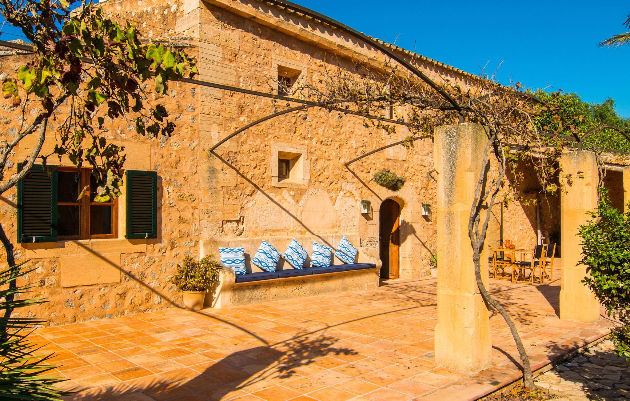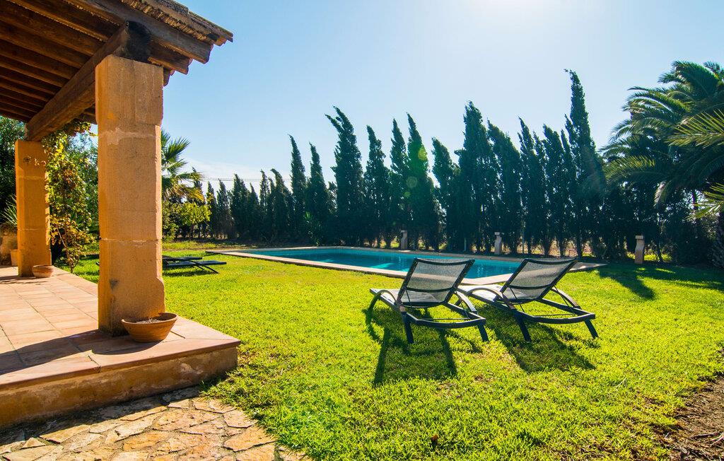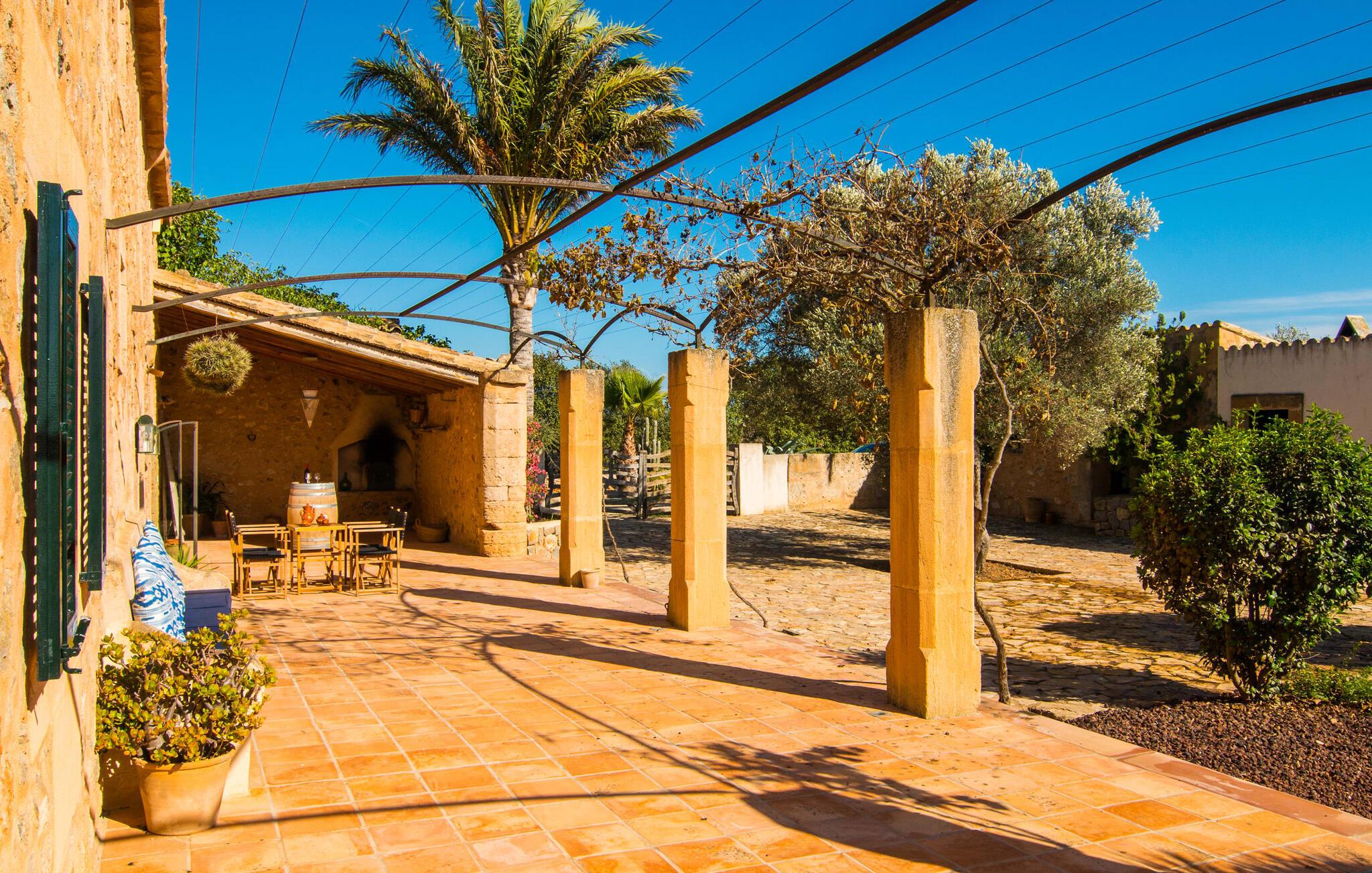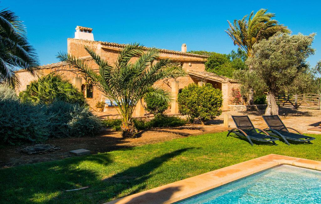 Oplev "Can Farineta", en fantastisk ejendom i finca-stil beliggende på en fredelig 30.000 m² grund i et afsondret område på Mallorca. Dette smukt restaurerede hus er en hyldest til Mallorcas historie og har en anlagt have med palmer, oliventræer og cypresser, hvilket giver en følelse af fred og privatliv. Udendørsområdet byder på en afskærmet spiseplads med et langt træbord og et fuldt udstyret køkken med en muret grill, perfekt til udendørs spisning. Den indbydende 50 m² store pool med liggestole og parasoller inviterer jer til at slappe af og slappe af. Indenfor fører den rummelige entré ind i en charmerende stue med lædersofaer og unikke gyngestole. Det åbne køkken har traditionelle blå og hvide fliser og moderne apparater. Med fire unikt designede soveværelser, herunder to dobbeltværelser og to singler, kan gæsterne nyde komfort i en afslappende atmosfære. To moderne badeværelser fuldender ejendommen og sikrer en perfekt blanding af rustik charme og moderne komfort på "Can Farineta". Den rustikke finca "Can Farineta" ligger nær den lille kystby Ses Covetes. Det er et fantastisk sted at shoppe. Alternativt kan I tage til landsbyen Ses Salines, som kan nås lige så hurtigt, og der er et landmandsmarked hver torsdag. Den fantastiske strand Ses Covetes ligger kun få kilometer væk, ligesom den simpelthen storslåede naturlige strand Es Trenc.