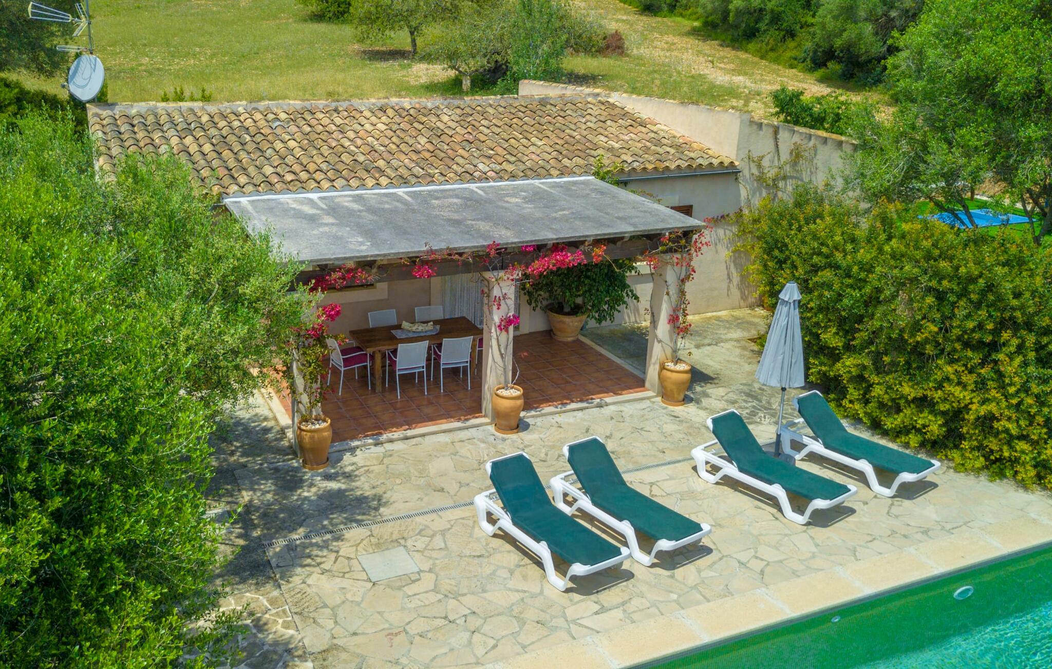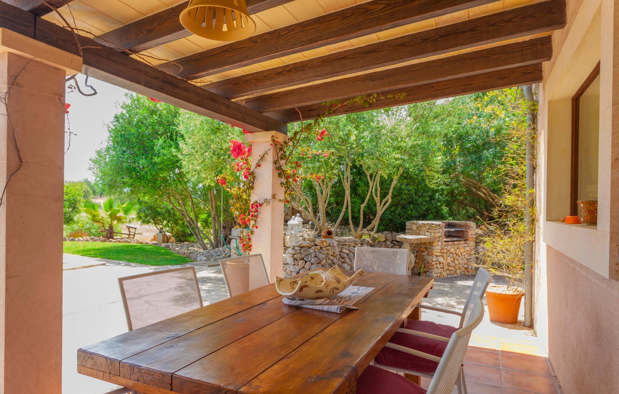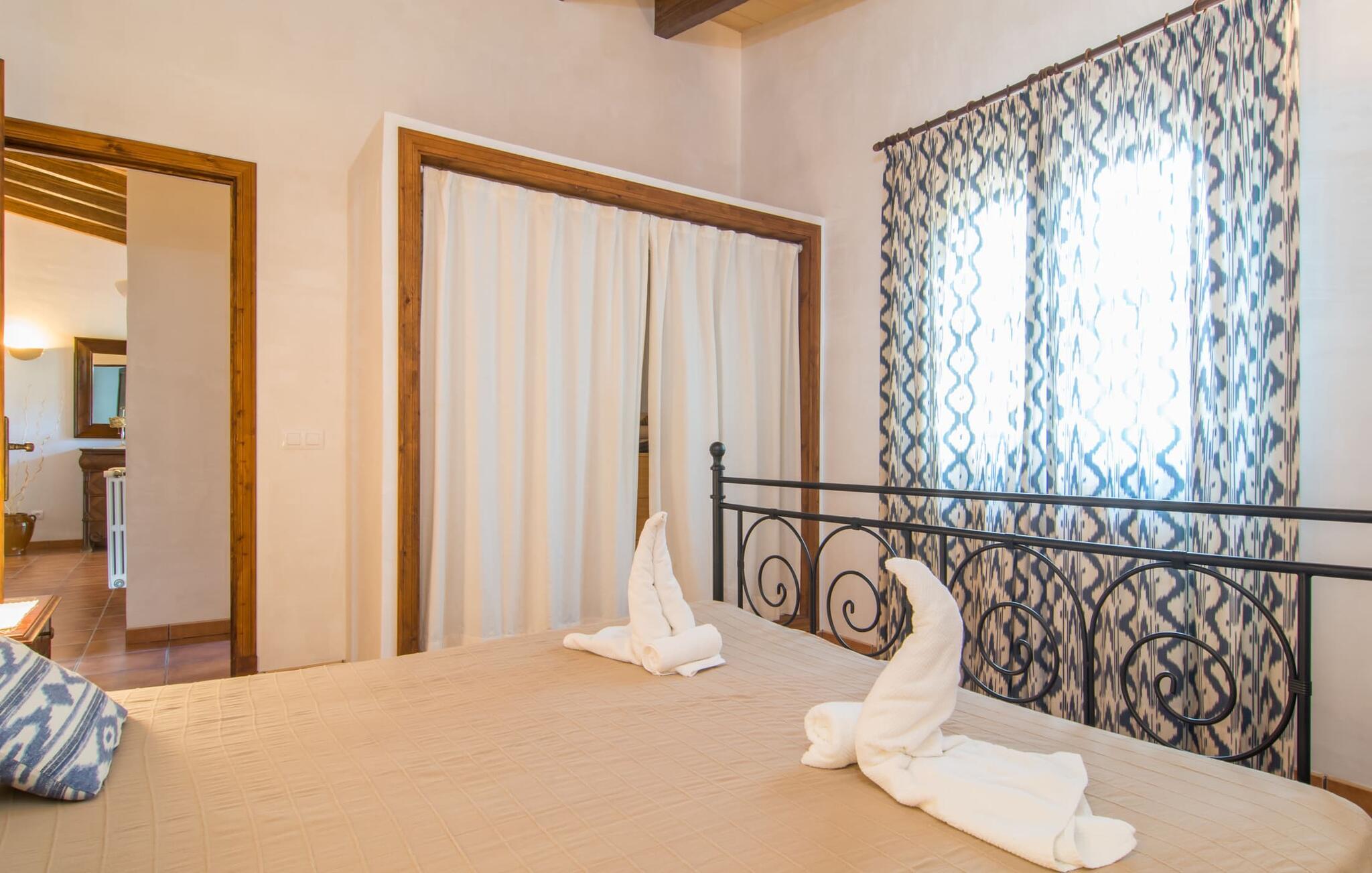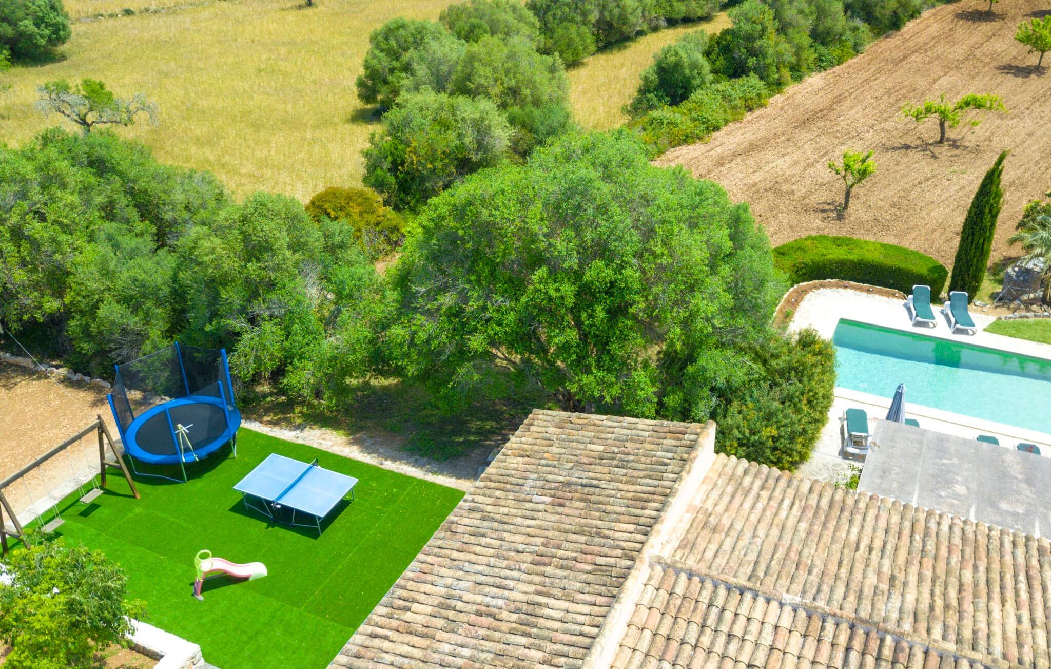 På den mest idylliske og afsides beliggenhed venter den charmerende villa "Can Galvany" bare på at byde de næste gæster velkommen. Og det starter uden for villaen, for alene udearealet får jeres kæbe til at falde. Omdrejningspunktet for det kærligt designede værelse er den store, skinnende grønne pool midt på en smuk solterrasse, der indbyder til bad. I kan helt sikkert tilbringe en afslappende eftermiddag eller to med en god bog på de komfortable liggestole omkring poolen. Og for dem, der foretrækker et mere skyggefuldt sted at sidde, er der lige ved terrassen en stor overdækket spiseplads med et stilfuldt bord, ideelt til en fælles middag. Dette kan tilberedes på den rustikke grill, som gør hvert stykke kød eller fisk til en kulinarisk fornøjelse. Til en kort eftermiddagslur anbefaler vi hængekøjen, som er placeret under en eventyrlig kuppel lavet af træstammer og blade. Simpelthen utroligt! Et andet udendørs højdepunkt er mere beregnet til de mindste: gynger, rutsjebaner, bordtennisborde og en græsplæne til at slippe dampen af sikrer masser af sjov. Denne villa har noget at tilbyde for enhver smag. Villaens indretning er en kombination af rustik og moderne stil på én etage – I behøver ikke bekymre jer om over- eller underetagen. Den åbne stue-spisestue fremstår lidt mere reserveret, men udstråler så meget komfort med dets indirekte lys, udskårne tagbjælker og stilfulde møbler, at I får lyst til at synke ned i en af de smarte sofaer og tilbringe timer der. Skulle I føle jer lidt sulten, finder I alt hvad I skal bruge i villaens køkken til at tilberede alverdens lækre lækkerier. Til en afslappende nat bagefter har villaen tre smukke dobbeltværelser, som alle har subtile møbler og lyse, beroligende farver - perfekt til at genoplade jeres batterier. Et af værelserne har endda et pragtfuldt walk-in-closet og en-suite badeværelse; Der er ingen tvivl om, hvilket soveværelse der er mest værdifuldt. Men selvfølgelig kan de andre gæster også starte dagen med et brusebad: endnu et smukt udstyret badeværelse er tilgængeligt for alle at bruge, som de ønsker. Gemt i det smukke landskab i det smukke sydøstlige Mallorca ligger villaen “Can Galvany”. Feriestedet Felanitx ligger kun 6 km væk og tilbyder alt til jeres daglige behov - fra supermarkedet og det ugentlige marked til apoteker og pengeautomater. Den nærmeste strand, Cala Murada, ligger også kun 12,3 km væk i bil. Bemærk venligst, at denne ejendom ikke accepterer ungdomsgrupper eller polterabender. En ungdomsgruppe på denne ejendom består af personer på 27 år eller derunder. Book ikke denne ejendom, hvis I er en ungdomsgruppe eller polterabend, da jeres reservation vil blive afvist, når den er booket, hvilket også kan være tilfældet ved ankomst til ejendommen eller under jeres ophold, og I vil ikke modtage en refusion