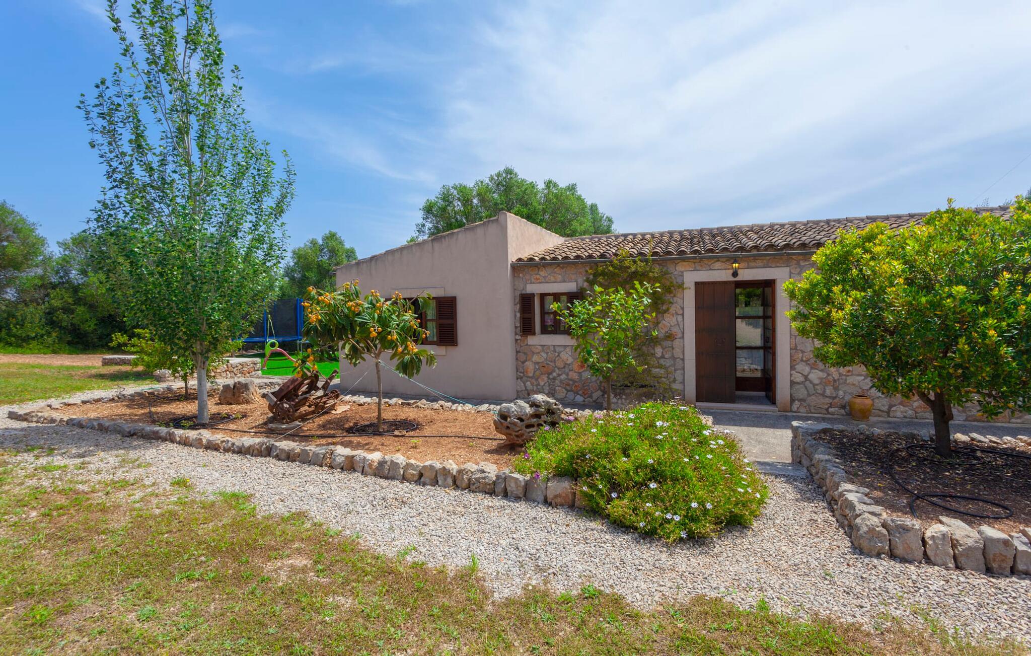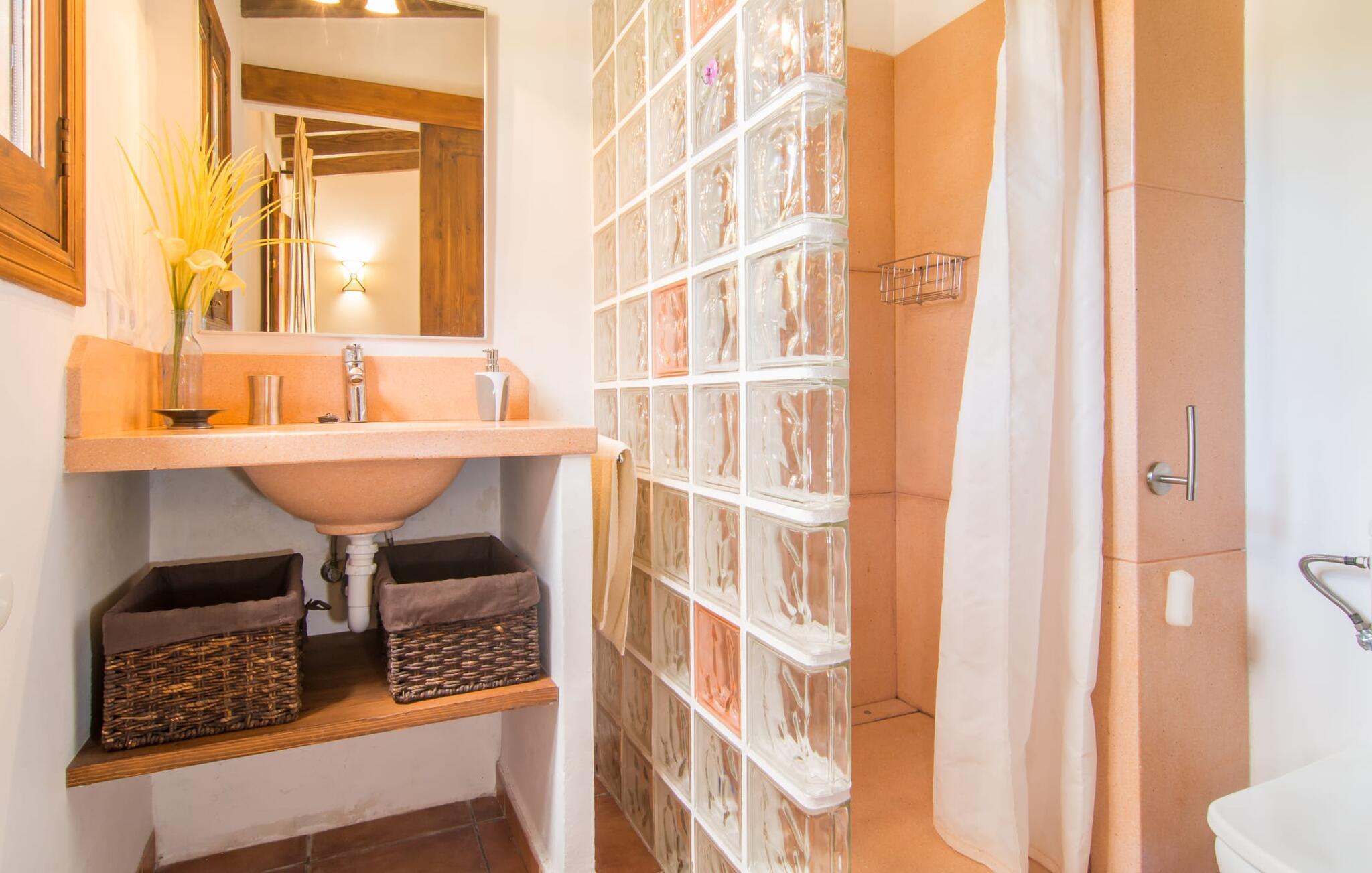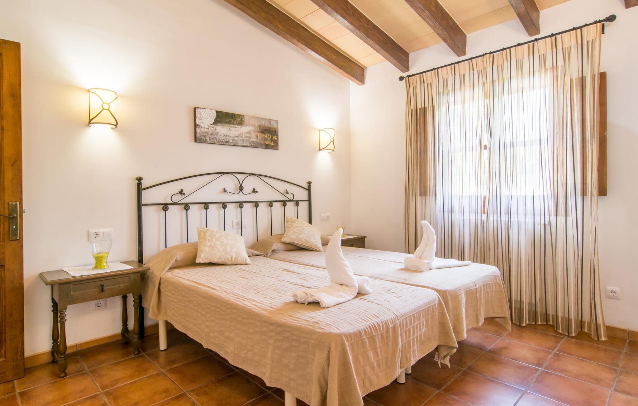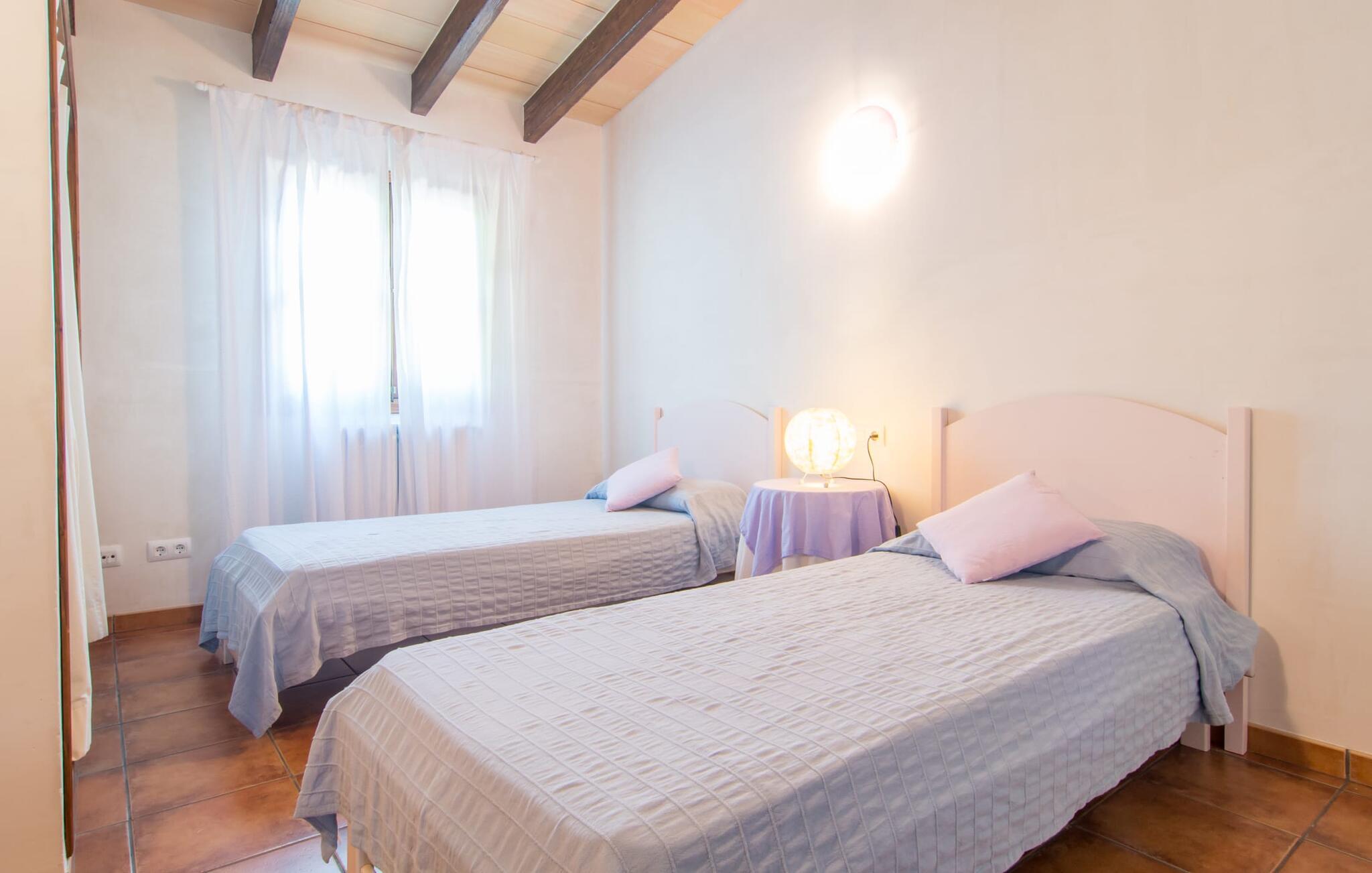 På den mest idylliske og afsides beliggenhed venter den charmerende villa "Can Galvany" bare på at byde de næste gæster velkommen. Og det starter uden for villaen, for alene udearealet får jeres kæbe til at falde. Omdrejningspunktet for det kærligt designede værelse er den store, skinnende grønne pool midt på en smuk solterrasse, der indbyder til bad. I kan helt sikkert tilbringe en afslappende eftermiddag eller to med en god bog på de komfortable liggestole omkring poolen. Og for dem, der foretrækker et mere skyggefuldt sted at sidde, er der lige ved terrassen en stor overdækket spiseplads med et stilfuldt bord, ideelt til en fælles middag. Dette kan tilberedes på den rustikke grill, som gør hvert stykke kød eller fisk til en kulinarisk fornøjelse. Til en kort eftermiddagslur anbefaler vi hængekøjen, som er placeret under en eventyrlig kuppel lavet af træstammer og blade. Simpelthen utroligt! Et andet udendørs højdepunkt er mere beregnet til de mindste: gynger, rutsjebaner, bordtennisborde og en græsplæne til at slippe dampen af sikrer masser af sjov. Denne villa har noget at tilbyde for enhver smag. Villaens indretning er en kombination af rustik og moderne stil på én etage – I behøver ikke bekymre jer om over- eller underetagen. Den åbne stue-spisestue fremstår lidt mere reserveret, men udstråler så meget komfort med dets indirekte lys, udskårne tagbjælker og stilfulde møbler, at I får lyst til at synke ned i en af de smarte sofaer og tilbringe timer der. Skulle I føle jer lidt sulten, finder I alt hvad I skal bruge i villaens køkken til at tilberede alverdens lækre lækkerier. Til en afslappende nat bagefter har villaen tre smukke dobbeltværelser, som alle har subtile møbler og lyse, beroligende farver - perfekt til at genoplade jeres batterier. Et af værelserne har endda et pragtfuldt walk-in-closet og en-suite badeværelse; Der er ingen tvivl om, hvilket soveværelse der er mest værdifuldt. Men selvfølgelig kan de andre gæster også starte dagen med et brusebad: endnu et smukt udstyret badeværelse er tilgængeligt for alle at bruge, som de ønsker. Gemt i det smukke landskab i det smukke sydøstlige Mallorca ligger villaen “Can Galvany”. Feriestedet Felanitx ligger kun 6 km væk og tilbyder alt til jeres daglige behov - fra supermarkedet og det ugentlige marked til apoteker og pengeautomater. Den nærmeste strand, Cala Murada, ligger også kun 12,3 km væk i bil. Bemærk venligst, at denne ejendom ikke accepterer ungdomsgrupper eller polterabender. En ungdomsgruppe på denne ejendom består af personer på 27 år eller derunder. Book ikke denne ejendom, hvis I er en ungdomsgruppe eller polterabend, da jeres reservation vil blive afvist, når den er booket, hvilket også kan være tilfældet ved ankomst til ejendommen eller under jeres ophold, og I vil ikke modtage en refusion