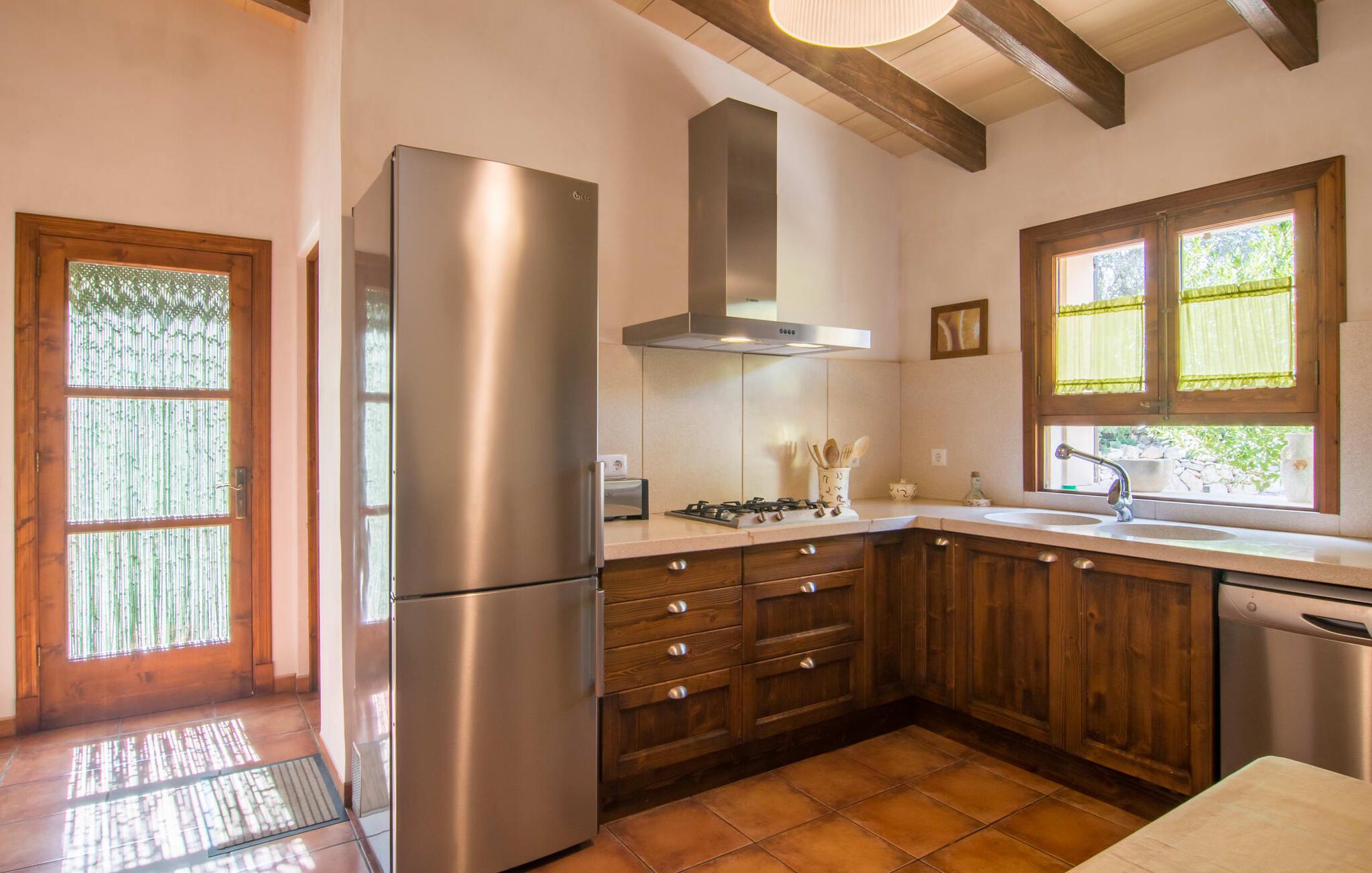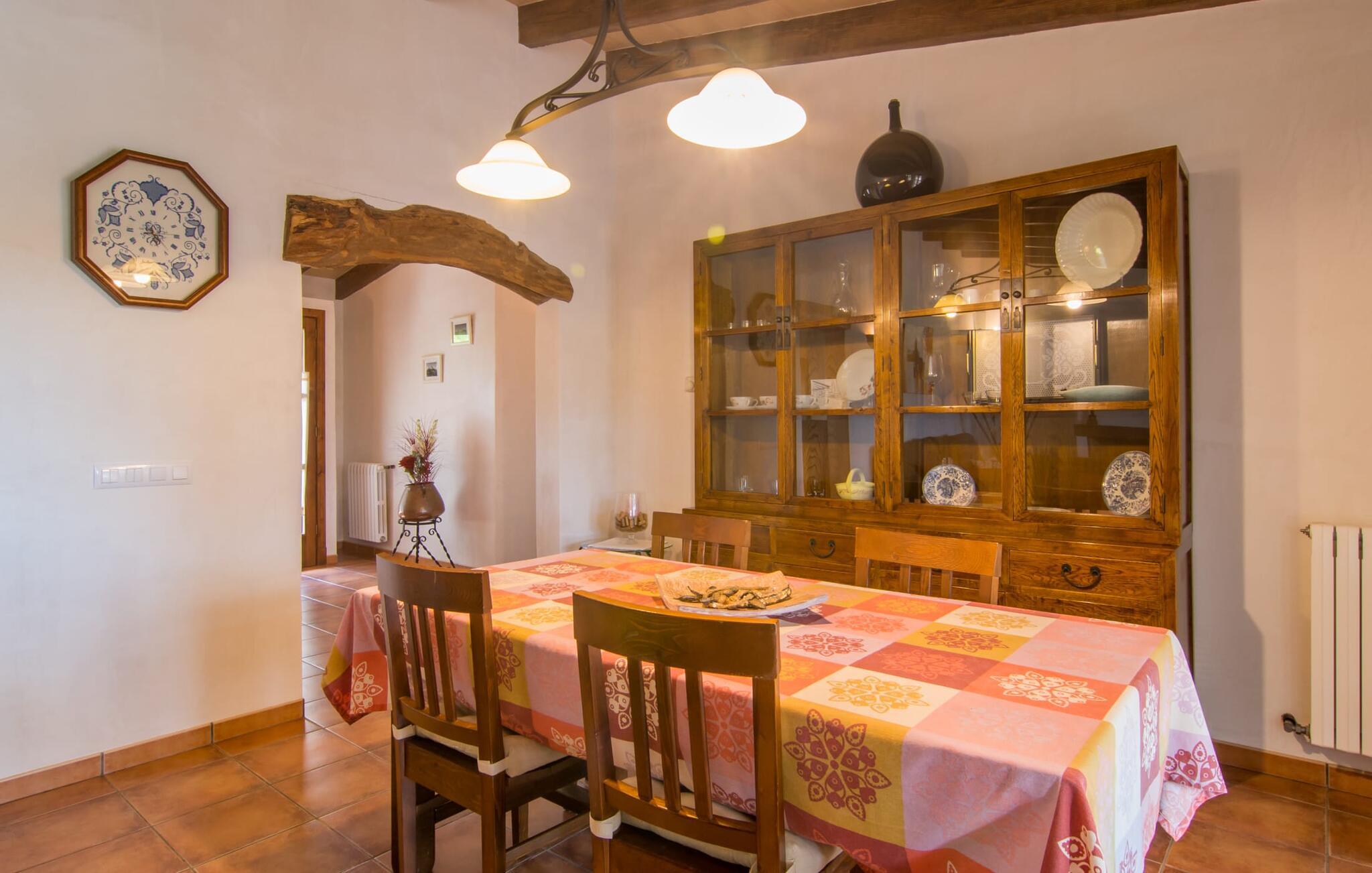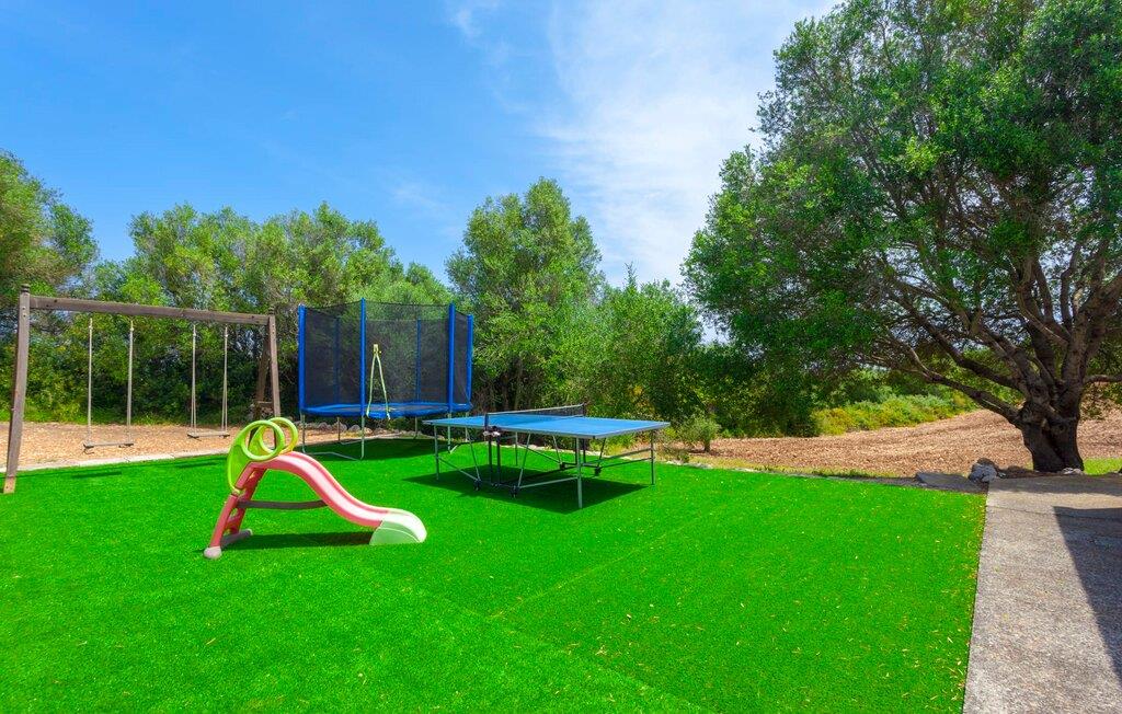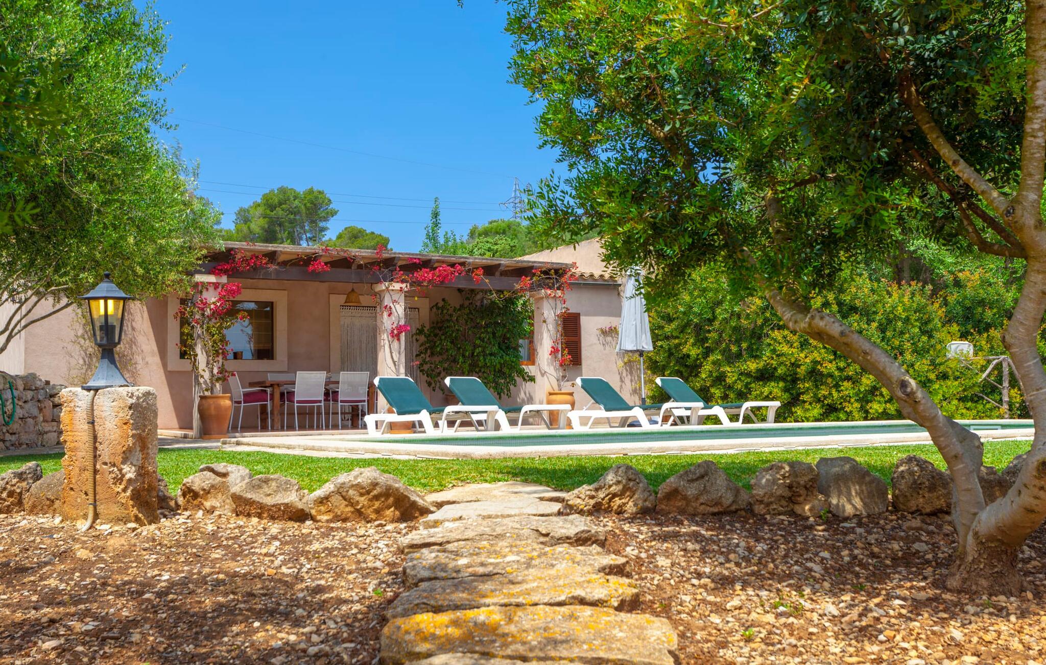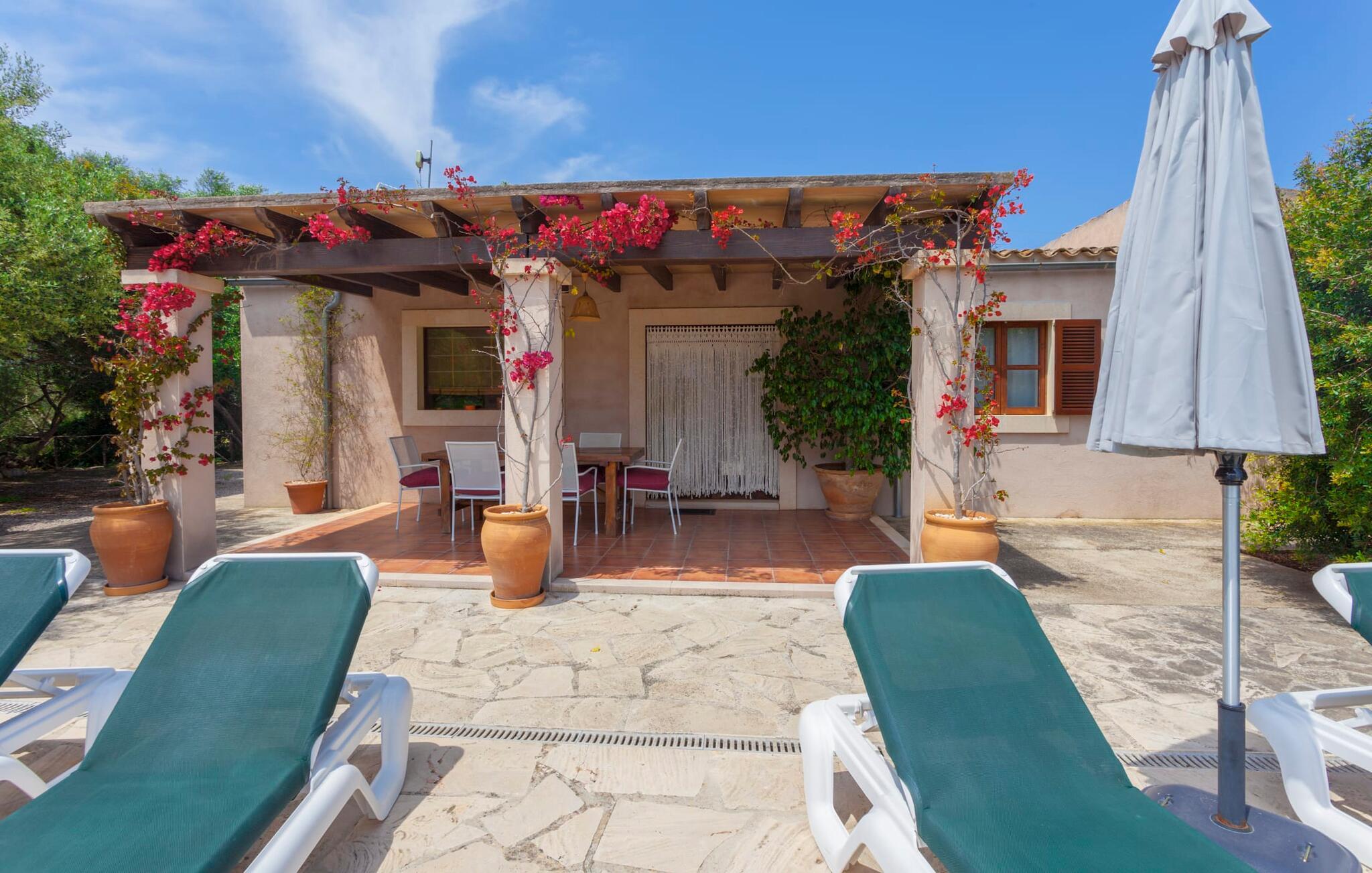 På den mest idylliske og afsides beliggenhed venter den charmerende villa "Can Galvany" bare på at byde de næste gæster velkommen. Og det starter uden for villaen, for alene udearealet får jeres kæbe til at falde. Omdrejningspunktet for det kærligt designede værelse er den store, skinnende grønne pool midt på en smuk solterrasse, der indbyder til bad. I kan helt sikkert tilbringe en afslappende eftermiddag eller to med en god bog på de komfortable liggestole omkring poolen. Og for dem, der foretrækker et mere skyggefuldt sted at sidde, er der lige ved terrassen en stor overdækket spiseplads med et stilfuldt bord, ideelt til en fælles middag. Dette kan tilberedes på den rustikke grill, som gør hvert stykke kød eller fisk til en kulinarisk fornøjelse. Til en kort eftermiddagslur anbefaler vi hængekøjen, som er placeret under en eventyrlig kuppel lavet af træstammer og blade. Simpelthen utroligt! Et andet udendørs højdepunkt er mere beregnet til de mindste: gynger, rutsjebaner, bordtennisborde og en græsplæne til at slippe dampen af sikrer masser af sjov. Denne villa har noget at tilbyde for enhver smag. Villaens indretning er en kombination af rustik og moderne stil på én etage – I behøver ikke bekymre jer om over- eller underetagen. Den åbne stue-spisestue fremstår lidt mere reserveret, men udstråler så meget komfort med dets indirekte lys, udskårne tagbjælker og stilfulde møbler, at I får lyst til at synke ned i en af de smarte sofaer og tilbringe timer der. Skulle I føle jer lidt sulten, finder I alt hvad I skal bruge i villaens køkken til at tilberede alverdens lækre lækkerier. Til en afslappende nat bagefter har villaen tre smukke dobbeltværelser, som alle har subtile møbler og lyse, beroligende farver - perfekt til at genoplade jeres batterier. Et af værelserne har endda et pragtfuldt walk-in-closet og en-suite badeværelse; Der er ingen tvivl om, hvilket soveværelse der er mest værdifuldt. Men selvfølgelig kan de andre gæster også starte dagen med et brusebad: endnu et smukt udstyret badeværelse er tilgængeligt for alle at bruge, som de ønsker. Gemt i det smukke landskab i det smukke sydøstlige Mallorca ligger villaen “Can Galvany”. Feriestedet Felanitx ligger kun 6 km væk og tilbyder alt til jeres daglige behov - fra supermarkedet og det ugentlige marked til apoteker og pengeautomater. Den nærmeste strand, Cala Murada, ligger også kun 12,3 km væk i bil. Bemærk venligst, at denne ejendom ikke accepterer ungdomsgrupper eller polterabender. En ungdomsgruppe på denne ejendom består af personer på 27 år eller derunder. Book ikke denne ejendom, hvis I er en ungdomsgruppe eller polterabend, da jeres reservation vil blive afvist, når den er booket, hvilket også kan være tilfældet ved ankomst til ejendommen eller under jeres ophold, og I vil ikke modtage en refusion