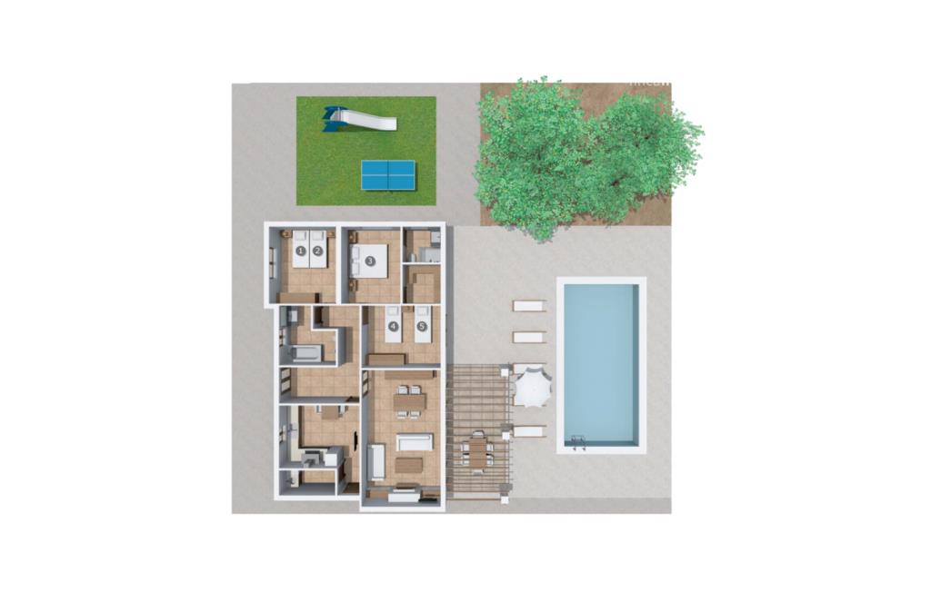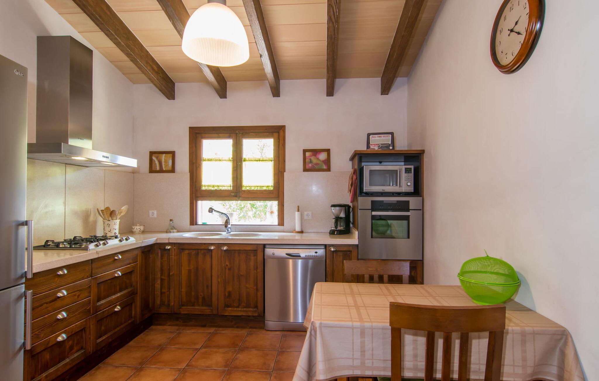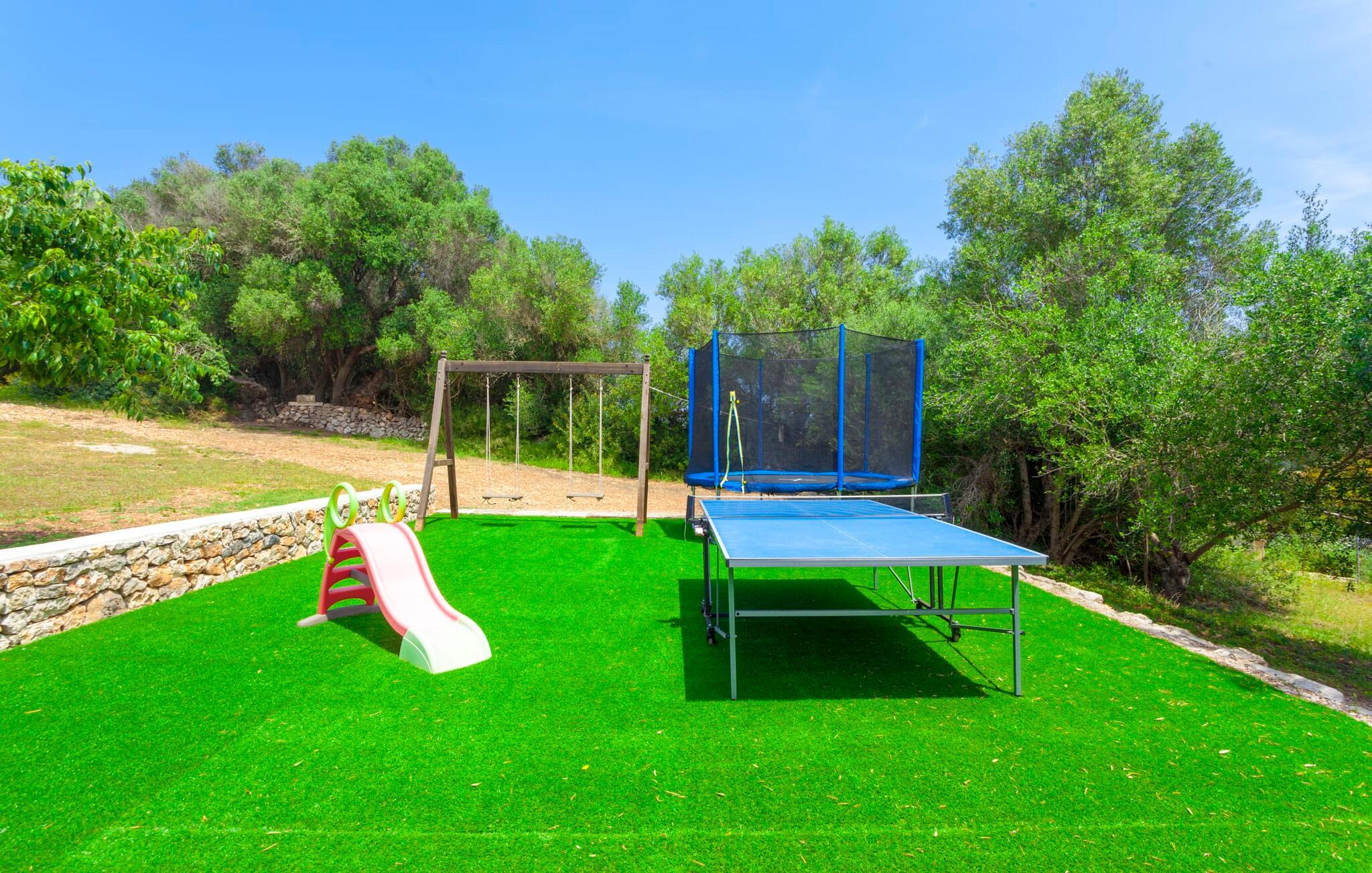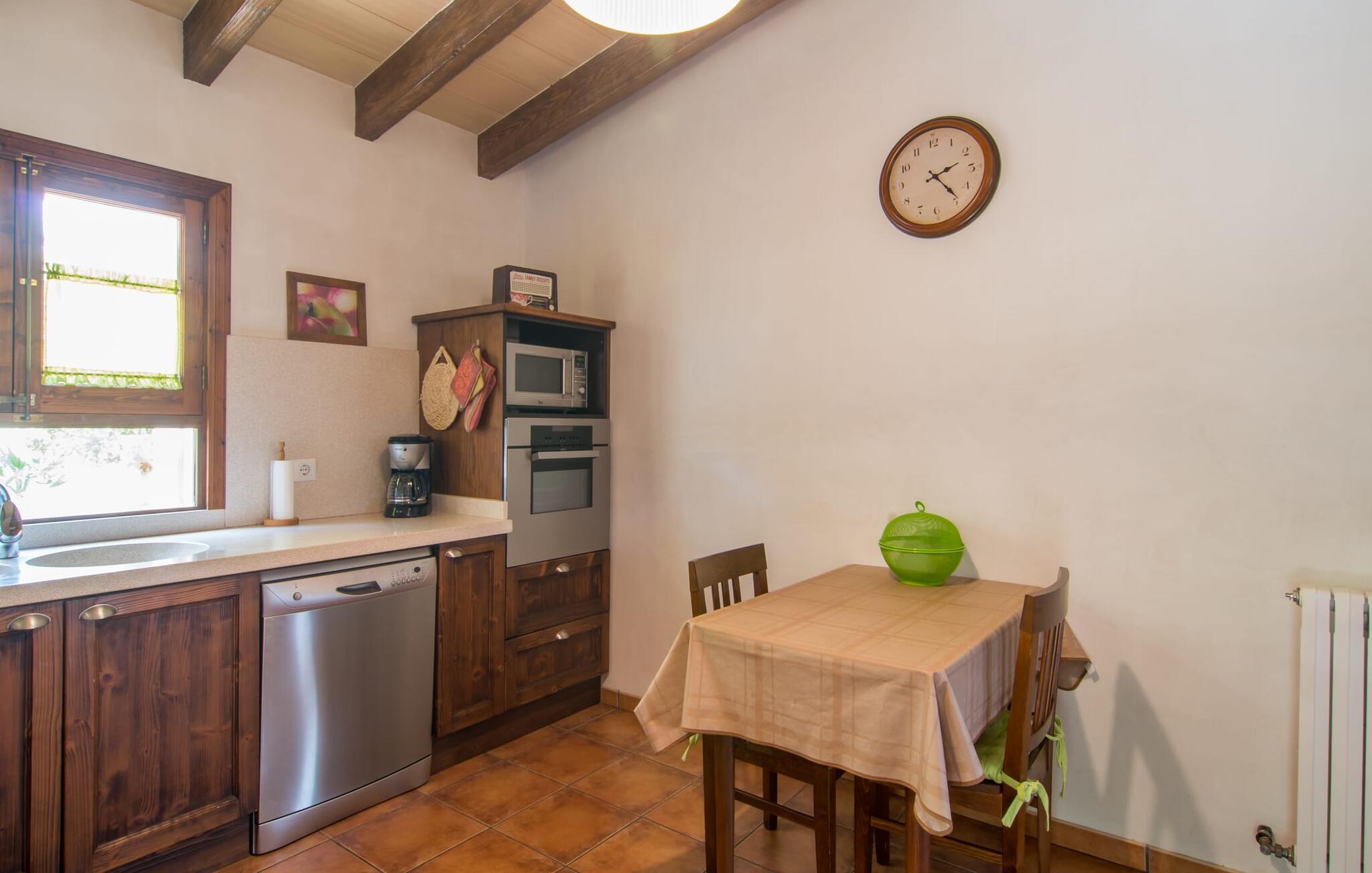 På den mest idylliske og afsides beliggenhed venter den charmerende villa "Can Galvany" bare på at byde de næste gæster velkommen. Og det starter uden for villaen, for alene udearealet får jeres kæbe til at falde. Omdrejningspunktet for det kærligt designede værelse er den store, skinnende grønne pool midt på en smuk solterrasse, der indbyder til bad. I kan helt sikkert tilbringe en afslappende eftermiddag eller to med en god bog på de komfortable liggestole omkring poolen. Og for dem, der foretrækker et mere skyggefuldt sted at sidde, er der lige ved terrassen en stor overdækket spiseplads med et stilfuldt bord, ideelt til en fælles middag. Dette kan tilberedes på den rustikke grill, som gør hvert stykke kød eller fisk til en kulinarisk fornøjelse. Til en kort eftermiddagslur anbefaler vi hængekøjen, som er placeret under en eventyrlig kuppel lavet af træstammer og blade. Simpelthen utroligt! Et andet udendørs højdepunkt er mere beregnet til de mindste: gynger, rutsjebaner, bordtennisborde og en græsplæne til at slippe dampen af sikrer masser af sjov. Denne villa har noget at tilbyde for enhver smag. Villaens indretning er en kombination af rustik og moderne stil på én etage – I behøver ikke bekymre jer om over- eller underetagen. Den åbne stue-spisestue fremstår lidt mere reserveret, men udstråler så meget komfort med dets indirekte lys, udskårne tagbjælker og stilfulde møbler, at I får lyst til at synke ned i en af de smarte sofaer og tilbringe timer der. Skulle I føle jer lidt sulten, finder I alt hvad I skal bruge i villaens køkken til at tilberede alverdens lækre lækkerier. Til en afslappende nat bagefter har villaen tre smukke dobbeltværelser, som alle har subtile møbler og lyse, beroligende farver - perfekt til at genoplade jeres batterier. Et af værelserne har endda et pragtfuldt walk-in-closet og en-suite badeværelse; Der er ingen tvivl om, hvilket soveværelse der er mest værdifuldt. Men selvfølgelig kan de andre gæster også starte dagen med et brusebad: endnu et smukt udstyret badeværelse er tilgængeligt for alle at bruge, som de ønsker. Gemt i det smukke landskab i det smukke sydøstlige Mallorca ligger villaen “Can Galvany”. Feriestedet Felanitx ligger kun 6 km væk og tilbyder alt til jeres daglige behov - fra supermarkedet og det ugentlige marked til apoteker og pengeautomater. Den nærmeste strand, Cala Murada, ligger også kun 12,3 km væk i bil. Bemærk venligst, at denne ejendom ikke accepterer ungdomsgrupper eller polterabender. En ungdomsgruppe på denne ejendom består af personer på 27 år eller derunder. Book ikke denne ejendom, hvis I er en ungdomsgruppe eller polterabend, da jeres reservation vil blive afvist, når den er booket, hvilket også kan være tilfældet ved ankomst til ejendommen eller under jeres ophold, og I vil ikke modtage en refusion