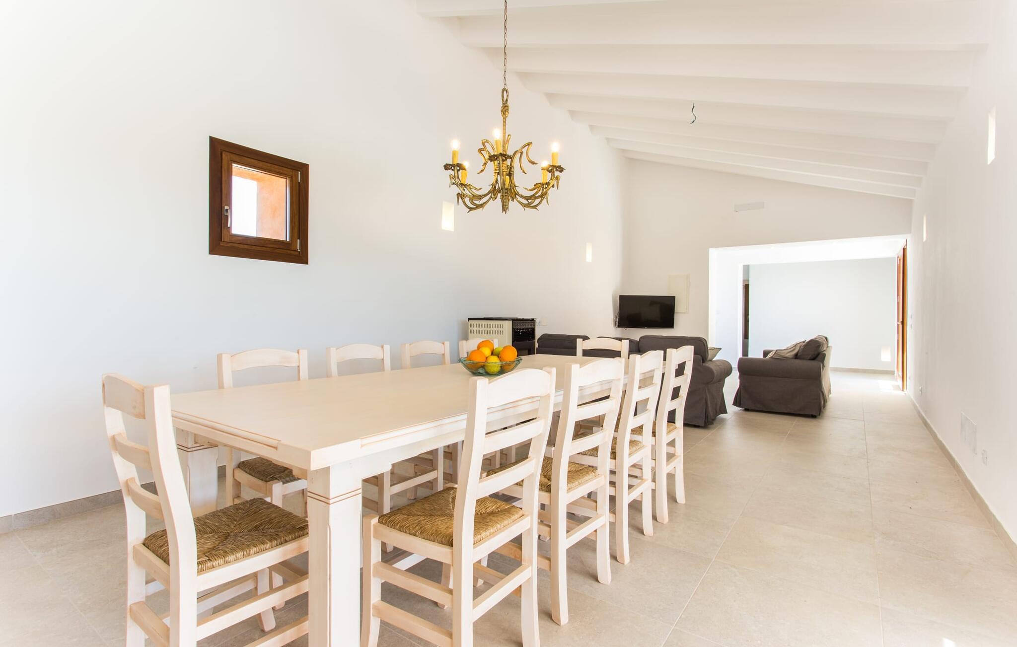 "Can Gusti" er bygget til jer. Til jeres behov, til jeres krav, til jeres afslapning. Den L-formede bygning opfylder perfekt kravene til et indbydende nyt hus og afspejler med sin stenfacade også den mallorcanske landstedstradition. Samme indtryk opstår på den rummelige ejendom med talrige træer - gamle og nyplantede - og et landligt miljø præget af landbrugsaktivitet. Hegn i nærheden af haven, pool og terrasseområder er ikke påkrævet, da der ikke er nogen naboer i syne. Afslappende liggestole venter på jer på det frodige grønne kunstgræs. Parasoller, som af og til er nødvendige for beskyttelse, når solen er for stærk, er også tilgængelige. Den turkise, mosaikbelagte pool med en let trappet indgang er ret smal, men samtidig lang nok til komfortabelt at svømme i længder. Svømmehallen er på den ene side omkranset af græsplænen og på den anden side af terrassen, der strækker sig til bygningen og er delvist overdækket af en markise. Herunder finder I ikke kun et langt træbord med smarte stole i rattanlook, men også et hyggeligt loungehjørne. Med en mobil gasgrill er der intet i vejen for en skøn grillaften. Indretningen er en fuldstændig afvigelse fra den klassiske mallorcanske stil, men det er på ingen måde skuffende. Det er indbydende lyst, ikke kun på grund af de store terrassedøre i glas, der fører ud til terrassen. Strålende vægge, hvide loftsbjælker og matte sandstensgulvfliser står kun i kontrast til det naturlige træ i de mørke vindues- og dørkarme. Den sarte farvepalet går igen i den åbne stue med et væghængt tv og er desuden udstyret med elegante antracitfarvede hyggesofaer. Det lange spisebord i lyst vintage-look skaber forbindelse til køkkenet, som kun er adskilt af en elegant disk. Bagved er et fuldt udstyret landstedskøkken med et hvidkalket look, som har alle de tekniske faciliteter, I har brug for til en afslappet ferie med selvforplejning. Alle fire soveværelser er på samme etage. Disse er også lyse, venlige og attraktive og giver plads nok til at opbevare jeres feriegarderobe. Det store soveværelse har eget badeværelse, de to andre badeværelser er frit tilgængelige fra gangen. Badeværelset har et trendy og moderne design: brusekabiner i gulvniveau med regnbruser samt eksklusive fliser i trælook, sten eller grå mosaik - hver individuelt designet. Ferie på højt niveau – denne smukke nye villa hører uden tvivl til i denne kategori. Villaen er desuden drevet af klimavenlig solenergi, hvorfor installation af poolbelysning, aircondition og andre enheder, der forbruger meget energi, ikke er mulig. Beliggenheden spiller naturligvis også en vigtig rolle for at sikre en behagelig ferie, og også på dette punkt modtager villaen "Can Gusti" vores særlige anbefaling. Som I kan se på vores luftfotos, er det vidunderligt landligt og roligt og har ingen direkte naboer. Men det ville være en skam, hvis I ikke udforskede i det mindste noget af det skønne, som Mallorca har at byde på. Dette inkluderer at besøge byer som Felanitx eller Manacor og slentre gennem markederne der. Til sightseeing kan I også besøge øens vartegn, herunder klostret Sant Salvador, der ligger på et bjerg nær Felanitx, og også de talrige strande i øst, især den næsten uberørte badebugt Cala Varques og mange, mange, flere. Sportsentusiaster bør bestemt besøge Rafa Nadal Tennis Academy, som ligger kun omkring 8 km væk. Hvis I ikke kan passe alt ind i Villa Can Gusti ved jeres første besøg, skal I bare bestille igen næste år. En storslået villa venter på jer, selvom I er der for første gang. Det attraktive poolområde og de omfattende kunstgræsarealer er et sandt højdepunkt i den nye villa "Can Gusti". Ejendommen er beliggende i en vidunderlig rolig, landlig beliggenhed lige nord for Felanitx. I kan enten tage til Felanitx for at shoppe dagligvarer og andre fornødenheder, eller endda til Manacor for mere omfattende shoppingture. Der er kun 20 km til "Calas de Mallorca", de smukke sandstrande på østkysten - en behagelig afstand til en eftermiddagstur.