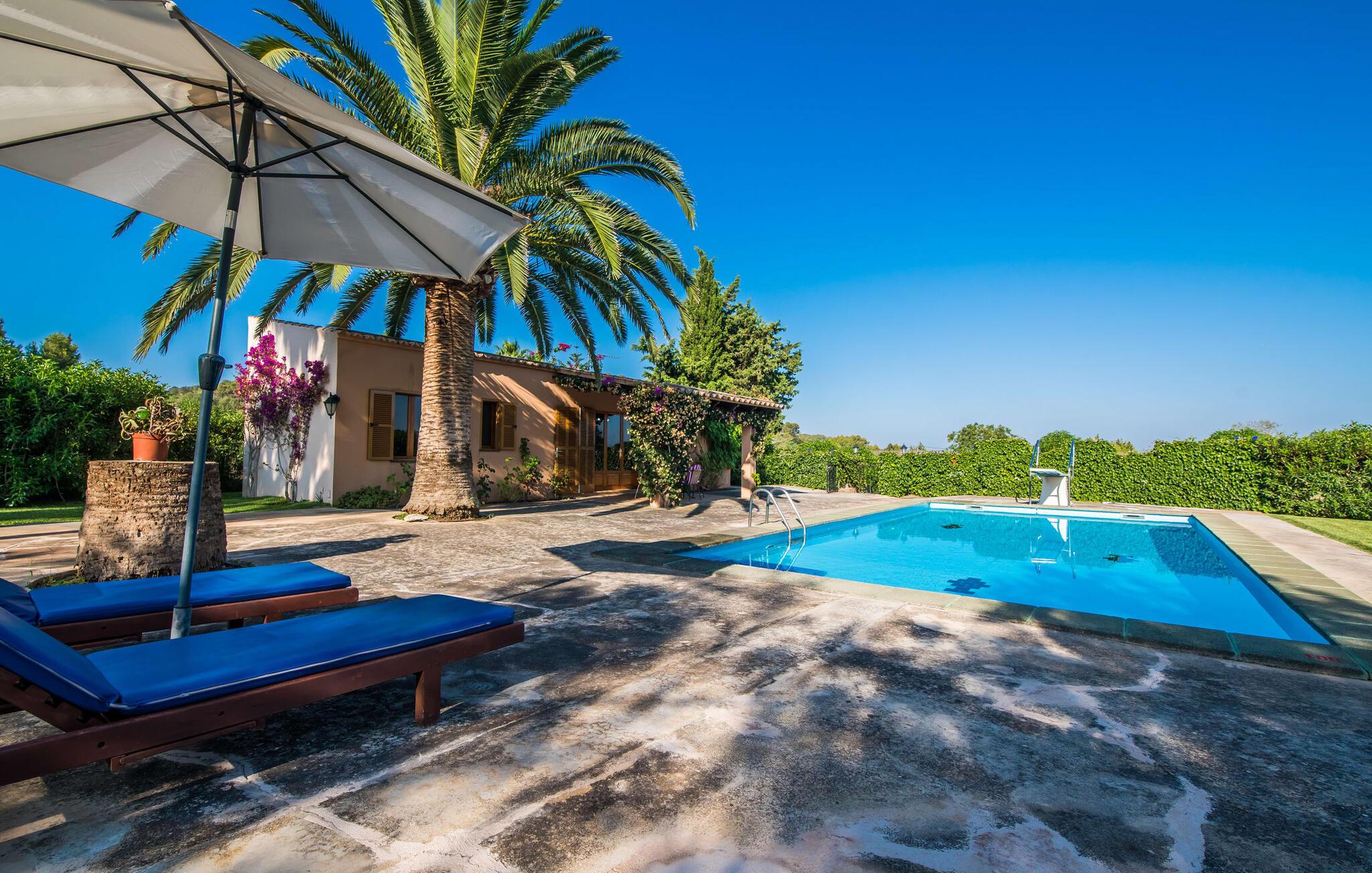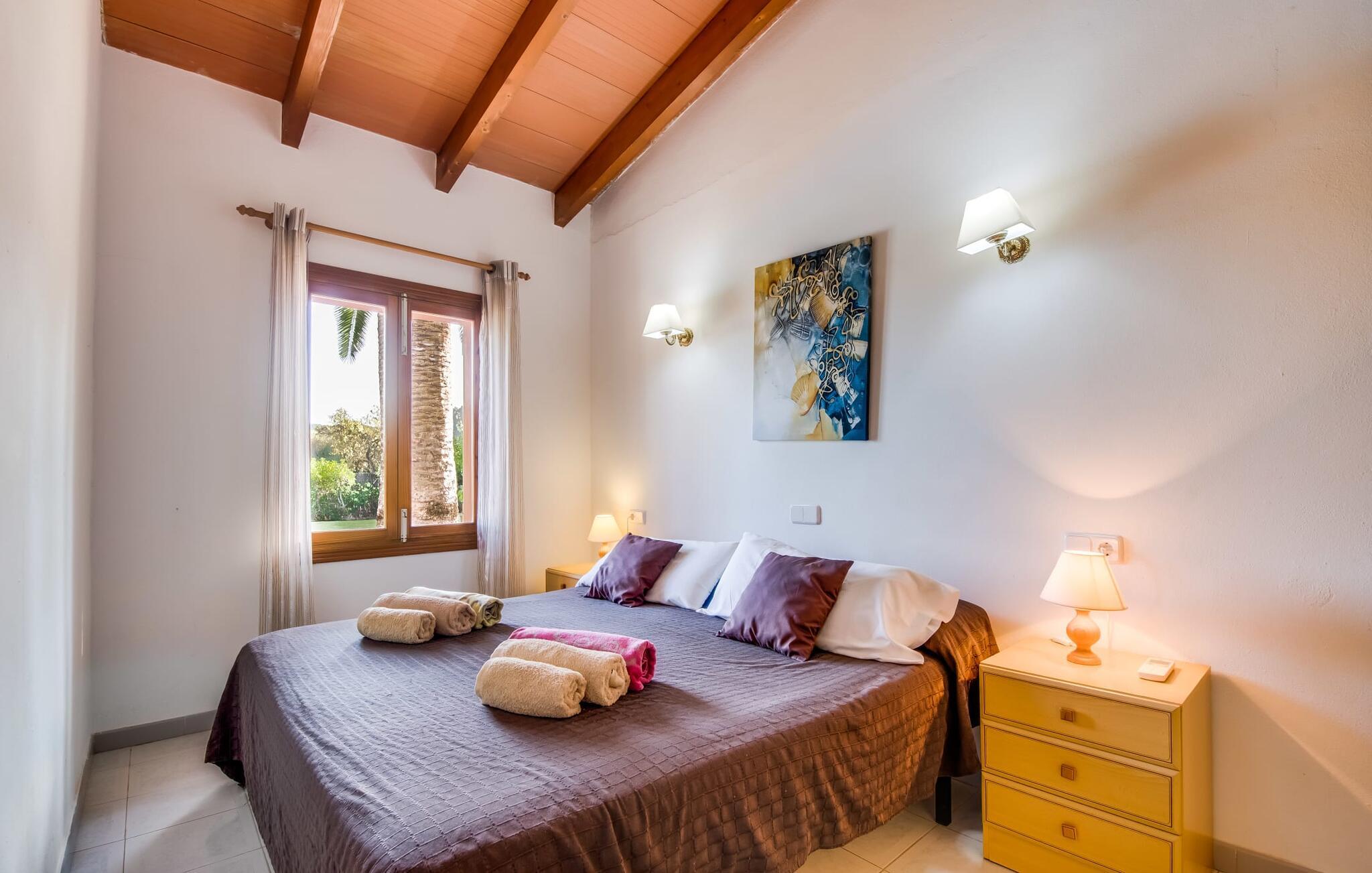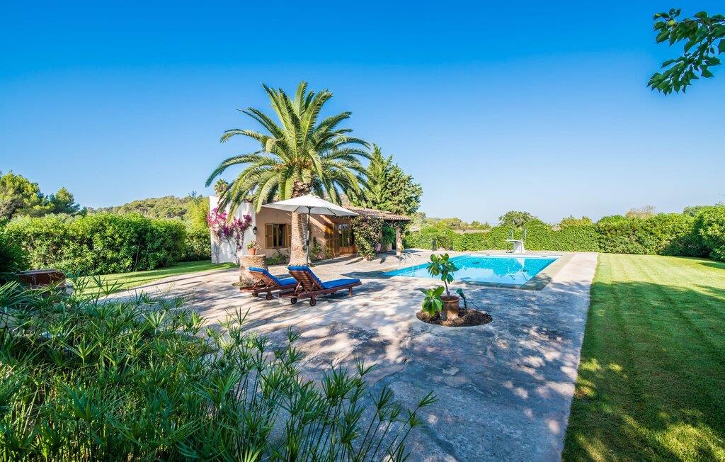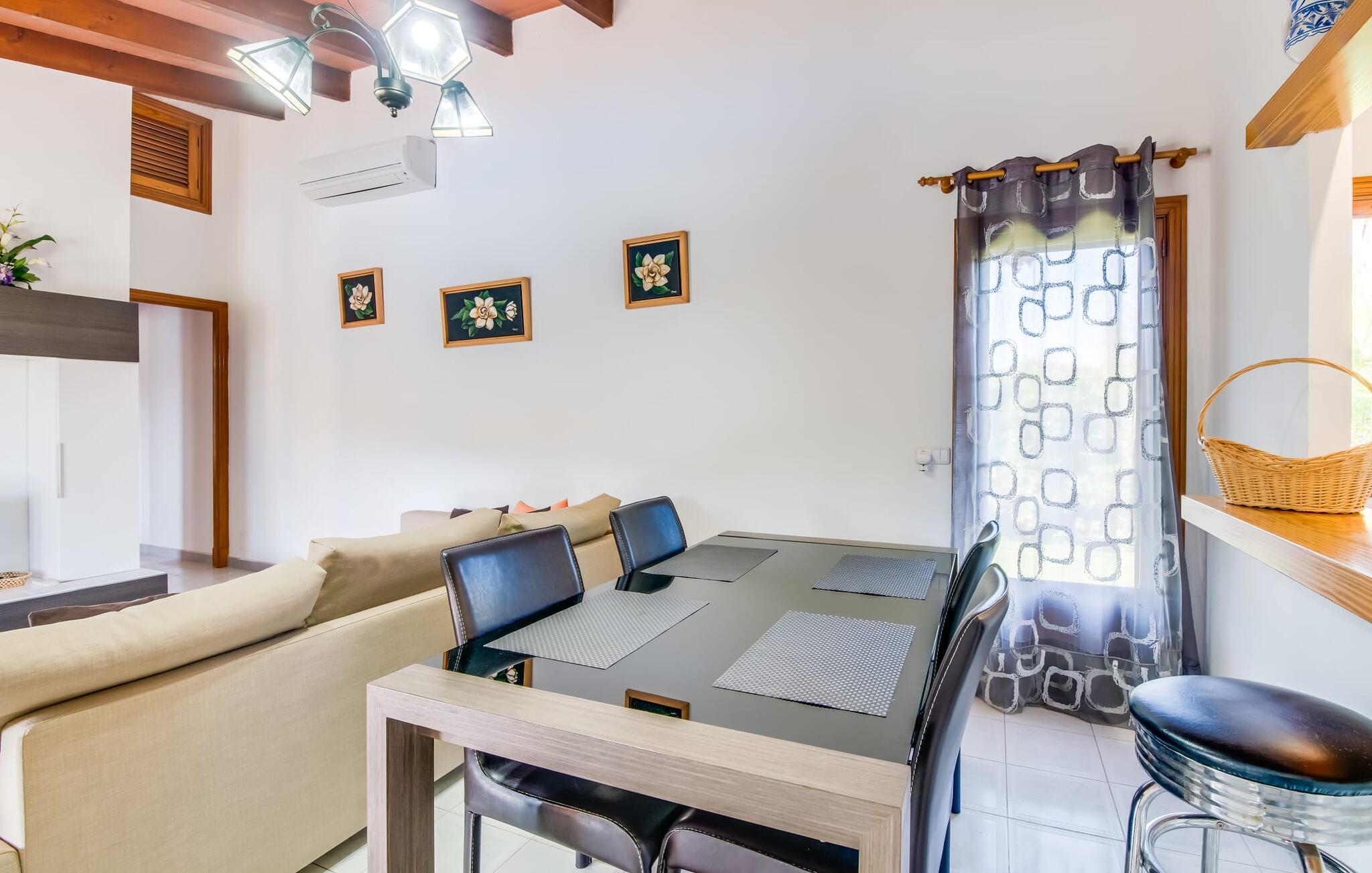 "Can Jaume d'Es Carritxo" er utroligt tiltalende ved første øjekast. Den delikate bygning er omgivet af enorme palmer og er indlejret i en velplejet have med store græsplæner, storslåede blomstrende planter og en række middelhavsbuske. Så snart I kommer til stedet via landevejen, vil jeres hjerte banke hurtigere, og I vil vide, at I er nået til jeres destination. Da I rejser som par, kan I have brug for at bruge lidt tid sammen, hvilket ofte er svært i hverdagen. Eller I rejser som en lille familie med børn og firbenede venner - denne konstellation er også meget velkommen her. Eller måske rejser I med jeres bedste ven eller en barndomsven, så I har meget at snakke om og nogle gange slet ikke snakker – her er alt muligt. Lidt forkælelse bør også være en del af jeres ferieprogram – hertil hører også den store pool med vippebræt. Efter en forfriskende svømmetur kan I slappe af på en af liggestolene i parasollens skygge, læse en bog eller bare dase. En afslappende eftermiddag ved poolen med mandelkage, sobrasada, figner, oliven, soltørrede tomater og pimientos vil give jer mulighed for at slappe af og slappe af i jeres feriehus. I er velkommen til at bruge den indbyggede grill og lade jeres kreativitet få frit løb med jeres grillopskrifter. I kan nyde jeres måltider på den overdækkede terrasse foran huset eller i det smukke indre af den dejlige villa. Her finder I hjertet i form af et åbent opholds-, spise- og køkkenalrum. Spisebordet er placeret mellem den hyggelige opholdsstue og det åbne køkken. Sidstnævnte er løst adskilt fra opholdsområdet af en bar i amerikansk stil og er fuldt udstyret til komfortabel selvforsyning. De lyse gulvfliser og hvide vægge og højt til loftet får rummet til at virke meget større. Dette smarte landsted suppleres af varmen fra trælofter, vinduer og døre. Denne attraktive atmosfære er væsentligt med til at sikre, at I kan slappe helt af – på alle tider af året, da det lille hus både har aircondition og varme. Især i årets roligere måneder er "Can Jaume d'Es Carritxo" en særlig attraktiv mulighed for en ferie på landet, langt væk fra turisternes skarer. Denne sydlige region passer perfekt til jeres valg af et roligt landsted. Området, der er krydset af bølgende bakker, emmer af fred og afslapning. Udflugter til klostret Sant Salvador, som kan ses på afstand, eller til Parc Natural de Mandragó vil helt sikkert glæde jer. Samtidig kan I opleve turismefrit landsbyliv i de små byer. Kystbyerne Santanyí eller Portocolom byder på en smuk atmosfære med bløde farver. Disse fantastiske destinationer ligger kun en kort køretur væk på landevejen, som kun kan høres, når vinden blæser fra en bestemt retning. Vil I se havet, så tag til Cala d'Or, Cala Santanyí eller en af de andre smukke badebugter, hvoraf mange har en fjordlignende karakter. “Can Jaume d'Es Carritxo” er ret tæt på paradis, men I bør helt sikkert opleve det selv! "Can Jaume d'Es Carritxo" er en fortryllende smuk, romantisk oase for to personer. Det er i vidunderlige landlige omgivelser, omgivet af de bølgende, skovklædte bakker i Serres de Llevant, som er grønne hele året rundt. For jeres daglige indkøb kan I besøge de omkringliggende landsbyer som Cas Concos og tage 12 minutters kørsel til Felanitx. Oplev naturens skønhed - ikke kun inde i landet i syd, men også på de smukke strande som Cala d'Or eller Cala Marçal, der kun ligger 9 km væk.