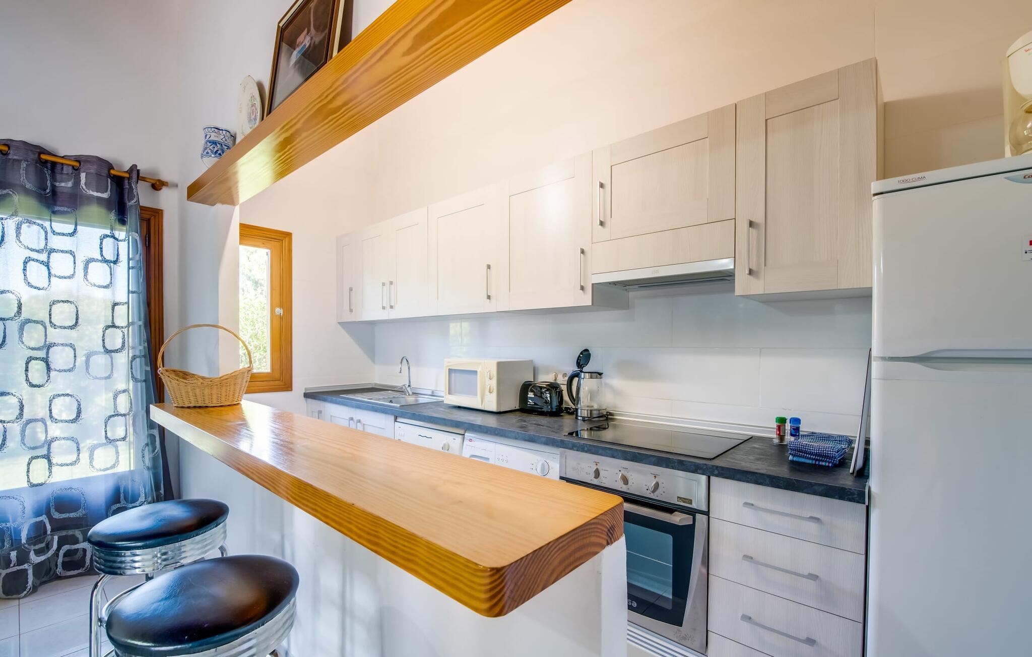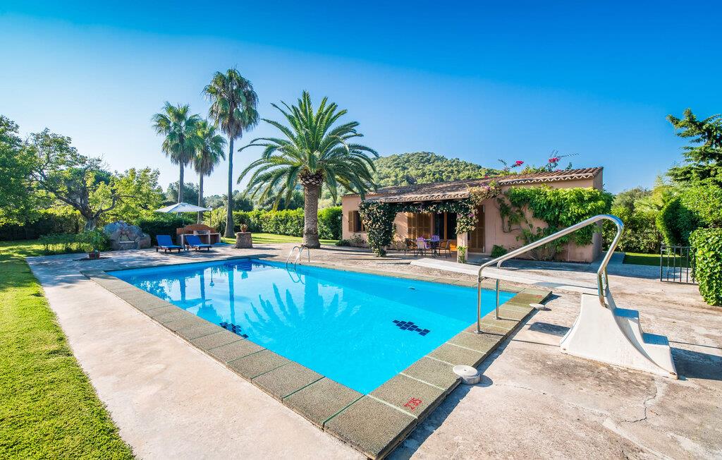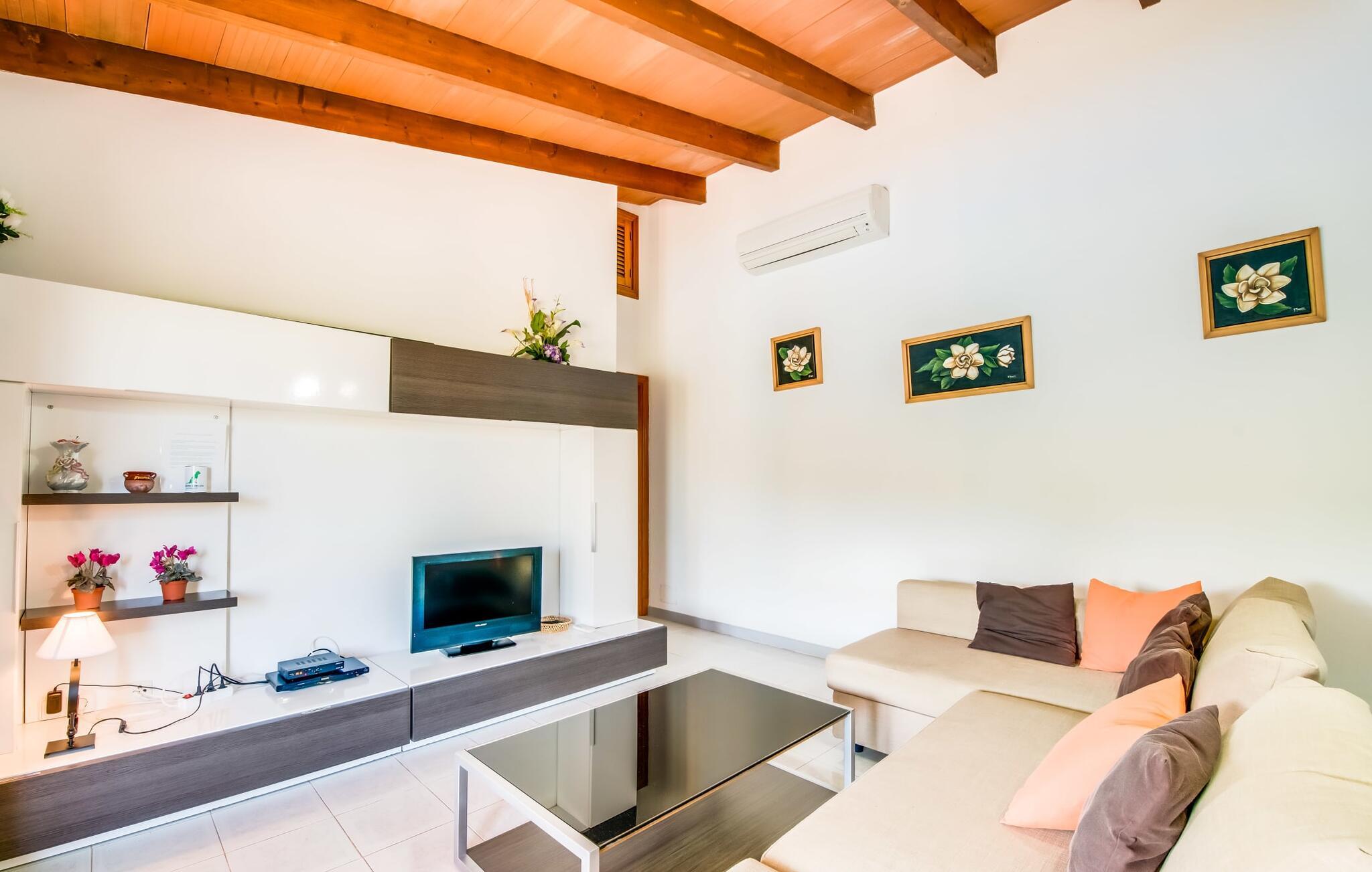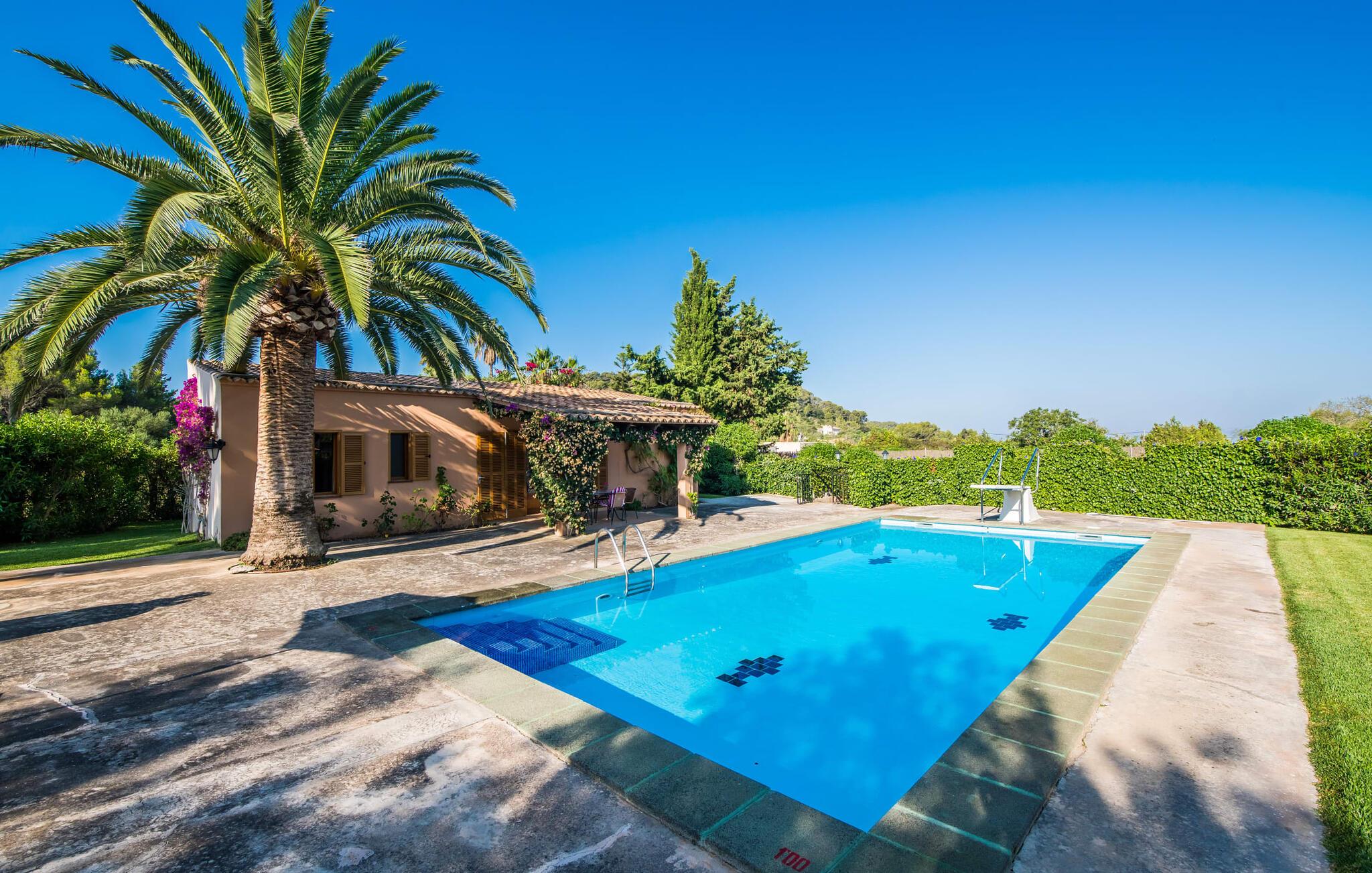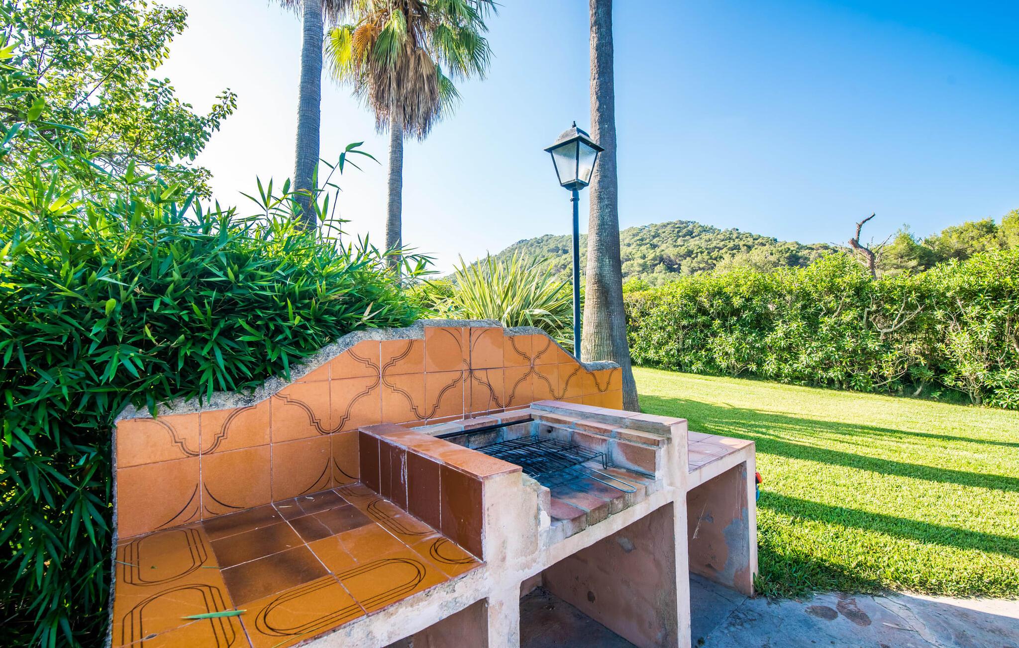 "Can Jaume d'Es Carritxo" er utroligt tiltalende ved første øjekast. Den delikate bygning er omgivet af enorme palmer og er indlejret i en velplejet have med store græsplæner, storslåede blomstrende planter og en række middelhavsbuske. Så snart I kommer til stedet via landevejen, vil jeres hjerte banke hurtigere, og I vil vide, at I er nået til jeres destination. Da I rejser som par, kan I have brug for at bruge lidt tid sammen, hvilket ofte er svært i hverdagen. Eller I rejser som en lille familie med børn og firbenede venner - denne konstellation er også meget velkommen her. Eller måske rejser I med jeres bedste ven eller en barndomsven, så I har meget at snakke om og nogle gange slet ikke snakker – her er alt muligt. Lidt forkælelse bør også være en del af jeres ferieprogram – hertil hører også den store pool med vippebræt. Efter en forfriskende svømmetur kan I slappe af på en af liggestolene i parasollens skygge, læse en bog eller bare dase. En afslappende eftermiddag ved poolen med mandelkage, sobrasada, figner, oliven, soltørrede tomater og pimientos vil give jer mulighed for at slappe af og slappe af i jeres feriehus. I er velkommen til at bruge den indbyggede grill og lade jeres kreativitet få frit løb med jeres grillopskrifter. I kan nyde jeres måltider på den overdækkede terrasse foran huset eller i det smukke indre af den dejlige villa. Her finder I hjertet i form af et åbent opholds-, spise- og køkkenalrum. Spisebordet er placeret mellem den hyggelige opholdsstue og det åbne køkken. Sidstnævnte er løst adskilt fra opholdsområdet af en bar i amerikansk stil og er fuldt udstyret til komfortabel selvforsyning. De lyse gulvfliser og hvide vægge og højt til loftet får rummet til at virke meget større. Dette smarte landsted suppleres af varmen fra trælofter, vinduer og døre. Denne attraktive atmosfære er væsentligt med til at sikre, at I kan slappe helt af – på alle tider af året, da det lille hus både har aircondition og varme. Især i årets roligere måneder er "Can Jaume d'Es Carritxo" en særlig attraktiv mulighed for en ferie på landet, langt væk fra turisternes skarer. Denne sydlige region passer perfekt til jeres valg af et roligt landsted. Området, der er krydset af bølgende bakker, emmer af fred og afslapning. Udflugter til klostret Sant Salvador, som kan ses på afstand, eller til Parc Natural de Mandragó vil helt sikkert glæde jer. Samtidig kan I opleve turismefrit landsbyliv i de små byer. Kystbyerne Santanyí eller Portocolom byder på en smuk atmosfære med bløde farver. Disse fantastiske destinationer ligger kun en kort køretur væk på landevejen, som kun kan høres, når vinden blæser fra en bestemt retning. Vil I se havet, så tag til Cala d'Or, Cala Santanyí eller en af de andre smukke badebugter, hvoraf mange har en fjordlignende karakter. “Can Jaume d'Es Carritxo” er ret tæt på paradis, men I bør helt sikkert opleve det selv! "Can Jaume d'Es Carritxo" er en fortryllende smuk, romantisk oase for to personer. Det er i vidunderlige landlige omgivelser, omgivet af de bølgende, skovklædte bakker i Serres de Llevant, som er grønne hele året rundt. For jeres daglige indkøb kan I besøge de omkringliggende landsbyer som Cas Concos og tage 12 minutters kørsel til Felanitx. Oplev naturens skønhed - ikke kun inde i landet i syd, men også på de smukke strande som Cala d'Or eller Cala Marçal, der kun ligger 9 km væk.