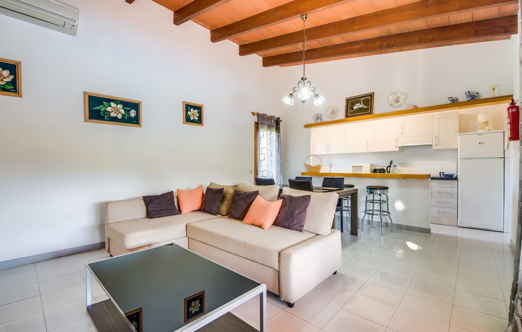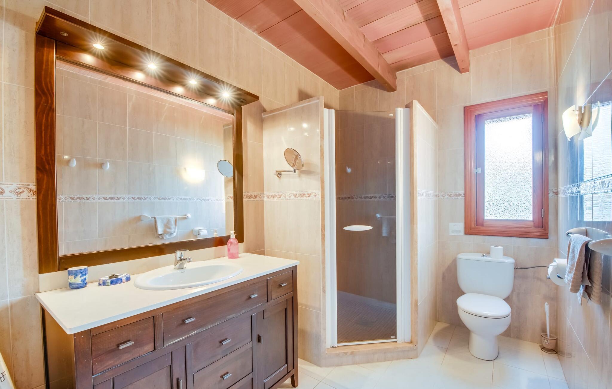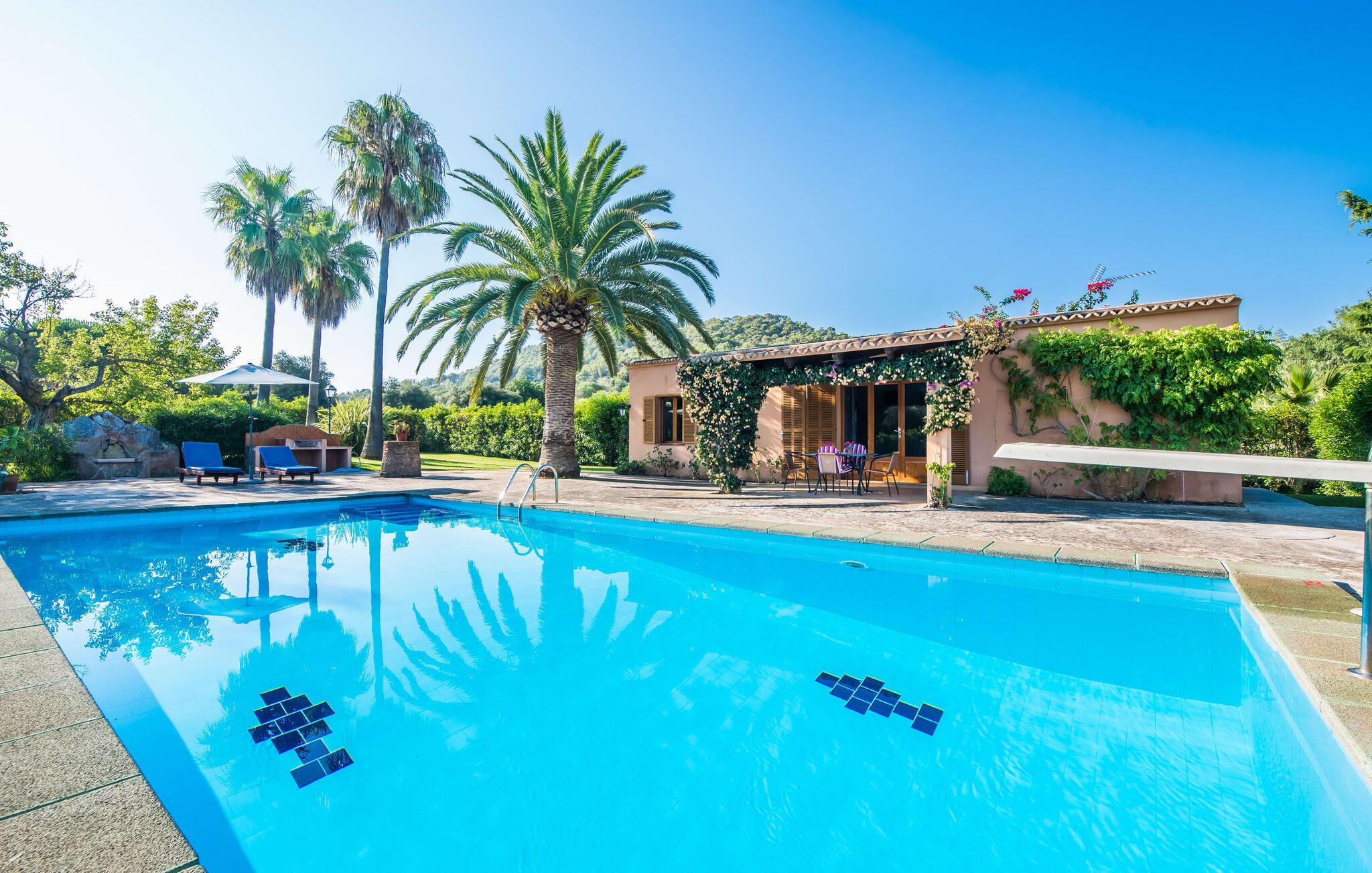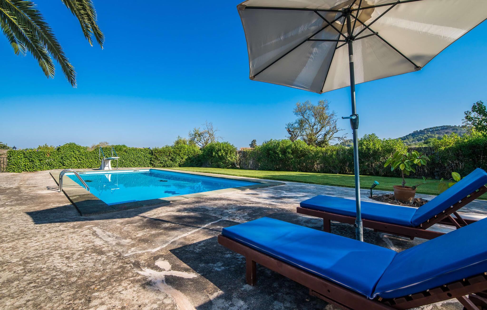 "Can Jaume d'Es Carritxo" er utroligt tiltalende ved første øjekast. Den delikate bygning er omgivet af enorme palmer og er indlejret i en velplejet have med store græsplæner, storslåede blomstrende planter og en række middelhavsbuske. Så snart I kommer til stedet via landevejen, vil jeres hjerte banke hurtigere, og I vil vide, at I er nået til jeres destination. Da I rejser som par, kan I have brug for at bruge lidt tid sammen, hvilket ofte er svært i hverdagen. Eller I rejser som en lille familie med børn og firbenede venner - denne konstellation er også meget velkommen her. Eller måske rejser I med jeres bedste ven eller en barndomsven, så I har meget at snakke om og nogle gange slet ikke snakker – her er alt muligt. Lidt forkælelse bør også være en del af jeres ferieprogram – hertil hører også den store pool med vippebræt. Efter en forfriskende svømmetur kan I slappe af på en af liggestolene i parasollens skygge, læse en bog eller bare dase. En afslappende eftermiddag ved poolen med mandelkage, sobrasada, figner, oliven, soltørrede tomater og pimientos vil give jer mulighed for at slappe af og slappe af i jeres feriehus. I er velkommen til at bruge den indbyggede grill og lade jeres kreativitet få frit løb med jeres grillopskrifter. I kan nyde jeres måltider på den overdækkede terrasse foran huset eller i det smukke indre af den dejlige villa. Her finder I hjertet i form af et åbent opholds-, spise- og køkkenalrum. Spisebordet er placeret mellem den hyggelige opholdsstue og det åbne køkken. Sidstnævnte er løst adskilt fra opholdsområdet af en bar i amerikansk stil og er fuldt udstyret til komfortabel selvforsyning. De lyse gulvfliser og hvide vægge og højt til loftet får rummet til at virke meget større. Dette smarte landsted suppleres af varmen fra trælofter, vinduer og døre. Denne attraktive atmosfære er væsentligt med til at sikre, at I kan slappe helt af – på alle tider af året, da det lille hus både har aircondition og varme. Især i årets roligere måneder er "Can Jaume d'Es Carritxo" en særlig attraktiv mulighed for en ferie på landet, langt væk fra turisternes skarer. Denne sydlige region passer perfekt til jeres valg af et roligt landsted. Området, der er krydset af bølgende bakker, emmer af fred og afslapning. Udflugter til klostret Sant Salvador, som kan ses på afstand, eller til Parc Natural de Mandragó vil helt sikkert glæde jer. Samtidig kan I opleve turismefrit landsbyliv i de små byer. Kystbyerne Santanyí eller Portocolom byder på en smuk atmosfære med bløde farver. Disse fantastiske destinationer ligger kun en kort køretur væk på landevejen, som kun kan høres, når vinden blæser fra en bestemt retning. Vil I se havet, så tag til Cala d'Or, Cala Santanyí eller en af de andre smukke badebugter, hvoraf mange har en fjordlignende karakter. “Can Jaume d'Es Carritxo” er ret tæt på paradis, men I bør helt sikkert opleve det selv! "Can Jaume d'Es Carritxo" er en fortryllende smuk, romantisk oase for to personer. Det er i vidunderlige landlige omgivelser, omgivet af de bølgende, skovklædte bakker i Serres de Llevant, som er grønne hele året rundt. For jeres daglige indkøb kan I besøge de omkringliggende landsbyer som Cas Concos og tage 12 minutters kørsel til Felanitx. Oplev naturens skønhed - ikke kun inde i landet i syd, men også på de smukke strande som Cala d'Or eller Cala Marçal, der kun ligger 9 km væk.