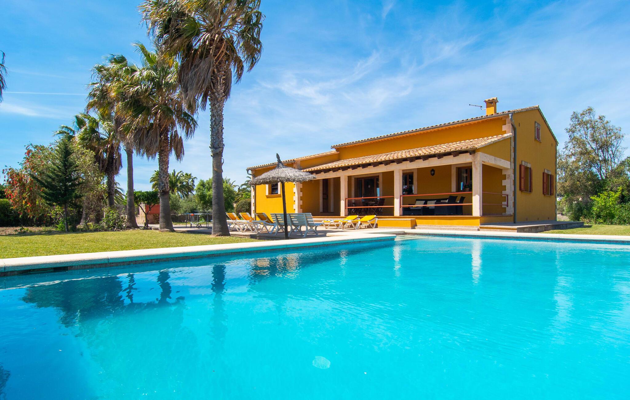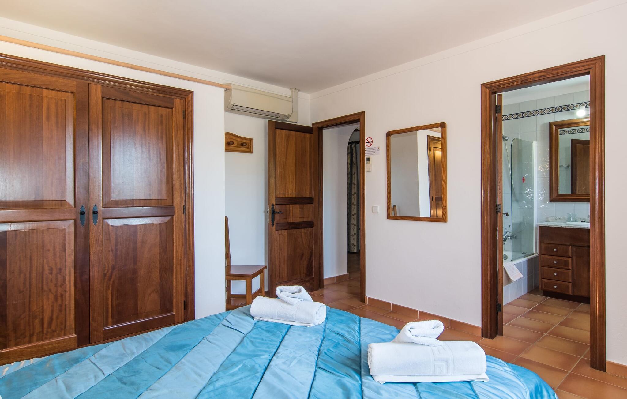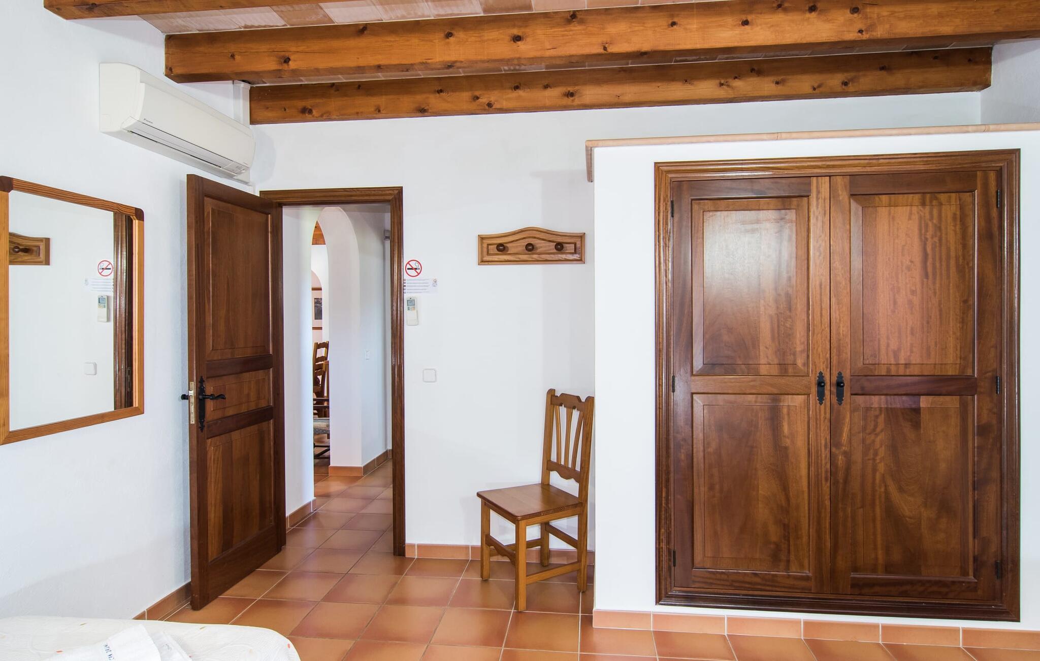 "Can Jaume Pollenca" byder på traditionel mallorcansk charme i spektakulære omgivelser, med en betagende udsigt over Tramuntana-bjergene og nem adgang til øens bedste strande. Selvom villaen er enklere end nogle moderne modstykker, gør dens landlige charme og beliggenhed med fire parkeringspladser den til et unikt valg for at udforske regionen. Nyd poolen, spil bordtennis eller slap af i palmernes skygge. Den overdækkede terrasse og grillplads er det perfekte sted at slappe af og nyde udendørs spisning. Indenfor giver det veludstyrede køkken mulighed for nem selvforplejning, og den hyggelige opholdsstue med tv og bibliotek sikrer, at alle kan slappe af i komfort. Villaen har tre soveværelser og to badeværelser (et en-suite), udstyret med robuste træmøbler, der forstærker den rustikke charme. Dobbeltsengen er 1,8 x 2 m, mens enkeltsengene er 1,9 m lange, hvilket giver afslappende komfort for alle. Strategisk beliggende i et meget roligt og rummeligt boligområde: Den legende "Can Jaume Pollenca" byder på ideelle indkøbs- og fritidsaktiviteter på de smukkeste steder på den nordlige del af øen. Uanset om I besøger Alcúdias middelaldergader og imponerende bymure eller Port de Pollença med dens berømte promenade, børnevenlige svømning og to strande, er det kun et spørgsmål om tid, før I hopper på cyklerne, snører vandrestøvlerne eller begiver jer ud. for en tur, tag en tur langs de vidunderligt buede gader. Serra de Tramuntana, Formentor, Santuari de Lluc og Sa Calobra venter på jer! Aircondition i ejendommen er inkluderet i prisen, men dets brug er begrænset mellem kl. 21.00 og 06.00.