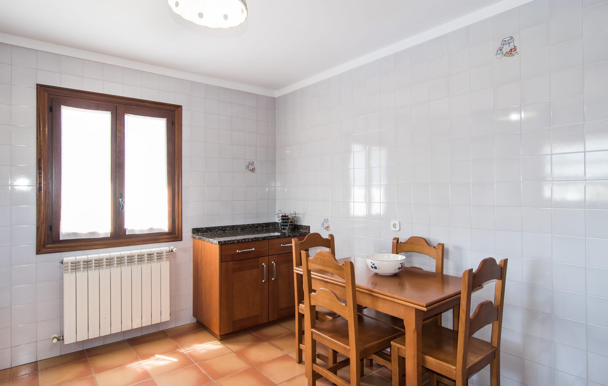 "Can Jaume Pollenca" byder på traditionel mallorcansk charme i spektakulære omgivelser, med en betagende udsigt over Tramuntana-bjergene og nem adgang til øens bedste strande. Dette er et feriehus i Fincallorca. Selvom villaen er enklere end nogle moderne modstykker, gør dens landlige charme og beliggenhed med fire parkeringspladser den til et unikt valg for at udforske regionen. Nyd poolen, spil bordtennis eller slap af i palmernes skygge. Den overdækkede terrasse og grillplads er det perfekte sted at slappe af og nyde udendørs spisning. Indenfor giver det veludstyrede køkken mulighed for nem selvforplejning, og den hyggelige opholdsstue med tv og bibliotek sikrer, at alle kan slappe af i komfort. Villaen har tre soveværelser og to badeværelser (et en-suite), udstyret med robuste træmøbler, der forstærker den rustikke charme. Dobbeltsengen er 1,8 x 2 m, mens enkeltsengene er 1,9 m lange, hvilket giver afslappende komfort for alle. Strategisk beliggende i et meget roligt og rummeligt boligområde: Den legende "Can Jaume Pollenca" byder på ideelle indkøbs- og fritidsaktiviteter på de smukkeste steder på den nordlige del af øen. Uanset om du besøger Alcúdias middelaldergader og imponerende bymure eller Port de Pollença med dens berømte promenade, børnevenlige svømning og to strande, er det kun et spørgsmål om tid, før du hopper på cyklerne, snører vandrestøvlerne eller begiver dig ud. for en tur, tag en tur langs de vidunderligt buede gader. Serra de Tramuntana, Formentor, Santuari de Lluc og Sa Calobra venter på dig! Aircondition i ejendommen er inkluderet i prisen, men dets brug er begrænset mellem kl. 21.00 og 06.00.