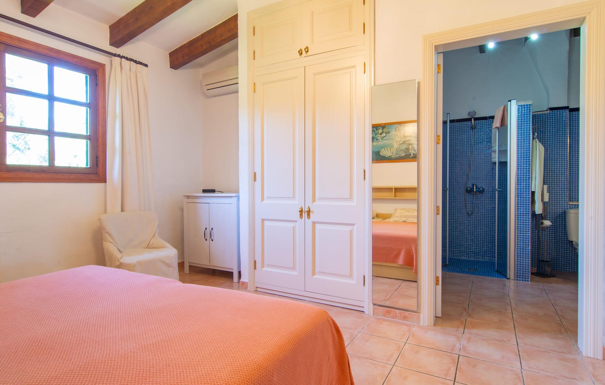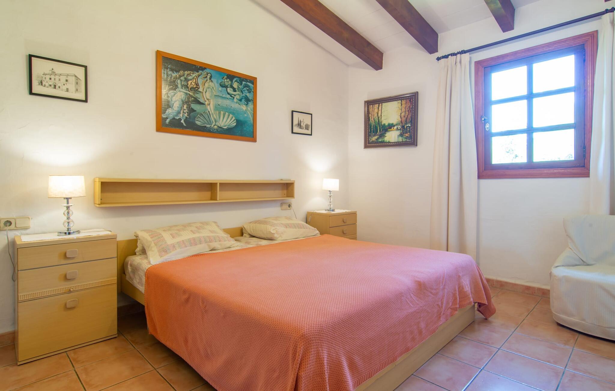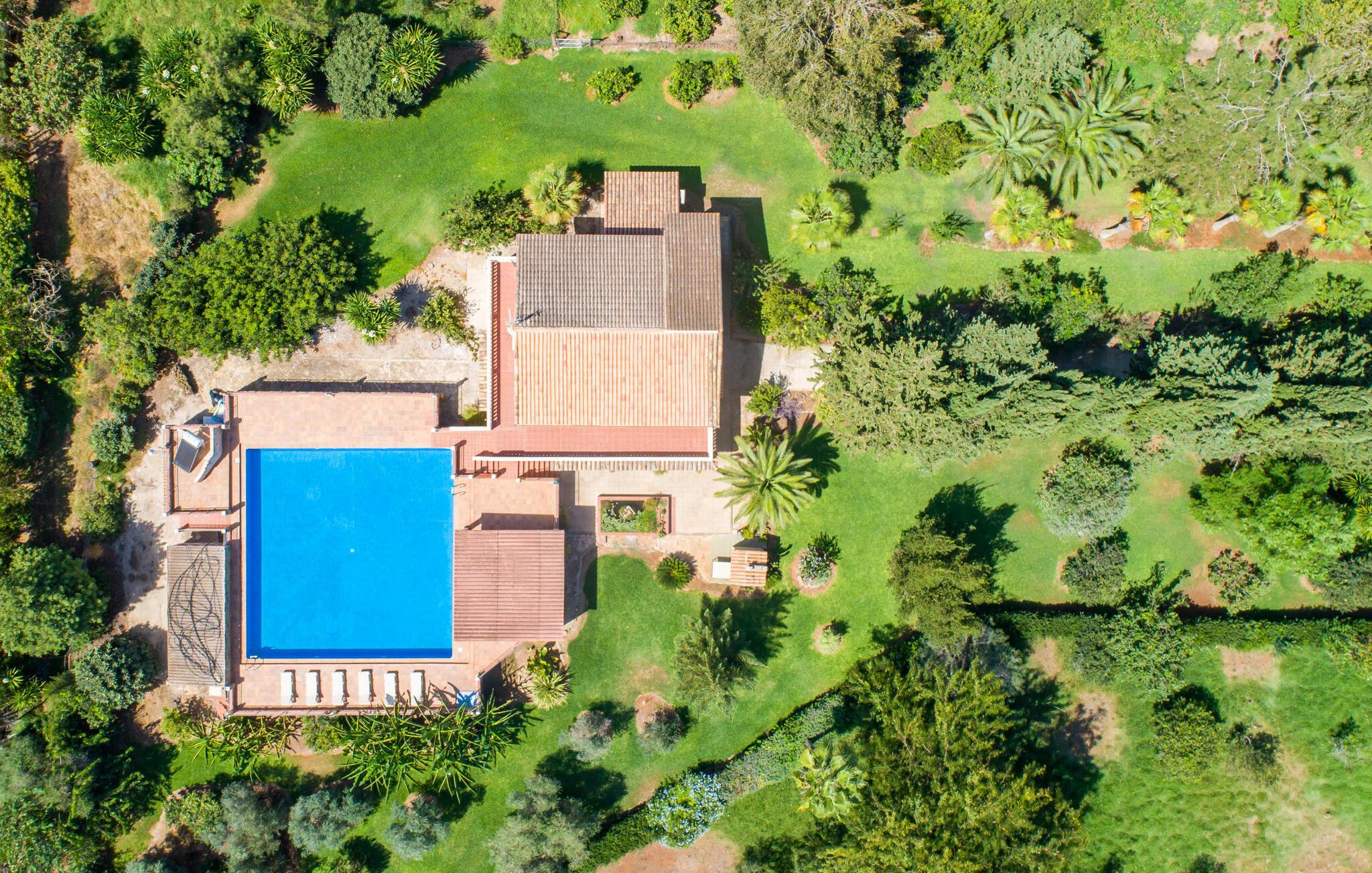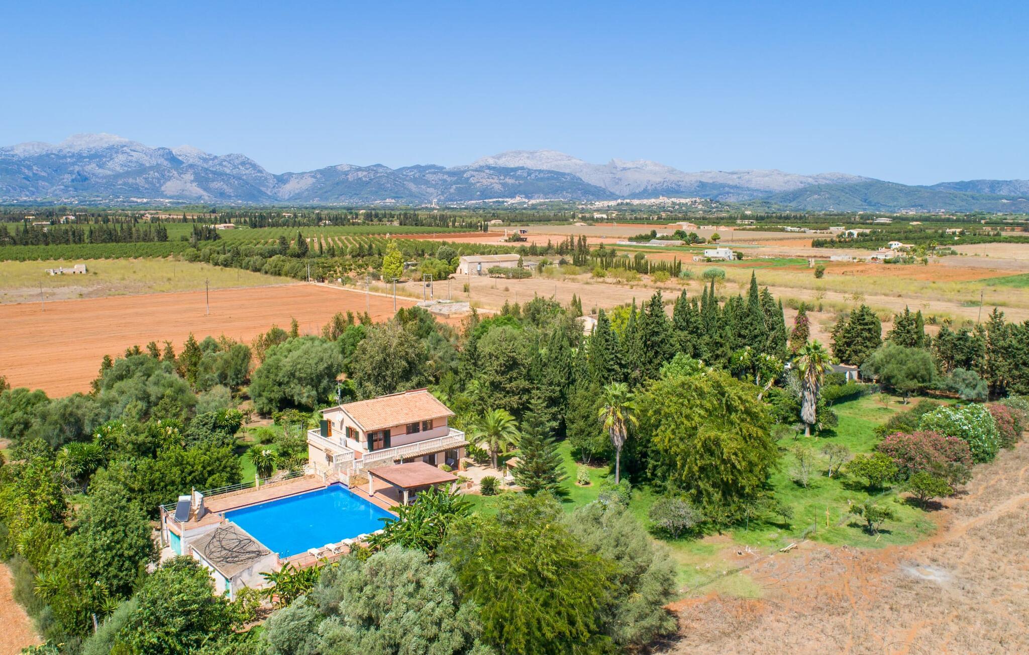 Det tyndt befolkede område omkring Muro er overvejende landbrugsmæssigt og meget stille, så I kan nyde en meget afslappende ferie her. Besøgende på Villa “Can Jener” bydes hjerteligt velkommen til denne meget velholdte ejendom med frodig middelhavsvegetation. En godt asfalteret adgangsvej fører jer til jeres lille grønne ferieparadis, hvor I kan parkere jeres bil i skyggen under carporten. Det hyggelige 4.000 m² store udendørsareal inviterer jer til at tilbringe lange perioder i det fri. Udover den attraktive græsplæne med masser af solbadningsområder byder haven også på talrige muligheder for at slappe af i den naturlige skygge takket være dens omfattende træbestand. Medfølgende børn (i skolealderen) kan lege, løbe rundt på den rummelige grund og hygge sig for eksempel med bordtennis. Det absolutte højdepunkt for alle er naturligvis den ekstra store pool lige ved siden af huset! Med en størrelse på 12 x 12 m og en maksimal dybde på 1,80 m er det virkelig en skønhed, selv sporty svømmere kan svømme længder her og holde sig i form på ferien. Efter en forfriskende svømmetur i poolen bør I helt sikkert lade jer friste og snuppe en af de otte liggestole på den omkringliggende terrasse og nyde den mallorcanske sol i fulde drag. Ønsker I lidt mere skygge i ny og næ, kan I finde jer godt tilpas på det overdækkede område af poolterrassen - måske med en god bog og en lækker drink? Her er også et stort bord til udendørs måltider eller brætspil. En lille trappe fører fra poolen ned til haven, hvor en halvåben veranda - inklusive et behageligt opholdsområde og en anden spiseplads - venter på jeres brug til aftengrillen. Denne traditionelle villa er en gammel bygning, der er mere end 100 år gammel. I dette tilfælde betyder tradition ikke at give afkald på noget, for "Can Jener" er blevet omfattende renoveret og tilbyder jer udover den traditionelle stemning mange faciliteter, herunder det fuldt udstyrede køkken, det moderniserede badeværelse med bruser og/ eller badekar eller en stor fladskærm -Satellit-tv. Takket være det ekstremt hyggelige interiør giver villaen hurtigt den besøgende en følelse af fortrolighed, og især stueetagen imponerer med rummeligheden i det åbne opholds- og køkkenområde. Brugen af naturtoner, sten og træ giver hele huset en yderst hjemlig atmosfære. Med et samlet boligareal på 400 m² har denne attraktive villa plads nok og muligheder for at trække sig tilbage i fred eller tilbringe tid sammen. Fra stuen er der direkte adgang til den overdækkede veranda i haven. I stueetagen er der desuden et hyggeligt soveværelse med tilhørende badeværelse. Yderligere venlige soveværelser og badeværelser er placeret på første sal og tilbyder masser af opbevaringsplads til jeres feriegarderobe. Alle soveværelser kan have individuelt aircondition. Det ekstra receptionsrum på øverste etage er særligt praktisk, da det har en behagelig sofa (ideel til en lille siesta imellem) og et lille køkken med køleskab. Derfra er det kun en kort gåtur over balkonen til poolen, hvor I kan overraske jeres kære med en snack eller en kold drink. Selvom det er landligt, er dette idylliske feriehus også et ideelt udgangspunkt for at udforske mere af øen. På grund af nærheden til landevejen har I fremragende infrastrukturforbindelser til landsbyen Muro, kun 5 minutter væk, hvor I kan shoppe i supermarkedet eller nyde en lækker café con leche i en af de rustikke caféer. Køreturen til Mallorcas tredjestørste by Inca, kendt for produktion af alle slags lædervarer og dens livlige gågade, er kun 15 minutter i bil. De smukke strande i den nærliggende bugt Alcúdia inviterer jer til at besøge og nyde vidunderlige solskinstimer og svømning. Playa de Muro med sine mange muligheder for vandsport kan varmt anbefales. Denne strand er særlig familievenlig, da den har en legeplads, og adgangen til havet er meget lavvandet. Den attraktive villa "Can Jener" er beliggende på en 4.000 m² stor grund i det landlige nord for området, nær landsbyen Muro. Al hverdagsindkøb kan gøres i byen, og særligt friske, regionale produkter tilbydes på det ugentlige marked hver søndag. Den livlige by Inca med dens attraktive gågade er heller ikke langt væk. Havet og de fine sandstrande ved Alcúdia-bugten kan nemt nås i bil på cirka 20 minutter.