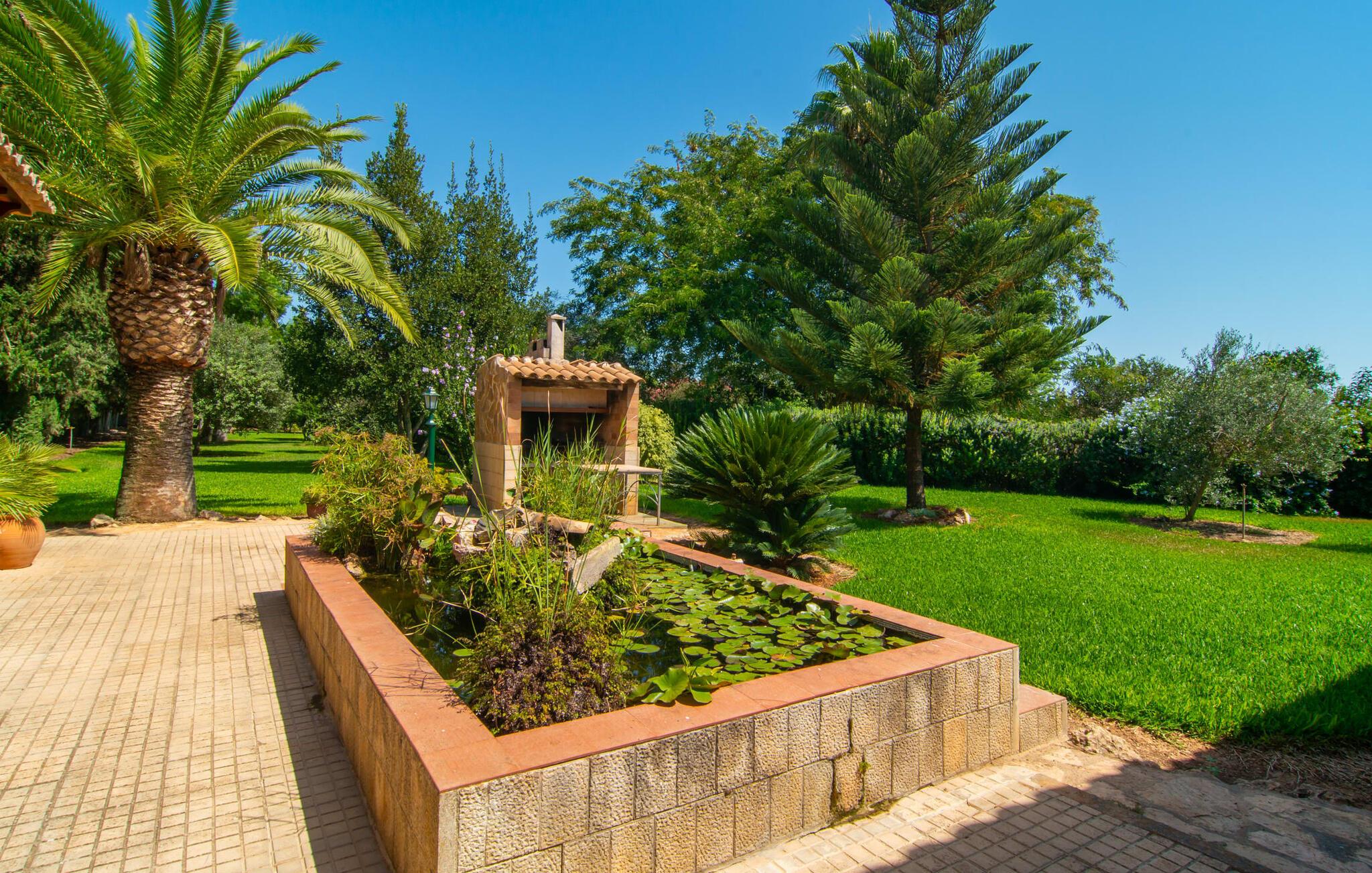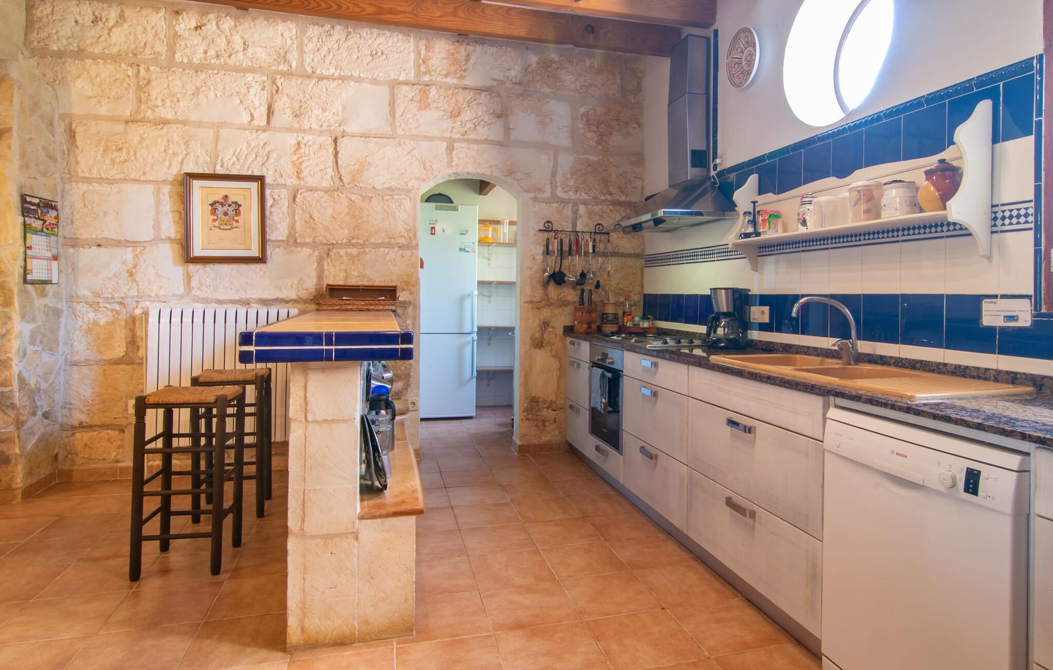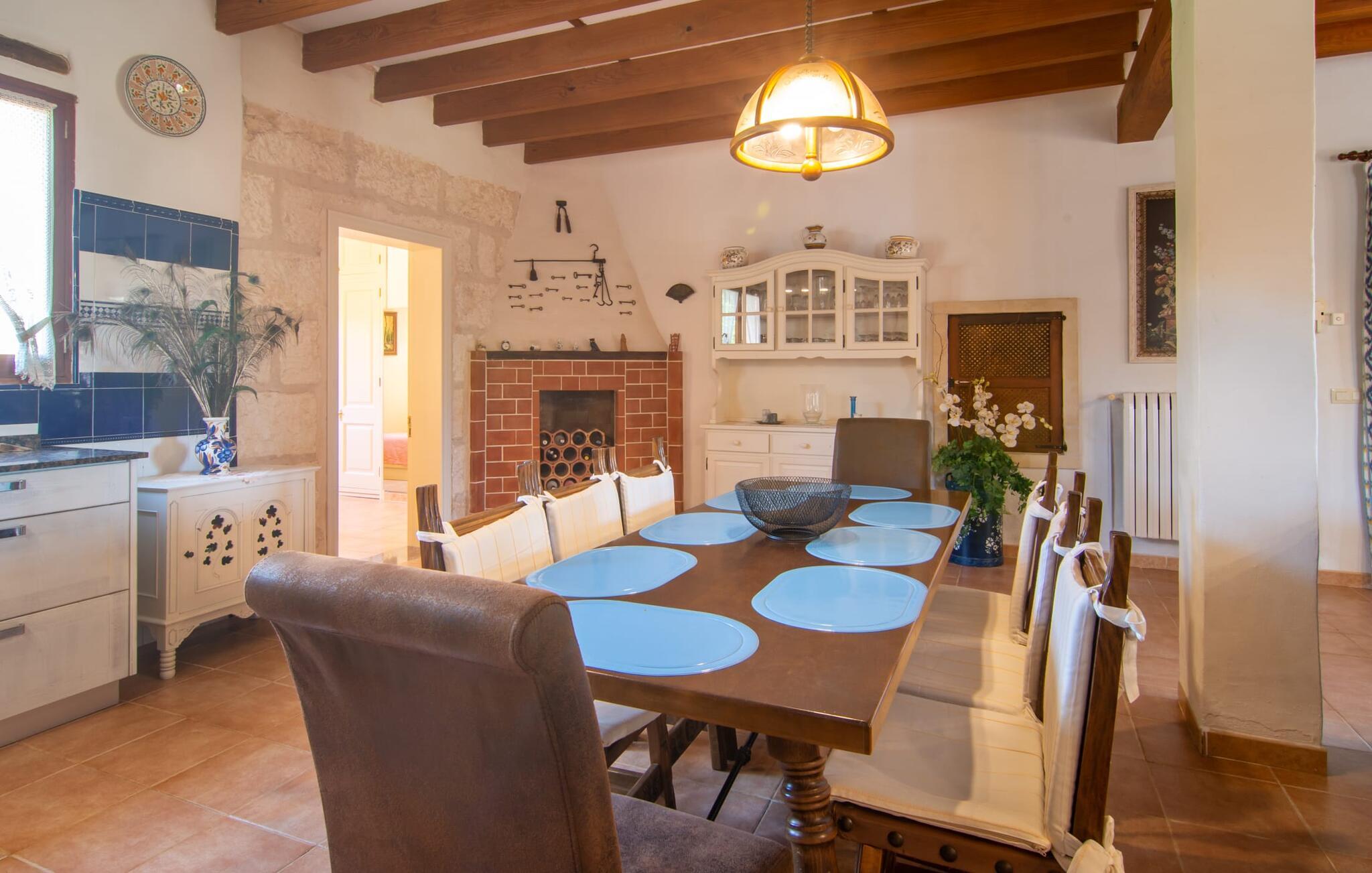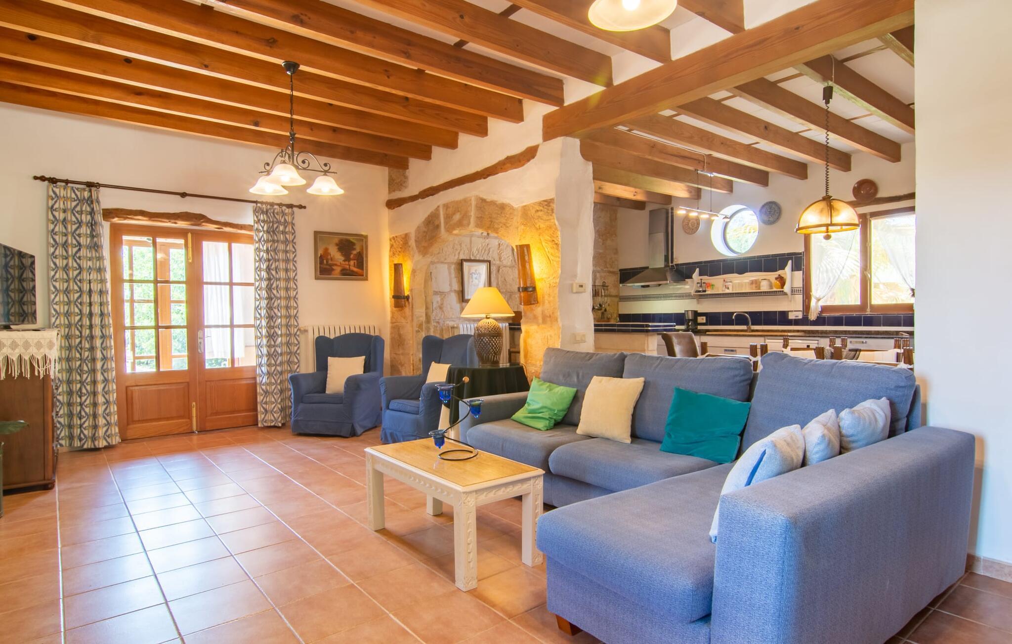 Det tyndt befolkede område omkring Muro er overvejende landbrugsmæssigt og meget stille, så I kan nyde en meget afslappende ferie her. Besøgende på Villa “Can Jener” bydes hjerteligt velkommen til denne meget velholdte ejendom med frodig middelhavsvegetation. En godt asfalteret adgangsvej fører jer til jeres lille grønne ferieparadis, hvor I kan parkere jeres bil i skyggen under carporten. Det hyggelige 4.000 m² store udendørsareal inviterer jer til at tilbringe lange perioder i det fri. Udover den attraktive græsplæne med masser af solbadningsområder byder haven også på talrige muligheder for at slappe af i den naturlige skygge takket være dens omfattende træbestand. Medfølgende børn (i skolealderen) kan lege, løbe rundt på den rummelige grund og hygge sig for eksempel med bordtennis. Det absolutte højdepunkt for alle er naturligvis den ekstra store pool lige ved siden af huset! Med en størrelse på 12 x 12 m og en maksimal dybde på 1,80 m er det virkelig en skønhed, selv sporty svømmere kan svømme længder her og holde sig i form på ferien. Efter en forfriskende svømmetur i poolen bør I helt sikkert lade jer friste og snuppe en af de otte liggestole på den omkringliggende terrasse og nyde den mallorcanske sol i fulde drag. Ønsker I lidt mere skygge i ny og næ, kan I finde jer godt tilpas på det overdækkede område af poolterrassen - måske med en god bog og en lækker drink? Her er også et stort bord til udendørs måltider eller brætspil. En lille trappe fører fra poolen ned til haven, hvor en halvåben veranda - inklusive et behageligt opholdsområde og en anden spiseplads - venter på jeres brug til aftengrillen. Denne traditionelle villa er en gammel bygning, der er mere end 100 år gammel. I dette tilfælde betyder tradition ikke at give afkald på noget, for "Can Jener" er blevet omfattende renoveret og tilbyder jer udover den traditionelle stemning mange faciliteter, herunder det fuldt udstyrede køkken, det moderniserede badeværelse med bruser og/ eller badekar eller en stor fladskærm -Satellit-tv. Takket være det ekstremt hyggelige interiør giver villaen hurtigt den besøgende en følelse af fortrolighed, og især stueetagen imponerer med rummeligheden i det åbne opholds- og køkkenområde. Brugen af naturtoner, sten og træ giver hele huset en yderst hjemlig atmosfære. Med et samlet boligareal på 400 m² har denne attraktive villa plads nok og muligheder for at trække sig tilbage i fred eller tilbringe tid sammen. Fra stuen er der direkte adgang til den overdækkede veranda i haven. I stueetagen er der desuden et hyggeligt soveværelse med tilhørende badeværelse. Yderligere venlige soveværelser og badeværelser er placeret på første sal og tilbyder masser af opbevaringsplads til jeres feriegarderobe. Alle soveværelser kan have individuelt aircondition. Det ekstra receptionsrum på øverste etage er særligt praktisk, da det har en behagelig sofa (ideel til en lille siesta imellem) og et lille køkken med køleskab. Derfra er det kun en kort gåtur over balkonen til poolen, hvor I kan overraske jeres kære med en snack eller en kold drink. Selvom det er landligt, er dette idylliske feriehus også et ideelt udgangspunkt for at udforske mere af øen. På grund af nærheden til landevejen har I fremragende infrastrukturforbindelser til landsbyen Muro, kun 5 minutter væk, hvor I kan shoppe i supermarkedet eller nyde en lækker café con leche i en af de rustikke caféer. Køreturen til Mallorcas tredjestørste by Inca, kendt for produktion af alle slags lædervarer og dens livlige gågade, er kun 15 minutter i bil. De smukke strande i den nærliggende bugt Alcúdia inviterer jer til at besøge og nyde vidunderlige solskinstimer og svømning. Playa de Muro med sine mange muligheder for vandsport kan varmt anbefales. Denne strand er særlig familievenlig, da den har en legeplads, og adgangen til havet er meget lavvandet. Den attraktive villa "Can Jener" er beliggende på en 4.000 m² stor grund i det landlige nord for området, nær landsbyen Muro. Al hverdagsindkøb kan gøres i byen, og særligt friske, regionale produkter tilbydes på det ugentlige marked hver søndag. Den livlige by Inca med dens attraktive gågade er heller ikke langt væk. Havet og de fine sandstrande ved Alcúdia-bugten kan nemt nås i bil på cirka 20 minutter.
