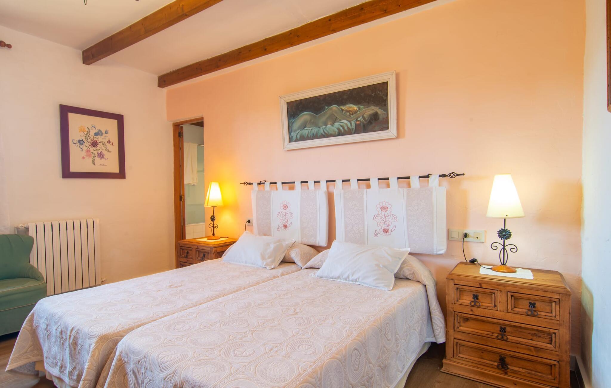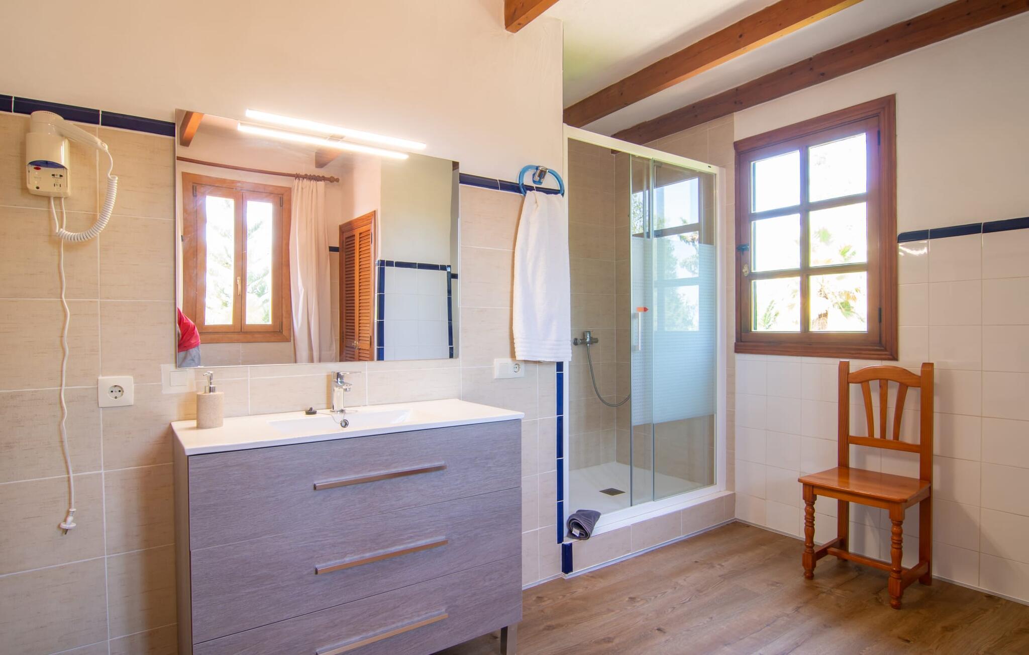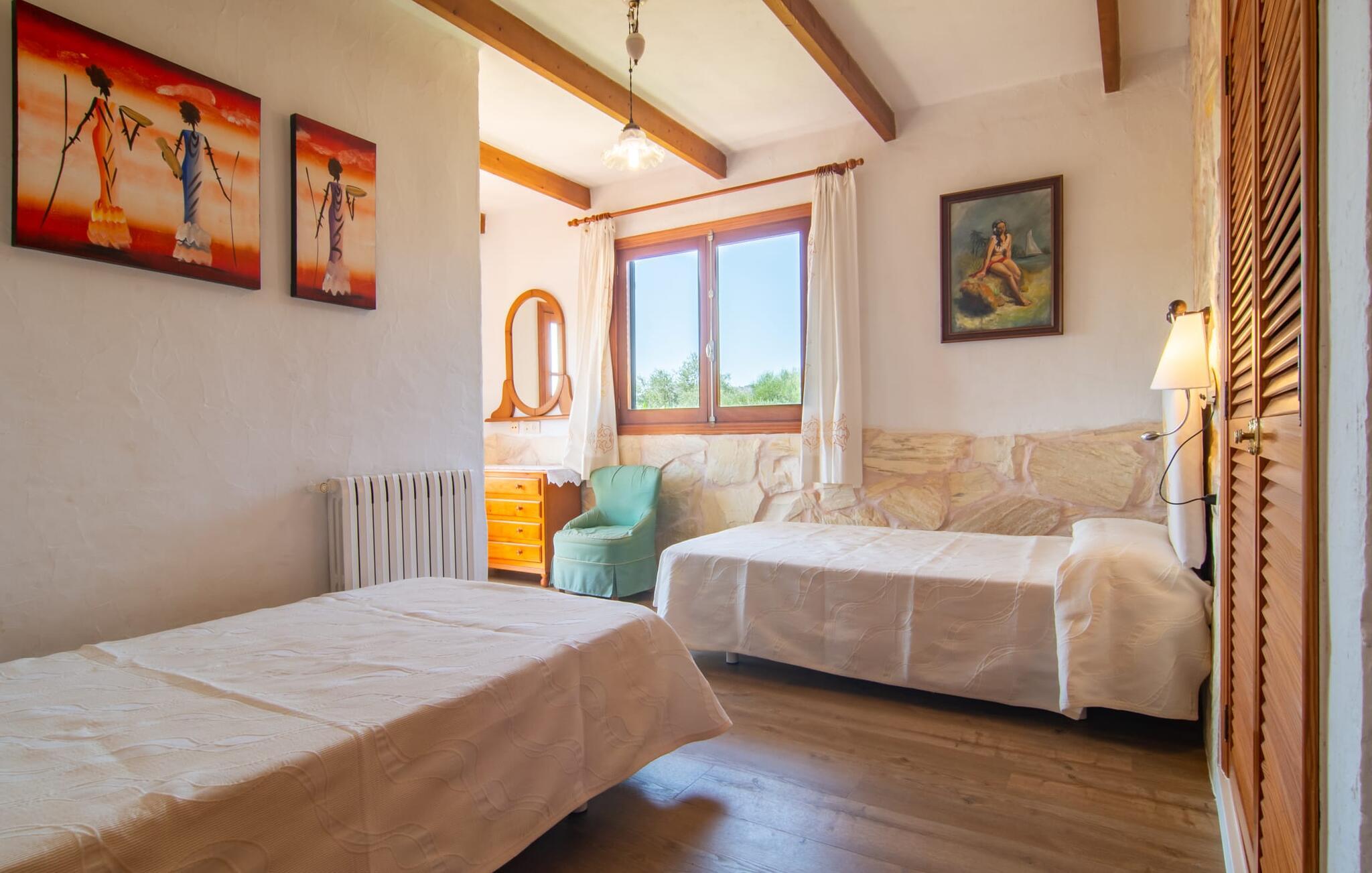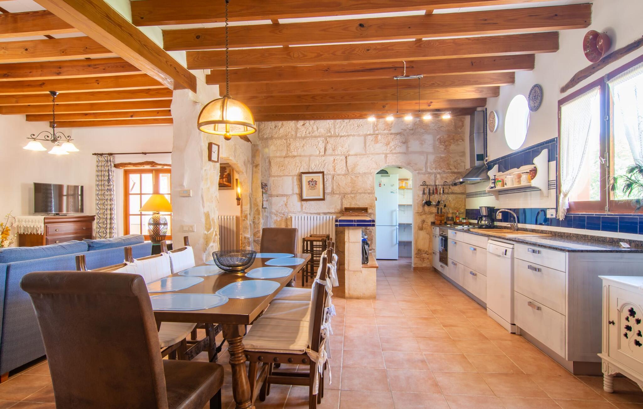 Det tyndt befolkede område omkring Muro er overvejende landbrugsmæssigt og meget stille, så I kan nyde en meget afslappende ferie her. Besøgende på Villa “Can Jener” bydes hjerteligt velkommen til denne meget velholdte ejendom med frodig middelhavsvegetation. En godt asfalteret adgangsvej fører jer til jeres lille grønne ferieparadis, hvor I kan parkere jeres bil i skyggen under carporten. Det hyggelige 4.000 m² store udendørsareal inviterer jer til at tilbringe lange perioder i det fri. Udover den attraktive græsplæne med masser af solbadningsområder byder haven også på talrige muligheder for at slappe af i den naturlige skygge takket være dens omfattende træbestand. Medfølgende børn (i skolealderen) kan lege, løbe rundt på den rummelige grund og hygge sig for eksempel med bordtennis. Det absolutte højdepunkt for alle er naturligvis den ekstra store pool lige ved siden af huset! Med en størrelse på 12 x 12 m og en maksimal dybde på 1,80 m er det virkelig en skønhed, selv sporty svømmere kan svømme længder her og holde sig i form på ferien. Efter en forfriskende svømmetur i poolen bør I helt sikkert lade jer friste og snuppe en af de otte liggestole på den omkringliggende terrasse og nyde den mallorcanske sol i fulde drag. Ønsker I lidt mere skygge i ny og næ, kan I finde jer godt tilpas på det overdækkede område af poolterrassen - måske med en god bog og en lækker drink? Her er også et stort bord til udendørs måltider eller brætspil. En lille trappe fører fra poolen ned til haven, hvor en halvåben veranda - inklusive et behageligt opholdsområde og en anden spiseplads - venter på jeres brug til aftengrillen. Denne traditionelle villa er en gammel bygning, der er mere end 100 år gammel. I dette tilfælde betyder tradition ikke at give afkald på noget, for "Can Jener" er blevet omfattende renoveret og tilbyder jer udover den traditionelle stemning mange faciliteter, herunder det fuldt udstyrede køkken, det moderniserede badeværelse med bruser og/ eller badekar eller en stor fladskærm -Satellit-tv. Takket være det ekstremt hyggelige interiør giver villaen hurtigt den besøgende en følelse af fortrolighed, og især stueetagen imponerer med rummeligheden i det åbne opholds- og køkkenområde. Brugen af naturtoner, sten og træ giver hele huset en yderst hjemlig atmosfære. Med et samlet boligareal på 400 m² har denne attraktive villa plads nok og muligheder for at trække sig tilbage i fred eller tilbringe tid sammen. Fra stuen er der direkte adgang til den overdækkede veranda i haven. I stueetagen er der desuden et hyggeligt soveværelse med tilhørende badeværelse. Yderligere venlige soveværelser og badeværelser er placeret på første sal og tilbyder masser af opbevaringsplads til jeres feriegarderobe. Alle soveværelser kan have individuelt aircondition. Det ekstra receptionsrum på øverste etage er særligt praktisk, da det har en behagelig sofa (ideel til en lille siesta imellem) og et lille køkken med køleskab. Derfra er det kun en kort gåtur over balkonen til poolen, hvor I kan overraske jeres kære med en snack eller en kold drink. Selvom det er landligt, er dette idylliske feriehus også et ideelt udgangspunkt for at udforske mere af øen. På grund af nærheden til landevejen har I fremragende infrastrukturforbindelser til landsbyen Muro, kun 5 minutter væk, hvor I kan shoppe i supermarkedet eller nyde en lækker café con leche i en af de rustikke caféer. Køreturen til Mallorcas tredjestørste by Inca, kendt for produktion af alle slags lædervarer og dens livlige gågade, er kun 15 minutter i bil. De smukke strande i den nærliggende bugt Alcúdia inviterer jer til at besøge og nyde vidunderlige solskinstimer og svømning. Playa de Muro med sine mange muligheder for vandsport kan varmt anbefales. Denne strand er særlig familievenlig, da den har en legeplads, og adgangen til havet er meget lavvandet. Den attraktive villa "Can Jener" er beliggende på en 4.000 m² stor grund i det landlige nord for området, nær landsbyen Muro. Al hverdagsindkøb kan gøres i byen, og særligt friske, regionale produkter tilbydes på det ugentlige marked hver søndag. Den livlige by Inca med dens attraktive gågade er heller ikke langt væk. Havet og de fine sandstrande ved Alcúdia-bugten kan nemt nås i bil på cirka 20 minutter.