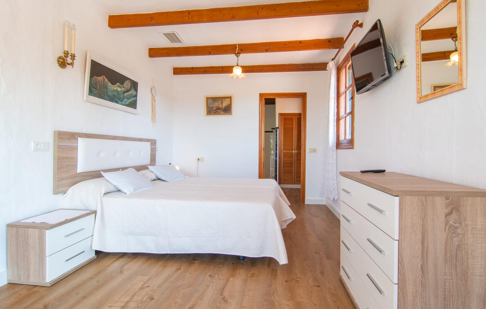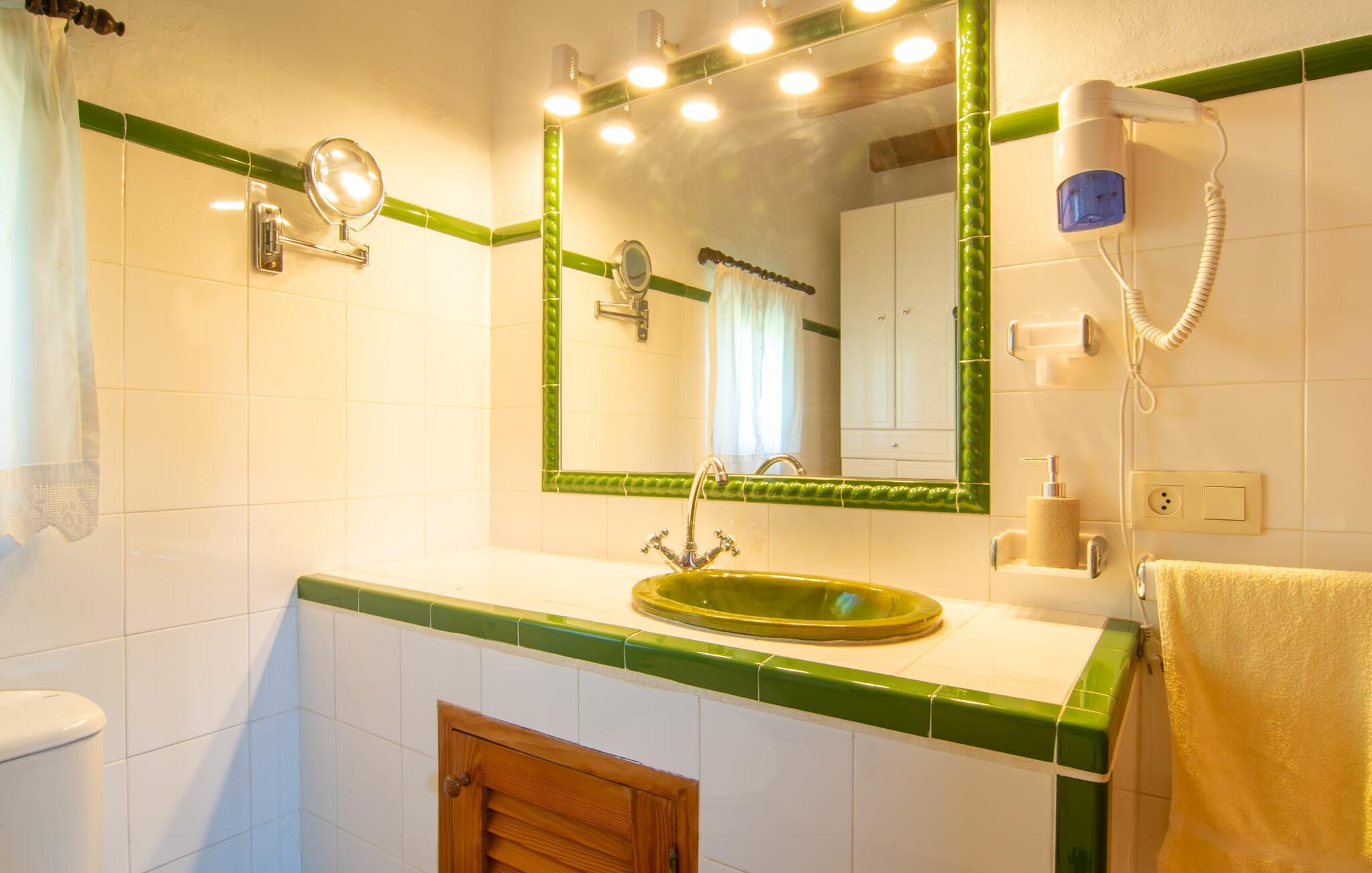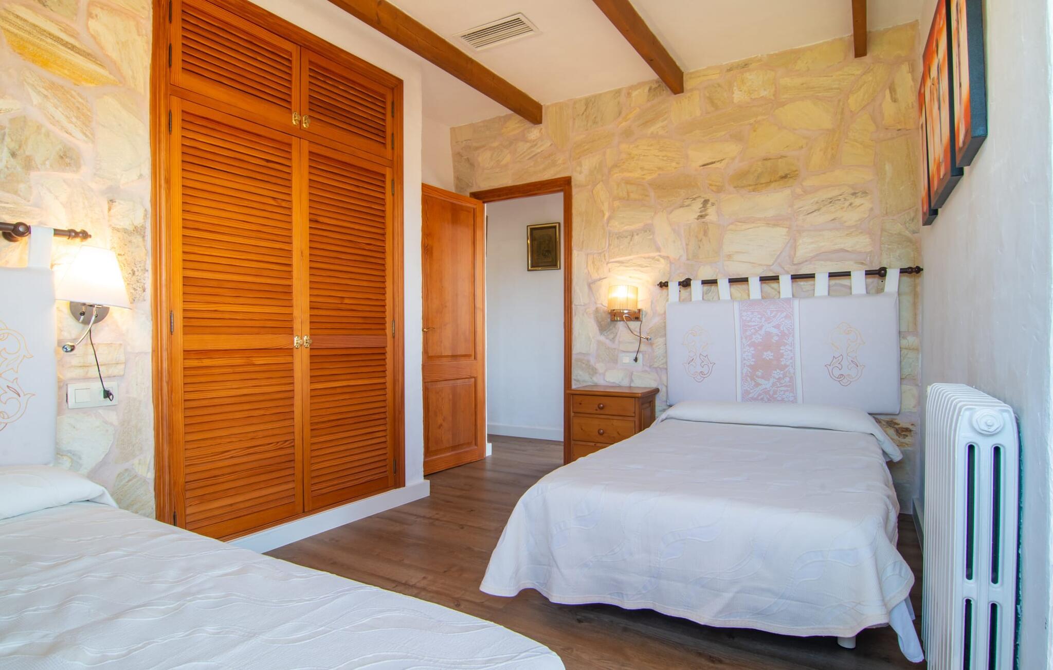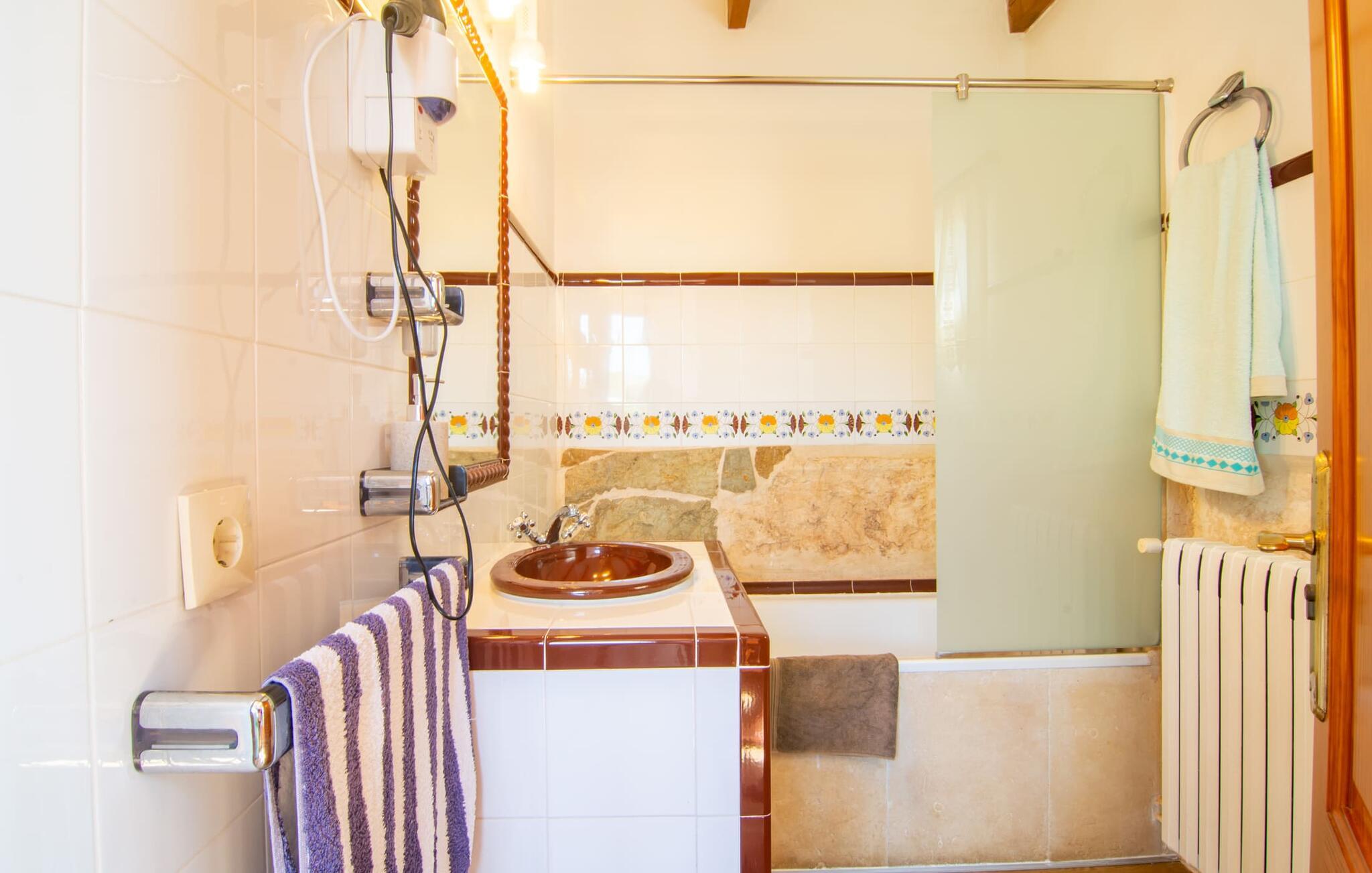 Det tyndt befolkede område omkring Muro er overvejende landbrugsmæssigt og meget stille, så I kan nyde en meget afslappende ferie her. Besøgende på Villa “Can Jener” bydes hjerteligt velkommen til denne meget velholdte ejendom med frodig middelhavsvegetation. En godt asfalteret adgangsvej fører jer til jeres lille grønne ferieparadis, hvor I kan parkere jeres bil i skyggen under carporten. Det hyggelige 4.000 m² store udendørsareal inviterer jer til at tilbringe lange perioder i det fri. Udover den attraktive græsplæne med masser af solbadningsområder byder haven også på talrige muligheder for at slappe af i den naturlige skygge takket være dens omfattende træbestand. Medfølgende børn (i skolealderen) kan lege, løbe rundt på den rummelige grund og hygge sig for eksempel med bordtennis. Det absolutte højdepunkt for alle er naturligvis den ekstra store pool lige ved siden af huset! Med en størrelse på 12 x 12 m og en maksimal dybde på 1,80 m er det virkelig en skønhed, selv sporty svømmere kan svømme længder her og holde sig i form på ferien. Efter en forfriskende svømmetur i poolen bør I helt sikkert lade jer friste og snuppe en af de otte liggestole på den omkringliggende terrasse og nyde den mallorcanske sol i fulde drag. Ønsker I lidt mere skygge i ny og næ, kan I finde jer godt tilpas på det overdækkede område af poolterrassen - måske med en god bog og en lækker drink? Her er også et stort bord til udendørs måltider eller brætspil. En lille trappe fører fra poolen ned til haven, hvor en halvåben veranda - inklusive et behageligt opholdsområde og en anden spiseplads - venter på jeres brug til aftengrillen. Denne traditionelle villa er en gammel bygning, der er mere end 100 år gammel. I dette tilfælde betyder tradition ikke at give afkald på noget, for "Can Jener" er blevet omfattende renoveret og tilbyder jer udover den traditionelle stemning mange faciliteter, herunder det fuldt udstyrede køkken, det moderniserede badeværelse med bruser og/ eller badekar eller en stor fladskærm -Satellit-tv. Takket være det ekstremt hyggelige interiør giver villaen hurtigt den besøgende en følelse af fortrolighed, og især stueetagen imponerer med rummeligheden i det åbne opholds- og køkkenområde. Brugen af naturtoner, sten og træ giver hele huset en yderst hjemlig atmosfære. Med et samlet boligareal på 400 m² har denne attraktive villa plads nok og muligheder for at trække sig tilbage i fred eller tilbringe tid sammen. Fra stuen er der direkte adgang til den overdækkede veranda i haven. I stueetagen er der desuden et hyggeligt soveværelse med tilhørende badeværelse. Yderligere venlige soveværelser og badeværelser er placeret på første sal og tilbyder masser af opbevaringsplads til jeres feriegarderobe. Alle soveværelser kan have individuelt aircondition. Det ekstra receptionsrum på øverste etage er særligt praktisk, da det har en behagelig sofa (ideel til en lille siesta imellem) og et lille køkken med køleskab. Derfra er det kun en kort gåtur over balkonen til poolen, hvor I kan overraske jeres kære med en snack eller en kold drink. Selvom det er landligt, er dette idylliske feriehus også et ideelt udgangspunkt for at udforske mere af øen. På grund af nærheden til landevejen har I fremragende infrastrukturforbindelser til landsbyen Muro, kun 5 minutter væk, hvor I kan shoppe i supermarkedet eller nyde en lækker café con leche i en af de rustikke caféer. Køreturen til Mallorcas tredjestørste by Inca, kendt for produktion af alle slags lædervarer og dens livlige gågade, er kun 15 minutter i bil. De smukke strande i den nærliggende bugt Alcúdia inviterer jer til at besøge og nyde vidunderlige solskinstimer og svømning. Playa de Muro med sine mange muligheder for vandsport kan varmt anbefales. Denne strand er særlig familievenlig, da den har en legeplads, og adgangen til havet er meget lavvandet. Den attraktive villa "Can Jener" er beliggende på en 4.000 m² stor grund i det landlige nord for området, nær landsbyen Muro. Al hverdagsindkøb kan gøres i byen, og særligt friske, regionale produkter tilbydes på det ugentlige marked hver søndag. Den livlige by Inca med dens attraktive gågade er heller ikke langt væk. Havet og de fine sandstrande ved Alcúdia-bugten kan nemt nås i bil på cirka 20 minutter.
