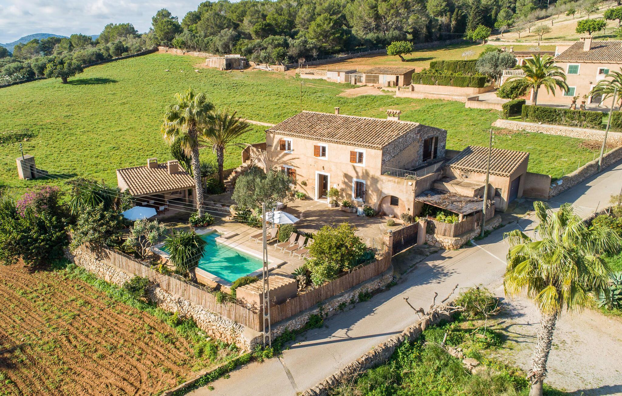 En oase på landet: Flankeret af to høje palmer, et knudret gammelt oliventræ og alverdens anden middelhavsvegetation, ligger bondehuset "Can Joan Roca" i den smukke sydlige del af øen og ved, hvordan man bringer en bred vifte af ferieønsker i harmoni. Det skyldes på den ene side det smukke, typisk mallorcanske hus og på den anden side de alsidige terrasseområder: varmt og solrigt eller behageligt skyggefuldt, overalt med en smuk udsigt over haven og poolen - hvor er din yndlingssted? Ganske vist er du forkælet med valg her. Måske holder du særligt af at slappe af på en af liggestolene lige ved poolen eller besøge det indbydende overdækkede udekøkken med spisebord? Man kan sidde helt udendørs direkte ved huset, som også byder på en hyggelig, luftig overdækket niche på siden. Udover poolen med nem trappeadgang er der også en praktisk udendørs bruser til en hurtig nedkøling. Interiøret er værdigt: Klassiske møbler, hist og her med antikke accenter, skaber en hyggelig atmosfære, hvor man kan ankomme og slappe af. Store terracotta fliser og synlige bjælker på lofterne skaber en hyggelig atmosfære. En kombineret stue-spisestue med brændeovn og TV byder på en række muligheder for at tilbringe selskabelige timer indendørs. Det fuldt udstyrede køkken er bekvemt placeret lige ved siden af. To charmerende soveværelser med dobbeltsenge, et med en-suite badeværelse og et andet badeværelse, er også placeret i stueetagen. På øverste etage er der yderligere to soveværelser med dobbeltsenge og eget badeværelse. Vinduerne på 1. sal giver en smuk udsigt over det omkringliggende område. Mallorcas typiske charme byder dig velkommen til denne bondegård, kun 5 minutters kørsel fra landsbyen S'Horta. Beliggende i det bakkede grønne landskab kan du nyde en afslappende og rolig ferie her. De nærmeste strande er omkring 6 km væk, og den smukke havn Portocolom er også omkring 6 km væk. Hvis du kan lide at spille golf, er det ikke langt fra "Can Joan Roca": Vall d'Or golfklubben er mindre end 4 km væk. Dette er et Fincallorca feriehus.