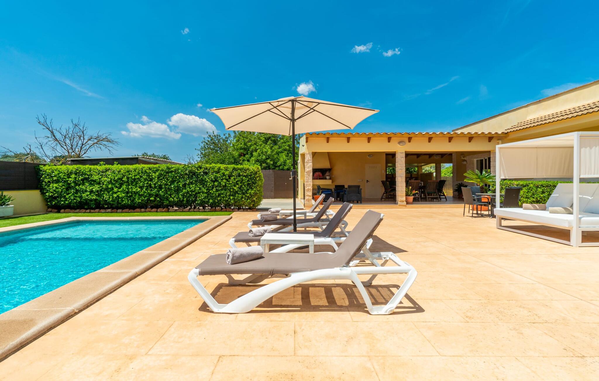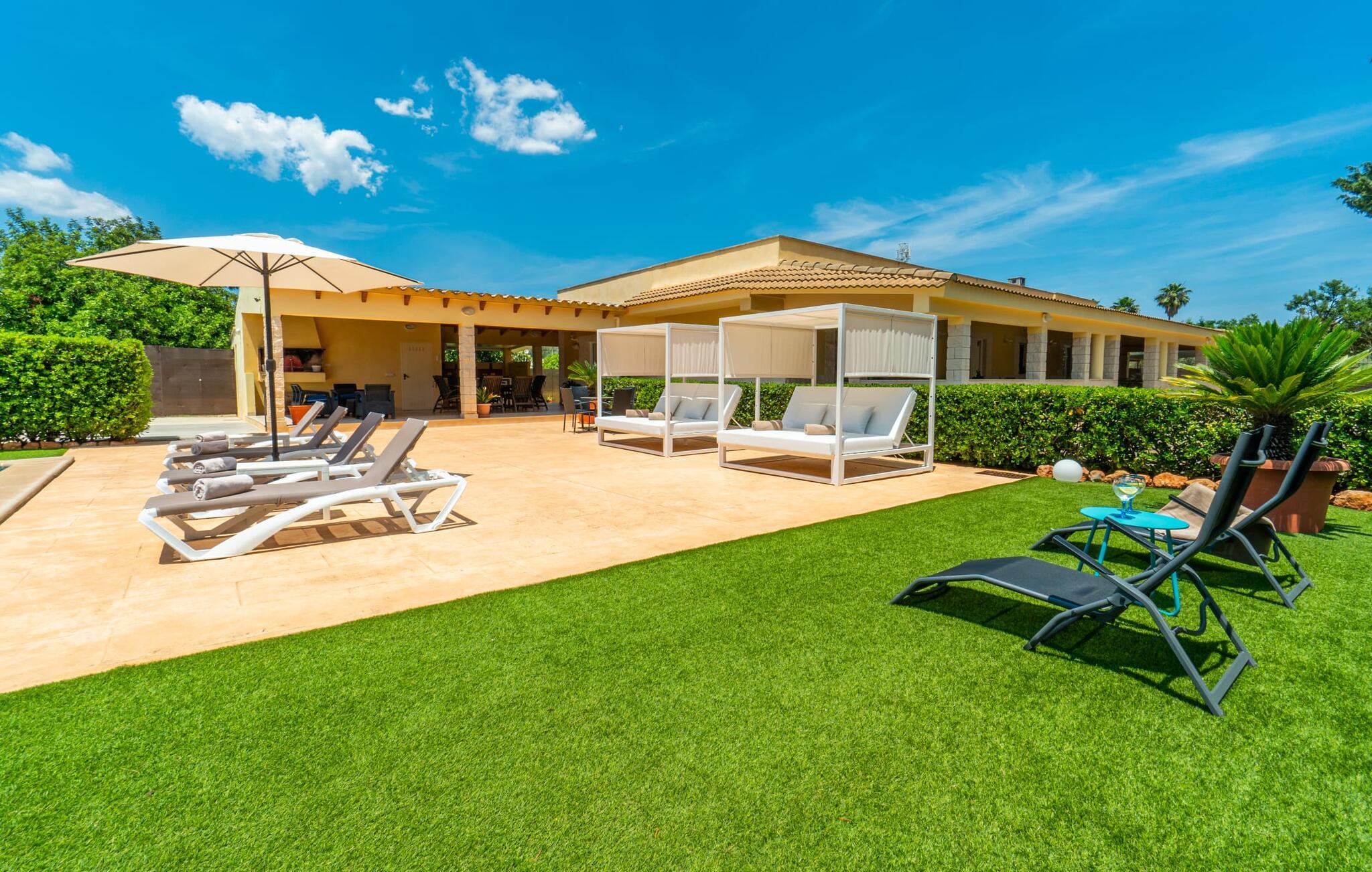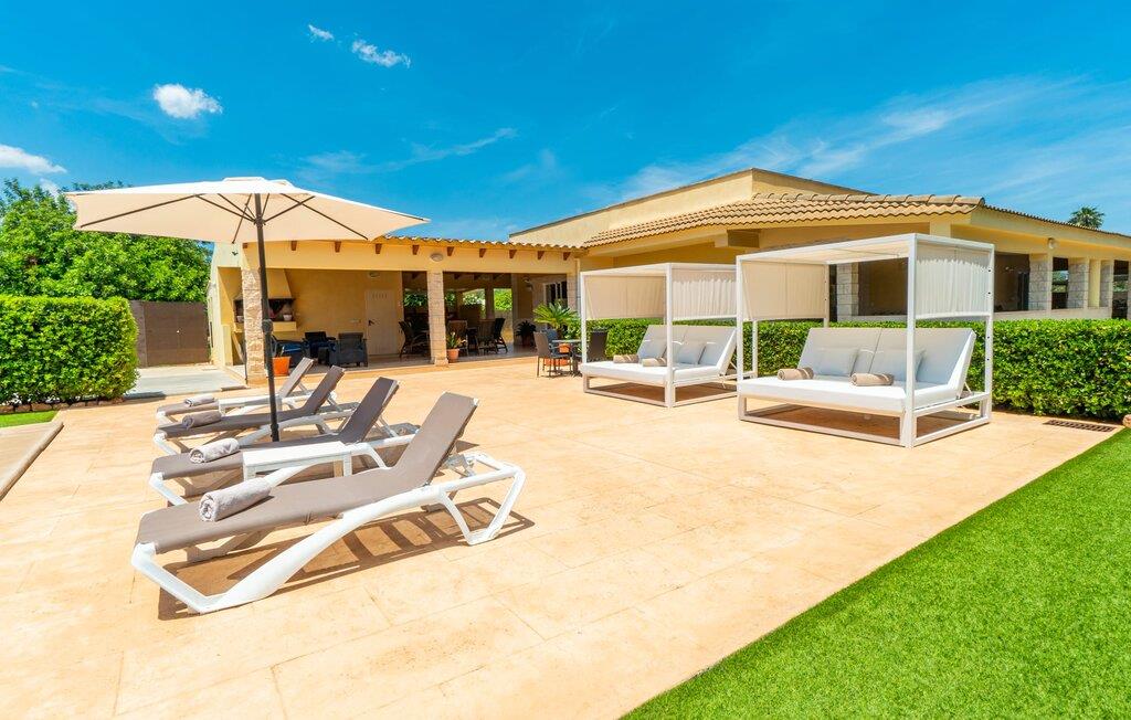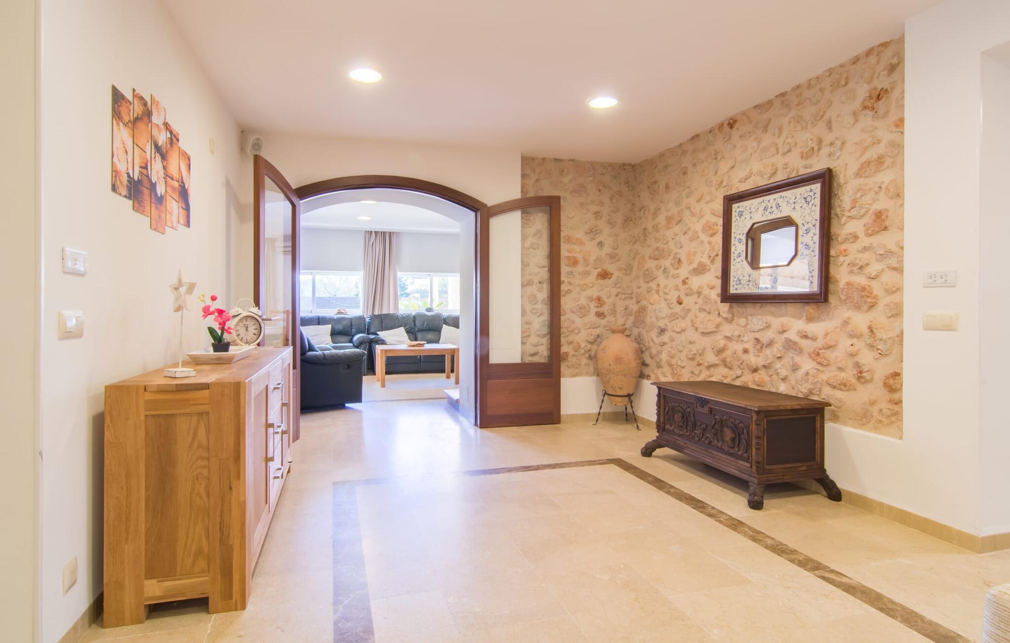 Villaen “Can Just” skinner i solgul, kombineret med rustikke natursten, nær Inca midt på øen. Det nybyggede etplanshus har et indbydende, velholdt udeareal. I midten er den store, rektangulære pool med udendørs bruser, omgivet af en asfalteret solterrasse og kunstig græsplæne med mange komfortable liggestole og en skyggefuld parasol. Her er garanteret fuldkommen privatliv, og der er også masser af plads til, at børn kan plaske rundt, og voksne kan svømme. De overdækkede terrassearealer omkring huset er særligt smukke. Med udekøkkenet og udendørsbadeværelset kan I flytte jeres ferieliv næsten udelukkende udendørs. Der er masser af sidde- og afslapningsmuligheder: fra komfortable udendørs loungemøbler til en smuk stenbænk med komfortable hynder til det store spisebord med tilhørende stole. Og hvis I leder efter en udfordring, kan I spille et spil bordtennis mod jeres medrejsende ved det interne bord. En afslappet blanding af moderne og rustikke møbler sikrer en rigtig god, afslappet behagelig atmosfære overalt i “Can Just” - kom og føl jer godt! I jeres villa finder I alt komfortabelt på ét niveau. For eksempel køkkenet med højkvalitets hvidevarer samt varme, brune træfacader og et højdepunkt i form af en knaldrød ovn. Den åbner ud i opholds- og spiseafdelingen, hvor et stort træbord og tilhørende stole samt en behagelig lædersofa med lænestole venter på jer. Drej om hjørnet, og gå gennem et imponerende sæt dobbeltdøre for at opdage endnu en komfortabel sofa til en afslappende aften med at se tv. Når I er træt, kan I trække jer tilbage til et af de tre dobbeltværelser, alle indrettet med sans for detaljer, med plads nok til jeres feriegarderobe og aircondition, så I ikke sveder selv i sommertemperaturer. Et andet soveværelse er tilgængeligt for dem, der kun virkelig kan slappe af alene om natten. Boligkomforten i villaen suppleres af to elegante og smarte badeværelser. Villaen “Can Just” er et komfortabelt feriehus på landet: Beliggende i centrum af øen, kun ca. 4,6 km fra Inca, imponerer det velholdte enplanshus ikke kun med sin flotte indretning, men også med diverse overdækkede terrassearealer og stor pool. I kan tage skønne vandreture i de landlige omgivelser med de mange omfattende olivenlunde; For en dag på stranden er det bedst at køre de 28,9 km til Alcúdia. Bemærk venligst, at denne ejendom ikke accepterer ungdomsgrupper eller polterabender. En ungdomsgruppe på denne ejendom består af personer på 28 år eller derunder. Book ikke denne ejendom, hvis I er en ungdomsgruppe eller polterabend, da jeres reservation vil blive afvist, når den er booket, hvilket også kan være tilfældet ved ankomst til ejendommen eller under jeres ophold, og I vil ikke modtage en refusion