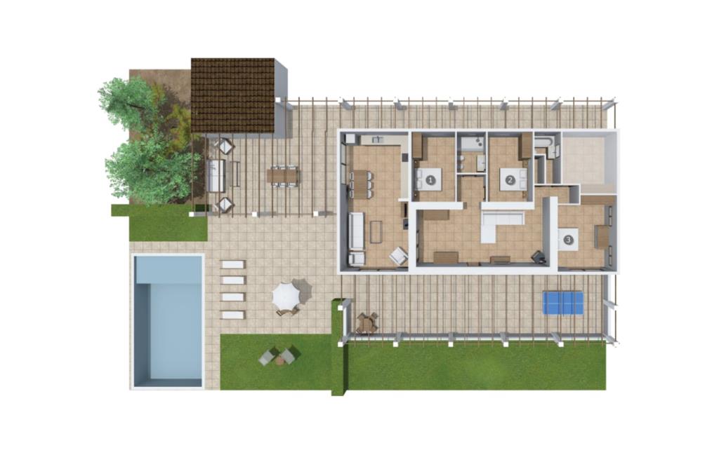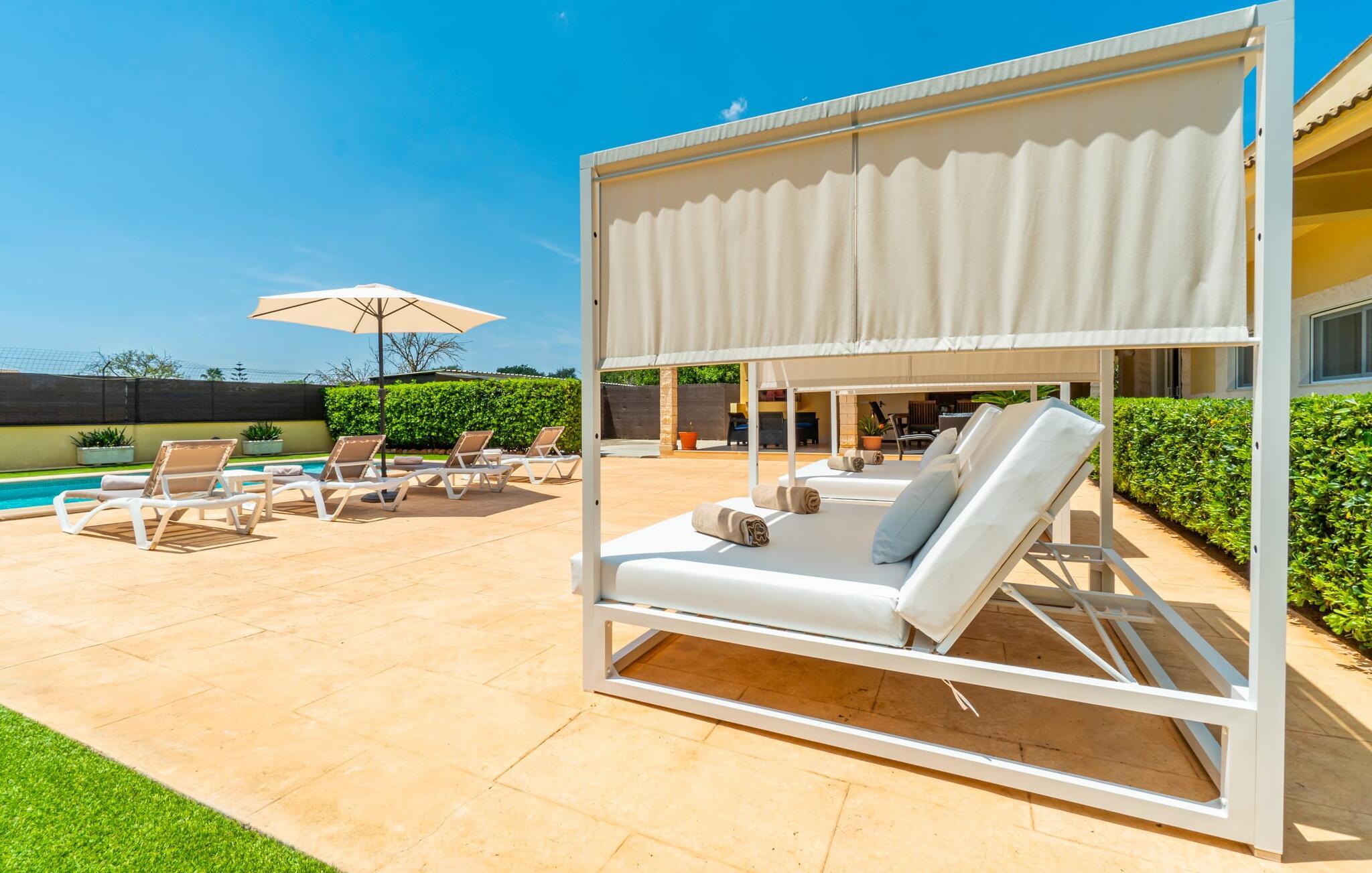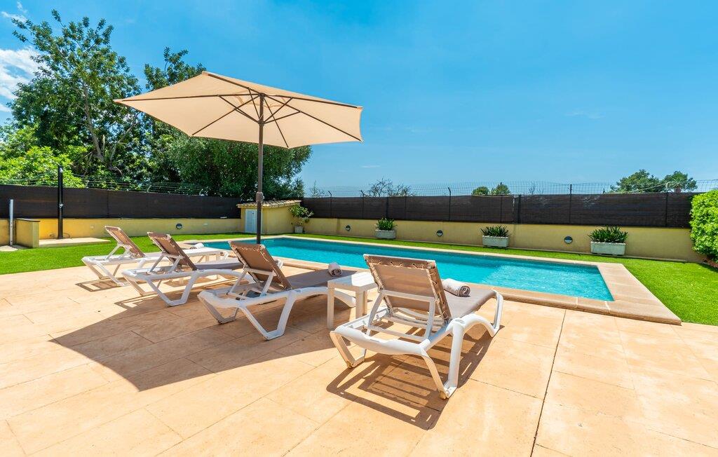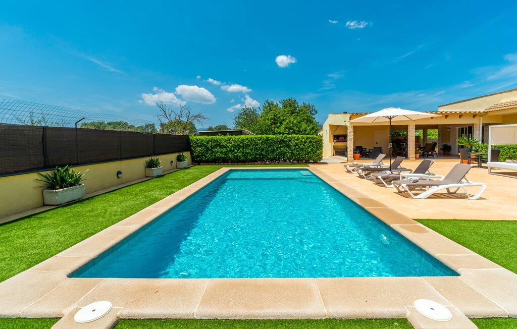 Villaen “Can Just” skinner i solgul, kombineret med rustikke natursten, nær Inca midt på øen. Det nybyggede etplanshus har et indbydende, velholdt udeareal. I midten er den store, rektangulære pool med udendørs bruser, omgivet af en asfalteret solterrasse og kunstig græsplæne med mange komfortable liggestole og en skyggefuld parasol. Her er garanteret fuldkommen privatliv, og der er også masser af plads til, at børn kan plaske rundt, og voksne kan svømme. De overdækkede terrassearealer omkring huset er særligt smukke. Med udekøkkenet og udendørsbadeværelset kan I flytte jeres ferieliv næsten udelukkende udendørs. Der er masser af sidde- og afslapningsmuligheder: fra komfortable udendørs loungemøbler til en smuk stenbænk med komfortable hynder til det store spisebord med tilhørende stole. Og hvis I leder efter en udfordring, kan I spille et spil bordtennis mod jeres medrejsende ved det interne bord. En afslappet blanding af moderne og rustikke møbler sikrer en rigtig god, afslappet behagelig atmosfære overalt i “Can Just” - kom og føl jer godt! I jeres villa finder I alt komfortabelt på ét niveau. For eksempel køkkenet med højkvalitets hvidevarer samt varme, brune træfacader og et højdepunkt i form af en knaldrød ovn. Den åbner ud i opholds- og spiseafdelingen, hvor et stort træbord og tilhørende stole samt en behagelig lædersofa med lænestole venter på jer. Drej om hjørnet, og gå gennem et imponerende sæt dobbeltdøre for at opdage endnu en komfortabel sofa til en afslappende aften med at se tv. Når I er træt, kan I trække jer tilbage til et af de tre dobbeltværelser, alle indrettet med sans for detaljer, med plads nok til jeres feriegarderobe og aircondition, så I ikke sveder selv i sommertemperaturer. Et andet soveværelse er tilgængeligt for dem, der kun virkelig kan slappe af alene om natten. Boligkomforten i villaen suppleres af to elegante og smarte badeværelser. Villaen “Can Just” er et komfortabelt feriehus på landet: Beliggende i centrum af øen, kun ca. 4,6 km fra Inca, imponerer det velholdte enplanshus ikke kun med sin flotte indretning, men også med diverse overdækkede terrassearealer og stor pool. I kan tage skønne vandreture i de landlige omgivelser med de mange omfattende olivenlunde; For en dag på stranden er det bedst at køre de 28,9 km til Alcúdia. Bemærk venligst, at denne ejendom ikke accepterer ungdomsgrupper eller polterabender. En ungdomsgruppe på denne ejendom består af personer på 28 år eller derunder. Book ikke denne ejendom, hvis I er en ungdomsgruppe eller polterabend, da jeres reservation vil blive afvist, når den er booket, hvilket også kan være tilfældet ved ankomst til ejendommen eller under jeres ophold, og I vil ikke modtage en refusion