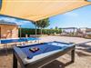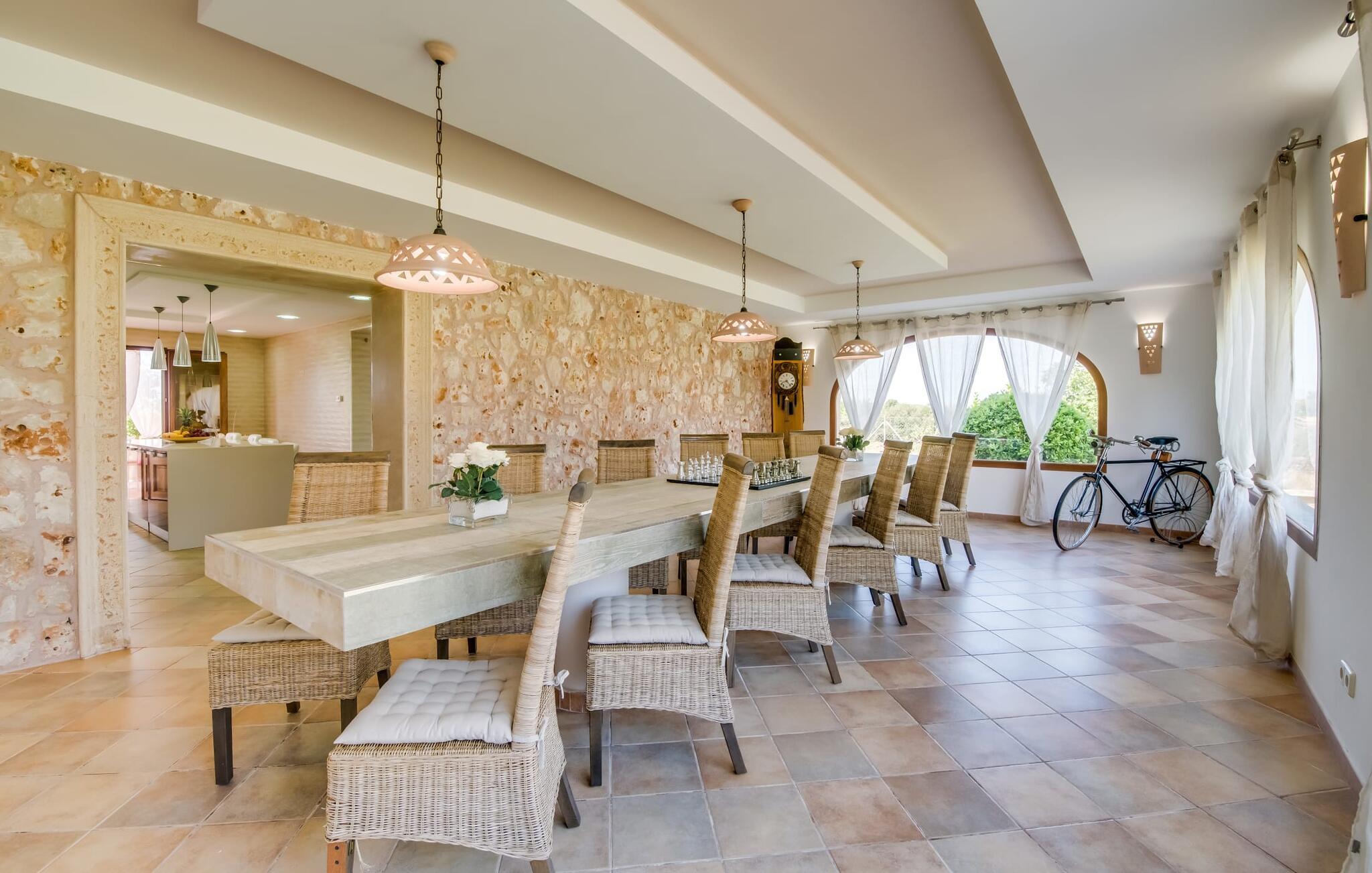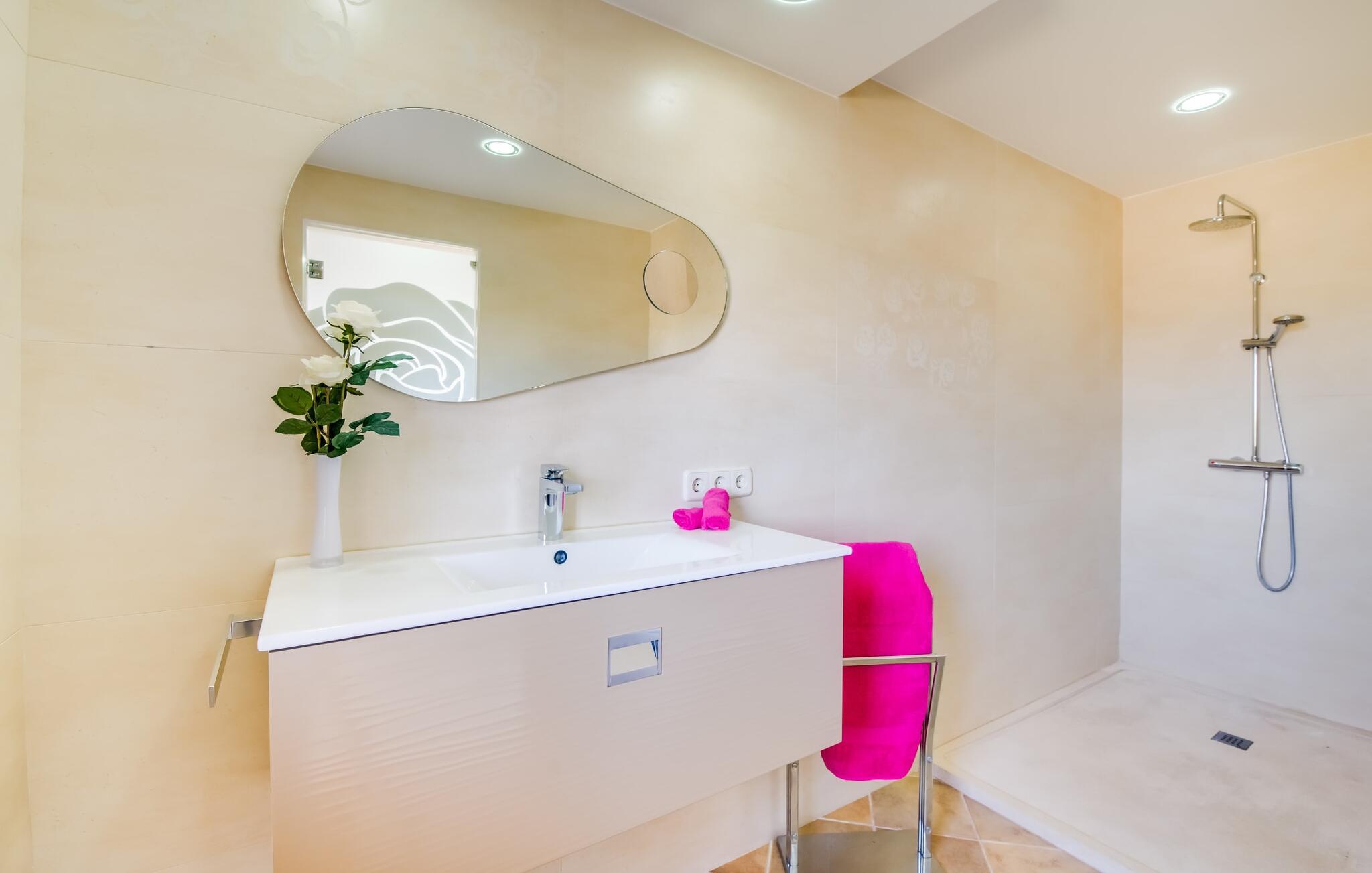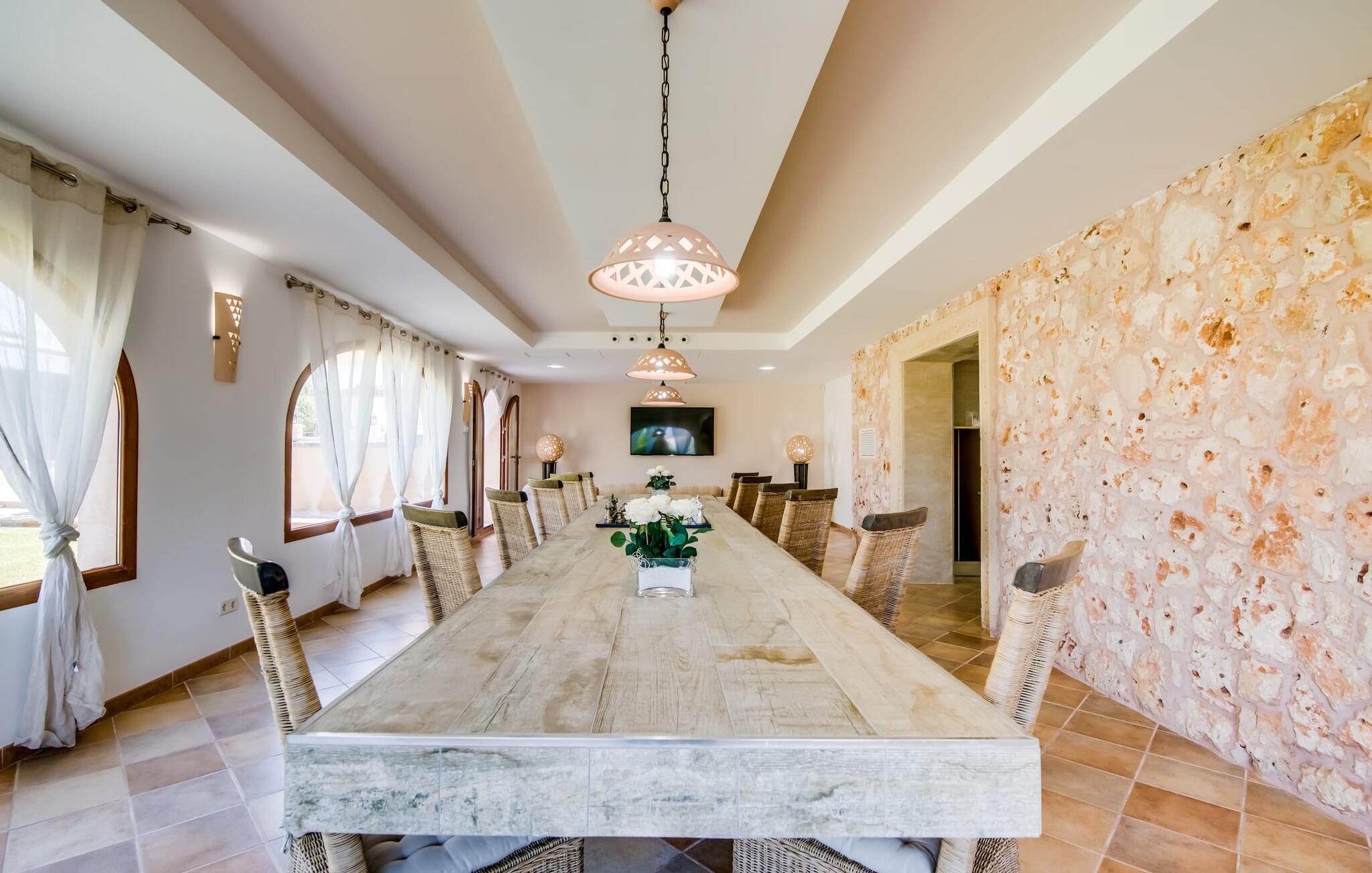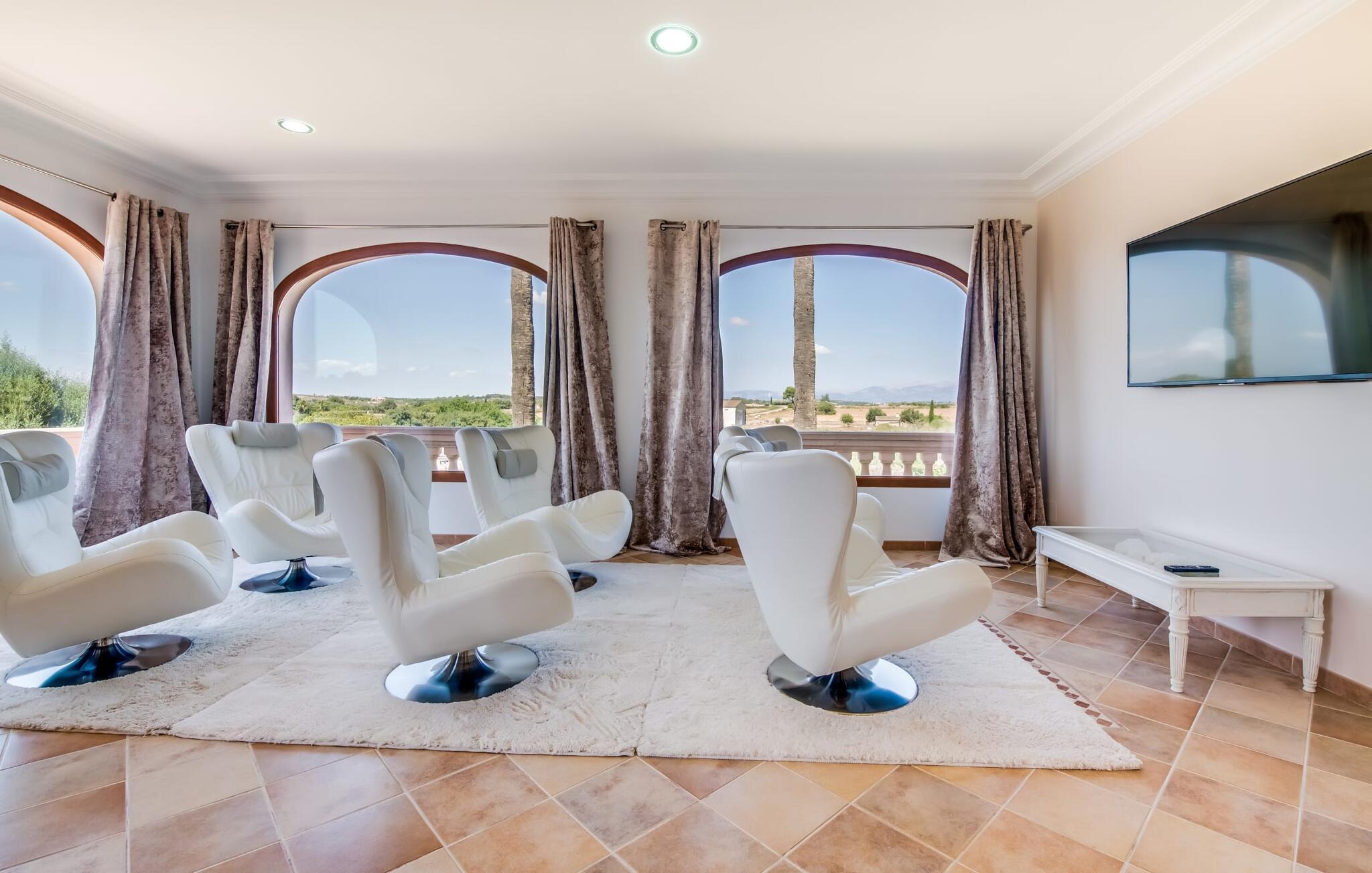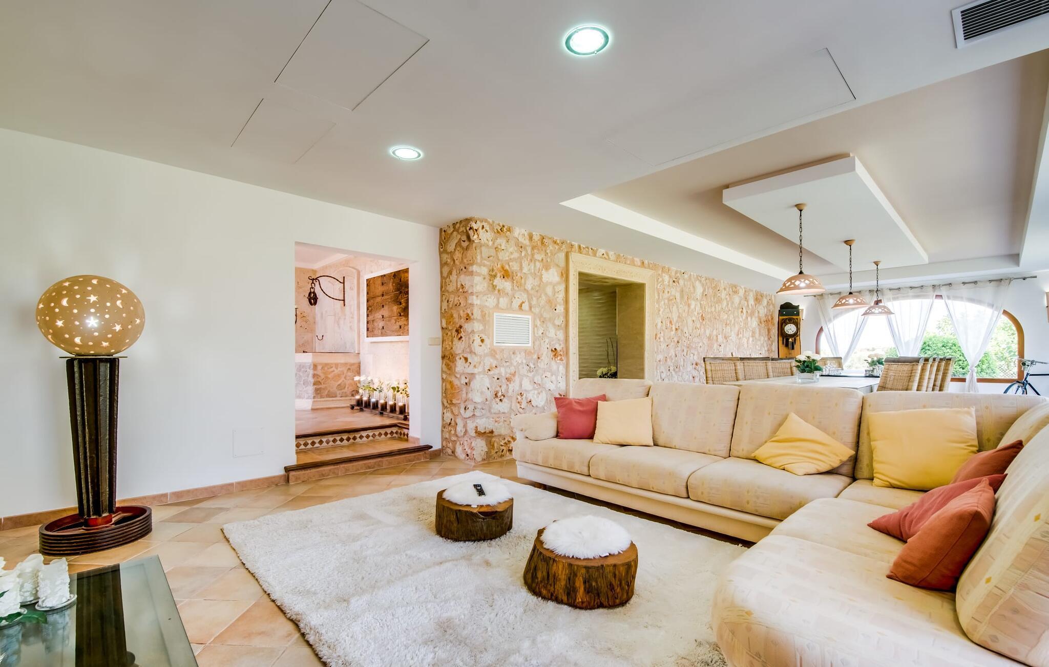 Dine venner og familie vil sikkert være grønne af misundelse, når I vender hjem efter en ferie i den skønne villa Can Lau – og det med rette! Juvelen er bestemt et syn værd at se; Haven omgivet af duftende appelsintræer og det omkringliggende landskab alene er bestemt en tur værd. Komfortable og moderne indrettede afslapningsområder er spredt ud over hele udendørsområdet - altid med den bedste udsigt til den skønne pool, som imponerer med en forbløffende længde på 15 m og en bredde på 5 m. En udendørs bruser og et udendørs toilet fuldender det hele. og spabadet, der er opvarmet fra midten af september til april, er en fantastisk udendørs ekstra. Plænen er simpelthen "ved siden af" - børn kan prøve alt på den: bordtennis, fodboldbaner, plads til at løbe rundt - det hele er der! Tag et forklæde på og kom til grillen - det er mottoet for rigtige grillfester lige på den overdækkede terrasse (du kan endda vælge den grill, I ønsker, ejendommen har to af dem!) - det ugentlige marked i Santa Margalida skal have alt I har brug for, når det kommer til ingredienser. Og hvis den smukke udsigt over landskabet og bjergene nedefra ikke er nok, kan I blot klatre op på den skønne solterrasse på første sal. Også her giver møbler af høj kvalitet plads nok til at slentre, slappe af og nyde en velfortjent pause. Som BBQ-fan vil I få noget for pengene med de to tilgængelige BBQ-stationer (gas og kul). Tre HiFi-systemer med USB-porte - et ved poolen og et på terrassen ved siden af køkkenet - giver den rette baggrundsmusik til jeres personlige lykkeøjeblikke udendørs. Ikke desto mindre er "Can Lau" en finca for afslapning - fester eller lignende arrangementer er udtrykkeligt ikke tilladt her. Fantastisk ekstra: Ejeren giver sine gæster en digital, QR-kodelæsbar manual med masser af tips om luksusrestauranter og smukke aktiviteter på øen. Og der er mere - I troede, "Kan Lau" havde en smuk have? Bare vent og se, hvad der åbenbarer sig for jer, så snart I træder ind i villaen: ren luksus venter jer i to etager og et boligareal på 500 m². Alle værelser er udstyret med aircondition og radiatorer, så I kan opnå den mest behagelige temperatur for jer på ethvert tidspunkt af året. Den indbydende salon tager jer direkte ind i den strålende opholdsstue - et moderne sofasæt og et fuldt udstyret underholdningssystem med dvd- og cd-afspiller, internet- og Netflix-adgang samt en dockingstation til jeres iPod gør det til et behageligt sted at blive hængende. I samme rum er der et kæmpe spisebord med plads nok til alle gæster - det kunne være kommet direkte fra et indretningsmagasin. Store buede vinduer garanterer lysstyrke og velvære. Det stilfulde køkken er helt jeres med komfur og indbyggede hvidevarer, der sikkert ville forbløffe selv stjernekokke - lad jeres kreativitet løbe løbsk og prøv en original mallorcansk opskrift! De fire dobbeltværelser i hvid stil og de tre førsteklasses badeværelser med brusekabine (to af dem en-suite) er fordelt på alle etager. Har I nogensinde haft fornøjelsen af at eje et fitnesscenter? INGEN? Så vil I helt sikkert kunne lide dette højdepunkt. Det giver jer plads nok og det rigtige sportsudstyr til jeres fysiske kondition. Bagefter kan I nyde en kølig forfriskende drink på terrassen eller bruge underholdningscentret ovenpå med de komfortable fløjstole, lige som I har lyst. Takket være husets alarmsystem - praktisk at betjene med en nøgle, som I modtager ved ankomsten - kan I altid føle jer meget tryg. Der er ingen tvivl om, at I allerede svæver på ferieskyer med denne villa, men hvis I nogensinde har lyst til en forandring, så tag til den nærmeste by: I kan nå Santa Margalida på ingen tid via Ma -3340, som er inden for hørevidde . Talrige gadecaféer, fantastiske restauranter og barer samt en eller to butikker vil med garanti forsøde jeres besøg. Sightseeing-hotspots som begravelsespladsen Son Real eller de gamle udsigtstårne langs kysten lover fascinerende indsigt i historien om øens centrum. Entusiastiske amatørornitologer vil helt sikkert nyde noget interessant fuglekiggeri i det nærliggende S'Albufera de Mallorca naturreservat. Can Picafort og Son Serra de Marina tilbyder også maleriske strande, kun omkring 10 km væk. Denne vidunderlige ejendom er beliggende på den nordlige del af øen, kun få minutters kørsel fra Can Picafort og Alcúdia med sine smukke bugter. I kan nemt nå nærliggende Santa Margalida og byens hotspots som barer, restauranter, caféer og turistattraktioner til fods - I vil helt sikkert nyde gåturen gennem det maleriske landskab! Bemærk venligst, at denne ejendom ikke accepterer ungdomsgrupper eller polterabender. En ungdomsgruppe på denne ejendom består af personer under 30 år. Book ikke denne ejendom, hvis I er en ungdomsgruppe eller en polterabendgruppe, da jeres reservation vil blive afvist, når den er booket, hvilket også kan være tilfældet ved ankomst til ejendommen eller under jeres ophold, og I vil ikke modtage en refusion.
