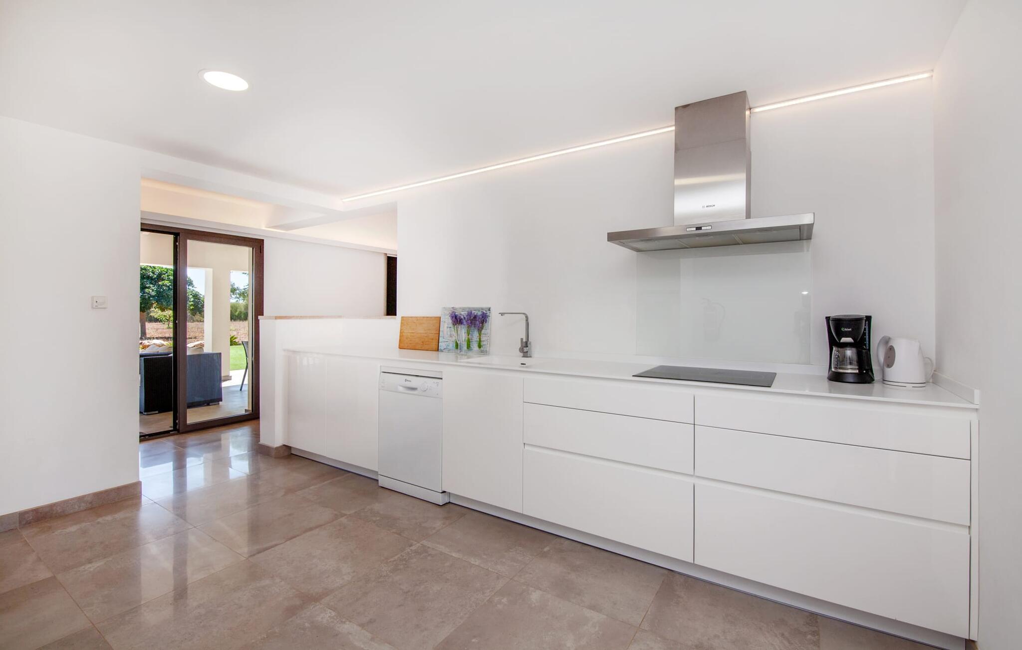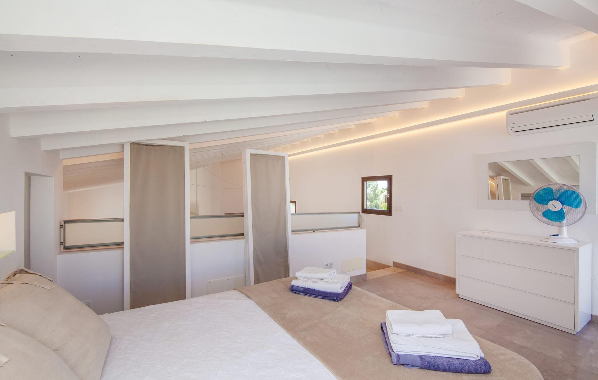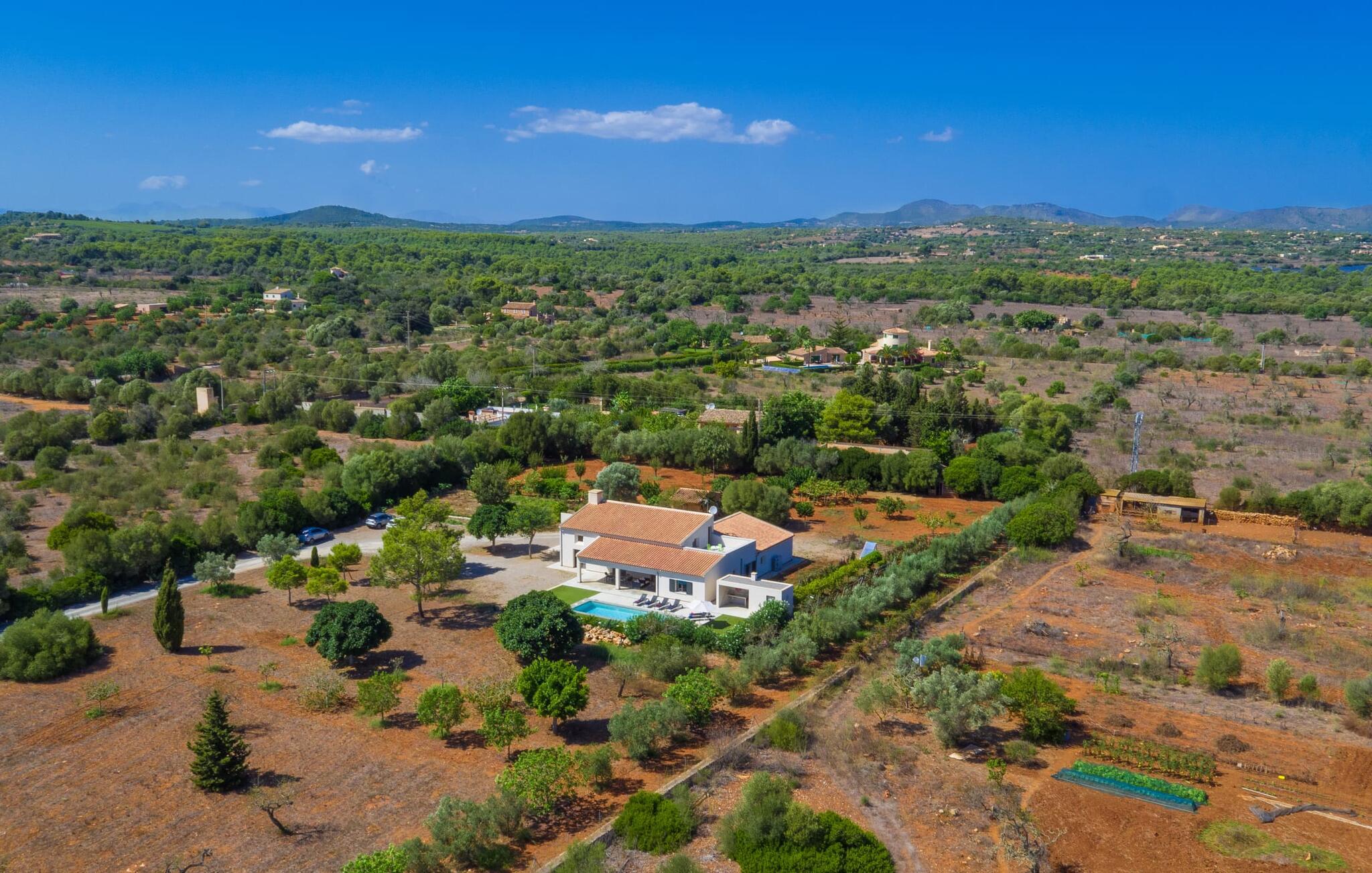 Leder I efter et rummeligt, moderne feriehus på det sydlige Mallorca, så er fincaen "Can Llorenc Jove" det perfekte valg. Det er beliggende på en stor grund uden direkte naboer og tilbyder fuldstændig privatliv. Der er tilstrækkelige parkeringspladser til rådighed ved fincaen. Det kan dog være svært at forlade, da ejendommen har så meget at byde på: en stor pool med stilfulde liggestole, forskellige overdækkede og solrige terrasseområder (herunder en tagterrasse), et internt bordtennisbord til venskabskampe og en praktisk udekøkken i nærheden af poolen. "Can Llorenc Jove" er stilfuldt designet med friske hvide og naturlige toner, suppleret med nøje udvalgt kunst. Store vinduer og smart, indirekte belysning skaber en lys og luftig atmosfære. Værelserne er generøst proportionerede. I stueetagen fører den åbne spise- og opholdsstue til et moderne køkken med højkvalitets hvidevarer og tre smarte soveværelser med tre badeværelser, hvoraf to er en suite. En luftig trappe fører op til overetagen, hvor et galleri med ekstra soveplads giver adgang til tagterrassen. Den moderne finca "Can Llorenc Jove" er beliggende i en afsondret landlig beliggenhed på en kæmpe grund. Ikke desto mindre kører I mindre end 5 km til Cala Romantica for at shoppe, og den smukke sandstrand Cala Estany ligger kun omkring 5 km væk.