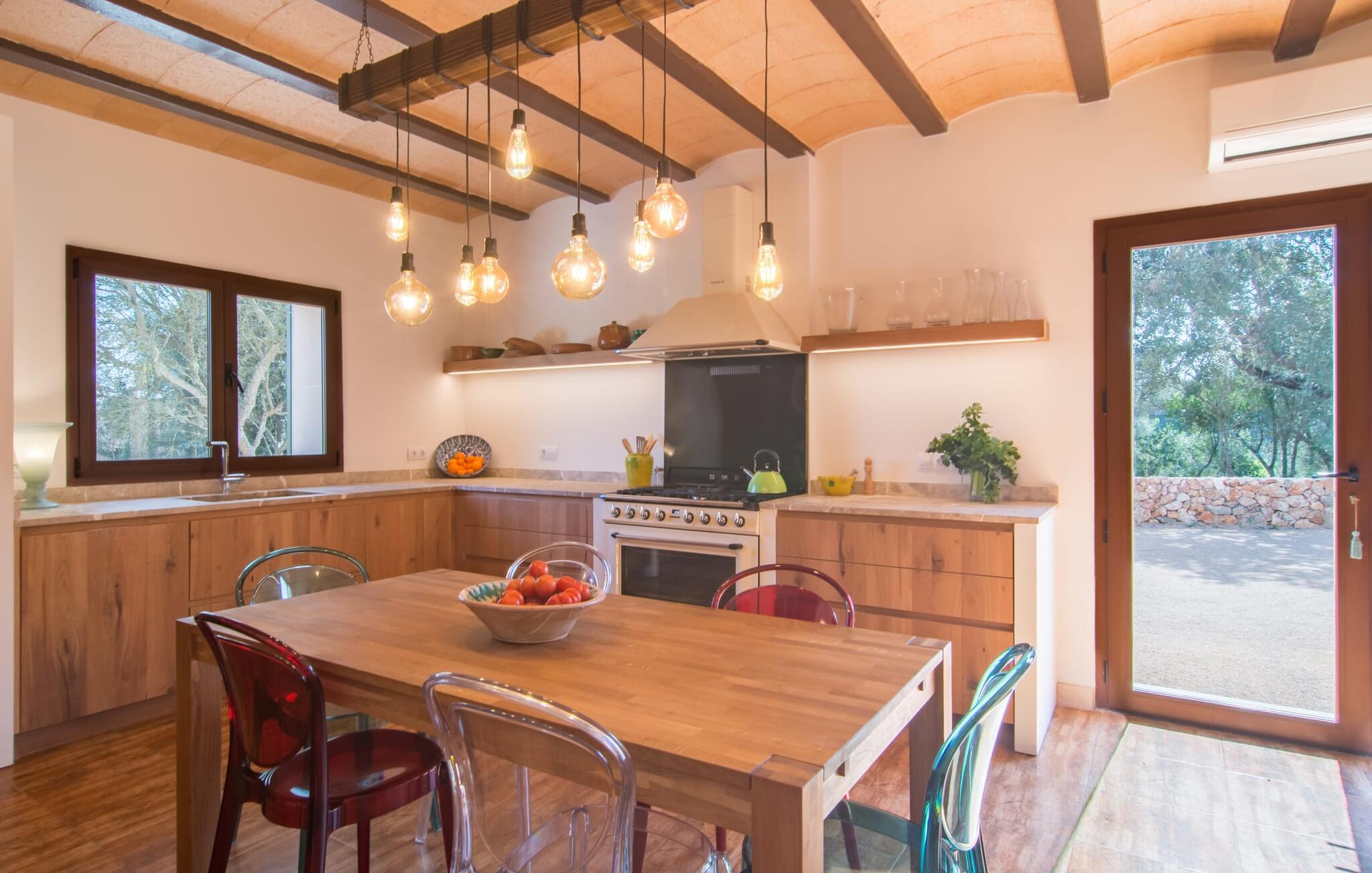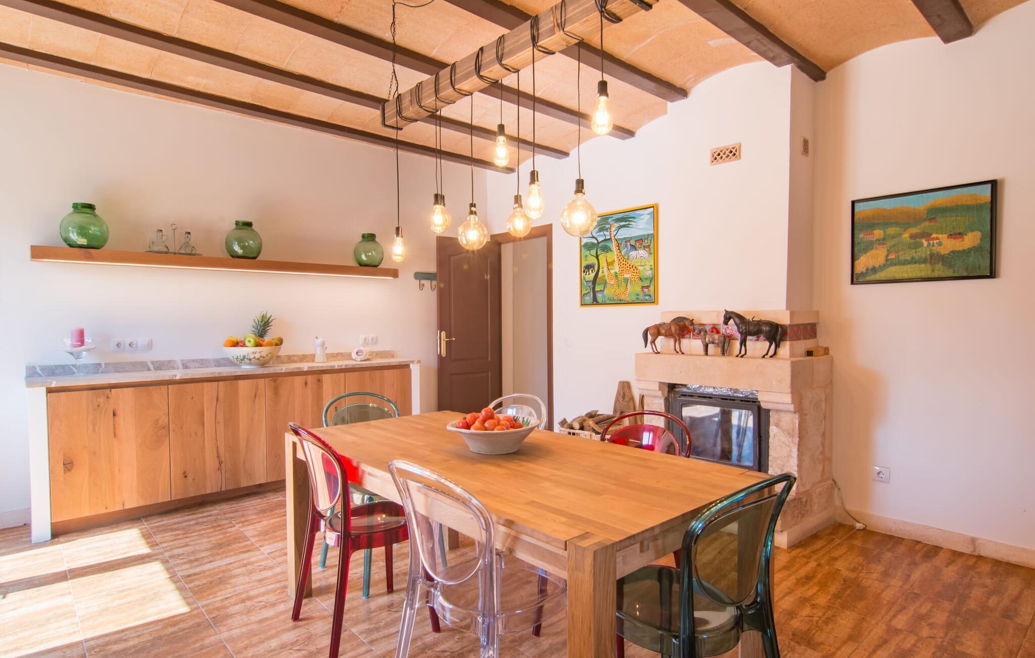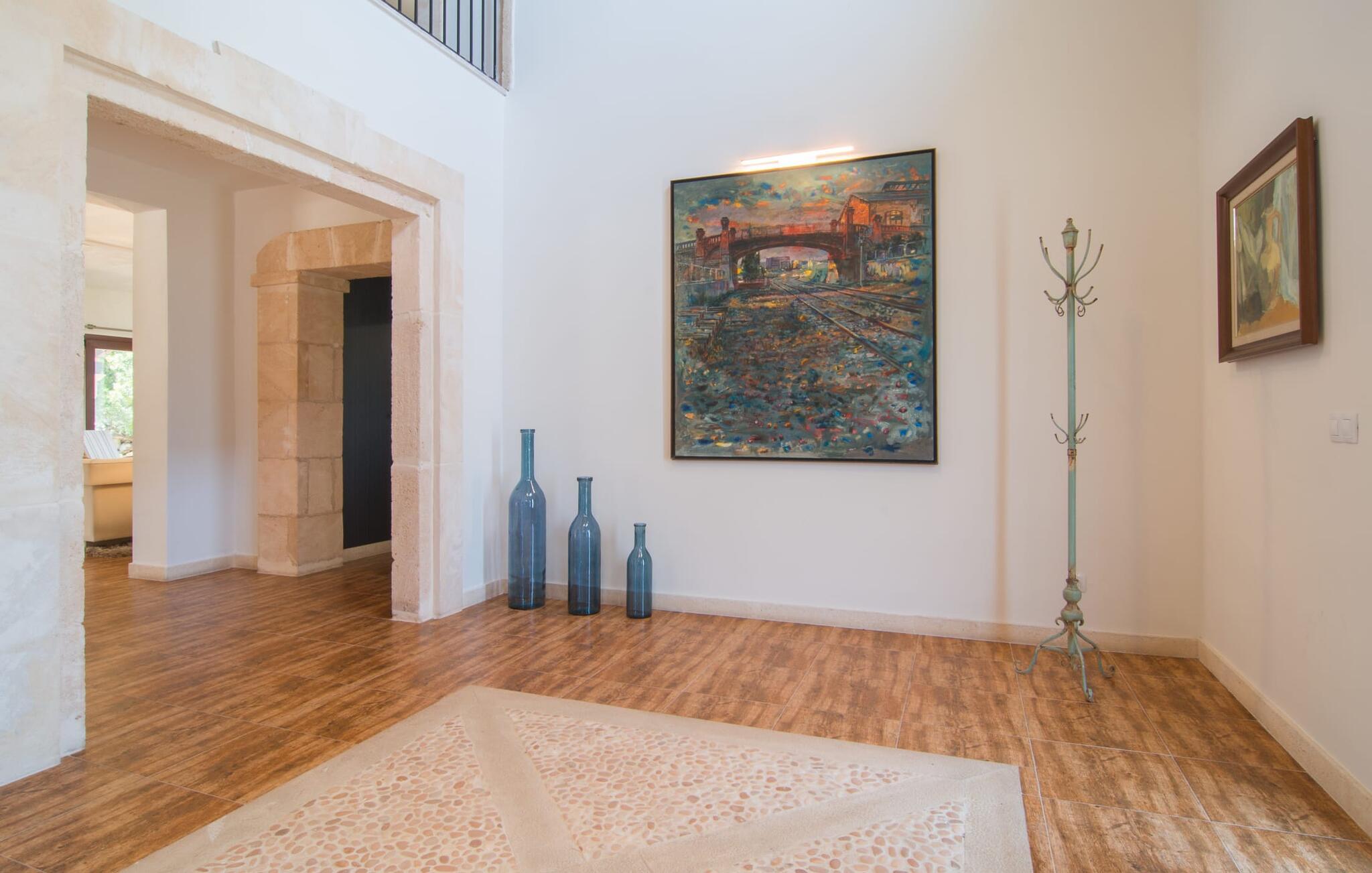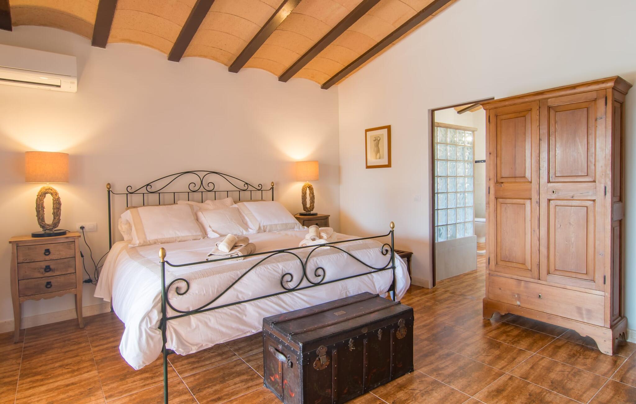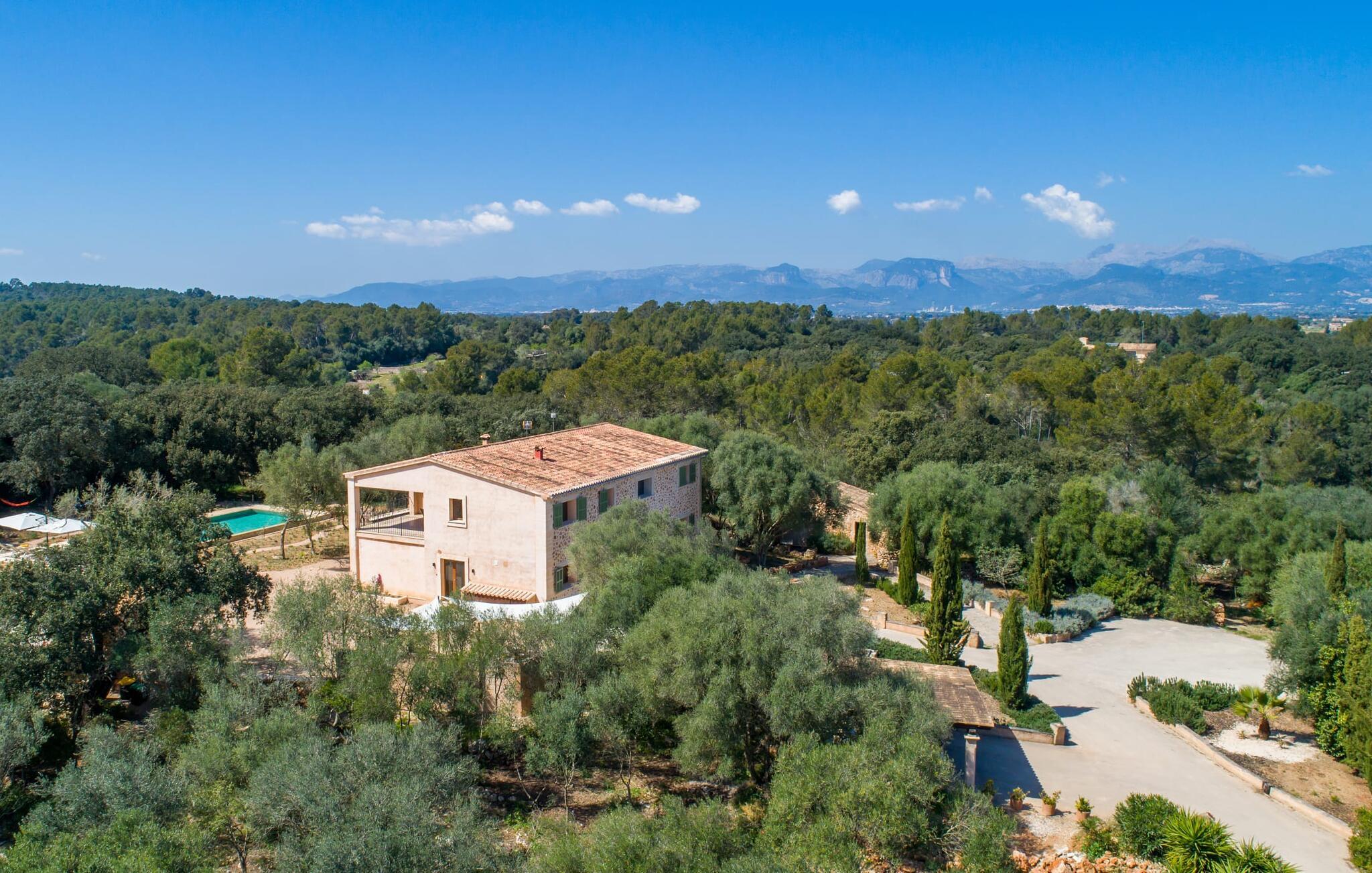 Farverne på "Can Madis" fanger straks øjet - de udtrykker livlighed, frihed, nærhed til naturen og på samme tid en følelse af ædel skønhed og luksus. Noget vi sjældent forkæler os selv med, måske alt for sjældent. Derfor bør I forkæle jeres familie og venner med et besøg på "Can Madis", en smuk ejendom i hjertet af vores ø. Figen- og oliventræer, cypresser og udsigt over Tramuntana-bjergene karakteriserer middelhavsejendommen. Den nybyggede sandstensbygning, der skinner gyldent i solen, afspejler tradition og modernitet. Det er afrundet af den enorme pool med komfortabel indgang. Efter lange dage med udflugter eller vandreture kan I slappe af i spabadet. Bagefter kan I tage en siesta på en af de komfortable liggestole under den dobbelte parasol eller blot slappe af i en af hængekøjerne i haven. Den indbyggede hjørnegrill fungerer også som bålplads efter et lækkert festmåltid - I kan sidde på de indbydende kurvemøbler ved et langt træbord under markiserne. I kan også finde mere komfortable møbler på den overdækkede del af terrassen med spiseplads, en afslappet lounge og farverige liggestole. Afslapning er hovedaktiviteten på programmet, så det usædvanligt smarte interiør og udvendige design vil altid passe til jeres behov. Midtpunktet er det kombinerede opholdsrum. Denne lyse stue med gulv til loft vinduer er opdelt i en hyggelig stue med sofagruppe og tv-hjørne, en stilfuld spiseplads foran en hyggelig pejs og et rustikt bibliotek, ligeledes med smart-tv. Så mange yndlingssteder at vælge imellem! Terracotta, trægulve, buede lofter og "hopper" understreger den naturlige atmosfære i interiøret. I vil også opdage denne kvalitet i det fuldt udstyrede køkken med træmøbler af høj kvalitet. Samtidig minder det om et gammelt stuehus med det andet ildsted: I tidligere tider var dette socialcenter, da det ofte var det eneste opvarmede lokale. Efter lange, frie dage vil I til sidst føle jer træt - I kan derefter trække jer tilbage til et af de fire airconditionerede soveværelser, hvoraf de fleste er placeret på øverste etage (et soveværelse med badeværelse er i stueetagen). På første sal har hvert af de smarte soveværelser med fantastisk udsigt også et badeværelse med brusekabine eller badekar. Den rummelige balkon med tag, hvorfra I kan overskue haven og poolen, er et ideelt sted at trække sig tilbage for at læse en god bog. Lad os være ærlige – kan I komme i tanke om noget, I skal gå på kompromis med? Vi er helt vilde med "Can Madis". Det gælder også den smukke beliggenhed af denne premium villa, selvom øens centrum ofte får mindre opmærksomhed. Det er også tilfældet med Costitx, den dejlige lille by, der hurtigt kan nås. Det tilbyder alt, hvad I behøver til hverdagen, såvel som de typiske ø-faciliteter: et landsbytorv i centrum og et ugentligt marked om lørdagen. Caféer, restauranter, en bank, et apotek, et supermarked – hvad mere kan jeres hjerte ønske sig? Og i denne lille by er der af alle steder et planetarium – men måske er udsigten til stjernerne midt på øen simpelthen den smukkeste. I bør bestemt også besøge Santuari Ferrer de Son Ferrer-attraktionen, som I endda kan kombinere med en kort gåtur. Simpelthen spredt ud - takket være den centrale beliggenhed kan I hurtigt nå alle regioner. God fornøjelse med at udforske hele Mallorca! Den moderne naturstensvilla "Can Madis" byder på et unikt smukt feriehus med en stor pool og et omfattende havelandskab. Ejendommen har en utrolig rolig beliggenhed i centrum af øen mellem Sencelles og Costitx, hvor I også kan shoppe eller besøge det ugentlige marked. Fra den centrale del af øen kan I tage på fantastiske ture til alle kystregioner og deres lokale strande - fra Cuidad Jardin i syd til Alcúdia-bugten i nord.