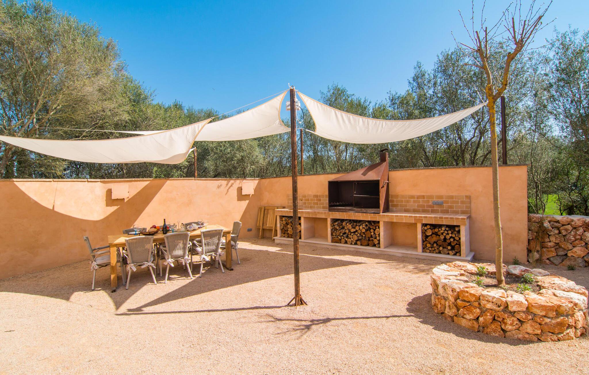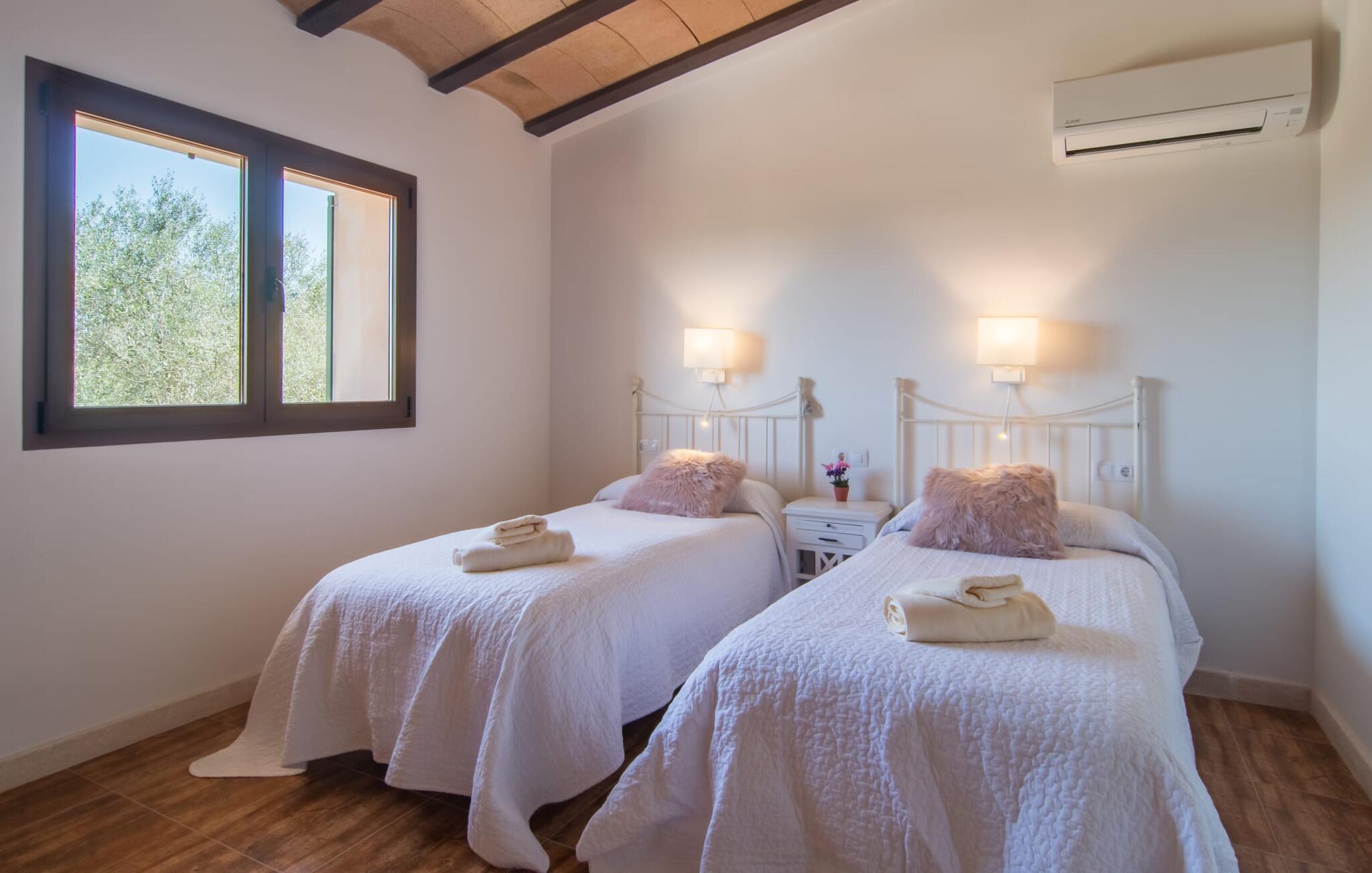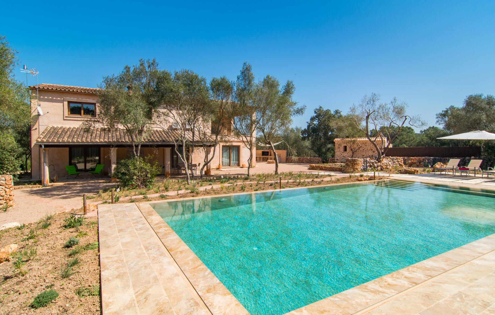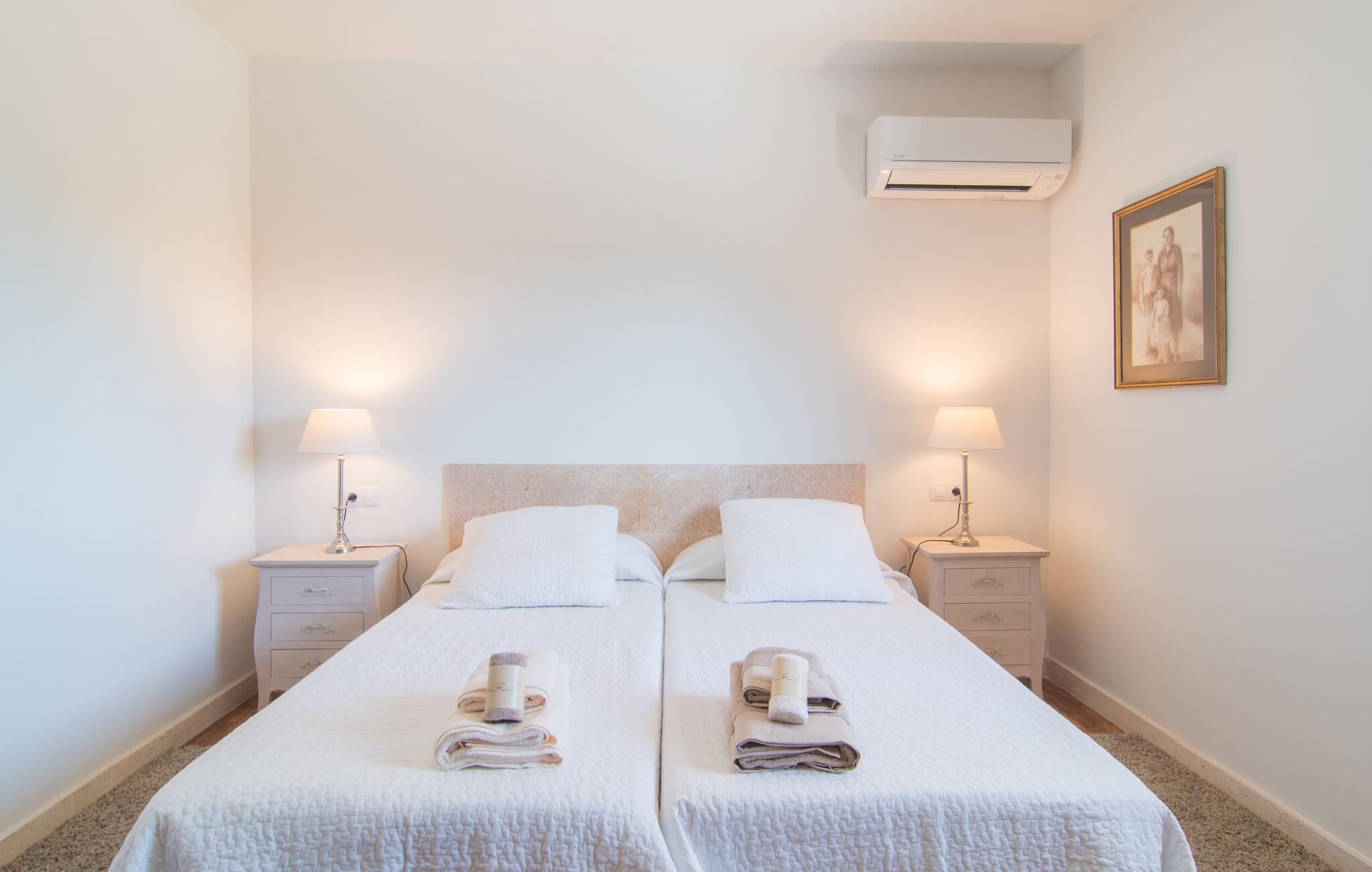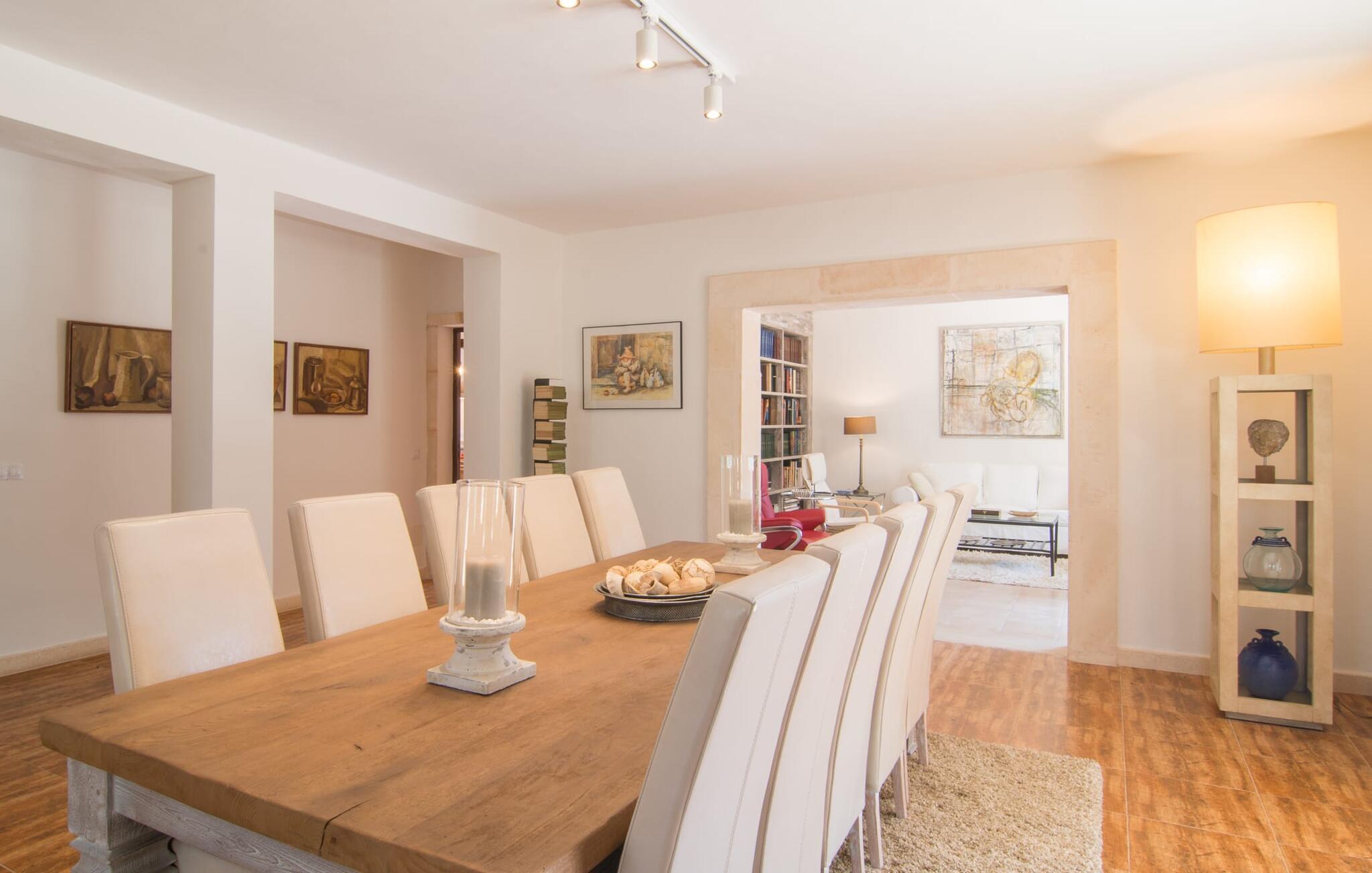 Farverne på "Can Madis" fanger straks øjet - de udtrykker livlighed, frihed, nærhed til naturen og på samme tid en følelse af ædel skønhed og luksus. Noget vi sjældent forkæler os selv med, måske alt for sjældent. Derfor bør I forkæle jeres familie og venner med et besøg på "Can Madis", en smuk ejendom i hjertet af vores ø. Figen- og oliventræer, cypresser og udsigt over Tramuntana-bjergene karakteriserer middelhavsejendommen. Den nybyggede sandstensbygning, der skinner gyldent i solen, afspejler tradition og modernitet. Det er afrundet af den enorme pool med komfortabel indgang. Efter lange dage med udflugter eller vandreture kan I slappe af i spabadet. Bagefter kan I tage en siesta på en af de komfortable liggestole under den dobbelte parasol eller blot slappe af i en af hængekøjerne i haven. Den indbyggede hjørnegrill fungerer også som bålplads efter et lækkert festmåltid - I kan sidde på de indbydende kurvemøbler ved et langt træbord under markiserne. I kan også finde mere komfortable møbler på den overdækkede del af terrassen med spiseplads, en afslappet lounge og farverige liggestole. Afslapning er hovedaktiviteten på programmet, så det usædvanligt smarte interiør og udvendige design vil altid passe til jeres behov. Midtpunktet er det kombinerede opholdsrum. Denne lyse stue med gulv til loft vinduer er opdelt i en hyggelig stue med sofagruppe og tv-hjørne, en stilfuld spiseplads foran en hyggelig pejs og et rustikt bibliotek, ligeledes med smart-tv. Så mange yndlingssteder at vælge imellem! Terracotta, trægulve, buede lofter og "hopper" understreger den naturlige atmosfære i interiøret. I vil også opdage denne kvalitet i det fuldt udstyrede køkken med træmøbler af høj kvalitet. Samtidig minder det om et gammelt stuehus med det andet ildsted: I tidligere tider var dette socialcenter, da det ofte var det eneste opvarmede lokale. Efter lange, frie dage vil I til sidst føle jer træt - I kan derefter trække jer tilbage til et af de fire airconditionerede soveværelser, hvoraf de fleste er placeret på øverste etage (et soveværelse med badeværelse er i stueetagen). På første sal har hvert af de smarte soveværelser med fantastisk udsigt også et badeværelse med brusekabine eller badekar. Den rummelige balkon med tag, hvorfra I kan overskue haven og poolen, er et ideelt sted at trække sig tilbage for at læse en god bog. Lad os være ærlige – kan I komme i tanke om noget, I skal gå på kompromis med? Vi er helt vilde med "Can Madis". Det gælder også den smukke beliggenhed af denne premium villa, selvom øens centrum ofte får mindre opmærksomhed. Det er også tilfældet med Costitx, den dejlige lille by, der hurtigt kan nås. Det tilbyder alt, hvad I behøver til hverdagen, såvel som de typiske ø-faciliteter: et landsbytorv i centrum og et ugentligt marked om lørdagen. Caféer, restauranter, en bank, et apotek, et supermarked – hvad mere kan jeres hjerte ønske sig? Og i denne lille by er der af alle steder et planetarium – men måske er udsigten til stjernerne midt på øen simpelthen den smukkeste. I bør bestemt også besøge Santuari Ferrer de Son Ferrer-attraktionen, som I endda kan kombinere med en kort gåtur. Simpelthen spredt ud - takket være den centrale beliggenhed kan I hurtigt nå alle regioner. God fornøjelse med at udforske hele Mallorca! Den moderne naturstensvilla "Can Madis" byder på et unikt smukt feriehus med en stor pool og et omfattende havelandskab. Ejendommen har en utrolig rolig beliggenhed i centrum af øen mellem Sencelles og Costitx, hvor I også kan shoppe eller besøge det ugentlige marked. Fra den centrale del af øen kan I tage på fantastiske ture til alle kystregioner og deres lokale strande - fra Cuidad Jardin i syd til Alcúdia-bugten i nord.