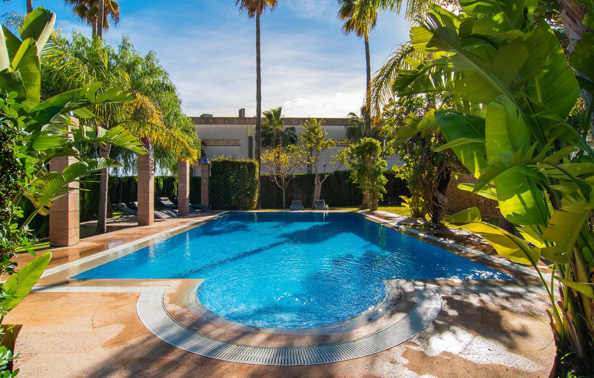Rækkehuset "Can Mandol" er et elegant, meget rummeligt feriehus på Mallorca. Denne ejendom omdefinerer konceptet for et rækkehus, der tilbyder et byparadis på en stor grund med en række indbydende udendørs muligheder. Den frodige, parklignende vegetation skaber en fantastisk baggrund for udendørs afslapning. I vil finde velplejede græsplæner og forskellige overdækkede terrasseområder, perfekt til at nyde tid med venner eller slappe af i fred. Poolen er let tilgængelig via romerske trin og inviterer jer til at tage en forfriskende svømmetur. En enestående funktion er det fremragende udstyrede sommerkøkken, som inklusiv en grill byder på en vidunderlig beskyttet atmosfære til kulinariske eventyr. Indenfor fortsætter den luksuriøse indretning med at imponere. De rummelige værelser udstråler klassisk elegance og kan komfortabelt rumme op til otte gæster. Rigelig naturligt lys beriger opholdsrummene, hvoraf nogle er indrettet med lyse farver og gennemtænkt tilbehør. I stueetagen er der opholds- og spisestue og to soveværelser med hvert sit badeværelse og et påklædningsværelse. På øverste etage er der yderligere to soveværelser, også med private badeværelser og et med påklædningsværelse. Alle værelser er udstyret med aircondition, hvilket sikrer afslappende nætter selv i de varmere måneder. Rækkehuset "Can Mandol" præsenterer sig som et elegant, meget rummeligt feriehus på Mallorca. På grund af den urbane beliggenhed og fremragende infrastruktur kan I endda gøre jeres dagligvarer til fods, for eksempel på det ugentlige marked om torsdagen. De smukke strande, for eksempel i den lange bugt Alcúdia, ligger omkring 24 km væk.