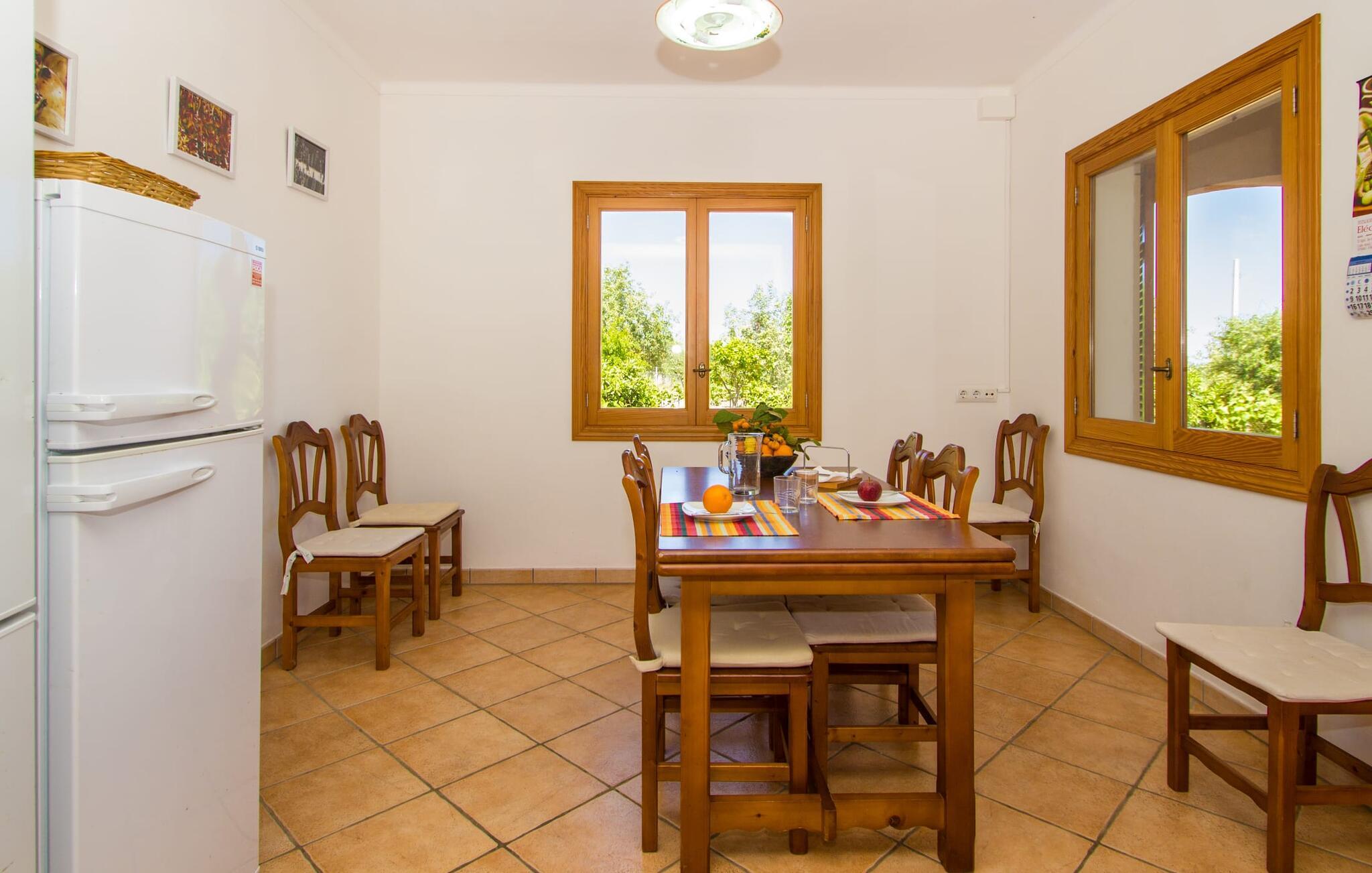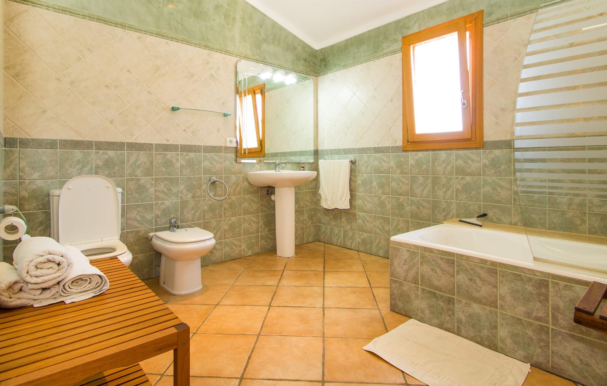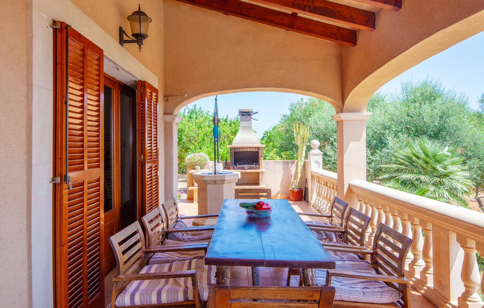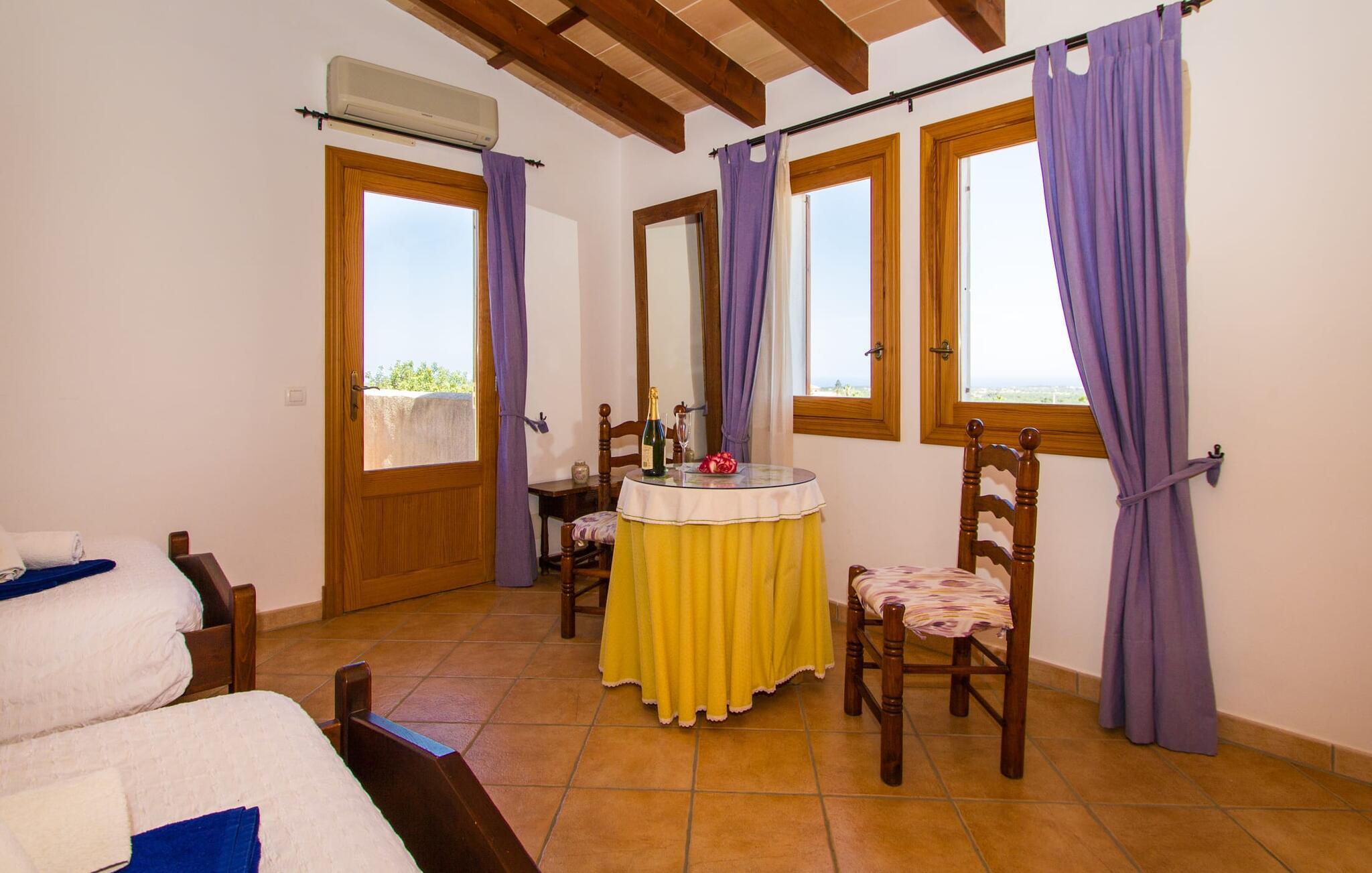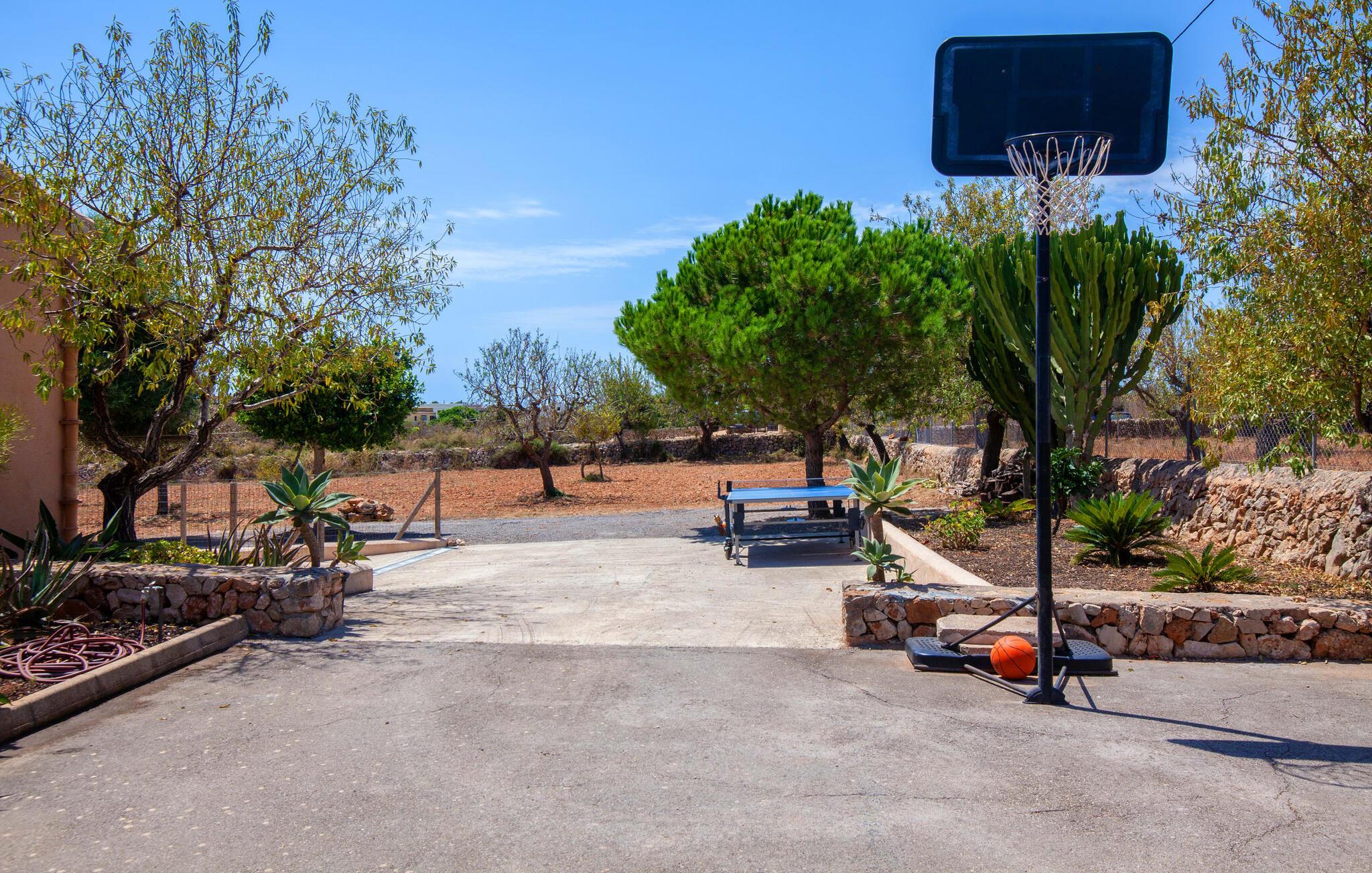 Villa "Can Marines" tilbyder den perfekte blanding af privatliv og bekvemmelighed, beliggende i en smuk grund med nem adgang til nærliggende faciliteter. Ejendommen har middelhavsflora, herunder mandeltræer, hvilket skaber et roligt udendørsområde. De omfattende terrasser tilbyder en betagende havudsigt, herunder et glimt af Portocolom fyrtårn. Poolen, med sin trappeindgang i romersk stil, er perfekt til at slappe af og nyde solen. Indvendigt har villaen med aircondition et typisk spansk design og en varm, indbydende atmosfære med fire soveværelser med dobbeltsenge, tre badeværelser (et en-suite) og en rummelig stue/spisestue med pejs. Det fuldt udstyrede køkken og et lille fitnesscenter i kælderen giver ekstra komfort. Fincaen "Can Marines" ligger på landet lige uden for S'Horta på den sydlige del af øen. Bare to minutters kørsel eller gå ind i landsbyen med et lille supermarked, restauranter og caféer, eller gå, hvis I foretrækker det. Santanyí med sit marked hver onsdag og lørdag er omkring 10 km væk. De nærmeste strande ligger kun 5 km væk, herunder Cala Sa Nau og Cala d'Or. Aircondition i denne ejendom er inkluderet i 12 timer om dagen med rimelig brug. I det sjældne tilfælde, at denne grænse overskrides, vil I blive opkrævet kontant på stedet. Bemærk venligst, at denne ejendom ikke accepterer ungdomsgrupper eller polterabender. En ungdomsgruppe på denne ejendom består af personer under 25 år. Book ikke denne ejendom, hvis I er en ungdomsgruppe eller polterabend, da jeres reservation vil blive afvist, når den er booket, hvilket kan være ved ankomsten til ejendommen eller under jeres ophold, og I vil ikke modtage en refusion.