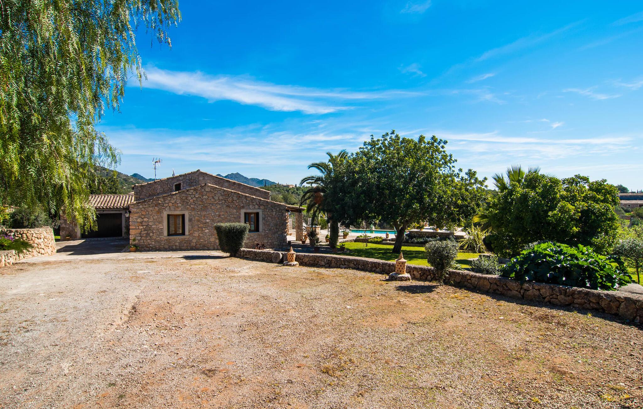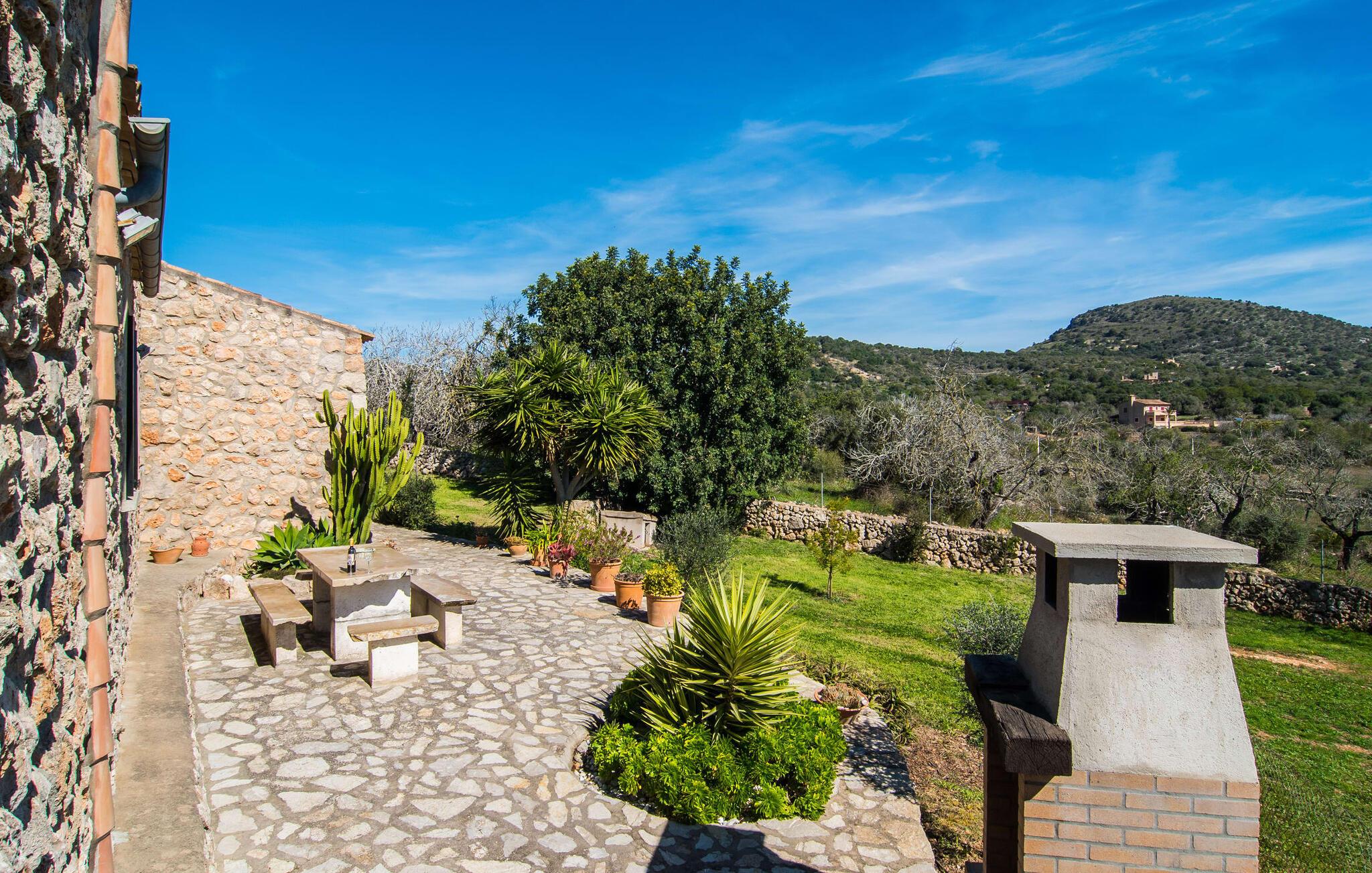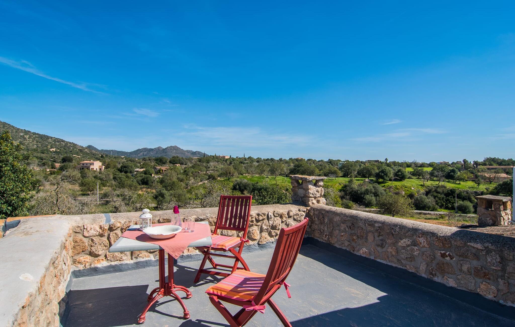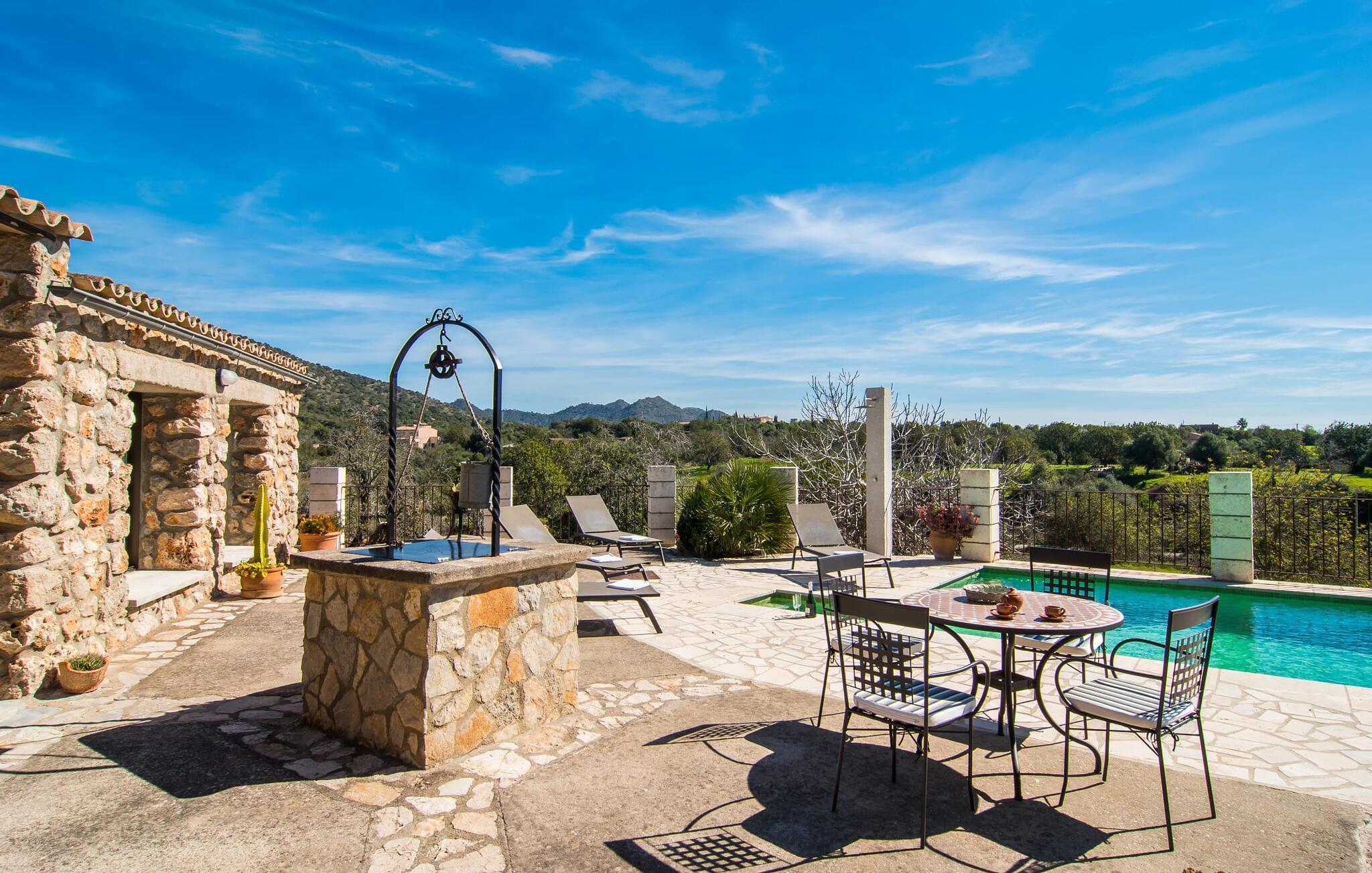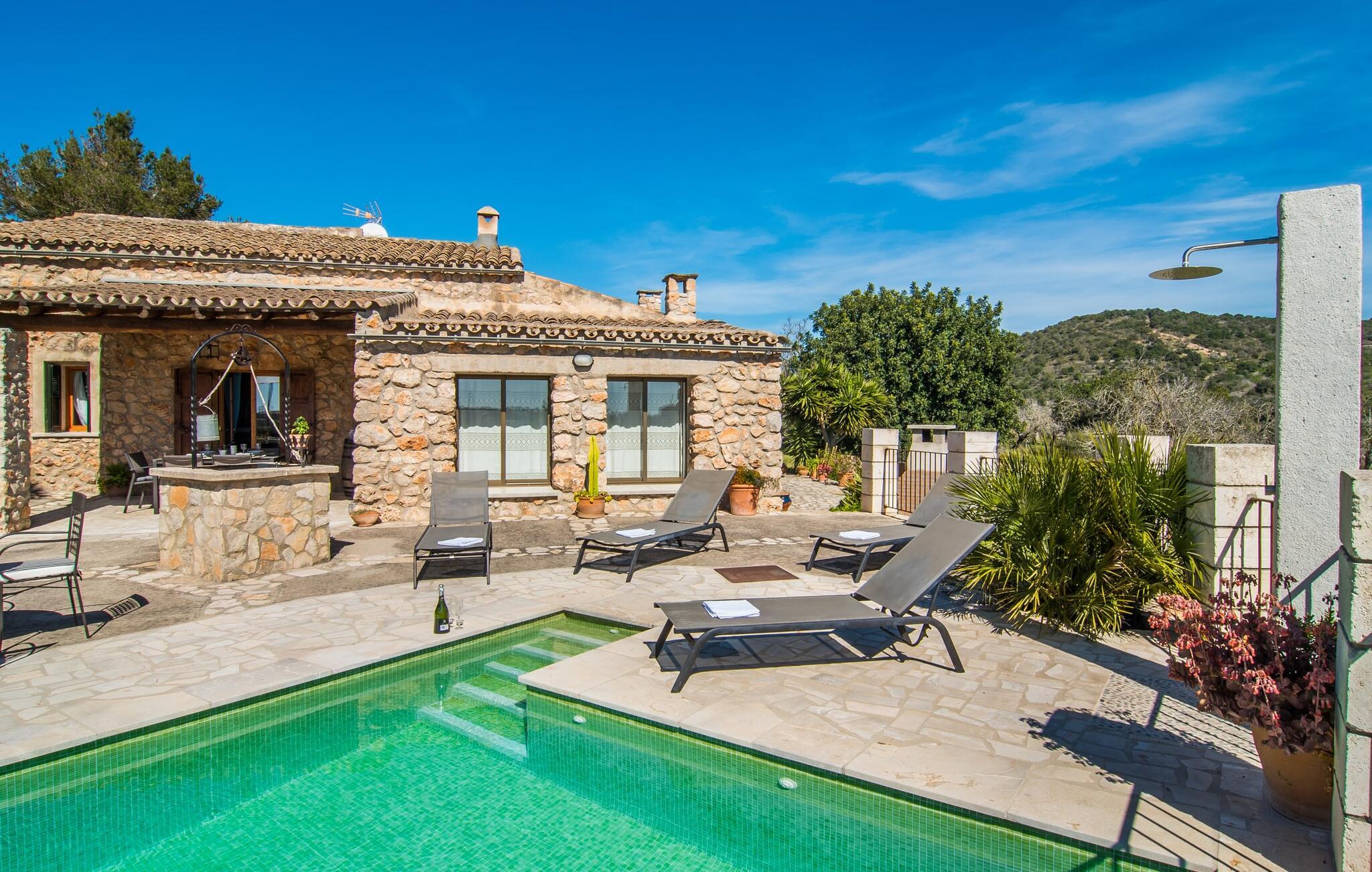Villa "Can Matxet" er et perfekt eksempel på et mallorcansk feriehus, der kombinerer autentisk charme med moderne komfort. Villaen ligger på en let skrånende grund omgivet af en lav bakke og byder på en fantastisk udsigt fra adskillige udendørs siddepladser. Haven med mandel-, oliven- og citrustræer blander sig problemfrit ind i det naturlige landskab, selv inden for stenmuren. Slående sofaborde og robuste stenbænke er spredt ud over de solbeskinnede terrasser, mens liggestole i aluminium er det perfekte sted at slappe af efter en svømmetur i den azurblå pool. To cardio-maskiner er tilgængelige for fitness-entusiaster. Nyd grillet mad ved det moderne spisebord under den overdækkede terrasse. Tagterrassen byder på en uforglemmelig udsigt over landskabet, perfekt til stjernekiggeri, mens I lytter til de beroligende lyde fra græshopperne og mærker den varme brise. Indenfor fortsætter villaen med at imponere med sin blanding af lyse gulve, synlige murværker og træelementer. De rummelige opholds- og spiseområder suppleres af et separat køkken med kaffebrune møbler. Tre dobbeltværelser deler to stilfulde badeværelser, hvoraf det ene har badekar. Den øverste etage byder på endnu et rum, der er ideelt som lounge eller kontor. Villaen er beliggende i den rolige østlige del af øen i det blidt bølgende landskab omkring Sant Llorenc. Middelalderbyen Artà med sit landmandsmarked om tirsdagen og Manacor, Mallorcas næststørste by, er gode til shopping og ligger kun en kort køretur væk. Smukke sandstrande som Cala Marcal eller smukke naturlige strande som Cala Varques er kun 15 km væk.
