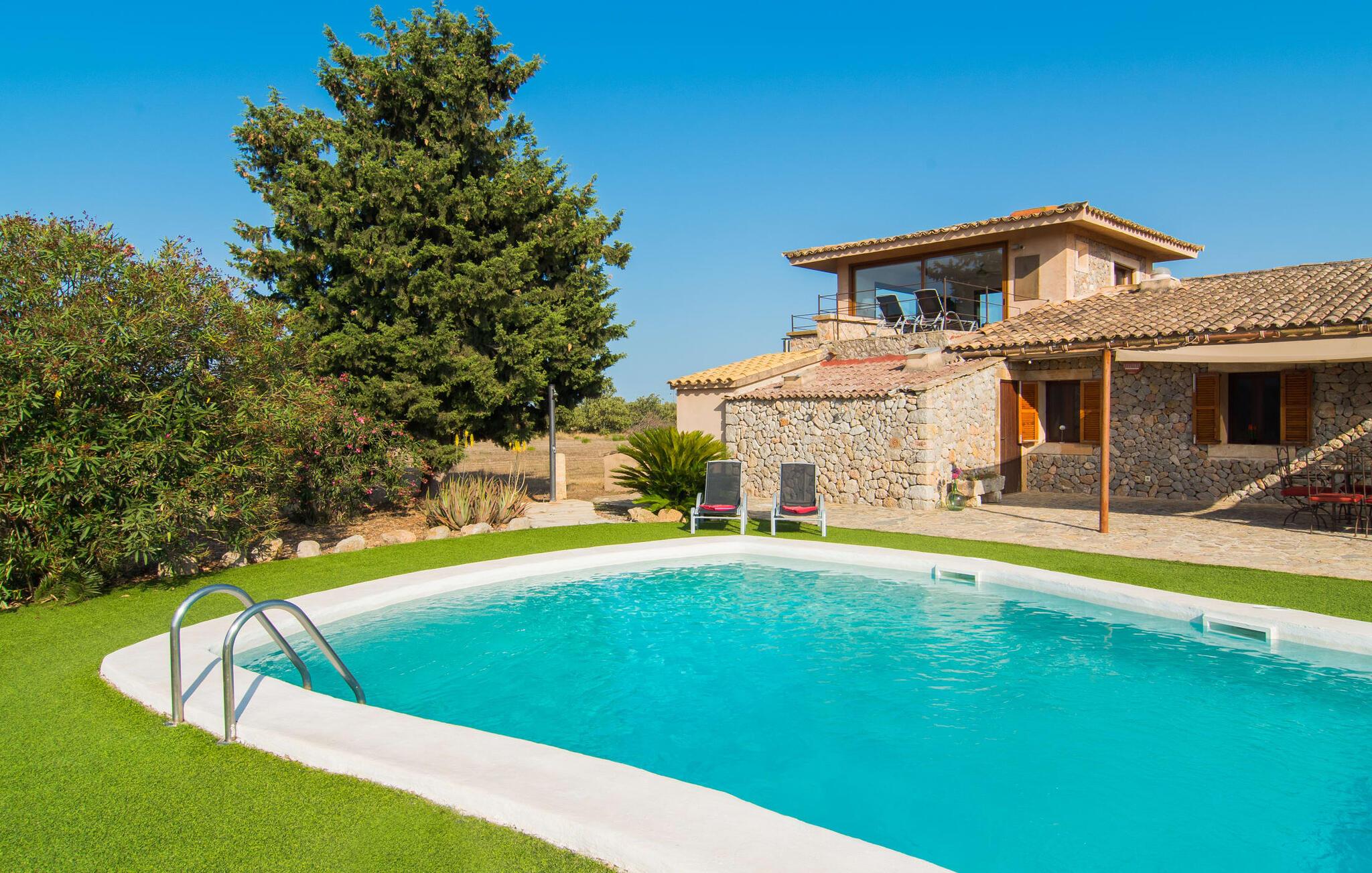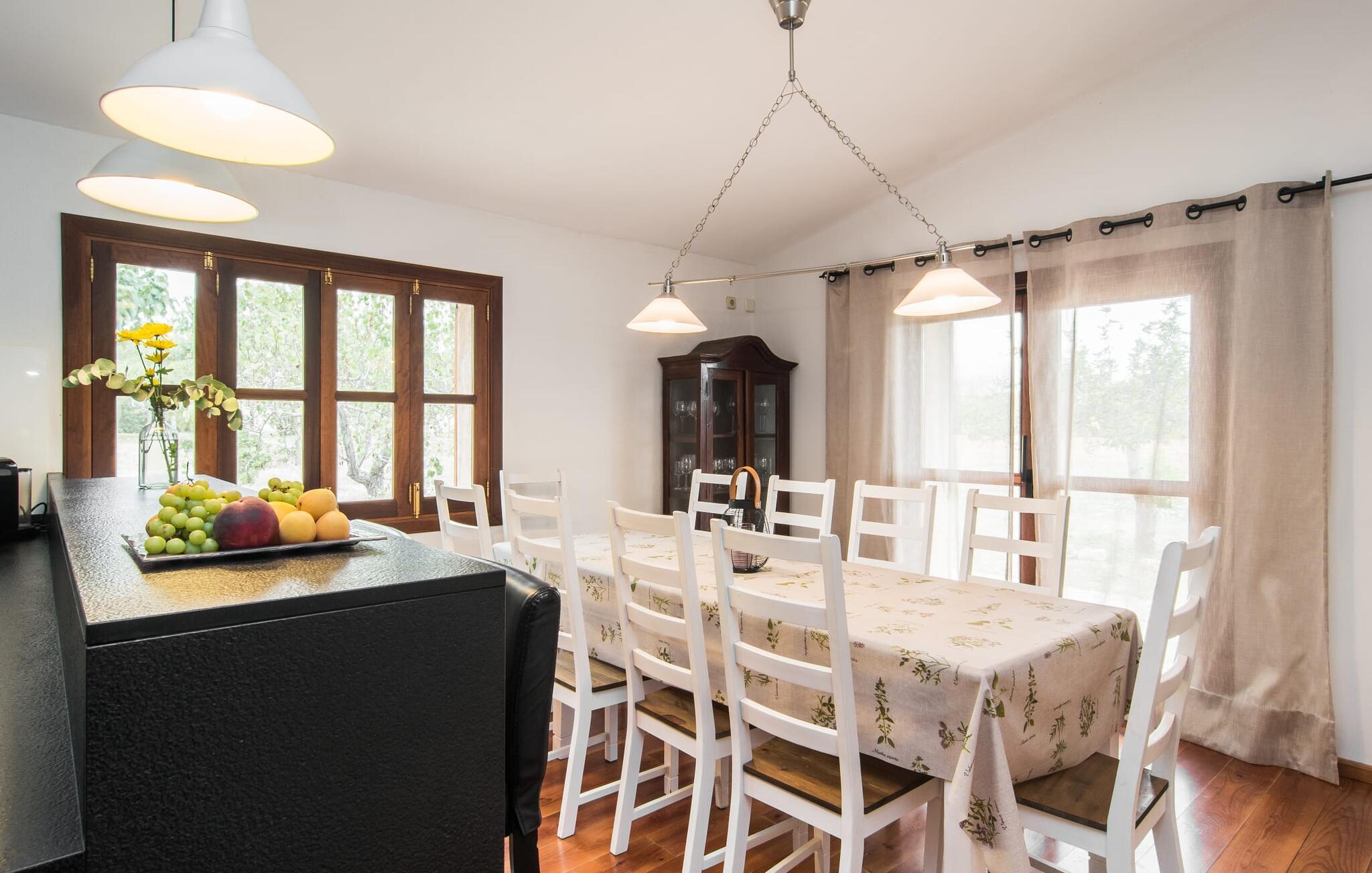 “Can Mel” byder på et stort udendørsområde med swimmingpool, overdækket terrasse, udekøkken med grill, herunder smuk udsigt over landskabet og bjergene. Indersiden af huset er meget hyggeligt. Rummelig stue med pejs, fuldt udstyret køkken med store vinduer til at nyde udsigten. I stueplan er der desuden fire soveværelser og to badeværelser, hvoraf det ene er en suite, samt et praktisk gæstetoilet. Meget usædvanligt: Det øverste soveværelse med dobbeltseng (også med badeværelse en suite) tilbyder panoramaudsigt takket være dets XL-vinduer. Terrassen på første sal byder på smuk udsigt over landskabet og bjergene. Nyd jeres ophold i "Can Mel"-gården. "Can Mel"-gården er det ideelle sted for en afslappende ferie med lejlighedsvise ture til byen, til de smukke strande eller til den nordlige del af Mallorca med sine imponerende Tramuntana-bjerge. Besøg Alcúdia-bugten, Can Picafort eller Playa de Muro. I Búger, kun 2 km væk, finder I små supermarkeder samt barer og restauranter. I Sa Pobla (2,5 km) er der et ugentligt marked om søndagen.