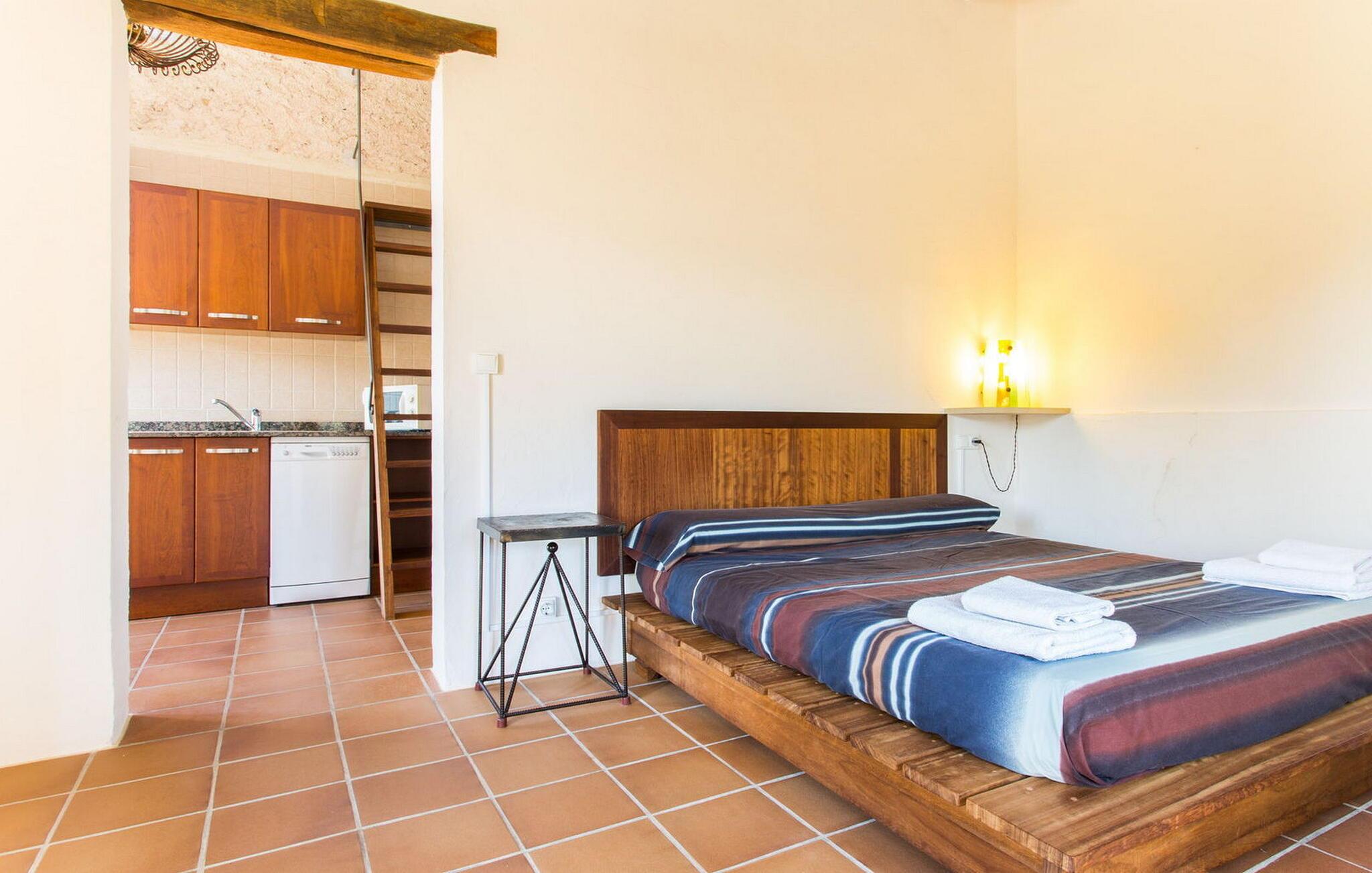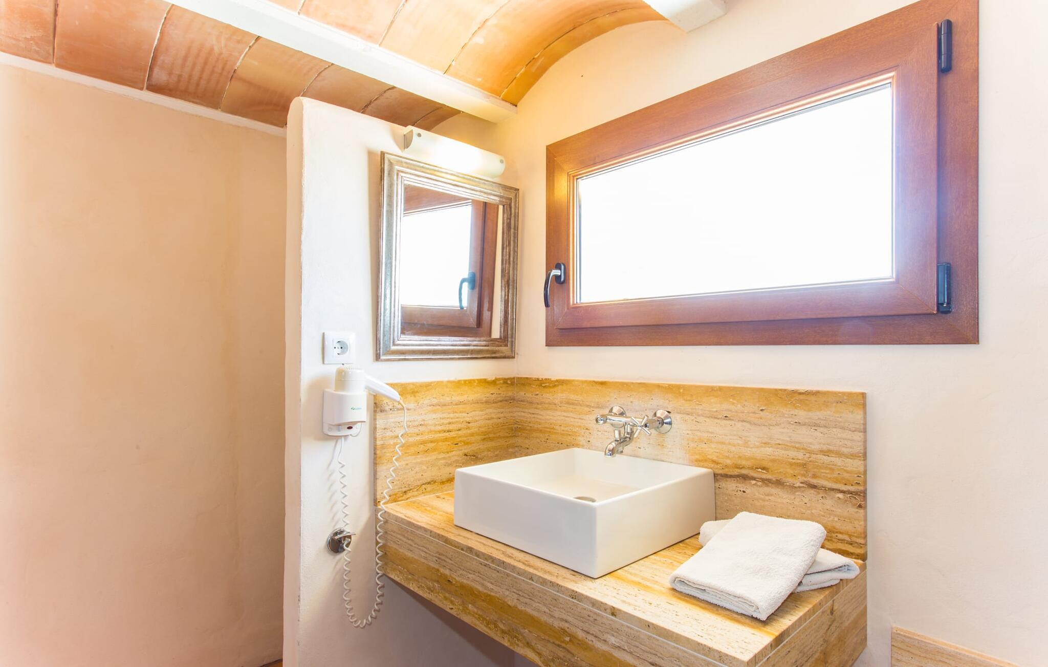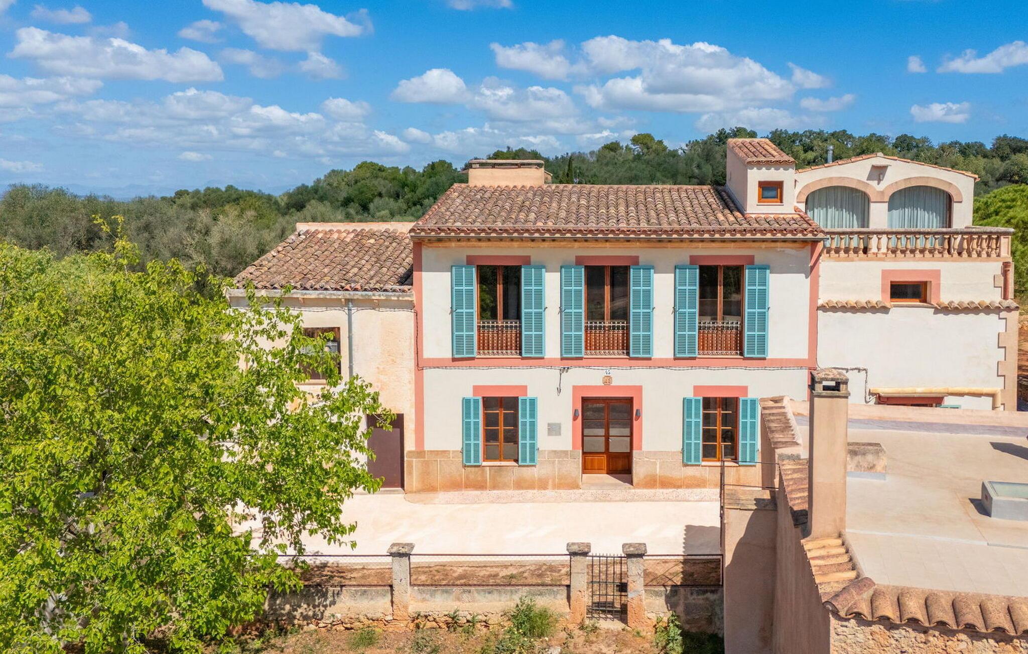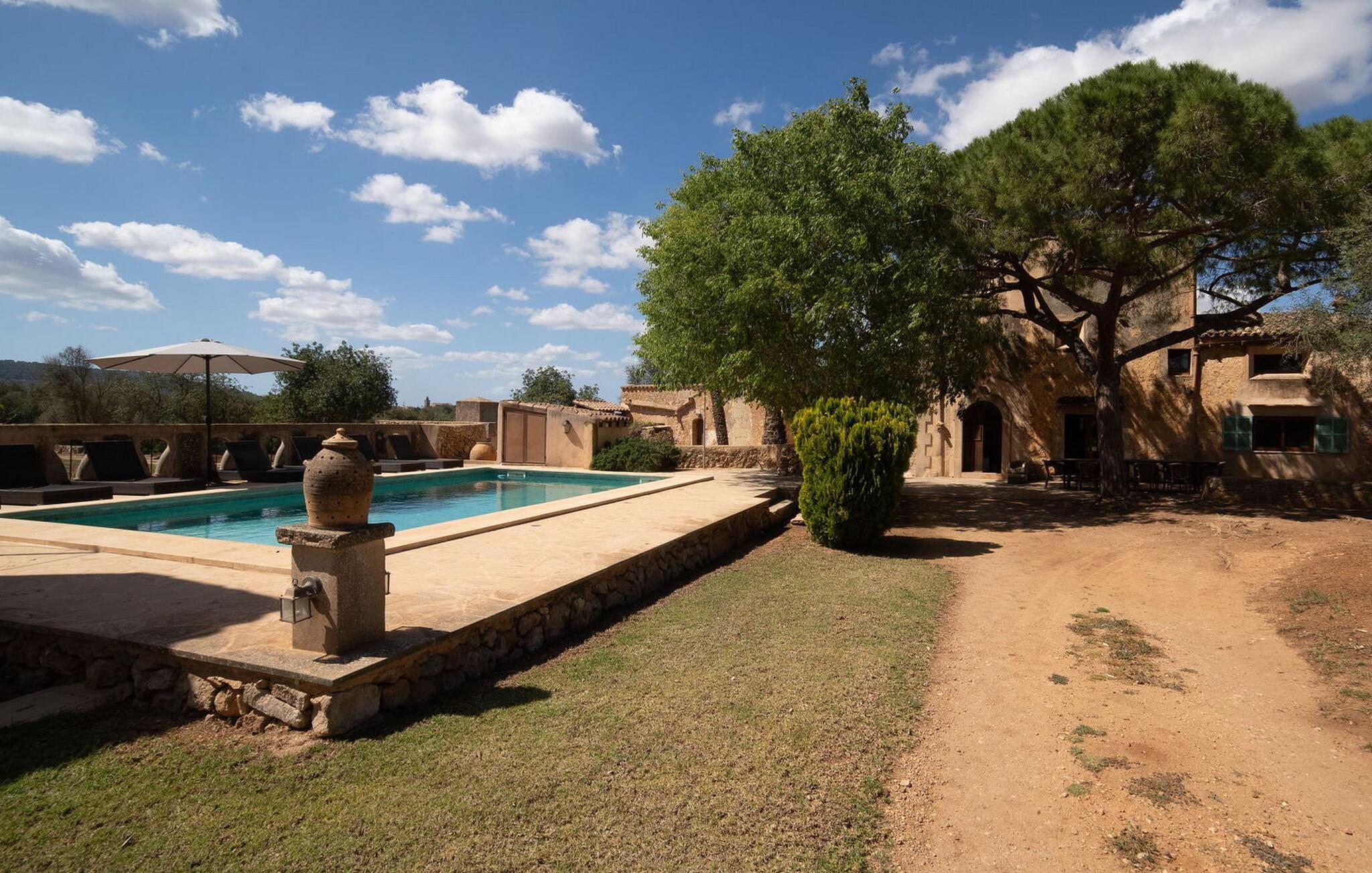 Bakket land, venlige mennesker, fred og ro, masser af natur: Og midt i det hele venter en overdådigt restaureret, historisk landejendom på utrolige 280.000 m² på at blive udforsket til fods eller på cykel. Hvis I altid har ønsket at leve som kongelig, så kan "Can Menut" opfylde jeres ønske. Den rustikke villa ligner en lille fæstning med en lang indkørsel, volde og flere bygninger, herunder det separate gæstehus, den overdækkede grillterrasse med et lille køleskab og et udendørs badeværelse med bruser og toilet. Absolut fred og privatliv, historiens puls, middelhavslivsstil og udsigten fra poolen af bølgende bakker og marker hele vejen til bjergklostret San Salvador er en luksus, I ikke kan sætte en pris på. Når I sætter jer til at spise sammen ved det lange træbord foran gammelt murværk, bøjer bordet sig under vægten af tapas, oliven, brød, grillet fisk og karafler med vin samt latter, livet er simpelthen smukt og ferien er lige så lækkert, som det skal være! “Can Menut” er en antik perle, der plejes med stort engagement og kærligt kombinerer svundne tiders charme og tradition med nutidig komfort. Alle fem soveværelser (tre på første sal med en fælles læsesal, et i gæstehuset) har deres egne badeværelser, enten en-suite eller lige overfor. Det er her kombinationen af gammelt og nyt kommer til sin ret med små vinduer, træelementer, naturpuds, stilrene dekorative fliser eller et fritstående badekar. Den romantiske, rummelige tårnsuite i kategorien superior med en smal, antracitfarvet brusebakke ligger på anden sal og kan kun nås via en let stejl trappe. Til gengæld kan hele glasfronten hæves mod balkonterrassen, hvorved der afsløres udsigt til de toscanske-mallorcanske bakker - ren nydelse! Stueetagen er mere praktisk med en lille entré, stue/alrum med åbent, rustikt køkken og en puristisk tv-stue. Og "Can Menut en Miniature" tilbyder to gæster, der trænger til et retræte, et værelse nær poolen med dobbeltseng, brusebad, tekøkken og et hyggeligt siesta-hjørne på loftet. Enhver, der lever i en sådan stil, har naturligvis brug for et miljø med esprit og... og berømthedsfaktor. En gammel ejendom fra 1500-tallet kaldet Casa el Conco gav sit navn til den lille, ret søvnige Ca's Concos des Cavallers og har i mange år tiltrukket en original kultur- og kunstscene samt velhavende tyskere, der bor i den bakkede region omkring Santanyí, Es Carritxó og S'Alqueria Blanca. Folkets originale og særlige åbenhed er meget værdsat her, og folk mødes i den trendy Bistro Viena eller i den autentiske La Tasca. For at svømme, tag først til Cala Mondragó, hvor det turkise vand og den hvide sandstrand simpelthen er uimodståelige. I maleriske Felanitx venter smalle gader, en af Mallorcas ældste kirker og travlheden på det ugentlige søndagsmarked på jer, mens Santanyí, Ses Salines og Colònia de Sant Jordi inviterer jer til spadsereture, bådture og kunstnerisk værdifuldt kunsthåndværk til espresso pauser. Historisk landejendom! 280.000 m² Mallorca Toscana/person! Denne eksklusive familieejendom "Can Menut" med et separat gæstehus har en absolut rolig beliggenhed, men ligger tæt på partistlandsbyen Ca's Concos de Cavaller, som er meget populær blandt tyske beboere. Supermarkeder, bagerier og trendy restauranter og gallerier er kun 5 minutter væk i den næste landsby. Og med Felanitx på den ene side og Santanyí på den anden, med Cala Mondragó, Es Trenc, Cala Figuera og Cala Marçal, er I forkælet med valg af, hvilken af de meget værdifulde destinationer I vil besøge i jeres område, svømning, vandreture, gennem butikkerne gennemse eller bare se og blive set. Valgfri brug af aircondition skal betales kontant på stedet mellem kl. 22.00 og kl.