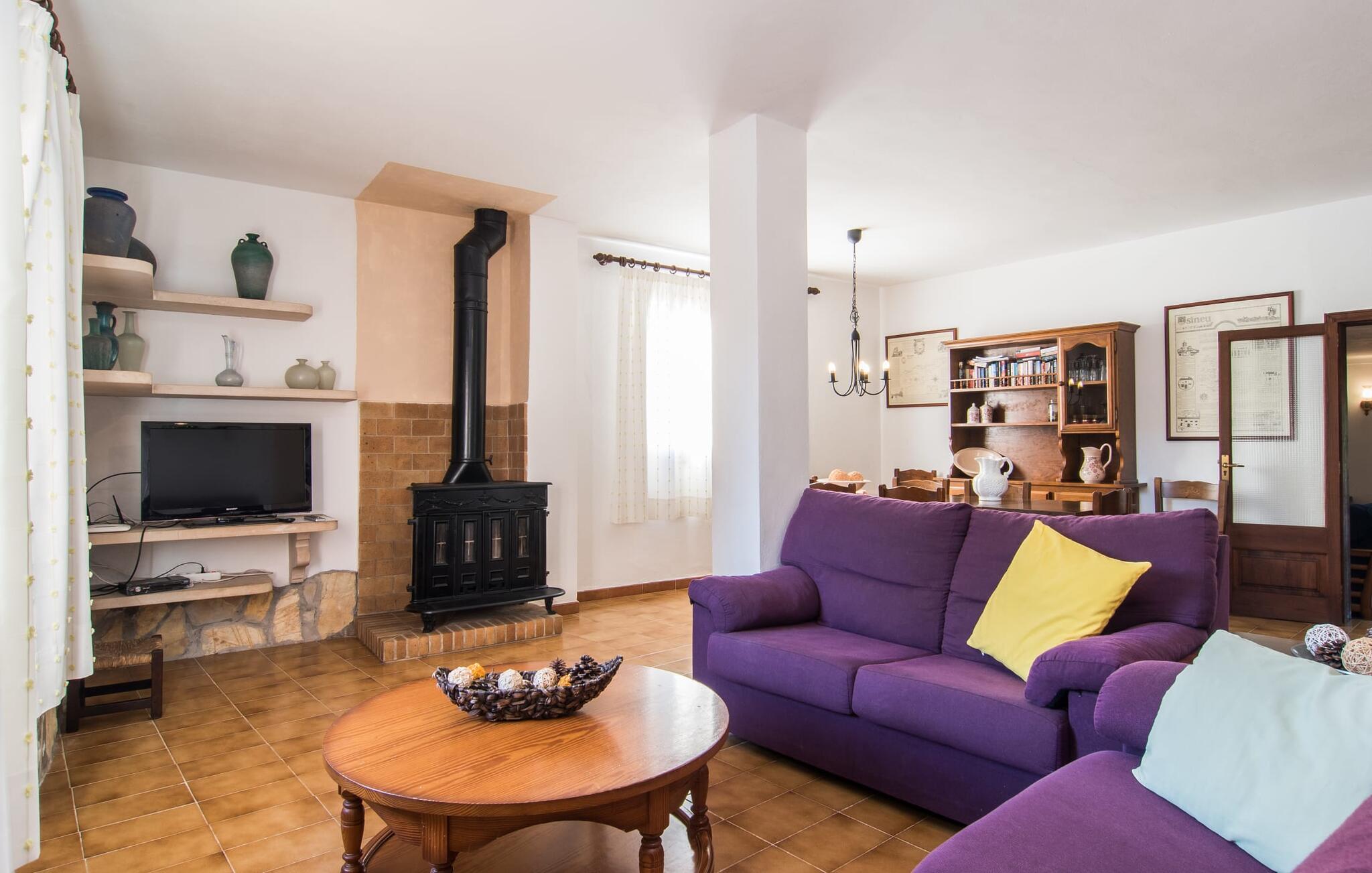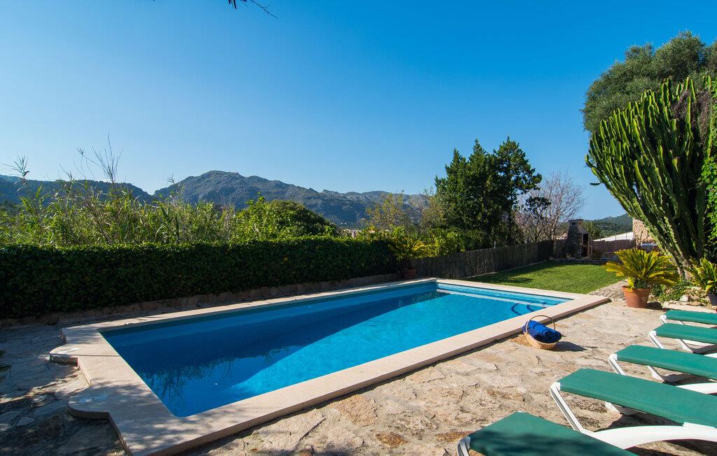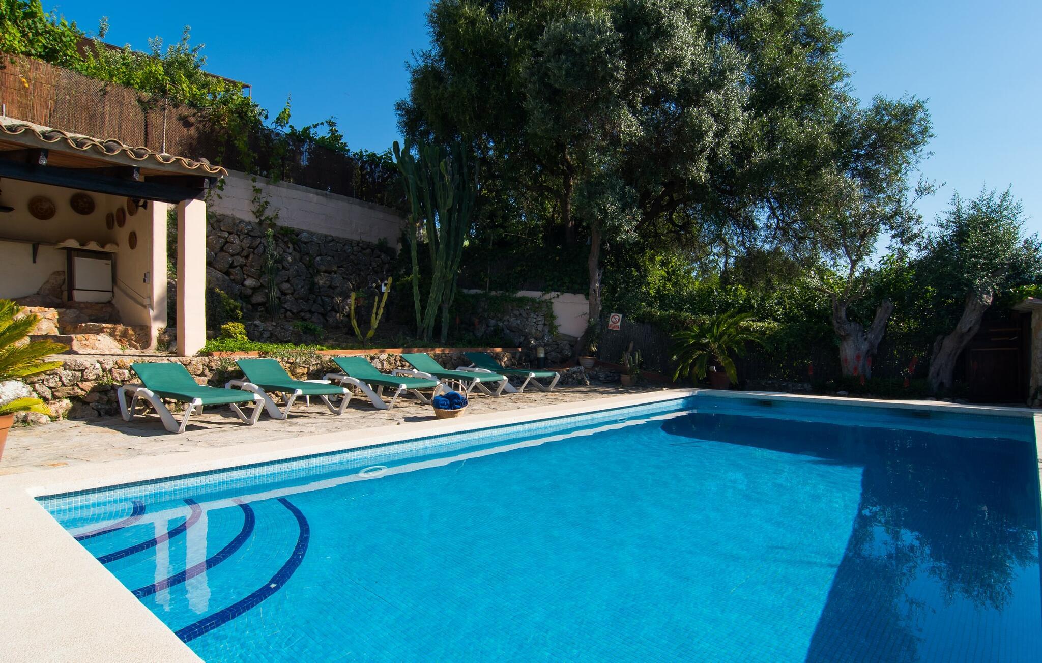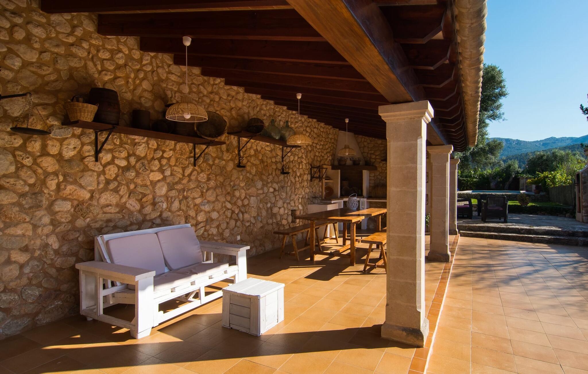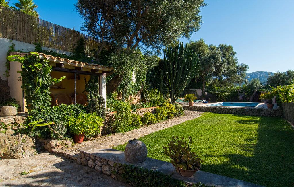 Omgivet af frodig middelhavsflora skinner villaen "Can Moragues" på en yderst charmerende måde med sine kontrasterende naturtoner og byder den nytilkomne velkommen. Udendørsområdet byder på smukke små stier, områder, trapper og stengærder langs frodige græsplæner og blomsterbede. En romantisk pergola, foret til venstre og højre med søjler og en lav mur, fører til hovedindgangen til huset. Udeområdets hjerte er den 32 m², let forhøjede swimmingpool, som er flisebelagt med dekorative blå mosaiksten og er meget let tilgængelig via en bred trappe. I kan slappe af af hjertens lyst på i alt fem komfortable liggestole under den dybblå middelhavshimmel og bare slappe af. En overdækket terrasse, tilgængelig via få trin, giver mulighed for at blive hængende i den luftige skygge, mens I nyder den vidunderlige udsigt over Pollença fra et lidt lavere niveau. Afhængigt af tidspunktet på dagen finder I også skøn naturlig skygge ved poolen. Tættere på huset når man den alsidige terrasse, som er halvt åben og halvt overdækket. I den sidste del er der i det væsentlige en udendørs stue, hvori der er en hyggelig siddegruppe med polyrattan møbler på den ene side og lige ved siden af et solidt spisebord til fællesspisning. Den nærliggende murede grill og udendørs vandforsyning giver jer mulighed for at tilberede og tilberede måltider udendørs, hvis I ønsker det. Husvæggen i natursten skaber i kombination med de smukke fliser og træbjælkeloftet en særlig behagelig stemning i dette område. Den udendørs terrasse tilbyder et sted at solbade, og der er endda et bordtennisbord. Dette giver sportsinteresserede mulighed for at blive aktive. Inde i villaen præsenteres den besøgende for en stor åben stue/spisestue med et tilstødende køkken, løst adskilt af en disk. Et hyggeligt sofahjørne inviterer jer til at slappe af og slappe af. Her kan I roligt læse en god bog eller blive underholdt af en film, da fjernsynet også er bekvemt placeret her. Spisebordet lige ved siden af er ideelt til sofistikeret indendørs spisning. Der er ingen lange rejser, fordi køkkenet ligger lige ved siden af. Her finder I alle de moderne faciliteter I har brug for til hverdagsbrug, herunder en kedel og en filterkaffemaskine. Det giver endda plads til et ekstra lille spisebord. Et andet ret rummeligt fællesrum med siddepladser giver mulighed for at trække sig tilbage og finde et privat sted, selv når man rejser med en større gruppe. Medfølgende børn vil helt sikkert nyde at lege her. Fire komfortabelt møblerede værelser med aircondition tilbyder en vidunderlig ramme for en afslappende søvn. Badeværelserne er venlige og funktionelt indrettede. Et strygejern og en hårtørrer er også tilgængelige i huset, så I behøver ikke at tage dem med. Den attraktive beliggenhed af denne villa kan være landlig, men havet er kun et par minutters kørsel væk. Sandstrandene omkring Port Pollença er fremragende og har en lavvandet indgang til vandet. Port de Pollença byder på en smuk promenade langs stranden og havnen med butikker, barer og restauranter. Kunne I tænke jer at tilbringe aftenen et andet sted end den smukke villa, finder I her et absolut seværdigt alternativ. Villaen "Can Moragues" er beliggende i en smuk bjergskråning i udkanten af Pollença. Det ligger på en frodig, grøn ejendom og er indrettet med stor sans for detaljer. Port de Pollença ligger 9 km derfra. Denne lille kystby imponerer med sin smukke promenade, som indbyder til at slentre og besøge de talrige caféer. Sandstrandene kan nås fra feriehuset på ingen tid. Bemærk venligst, at denne ejendom ikke accepterer ungdomsgrupper eller polterabender. En ungdomsgruppe på denne ejendom består af personer på 25 år eller derunder. Book ikke denne ejendom, hvis I er en ungdomsgruppe eller polterabend, da jeres reservation vil blive afvist, når den er booket, hvilket også kan være tilfældet ved ankomst til ejendommen eller under jeres ophold, og I vil ikke modtage en refusion