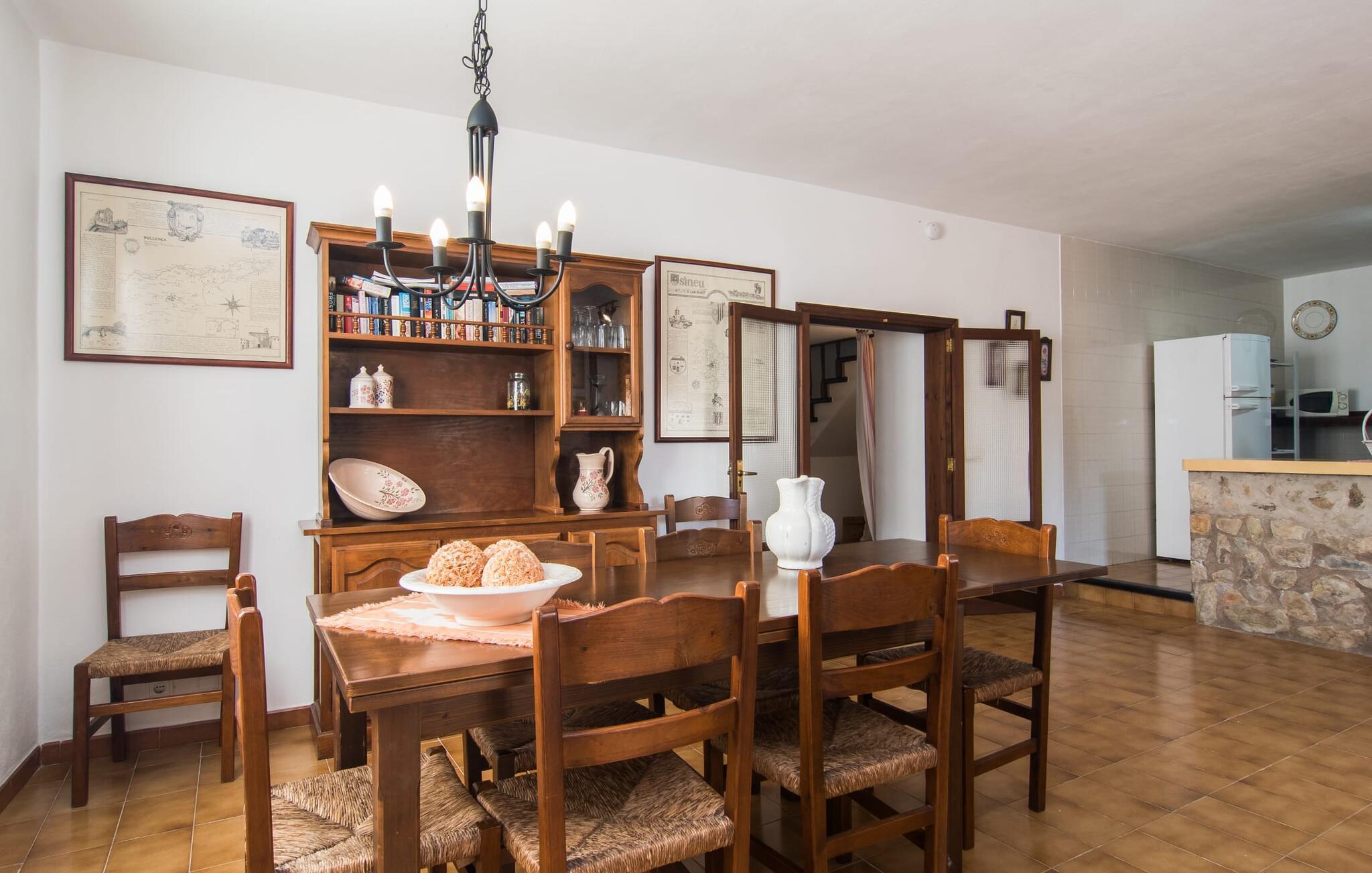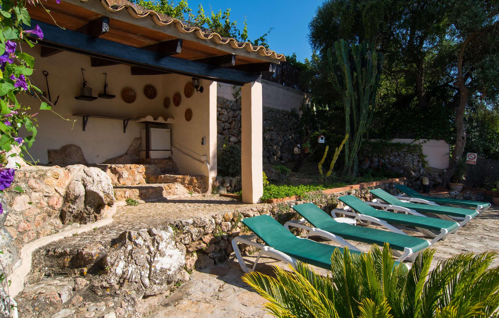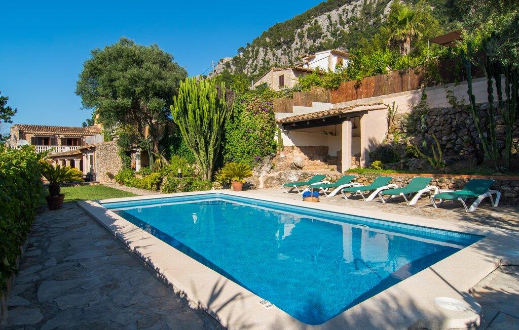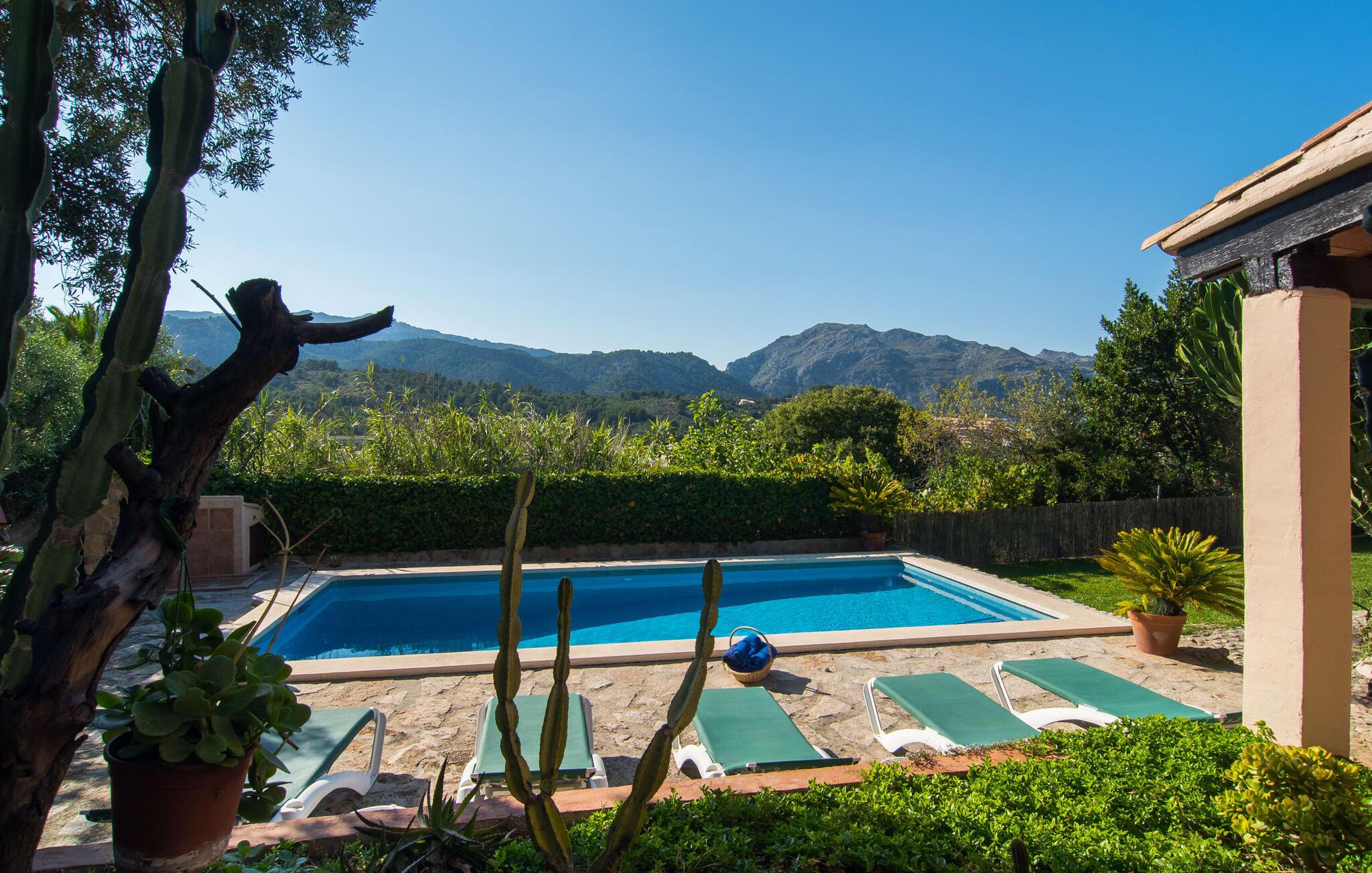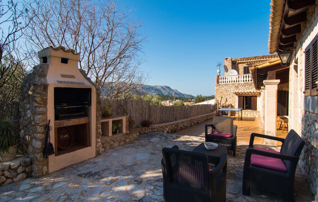 Omgivet af frodig middelhavsflora skinner villaen "Can Moragues" på en yderst charmerende måde med sine kontrasterende naturtoner og byder den nytilkomne velkommen. Udendørsområdet byder på smukke små stier, områder, trapper og stengærder langs frodige græsplæner og blomsterbede. En romantisk pergola, foret til venstre og højre med søjler og en lav mur, fører til hovedindgangen til huset. Udeområdets hjerte er den 32 m², let forhøjede swimmingpool, som er flisebelagt med dekorative blå mosaiksten og er meget let tilgængelig via en bred trappe. I kan slappe af af hjertens lyst på i alt fem komfortable liggestole under den dybblå middelhavshimmel og bare slappe af. En overdækket terrasse, tilgængelig via få trin, giver mulighed for at blive hængende i den luftige skygge, mens I nyder den vidunderlige udsigt over Pollença fra et lidt lavere niveau. Afhængigt af tidspunktet på dagen finder I også skøn naturlig skygge ved poolen. Tættere på huset når man den alsidige terrasse, som er halvt åben og halvt overdækket. I den sidste del er der i det væsentlige en udendørs stue, hvori der er en hyggelig siddegruppe med polyrattan møbler på den ene side og lige ved siden af et solidt spisebord til fællesspisning. Den nærliggende murede grill og udendørs vandforsyning giver jer mulighed for at tilberede og tilberede måltider udendørs, hvis I ønsker det. Husvæggen i natursten skaber i kombination med de smukke fliser og træbjælkeloftet en særlig behagelig stemning i dette område. Den udendørs terrasse tilbyder et sted at solbade, og der er endda et bordtennisbord. Dette giver sportsinteresserede mulighed for at blive aktive. Inde i villaen præsenteres den besøgende for en stor åben stue/spisestue med et tilstødende køkken, løst adskilt af en disk. Et hyggeligt sofahjørne inviterer jer til at slappe af og slappe af. Her kan I roligt læse en god bog eller blive underholdt af en film, da fjernsynet også er bekvemt placeret her. Spisebordet lige ved siden af er ideelt til sofistikeret indendørs spisning. Der er ingen lange rejser, fordi køkkenet ligger lige ved siden af. Her finder I alle de moderne faciliteter I har brug for til hverdagsbrug, herunder en kedel og en filterkaffemaskine. Det giver endda plads til et ekstra lille spisebord. Et andet ret rummeligt fællesrum med siddepladser giver mulighed for at trække sig tilbage og finde et privat sted, selv når man rejser med en større gruppe. Medfølgende børn vil helt sikkert nyde at lege her. Fire komfortabelt møblerede værelser med aircondition tilbyder en vidunderlig ramme for en afslappende søvn. Badeværelserne er venlige og funktionelt indrettede. Et strygejern og en hårtørrer er også tilgængelige i huset, så I behøver ikke at tage dem med. Den attraktive beliggenhed af denne villa kan være landlig, men havet er kun et par minutters kørsel væk. Sandstrandene omkring Port Pollença er fremragende og har en lavvandet indgang til vandet. Port de Pollença byder på en smuk promenade langs stranden og havnen med butikker, barer og restauranter. Kunne I tænke jer at tilbringe aftenen et andet sted end den smukke villa, finder I her et absolut seværdigt alternativ. Villaen "Can Moragues" er beliggende i en smuk bjergskråning i udkanten af Pollença. Det ligger på en frodig, grøn ejendom og er indrettet med stor sans for detaljer. Port de Pollença ligger 9 km derfra. Denne lille kystby imponerer med sin smukke promenade, som indbyder til at slentre og besøge de talrige caféer. Sandstrandene kan nås fra feriehuset på ingen tid. Bemærk venligst, at denne ejendom ikke accepterer ungdomsgrupper eller polterabender. En ungdomsgruppe på denne ejendom består af personer på 25 år eller derunder. Book ikke denne ejendom, hvis I er en ungdomsgruppe eller polterabend, da jeres reservation vil blive afvist, når den er booket, hvilket også kan være tilfældet ved ankomst til ejendommen eller under jeres ophold, og I vil ikke modtage en refusion
