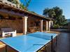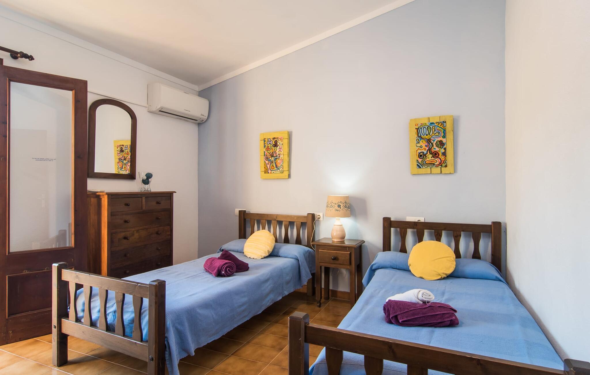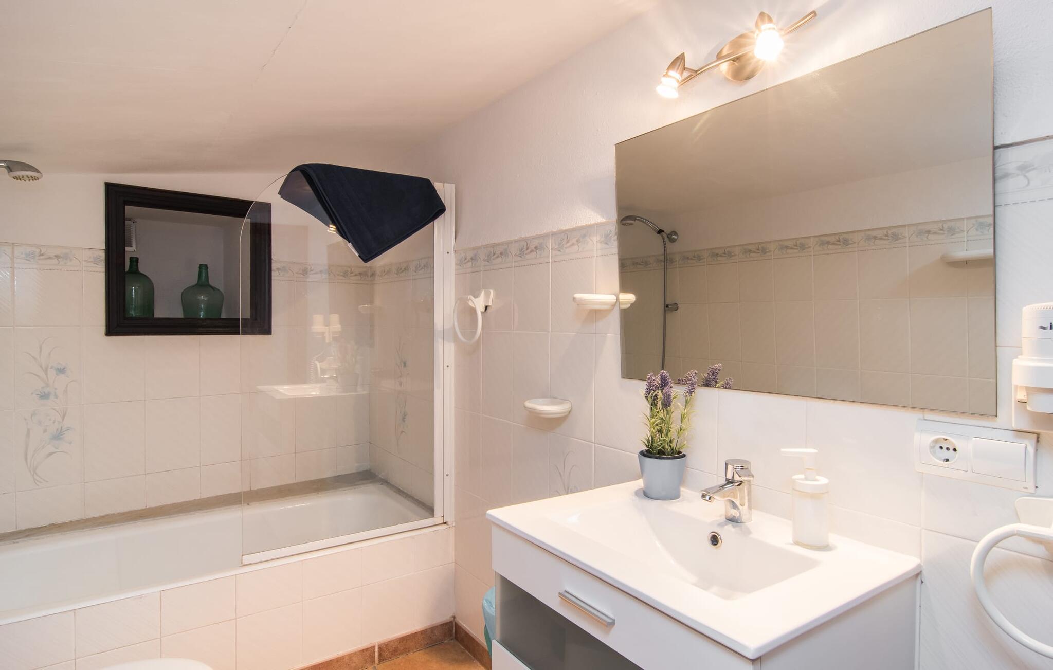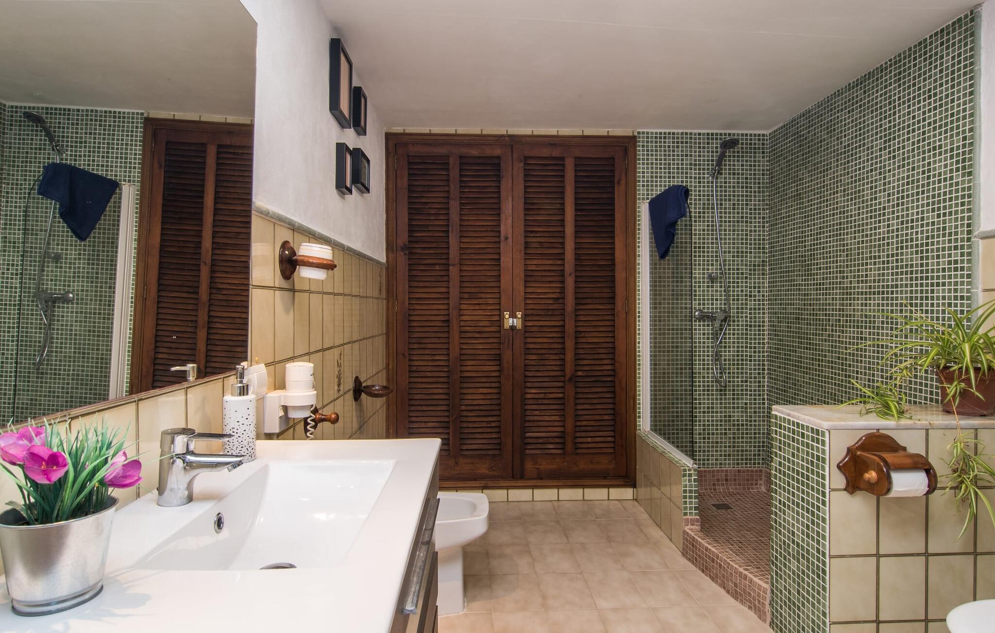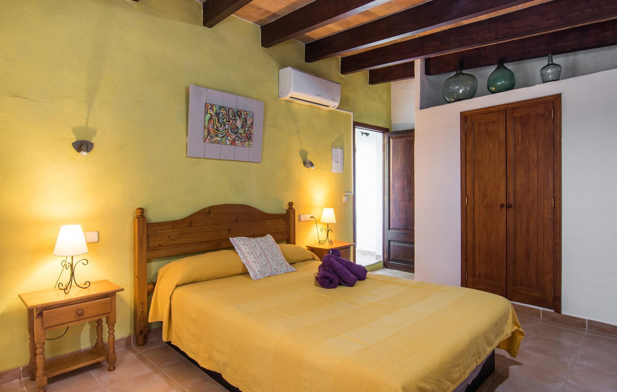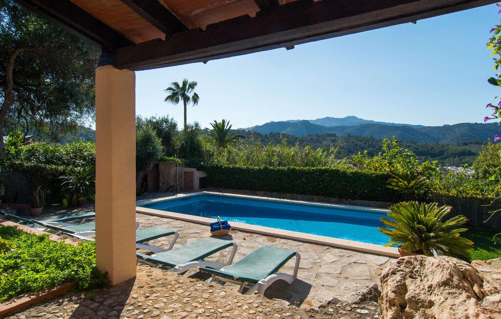 Omgivet af frodig middelhavsflora skinner villaen "Can Moragues" på en yderst charmerende måde med sine kontrasterende naturtoner og byder den nytilkomne velkommen. Udendørsområdet byder på smukke små stier, områder, trapper og stengærder langs frodige græsplæner og blomsterbede. En romantisk pergola, foret til venstre og højre med søjler og en lav mur, fører til hovedindgangen til huset. Udeområdets hjerte er den 32 m², let forhøjede swimmingpool, som er flisebelagt med dekorative blå mosaiksten og er meget let tilgængelig via en bred trappe. I kan slappe af af hjertens lyst på i alt fem komfortable liggestole under den dybblå middelhavshimmel og bare slappe af. En overdækket terrasse, tilgængelig via få trin, giver mulighed for at blive hængende i den luftige skygge, mens I nyder den vidunderlige udsigt over Pollença fra et lidt lavere niveau. Afhængigt af tidspunktet på dagen finder I også skøn naturlig skygge ved poolen. Tættere på huset når man den alsidige terrasse, som er halvt åben og halvt overdækket. I den sidste del er der i det væsentlige en udendørs stue, hvori der er en hyggelig siddegruppe med polyrattan møbler på den ene side og lige ved siden af et solidt spisebord til fællesspisning. Den nærliggende murede grill og udendørs vandforsyning giver jer mulighed for at tilberede og tilberede måltider udendørs, hvis I ønsker det. Husvæggen i natursten skaber i kombination med de smukke fliser og træbjælkeloftet en særlig behagelig stemning i dette område. Den udendørs terrasse tilbyder et sted at solbade, og der er endda et bordtennisbord. Dette giver sportsinteresserede mulighed for at blive aktive. Inde i villaen præsenteres den besøgende for en stor åben stue/spisestue med et tilstødende køkken, løst adskilt af en disk. Et hyggeligt sofahjørne inviterer jer til at slappe af og slappe af. Her kan I roligt læse en god bog eller blive underholdt af en film, da fjernsynet også er bekvemt placeret her. Spisebordet lige ved siden af er ideelt til sofistikeret indendørs spisning. Der er ingen lange rejser, fordi køkkenet ligger lige ved siden af. Her finder I alle de moderne faciliteter I har brug for til hverdagsbrug, herunder en kedel og en filterkaffemaskine. Det giver endda plads til et ekstra lille spisebord. Et andet ret rummeligt fællesrum med siddepladser giver mulighed for at trække sig tilbage og finde et privat sted, selv når man rejser med en større gruppe. Medfølgende børn vil helt sikkert nyde at lege her. Fire komfortabelt møblerede værelser med aircondition tilbyder en vidunderlig ramme for en afslappende søvn. Badeværelserne er venlige og funktionelt indrettede. Et strygejern og en hårtørrer er også tilgængelige i huset, så I behøver ikke at tage dem med. Den attraktive beliggenhed af denne villa kan være landlig, men havet er kun et par minutters kørsel væk. Sandstrandene omkring Port Pollença er fremragende og har en lavvandet indgang til vandet. Port de Pollença byder på en smuk promenade langs stranden og havnen med butikker, barer og restauranter. Kunne I tænke jer at tilbringe aftenen et andet sted end den smukke villa, finder I her et absolut seværdigt alternativ. Villaen "Can Moragues" er beliggende i en smuk bjergskråning i udkanten af Pollença. Det ligger på en frodig, grøn ejendom og er indrettet med stor sans for detaljer. Port de Pollença ligger 9 km derfra. Denne lille kystby imponerer med sin smukke promenade, som indbyder til at slentre og besøge de talrige caféer. Sandstrandene kan nås fra feriehuset på ingen tid. Bemærk venligst, at denne ejendom ikke accepterer ungdomsgrupper eller polterabender. En ungdomsgruppe på denne ejendom består af personer på 25 år eller derunder. Book ikke denne ejendom, hvis I er en ungdomsgruppe eller polterabend, da jeres reservation vil blive afvist, når den er booket, hvilket også kan være tilfældet ved ankomst til ejendommen eller under jeres ophold, og I vil ikke modtage en refusion