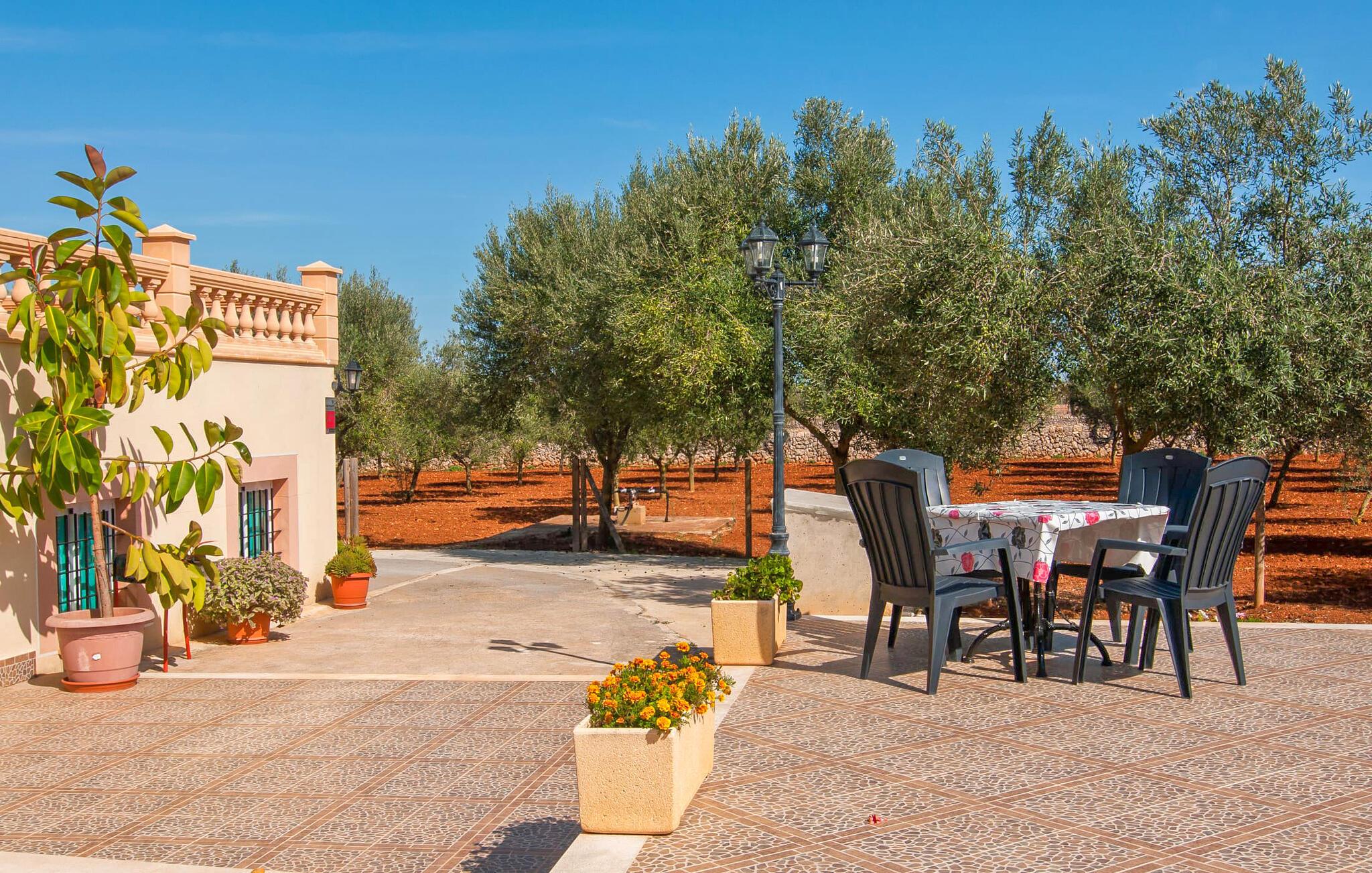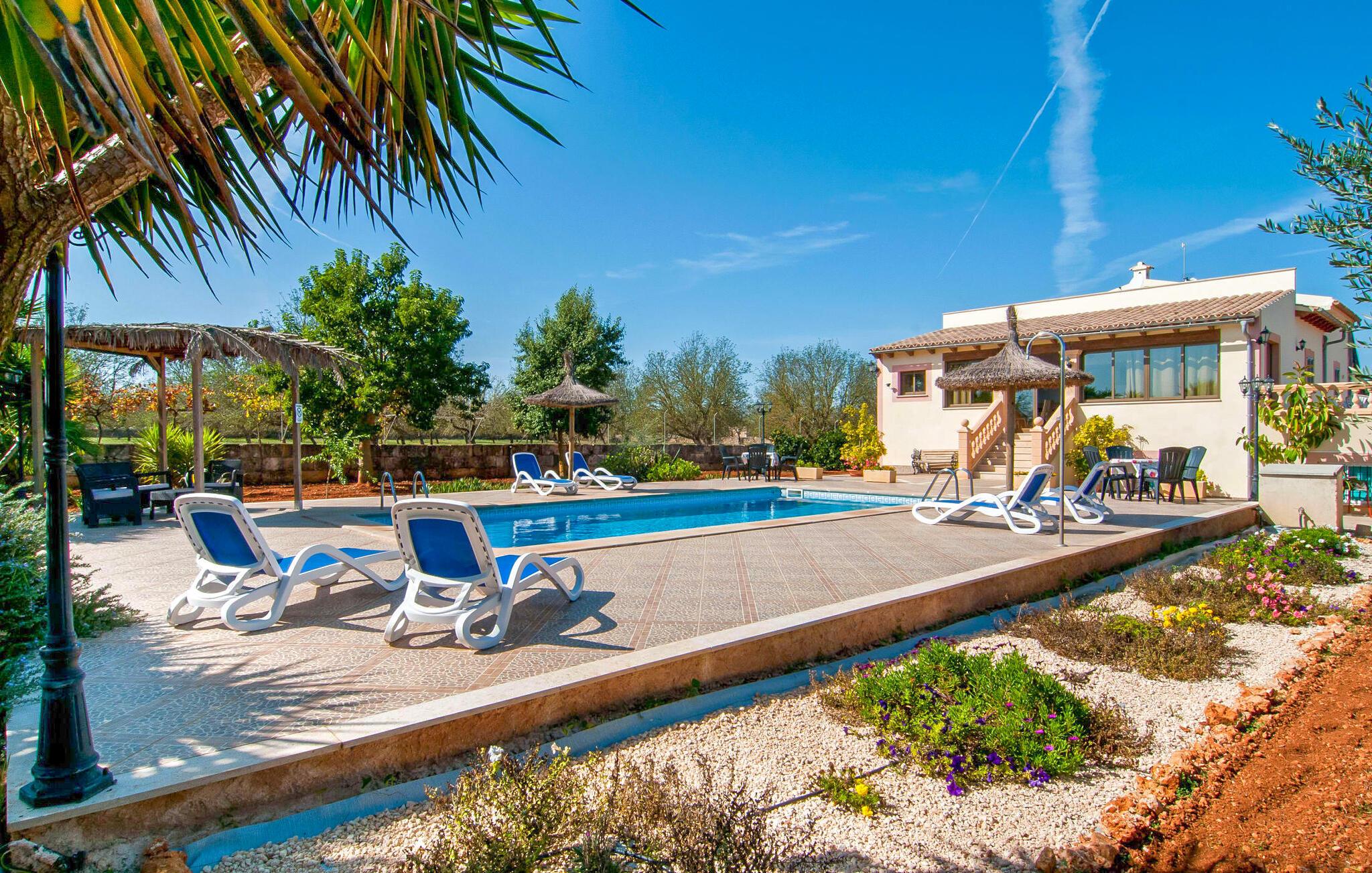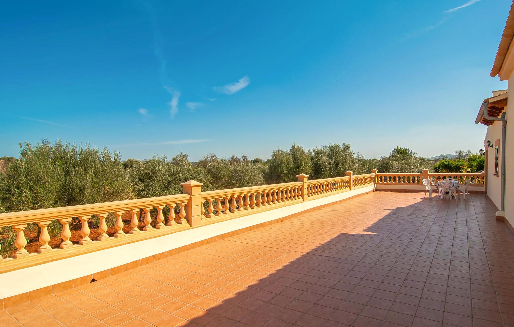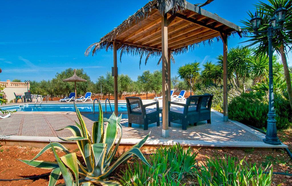 Søger I ro og privatliv samt et velholdt miljø, så er villaen “Can Nofre” den helt rigtige ejendom for jer. Selv de sidste par meter af den lille indkørsel giver indtryk af en indbydende idyl. Det afsondrede område, omgivet af middelhavstræer, har en bred vifte af områder, niveauer og interessante seværdigheder og byder på alle mulige muligheder for et fuldstændig behageligt udendørs ophold. Store gårdhaver og terrassearealer kendetegner grunden, som er nænsomt dekoreret med vægge, trapper, planter og endda et springvand. Alle disse individuelle elementer gør denne ejendom behageligt hjemlig og stemningsfuld. Hele den 10 m lange private pool, som ligger kun få skridt fra huset og omgivet af en rummelig terrasse, kan nemt nås via en bred trappe. Her kan I forfriske jer med et kølende bad på varme dage. I kan slappe af på en af liggestolene, finde jeres helt eget yndlingssted og langsomt lægge hverdagen bag jer. Hvis UV-strålingen bliver for stærk, kan I blot skærme jer under en af de to halmparaplyer eller under palmekronen i Stillehavsstil. Den hævede veranda på huset inviterer jer også til at finde jer tilpas i den luftige skygge og spise ved bordet, ledsaget af simpelthen en vidunderlig udsigt. Her kan I starte jeres morgen med en smuk udsigt over haven og dens grænser til det omkringliggende landskab. Om aftenen kan I sidde sammen over en lækker kulinarisk BBQ, nyde middelhavsdelikatesser og afslutte endnu en tilfredsstillende dag med stil. Der er en lille vej i nærheden af villaen, der næsten ikke er befærdet og ikke vil forstyrre jer. En stor kombineret stue/spisestue byder gæster velkommen til villaen. Her finder I moderat brugt klassisk dekoration, elegante møbler og stoffer. De træindrammede vinduer, de synlige bjælker i loftet og de terracottafarvede gulvfliser komplementerer dette rum og er med til at skabe en harmonisk helhed. Det rustikke sofahjørne indbyder til afslappende timer, måske med en god bog. Her kan I også nyde en lækker drink eller en underholdende tv-film, som kan ses på det store fladskærms-tv med satellitforbindelse. Det moderne spisebord fremhæver det hyggelige rum og tilbyder en attraktiv mulighed for måske at arrangere en indendørs middag. Fra dette værelse har I også praktisk direkte adgang til poolområdet. Det meget rummelige køkken, som også er den forreste foyer, er udstyret med endnu en spiseplads og er også fuldt møbleret. Udover ovn, komfur, mikroovn, stort køleskab og opvaskemaskine har køkkenet også elkedel og filterkaffemaskine. Den hyggelige atmosfære fortsætter i de tre soveværelser (hvoraf det ene har eget badeværelse). Iøjnefaldende farvede stoffer harmonerer med både møblerne og de øvrige dekorative dekorationer. De tilgængelige senge er en seng, der måler 1,50 x 2,00 m, to, der måler 1,00 x 2,00 m og to andre, der måler 0,90 x 1,90 m. Badeværelserne er ikke kun funktionelle, men også moderne. I kan lade jeres hårtørrer og strygejern blive hjemme, da begge dele findes i huset og selvfølgelig kan bruges af gæster. Ariany er en smuk lille by, hvis omgivende landskab er domineret af syv vindmøller. Men på grund af sin centrale beliggenhed i den østlige del af øen er de større byer let tilgængelige. Den nærliggende by Petra, med sine unikke stenbrudshuse, minder om en søvnig lille by langt væk fra stress og jag. Farmers Market, indbydende barer, caféer og restauranter i denne rolige, men veludviklede by er et besøg værd og bør ikke gå glip af. Den smukke naturlige strand Son Serra de Marina kan nemt nås fra villaen. Den rolige villa "Can Nofre" ligger på en smuk ejendom i den østlige del af øen, kun 3 km fra Ariany. Petra, kun 8 km væk, er ideel til store dagligvareindkøb. Der er også et landmandsmarked hver onsdag, som tilbyder et bredt udvalg af friske regionale produkter. Let tilgængelige strande omfatter den smukke strand Son Serra de Marina og Can Picafort.