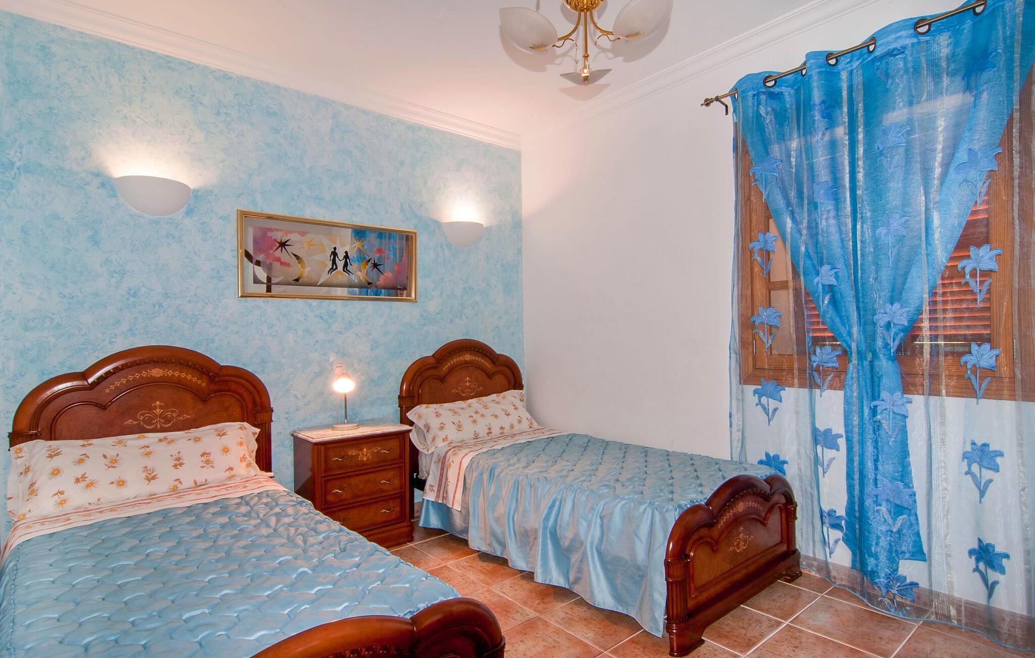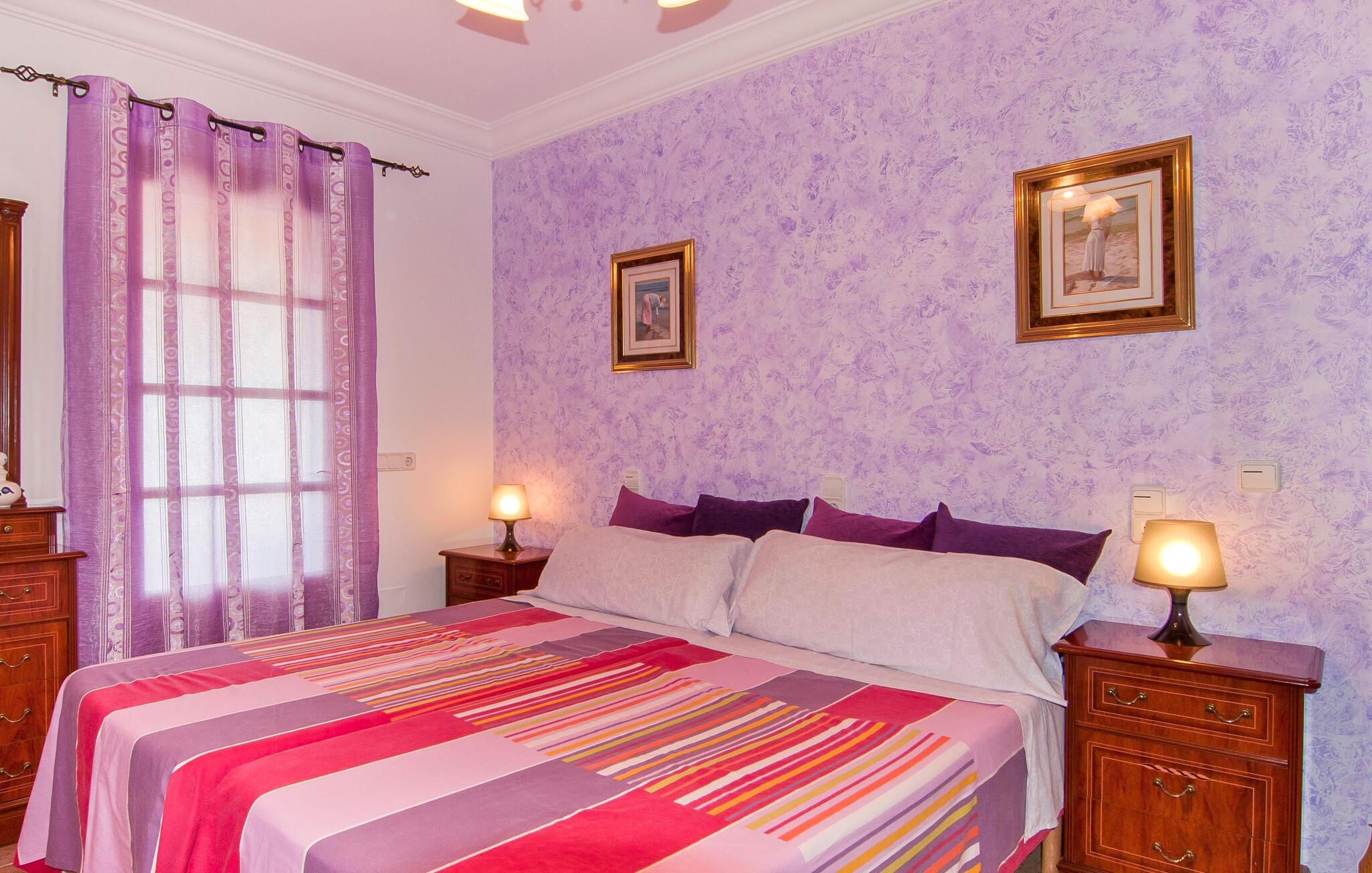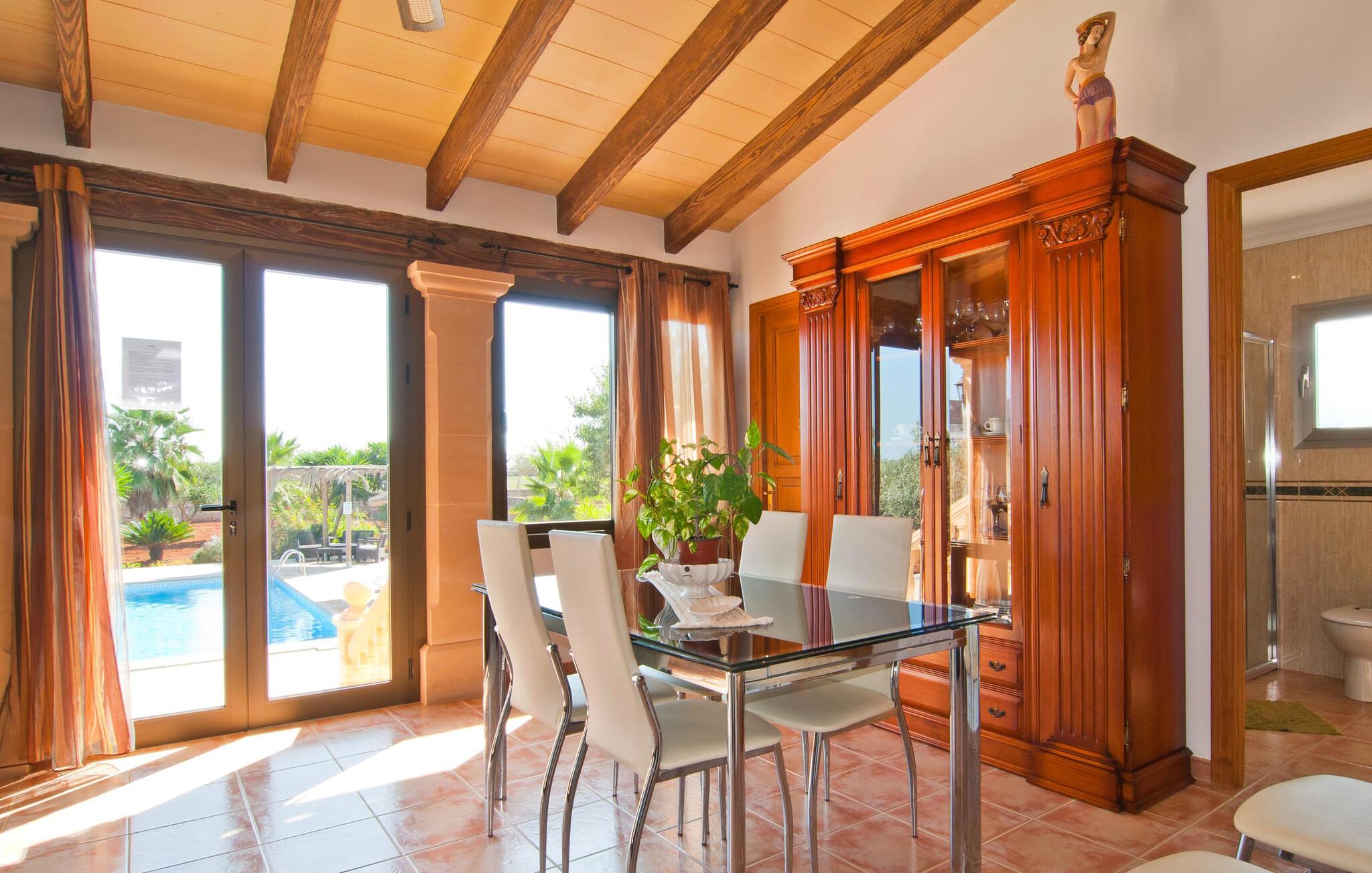 Søger I ro og privatliv samt et velholdt miljø, så er villaen “Can Nofre” den helt rigtige ejendom for jer. Selv de sidste par meter af den lille indkørsel giver indtryk af en indbydende idyl. Det afsondrede område, omgivet af middelhavstræer, har en bred vifte af områder, niveauer og interessante seværdigheder og byder på alle mulige muligheder for et fuldstændig behageligt udendørs ophold. Store gårdhaver og terrassearealer kendetegner grunden, som er nænsomt dekoreret med vægge, trapper, planter og endda et springvand. Alle disse individuelle elementer gør denne ejendom behageligt hjemlig og stemningsfuld. Hele den 10 m lange private pool, som ligger kun få skridt fra huset og omgivet af en rummelig terrasse, kan nemt nås via en bred trappe. Her kan I forfriske jer med et kølende bad på varme dage. I kan slappe af på en af liggestolene, finde jeres helt eget yndlingssted og langsomt lægge hverdagen bag jer. Hvis UV-strålingen bliver for stærk, kan I blot skærme jer under en af de to halmparaplyer eller under palmekronen i Stillehavsstil. Den hævede veranda på huset inviterer jer også til at finde jer tilpas i den luftige skygge og spise ved bordet, ledsaget af simpelthen en vidunderlig udsigt. Her kan I starte jeres morgen med en smuk udsigt over haven og dens grænser til det omkringliggende landskab. Om aftenen kan I sidde sammen over en lækker kulinarisk BBQ, nyde middelhavsdelikatesser og afslutte endnu en tilfredsstillende dag med stil. Der er en lille vej i nærheden af villaen, der næsten ikke er befærdet og ikke vil forstyrre jer. En stor kombineret stue/spisestue byder gæster velkommen til villaen. Her finder I moderat brugt klassisk dekoration, elegante møbler og stoffer. De træindrammede vinduer, de synlige bjælker i loftet og de terracottafarvede gulvfliser komplementerer dette rum og er med til at skabe en harmonisk helhed. Det rustikke sofahjørne indbyder til afslappende timer, måske med en god bog. Her kan I også nyde en lækker drink eller en underholdende tv-film, som kan ses på det store fladskærms-tv med satellitforbindelse. Det moderne spisebord fremhæver det hyggelige rum og tilbyder en attraktiv mulighed for måske at arrangere en indendørs middag. Fra dette værelse har I også praktisk direkte adgang til poolområdet. Det meget rummelige køkken, som også er den forreste foyer, er udstyret med endnu en spiseplads og er også fuldt møbleret. Udover ovn, komfur, mikroovn, stort køleskab og opvaskemaskine har køkkenet også elkedel og filterkaffemaskine. Den hyggelige atmosfære fortsætter i de tre soveværelser (hvoraf det ene har eget badeværelse). Iøjnefaldende farvede stoffer harmonerer med både møblerne og de øvrige dekorative dekorationer. De tilgængelige senge er en seng, der måler 1,50 x 2,00 m, to, der måler 1,00 x 2,00 m og to andre, der måler 0,90 x 1,90 m. Badeværelserne er ikke kun funktionelle, men også moderne. I kan lade jeres hårtørrer og strygejern blive hjemme, da begge dele findes i huset og selvfølgelig kan bruges af gæster. Ariany er en smuk lille by, hvis omgivende landskab er domineret af syv vindmøller. Men på grund af sin centrale beliggenhed i den østlige del af øen er de større byer let tilgængelige. Den nærliggende by Petra, med sine unikke stenbrudshuse, minder om en søvnig lille by langt væk fra stress og jag. Farmers Market, indbydende barer, caféer og restauranter i denne rolige, men veludviklede by er et besøg værd og bør ikke gå glip af. Den smukke naturlige strand Son Serra de Marina kan nemt nås fra villaen. Den rolige villa "Can Nofre" ligger på en smuk ejendom i den østlige del af øen, kun 3 km fra Ariany. Petra, kun 8 km væk, er ideel til store dagligvareindkøb. Der er også et landmandsmarked hver onsdag, som tilbyder et bredt udvalg af friske regionale produkter. Let tilgængelige strande omfatter den smukke strand Son Serra de Marina og Can Picafort.