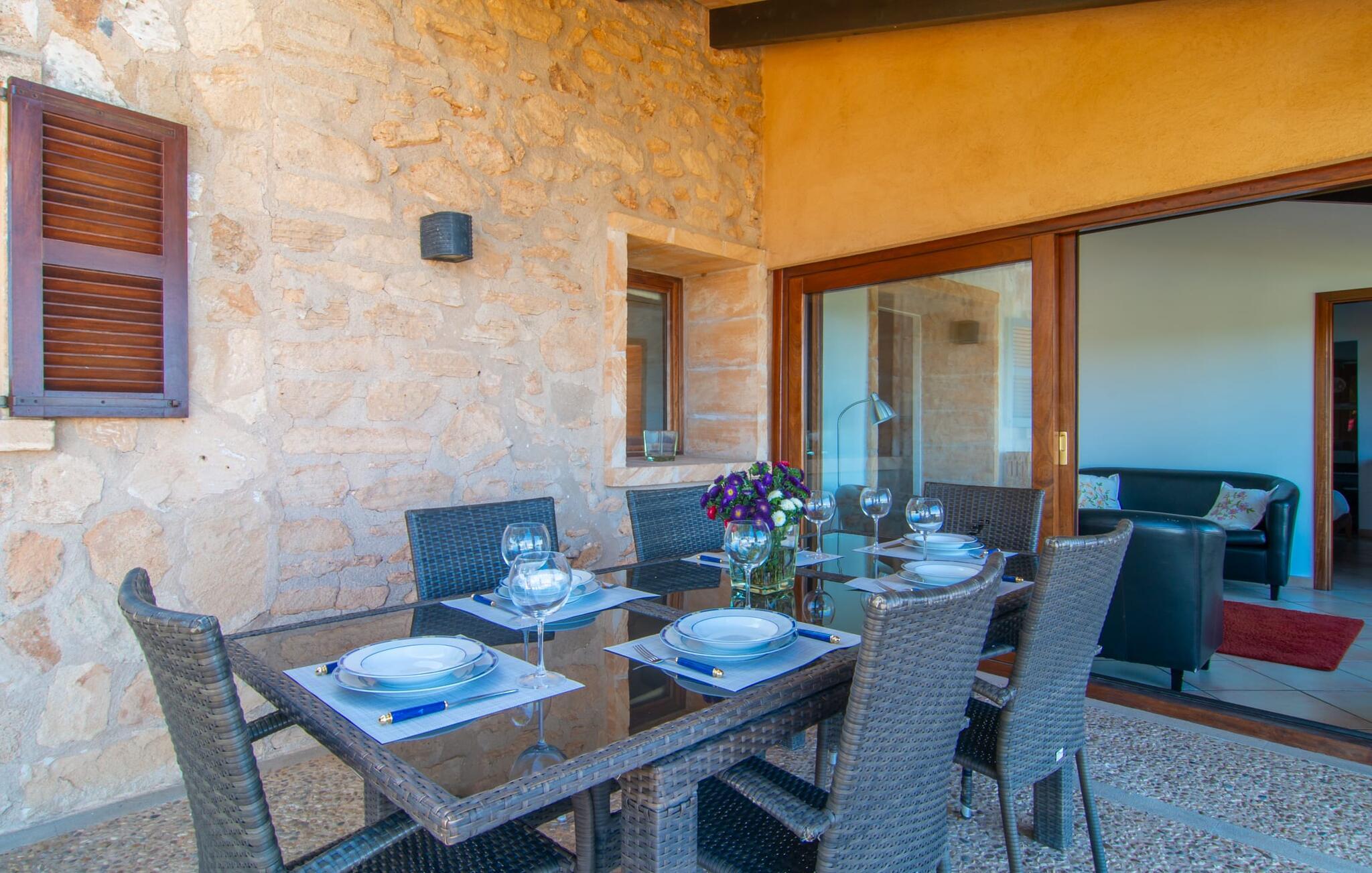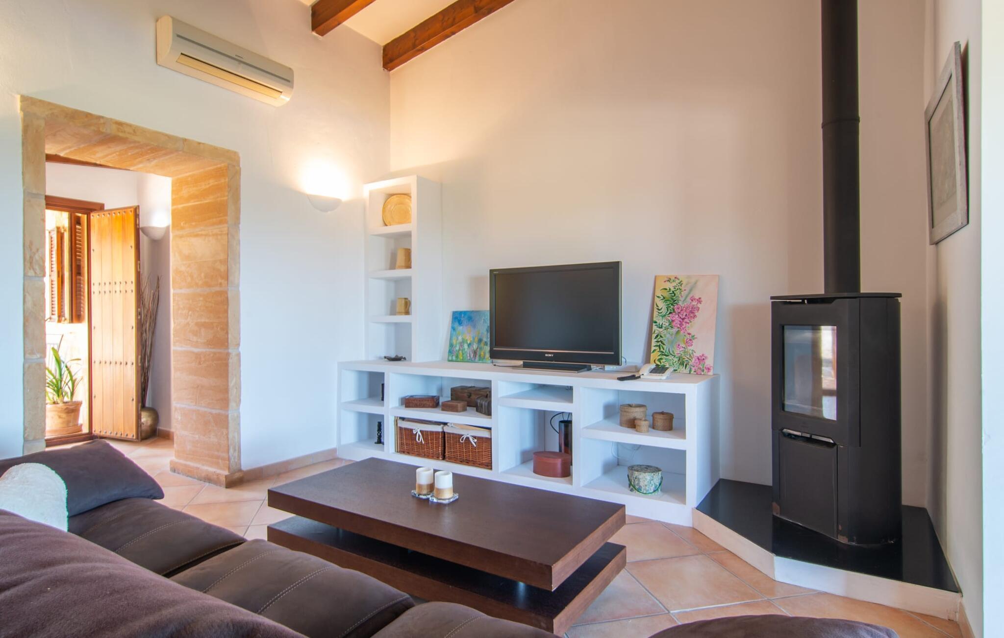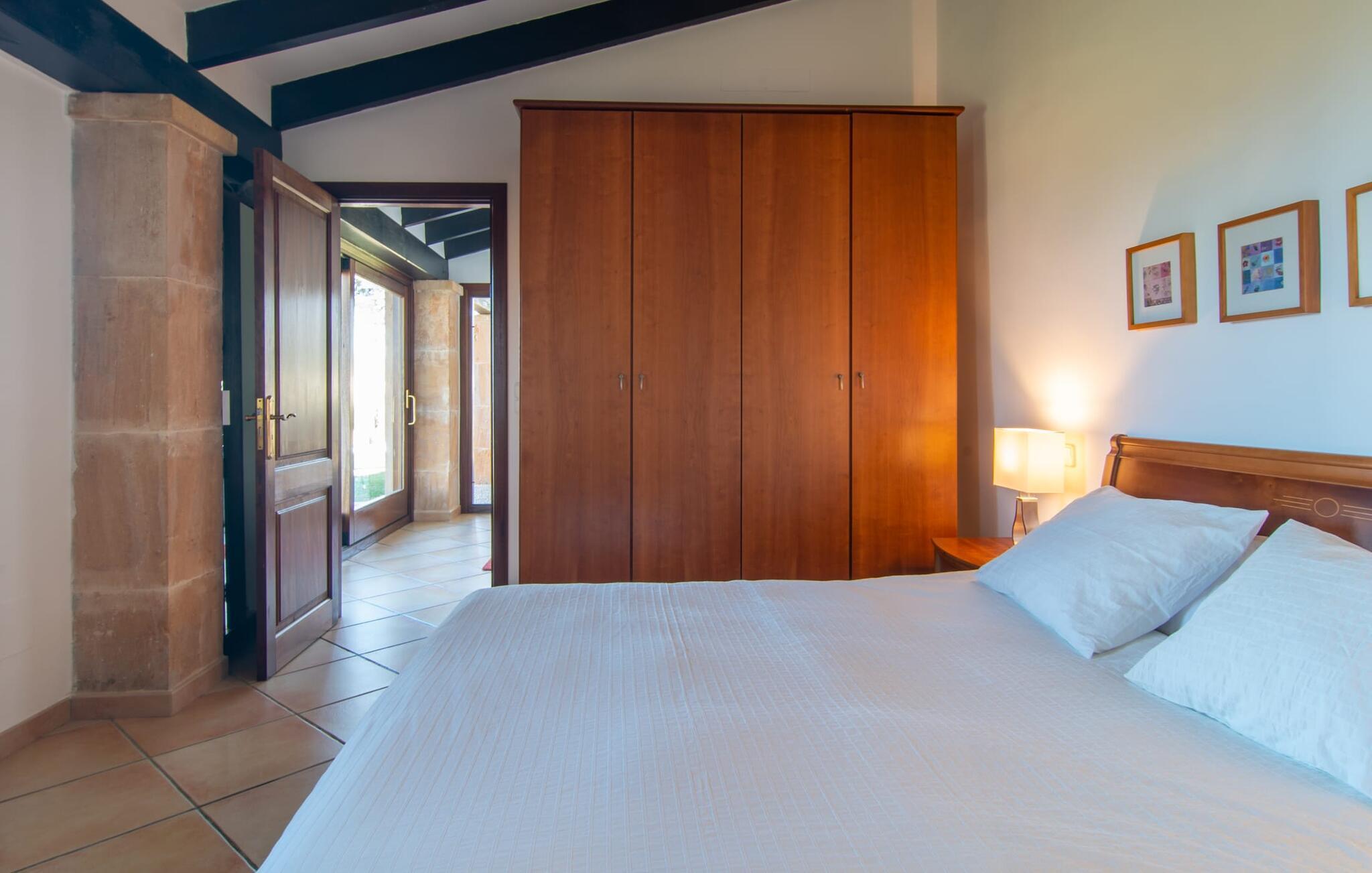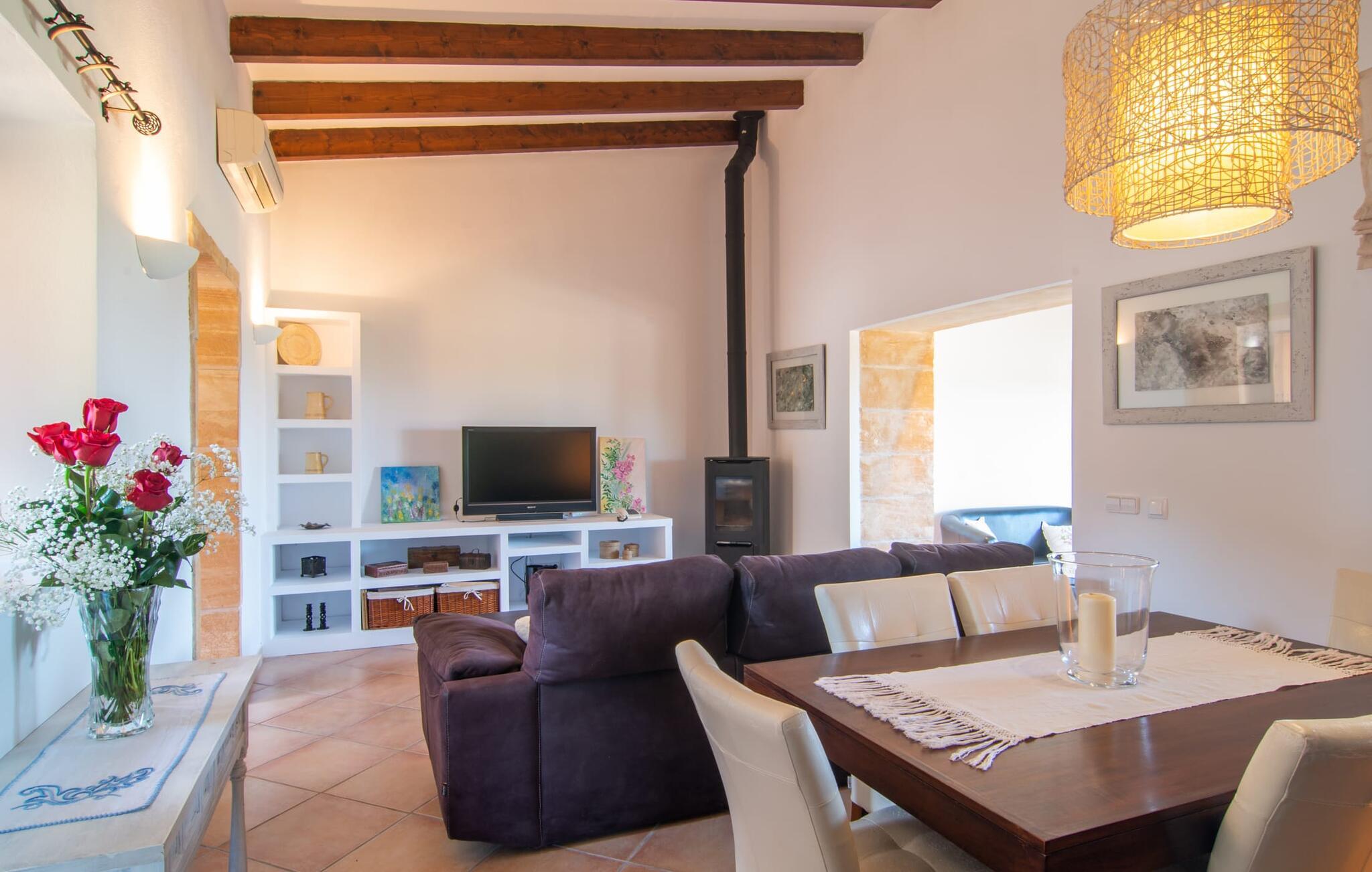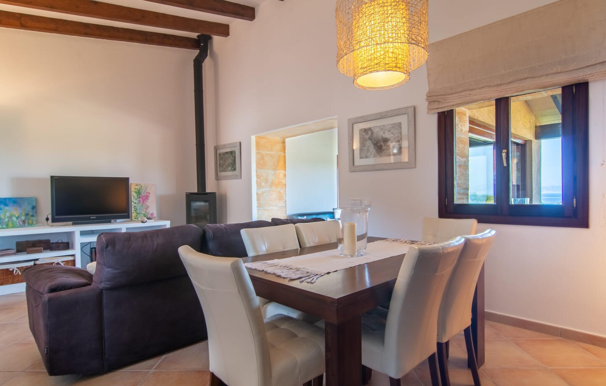 En finca til seks personer med uforglemmelig havudsigt: Dette er "Can Peix", et smukt feriehus på den østlige del af Mallorca. Beliggenheden er simpelthen himmelsk - naturstensfincaen i stueetagen blev ikke kun bygget ved foden af et bjerg, der tårner sig majestætisk op i den blå himmel, men også med udsigt over det nærliggende Middelhav. Ejendommen med sine store, velholdte græsplæner er rummelig og byder børn på masser af plads at lege. Et rigtigt højdepunkt er overløbspoolen lige ved siden af huset: den byder ikke kun på en kølig forfriskning på varme feriedage, men også en uforglemmelig udsigt over havet. På liggestolene, gerne med en lækker cocktail i hånden, kan I lade blikket vandre ud over det typiske middelhavslandskab og slappe dejligt af. I kan parkere jeres lejebil i skyggen under carporten. Moderne, men fuld af varme og kærligt indrettet: Sådan byder jeres sommerhus velkommen indefra. Stueetagens konstruktion er særlig praktisk, især for familier med små børn - der er ingen trin, og alle værelser er i stueetagen. Hvide vægge, naturstensdetaljer, cremefarvede klinkegulve og mørkt træ skaber en indbydende, autentisk og meget velholdt fincastemning. Sammenhængende boligtilbehør er nøje udvalgt, og takket være de mange vinduer er jeres sommerhus behageligt lyst Indretningen er praktisk: Stuen og spisestuen med den hyggelige brændeovn åbner ind i hinanden. Lige ved siden af ligger det veludstyrede køkken med plads nok til en lille morgenmad. Tre behageligt reserverede soveværelser og to moderne badeværelser, et med eget bad og et med badekar, runder bokomforten af "Can Peix". Placeringen af fincaen "Can Peix" er virkelig smuk: ved foden af et imponerende bjerg og med en vidunderlig havudsigt. Feriehuset, bygget i ét plan, er indlejret i et typisk middelhavslandskab på en stor grund med infinity-pool. Den lille by Colònia de Sant Pere, kun ca. 2 km væk, med stranden af samme navn kan hurtigt nås med lejebil via den akustisk mærkbare vej. Men det er mindst lige så sjovt at udforske det omkringliggende område til fods. Bemærk venligst, at denne ejendom ikke accepterer ungdomsgrupper eller polterabender. En ungdomsgruppe på denne ejendom består af personer på 25 år eller derunder. Book ikke denne ejendom, hvis I er en ungdomsgruppe eller polterabend, da jeres reservation vil blive afvist, når den er booket, hvilket også kan være tilfældet ved ankomst til ejendommen eller under jeres ophold, og I vil ikke modtage en refusion