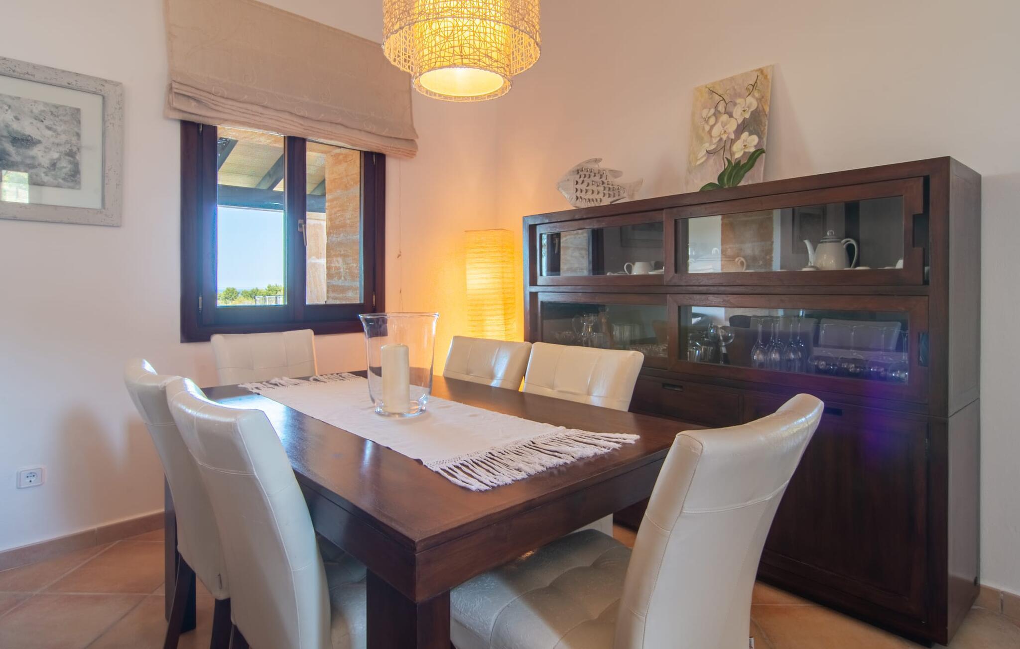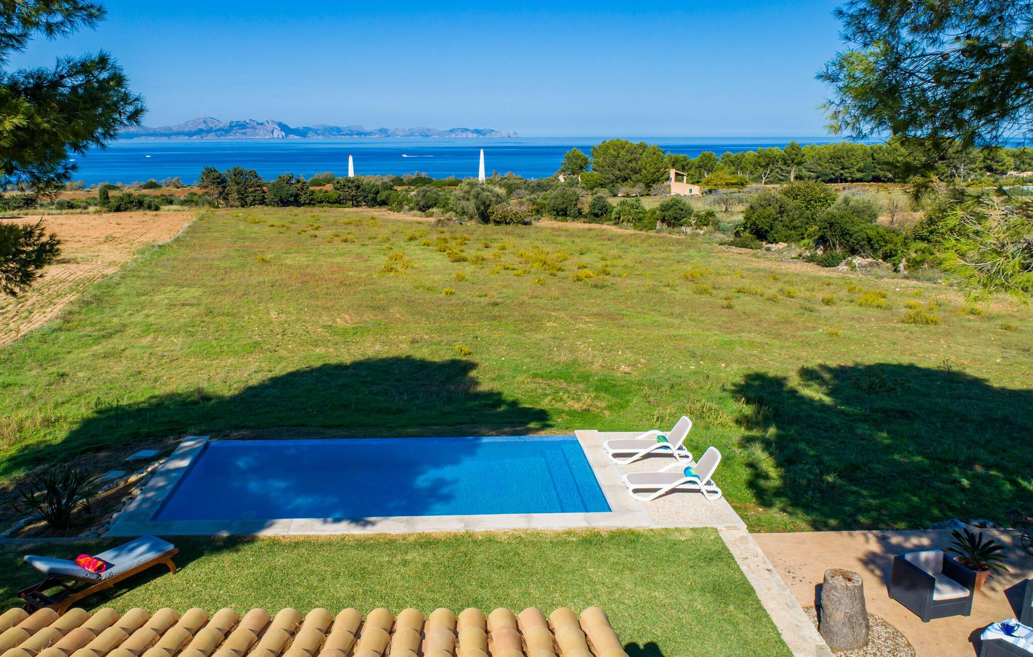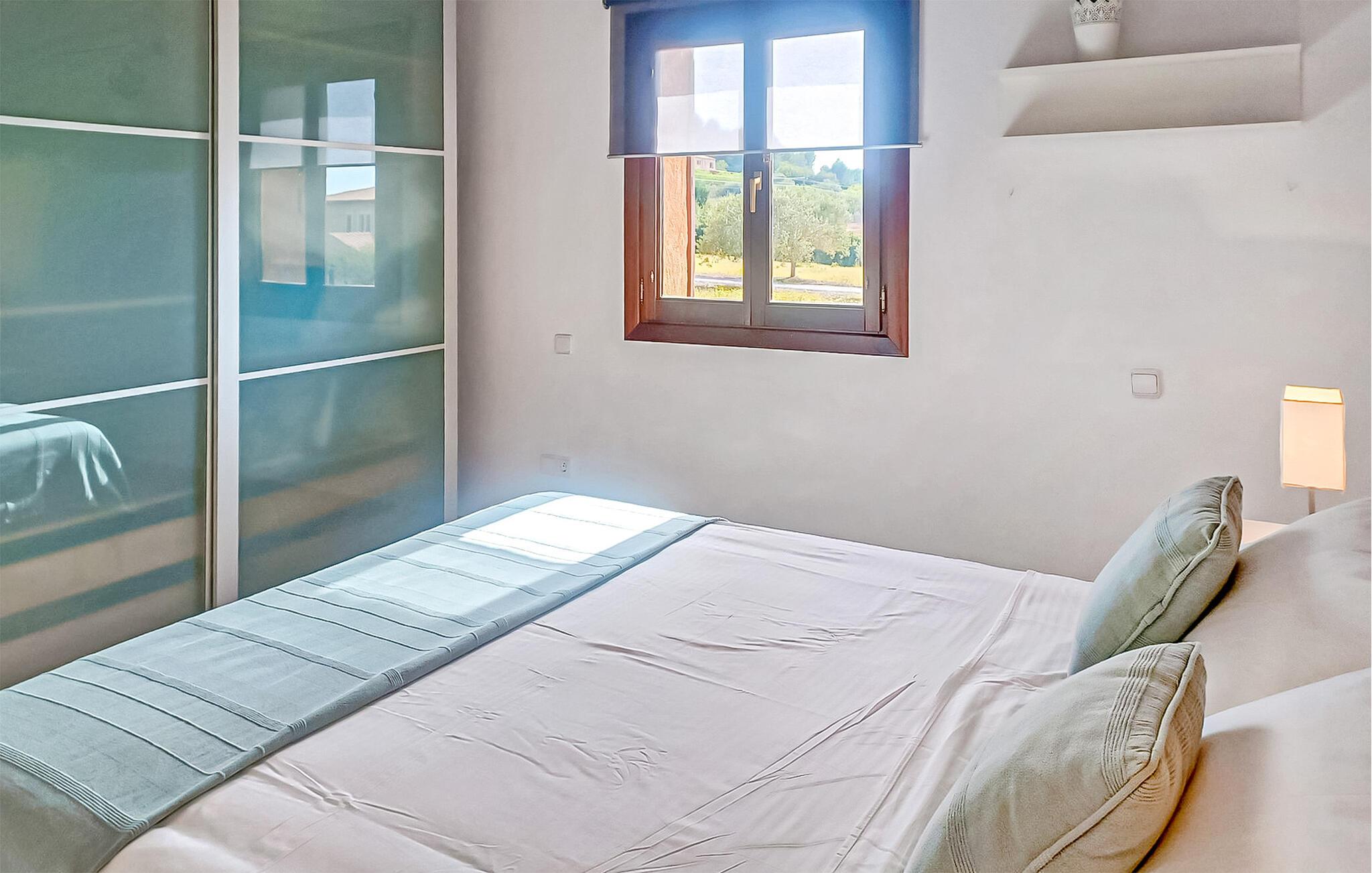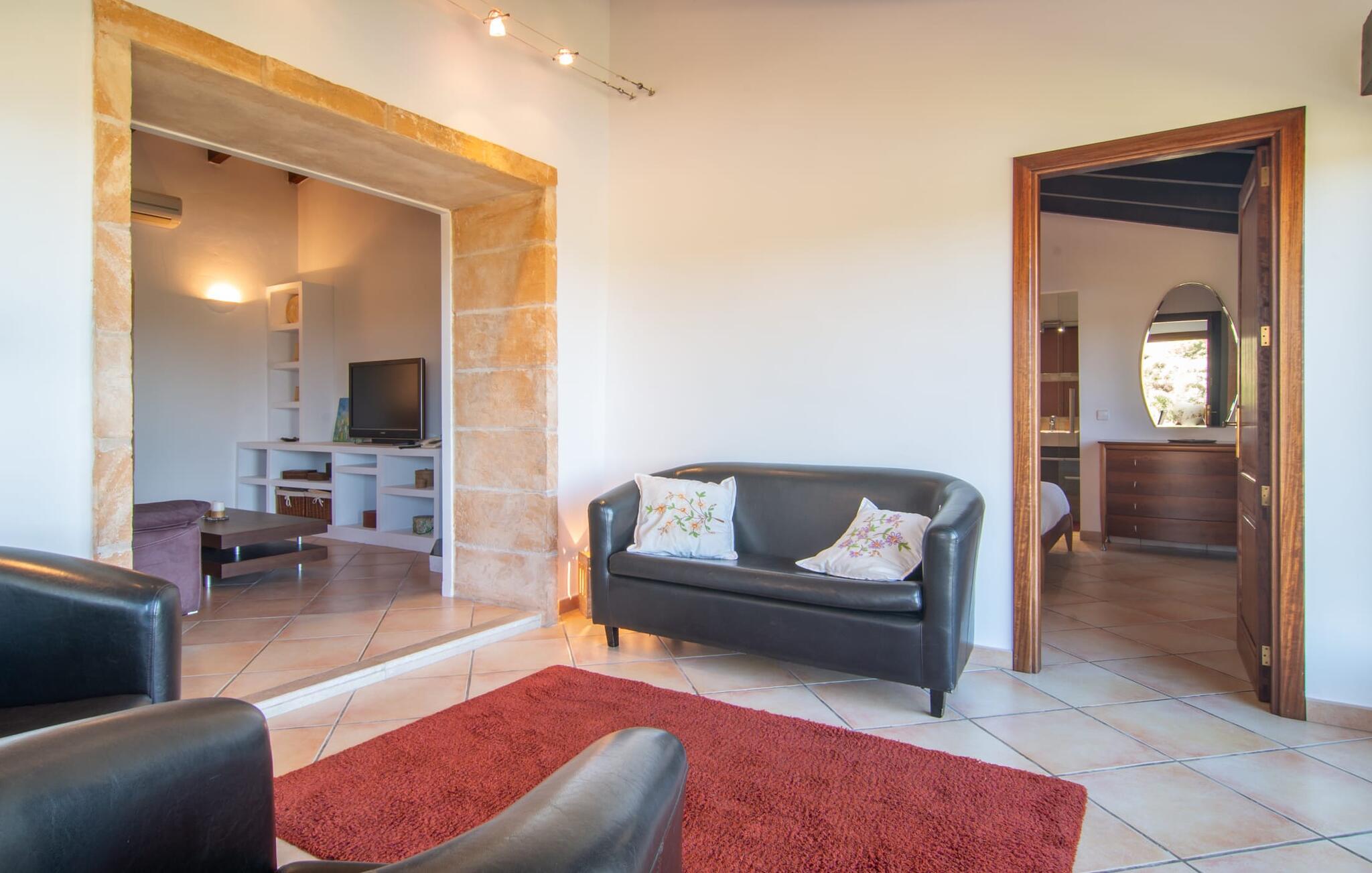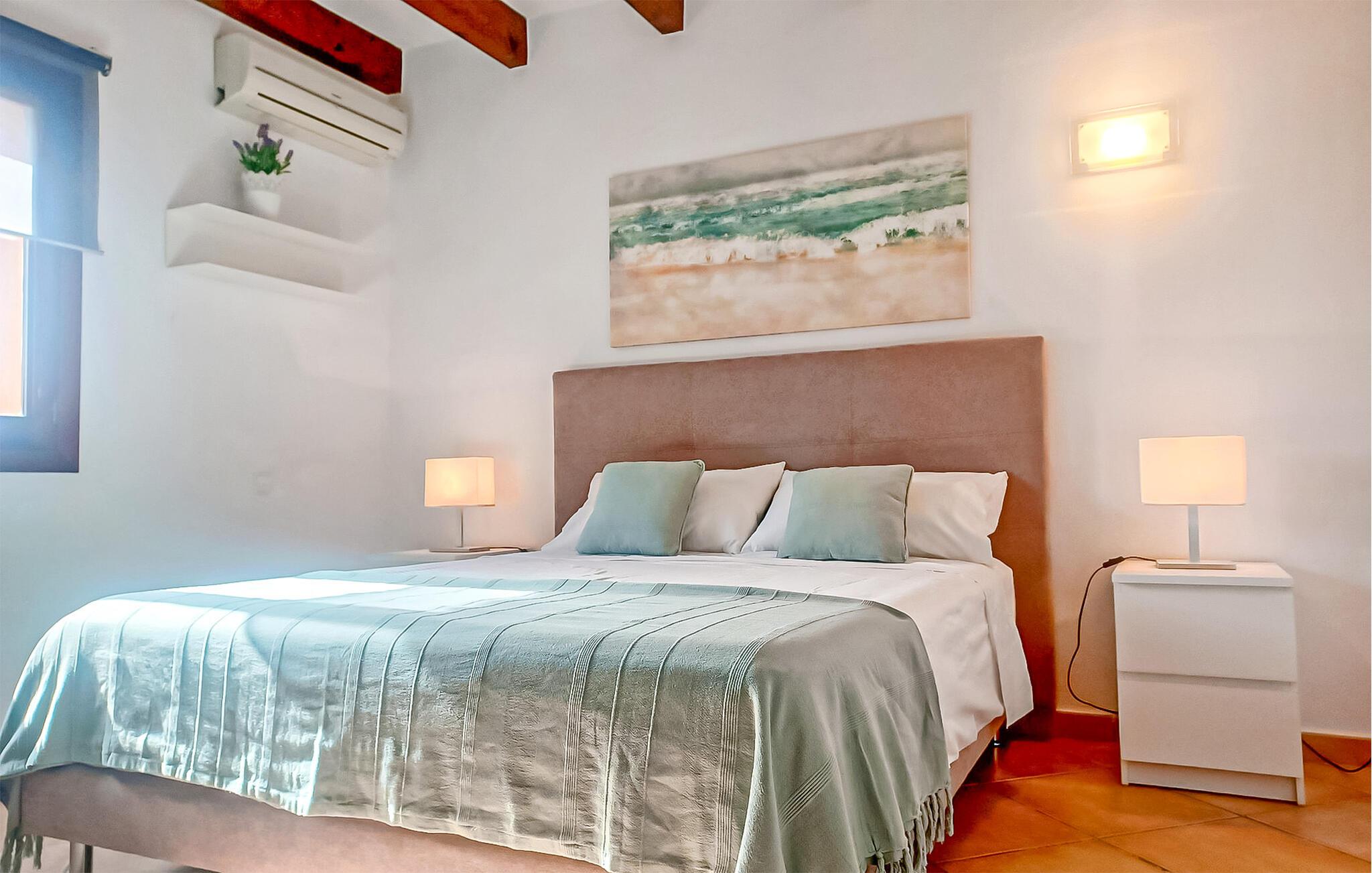 En finca til seks personer med uforglemmelig havudsigt: Dette er "Can Peix", et smukt feriehus på den østlige del af Mallorca. Beliggenheden er simpelthen himmelsk - naturstensfincaen i stueetagen blev ikke kun bygget ved foden af et bjerg, der tårner sig majestætisk op i den blå himmel, men også med udsigt over det nærliggende Middelhav. Ejendommen med sine store, velholdte græsplæner er rummelig og byder børn på masser af plads at lege. Et rigtigt højdepunkt er overløbspoolen lige ved siden af huset: den byder ikke kun på en kølig forfriskning på varme feriedage, men også en uforglemmelig udsigt over havet. På liggestolene, gerne med en lækker cocktail i hånden, kan I lade blikket vandre ud over det typiske middelhavslandskab og slappe dejligt af. I kan parkere jeres lejebil i skyggen under carporten. Moderne, men fuld af varme og kærligt indrettet: Sådan byder jeres sommerhus velkommen indefra. Stueetagens konstruktion er særlig praktisk, især for familier med små børn - der er ingen trin, og alle værelser er i stueetagen. Hvide vægge, naturstensdetaljer, cremefarvede klinkegulve og mørkt træ skaber en indbydende, autentisk og meget velholdt fincastemning. Sammenhængende boligtilbehør er nøje udvalgt, og takket være de mange vinduer er jeres sommerhus behageligt lyst Indretningen er praktisk: Stuen og spisestuen med den hyggelige brændeovn åbner ind i hinanden. Lige ved siden af ligger det veludstyrede køkken med plads nok til en lille morgenmad. Tre behageligt reserverede soveværelser og to moderne badeværelser, et med eget bad og et med badekar, runder bokomforten af "Can Peix". Placeringen af fincaen "Can Peix" er virkelig smuk: ved foden af et imponerende bjerg og med en vidunderlig havudsigt. Feriehuset, bygget i ét plan, er indlejret i et typisk middelhavslandskab på en stor grund med infinity-pool. Den lille by Colònia de Sant Pere, kun ca. 2 km væk, med stranden af samme navn kan hurtigt nås med lejebil via den akustisk mærkbare vej. Men det er mindst lige så sjovt at udforske det omkringliggende område til fods. Bemærk venligst, at denne ejendom ikke accepterer ungdomsgrupper eller polterabender. En ungdomsgruppe på denne ejendom består af personer på 25 år eller derunder. Book ikke denne ejendom, hvis I er en ungdomsgruppe eller polterabend, da jeres reservation vil blive afvist, når den er booket, hvilket også kan være tilfældet ved ankomst til ejendommen eller under jeres ophold, og I vil ikke modtage en refusion
