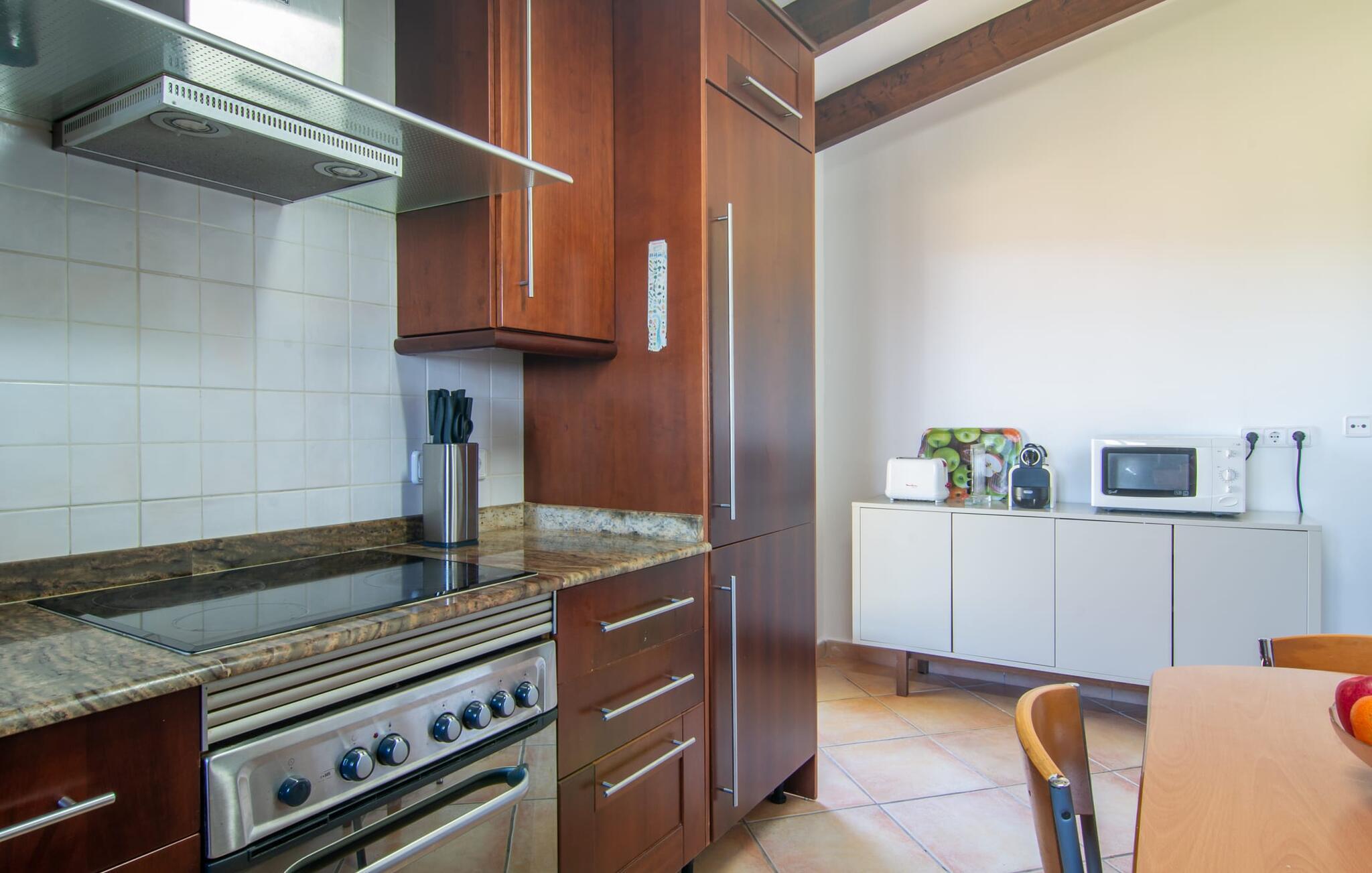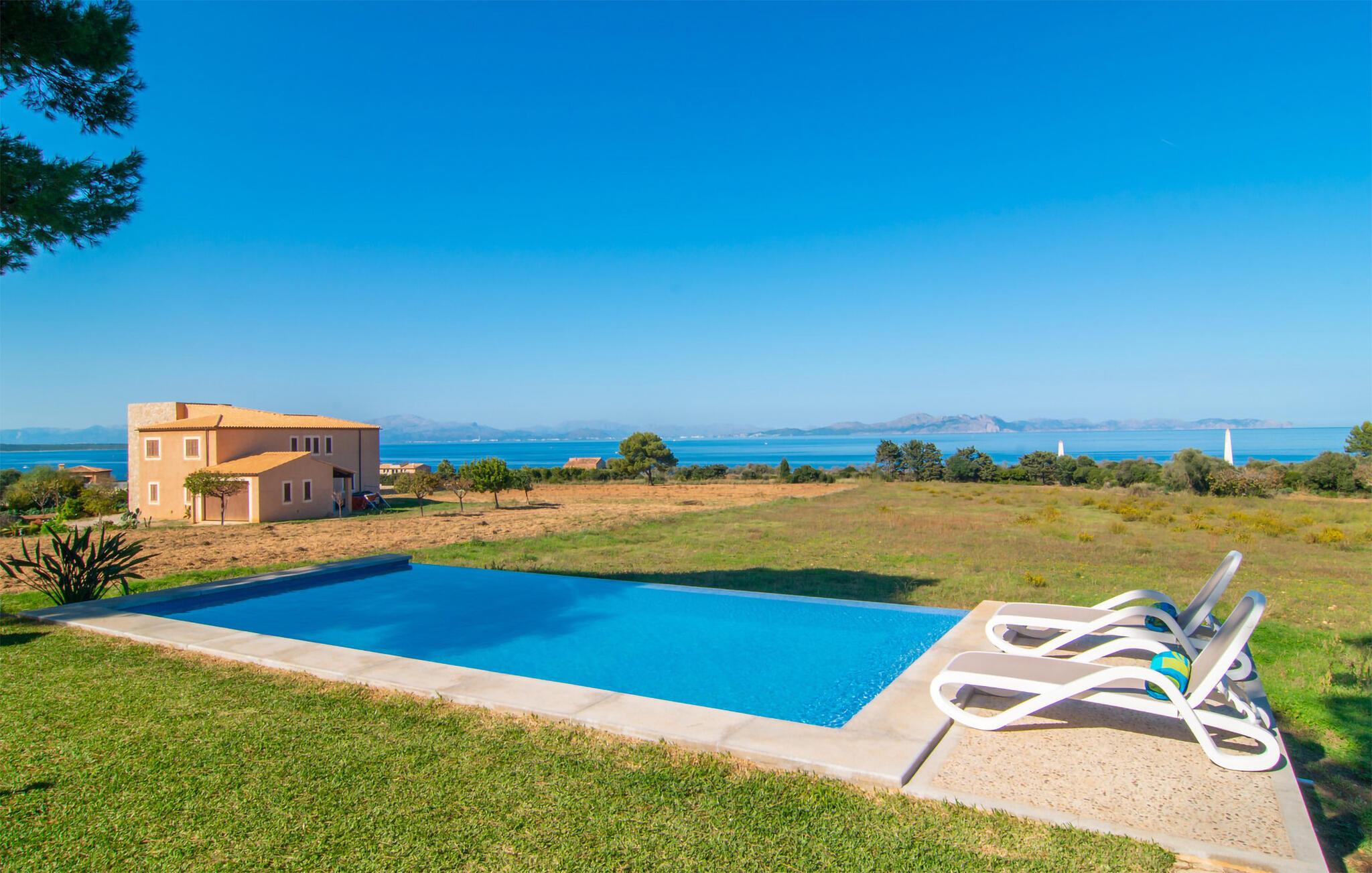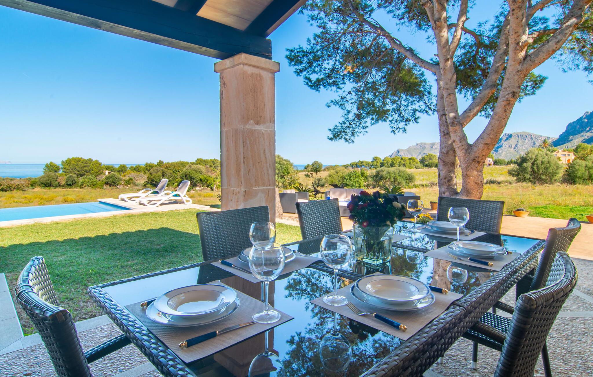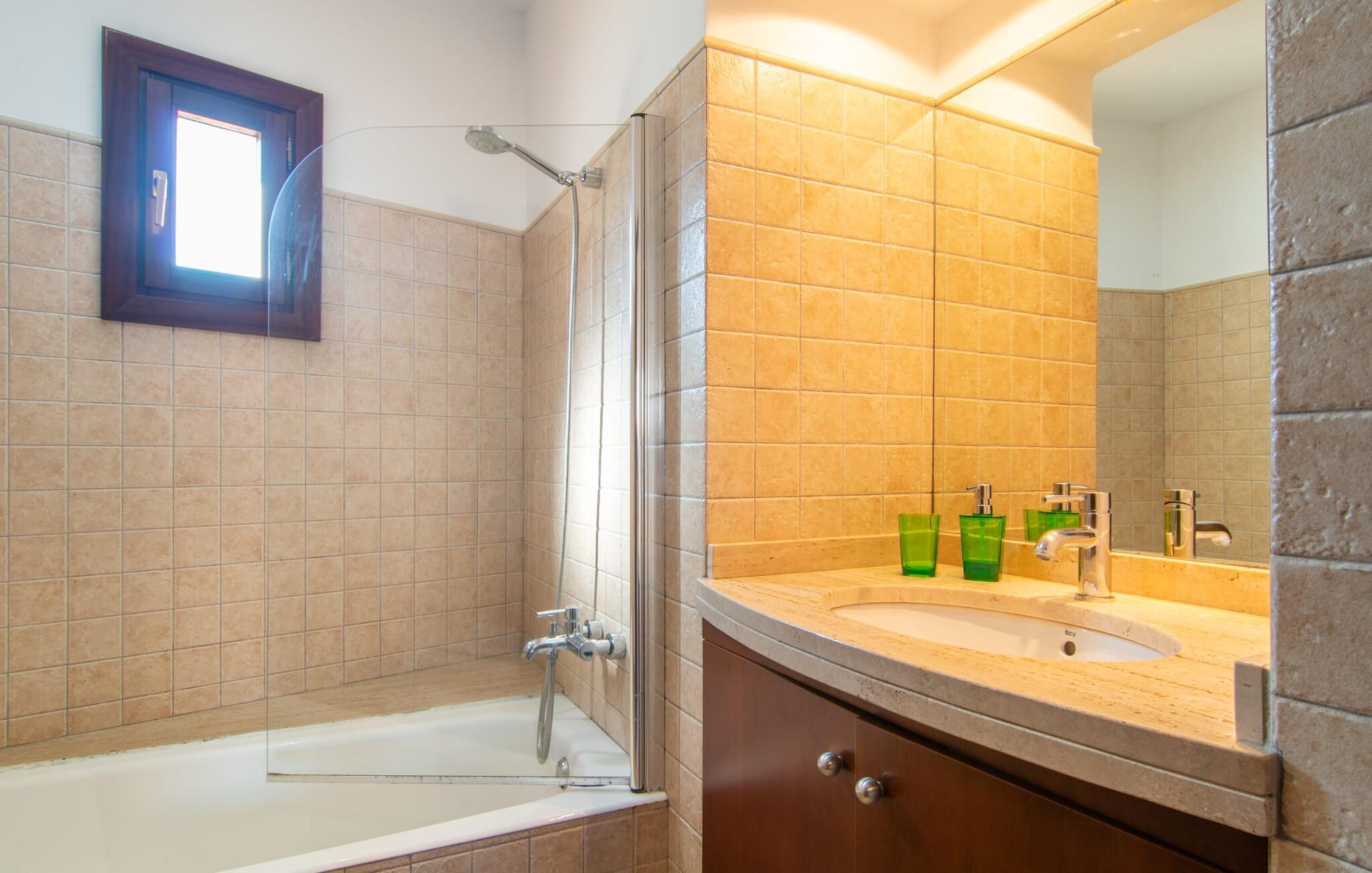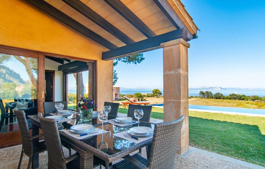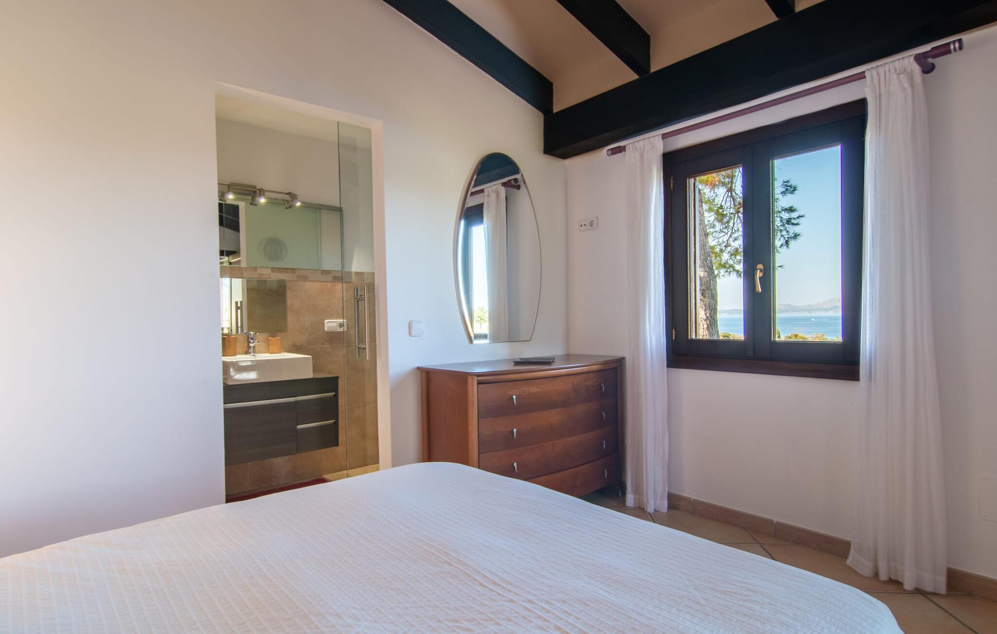 En finca til seks personer med uforglemmelig havudsigt: Dette er "Can Peix", et smukt feriehus på den østlige del af Mallorca. Beliggenheden er simpelthen himmelsk - naturstensfincaen i stueetagen blev ikke kun bygget ved foden af et bjerg, der tårner sig majestætisk op i den blå himmel, men også med udsigt over det nærliggende Middelhav. Ejendommen med sine store, velholdte græsplæner er rummelig og byder børn på masser af plads at lege. Et rigtigt højdepunkt er overløbspoolen lige ved siden af huset: den byder ikke kun på en kølig forfriskning på varme feriedage, men også en uforglemmelig udsigt over havet. På liggestolene, gerne med en lækker cocktail i hånden, kan I lade blikket vandre ud over det typiske middelhavslandskab og slappe dejligt af. I kan parkere jeres lejebil i skyggen under carporten. Moderne, men fuld af varme og kærligt indrettet: Sådan byder jeres sommerhus velkommen indefra. Stueetagens konstruktion er særlig praktisk, især for familier med små børn - der er ingen trin, og alle værelser er i stueetagen. Hvide vægge, naturstensdetaljer, cremefarvede klinkegulve og mørkt træ skaber en indbydende, autentisk og meget velholdt fincastemning. Sammenhængende boligtilbehør er nøje udvalgt, og takket være de mange vinduer er jeres sommerhus behageligt lyst Indretningen er praktisk: Stuen og spisestuen med den hyggelige brændeovn åbner ind i hinanden. Lige ved siden af ligger det veludstyrede køkken med plads nok til en lille morgenmad. Tre behageligt reserverede soveværelser og to moderne badeværelser, et med eget bad og et med badekar, runder bokomforten af "Can Peix". Placeringen af fincaen "Can Peix" er virkelig smuk: ved foden af et imponerende bjerg og med en vidunderlig havudsigt. Feriehuset, bygget i ét plan, er indlejret i et typisk middelhavslandskab på en stor grund med infinity-pool. Den lille by Colònia de Sant Pere, kun ca. 2 km væk, med stranden af samme navn kan hurtigt nås med lejebil via den akustisk mærkbare vej. Men det er mindst lige så sjovt at udforske det omkringliggende område til fods. Bemærk venligst, at denne ejendom ikke accepterer ungdomsgrupper eller polterabender. En ungdomsgruppe på denne ejendom består af personer på 25 år eller derunder. Book ikke denne ejendom, hvis I er en ungdomsgruppe eller polterabend, da jeres reservation vil blive afvist, når den er booket, hvilket også kan være tilfældet ved ankomst til ejendommen eller under jeres ophold, og I vil ikke modtage en refusion